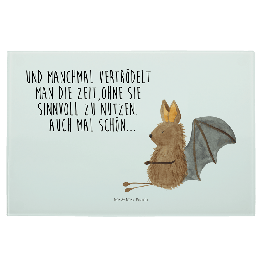 XL Glas Schneidbrett Fledermaus sitzend - mit Spruch - Weiß