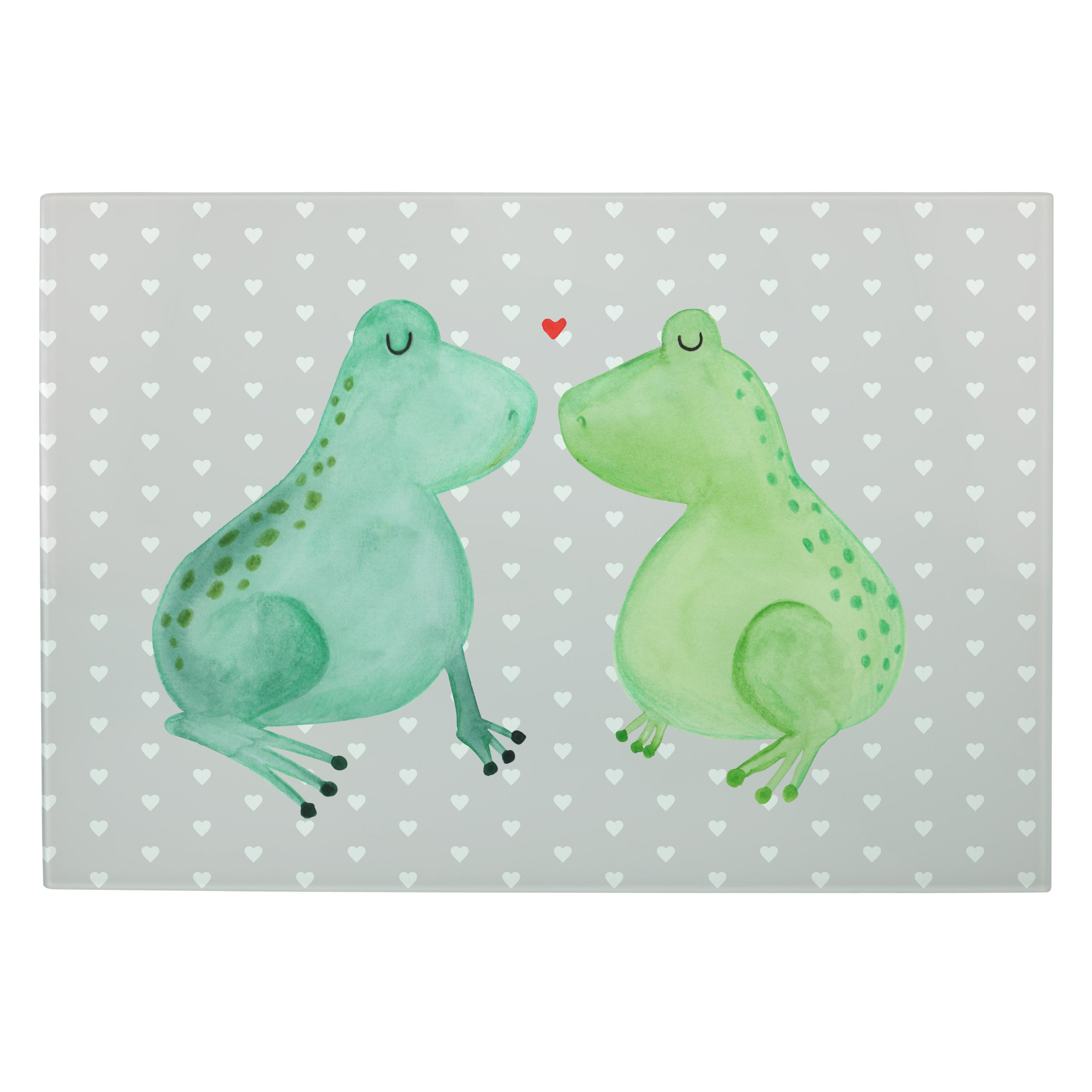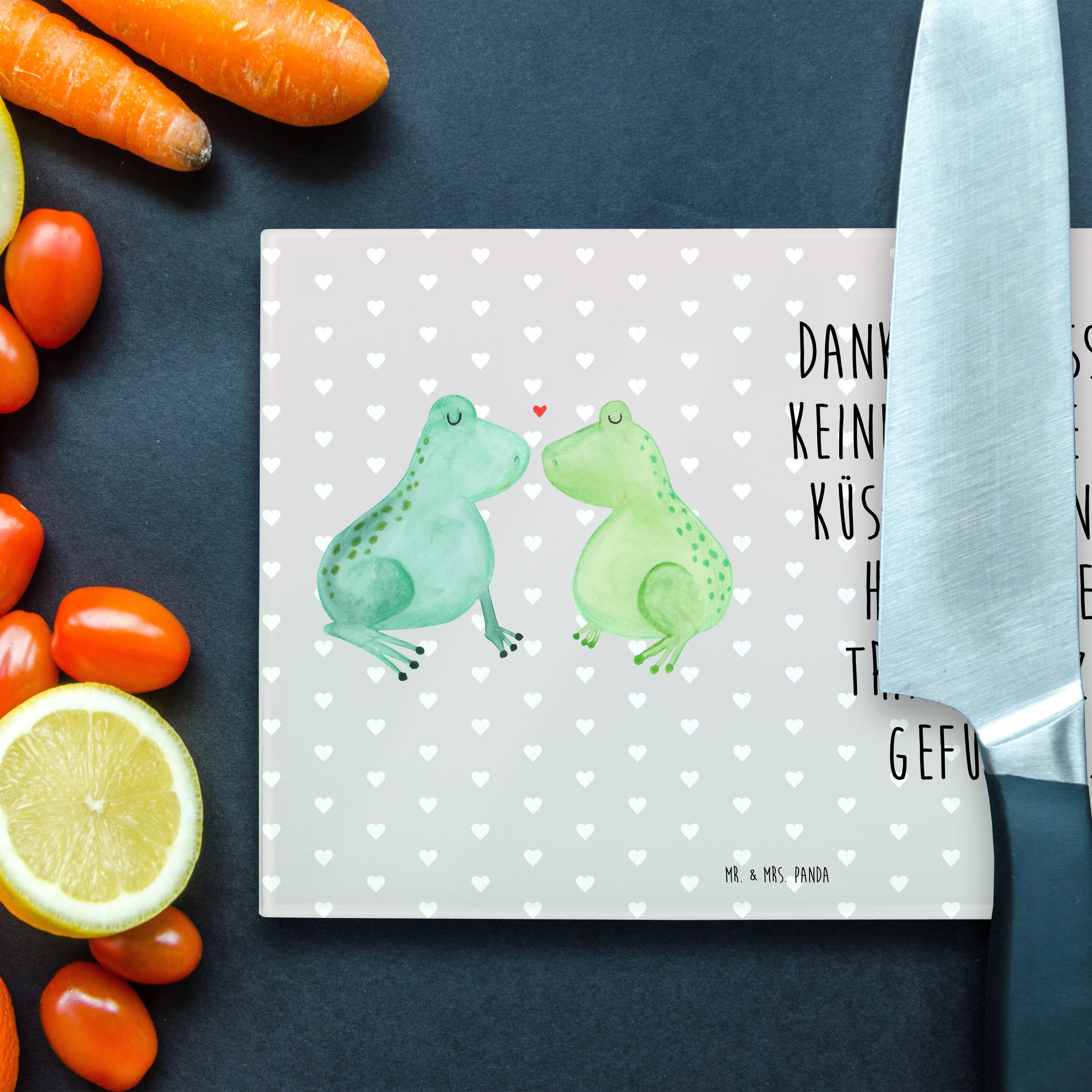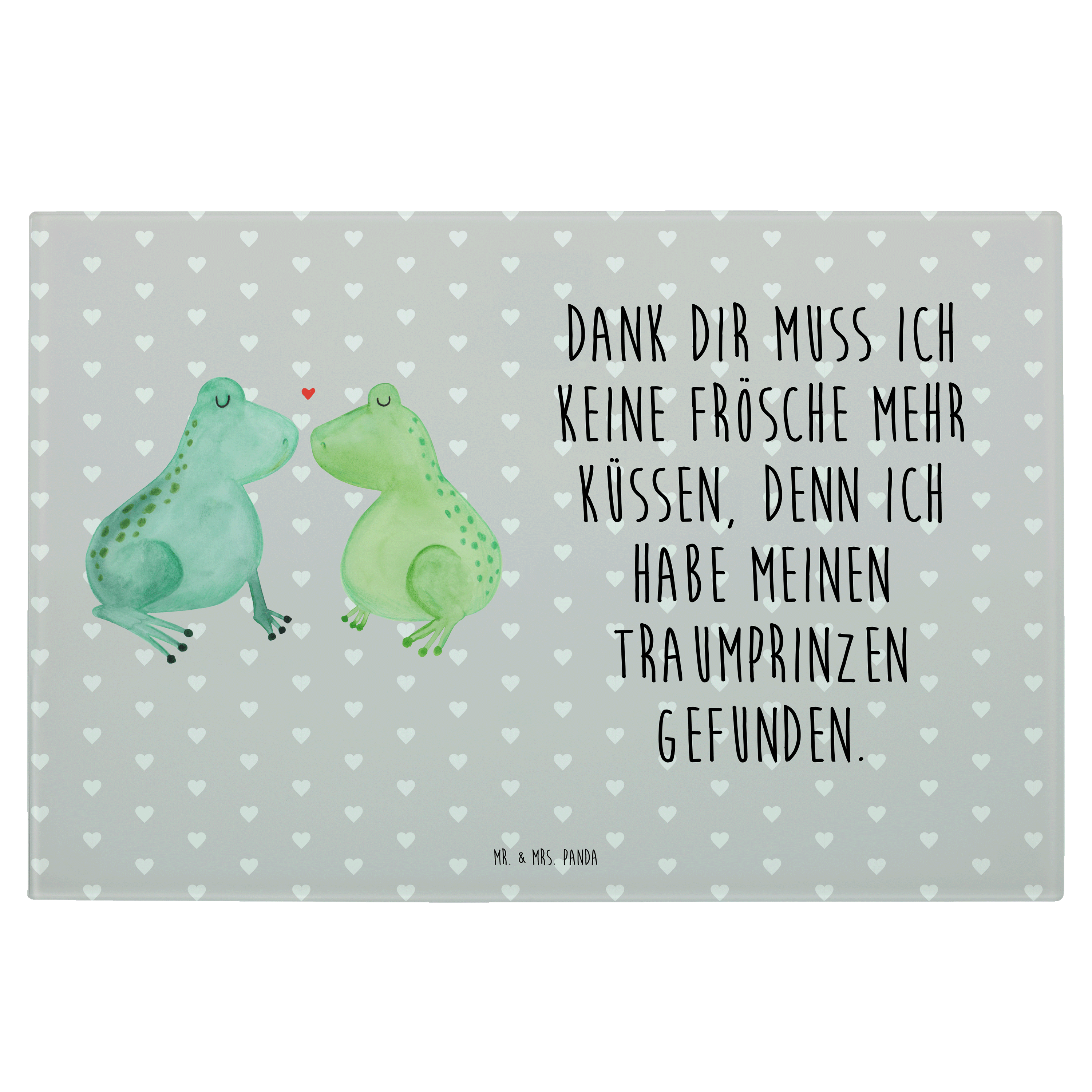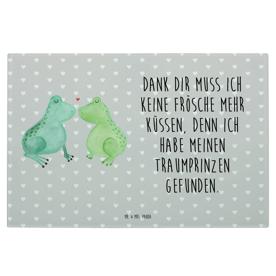Medium Glas Schneidbrett Frosch Liebe - mit Spruch - Grau Pastell