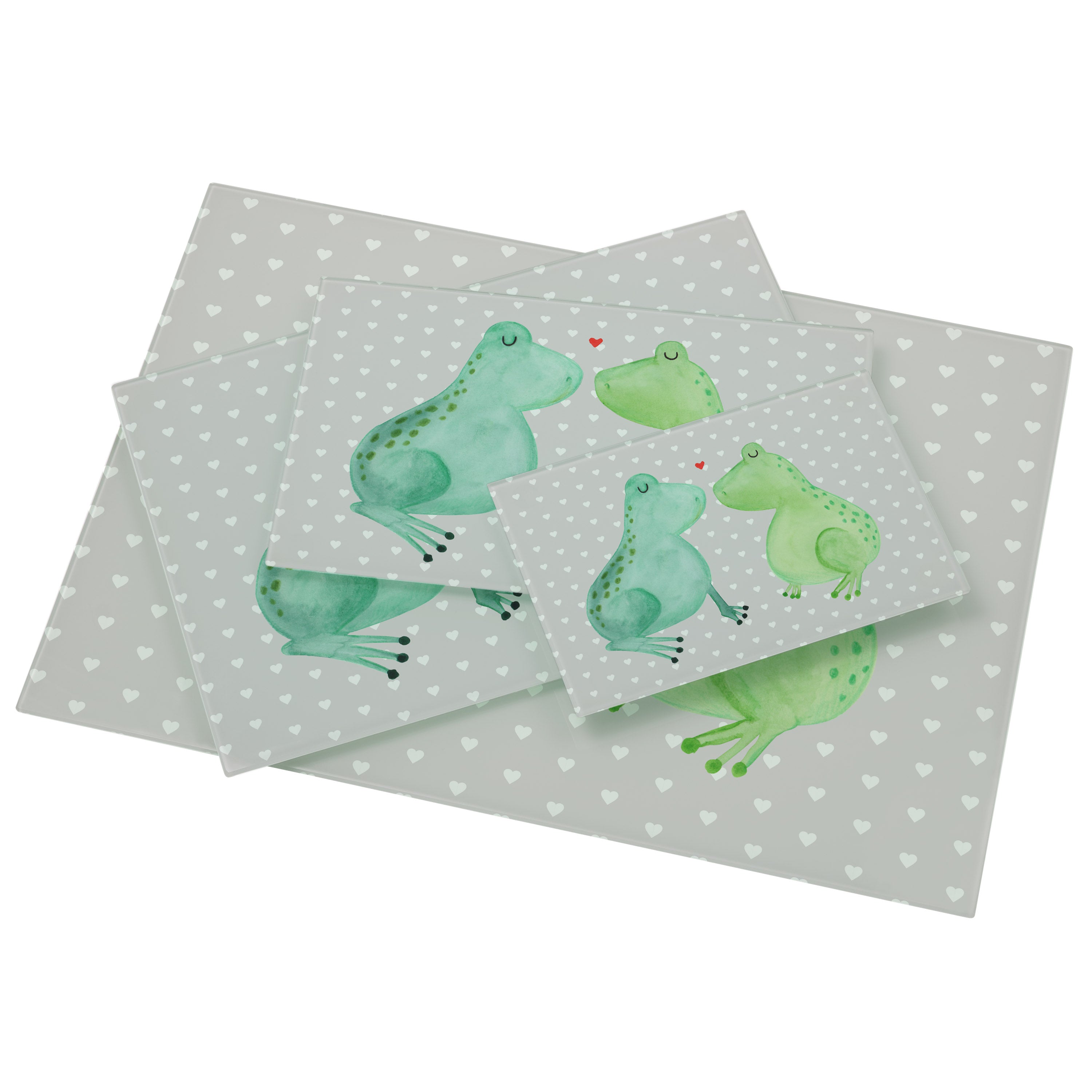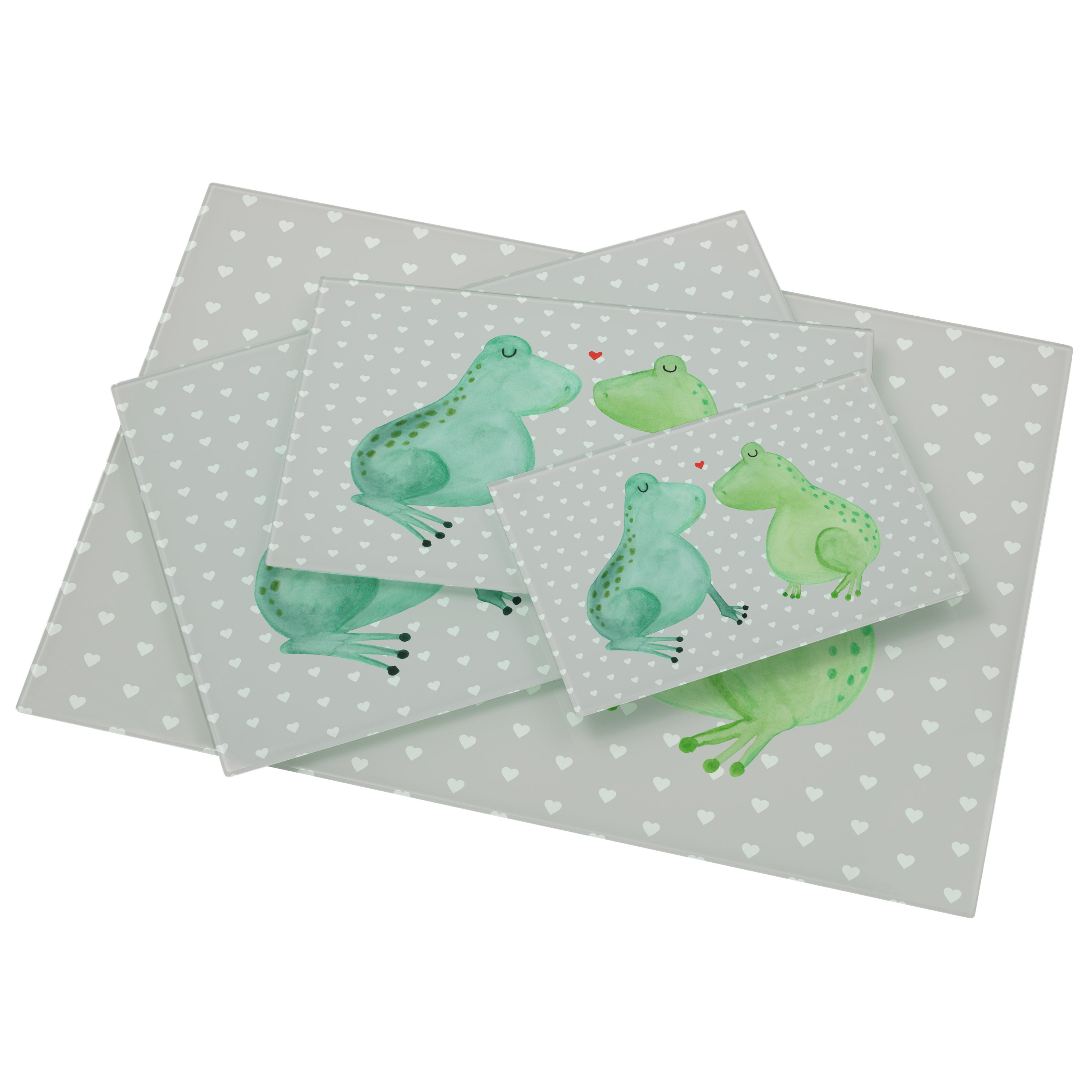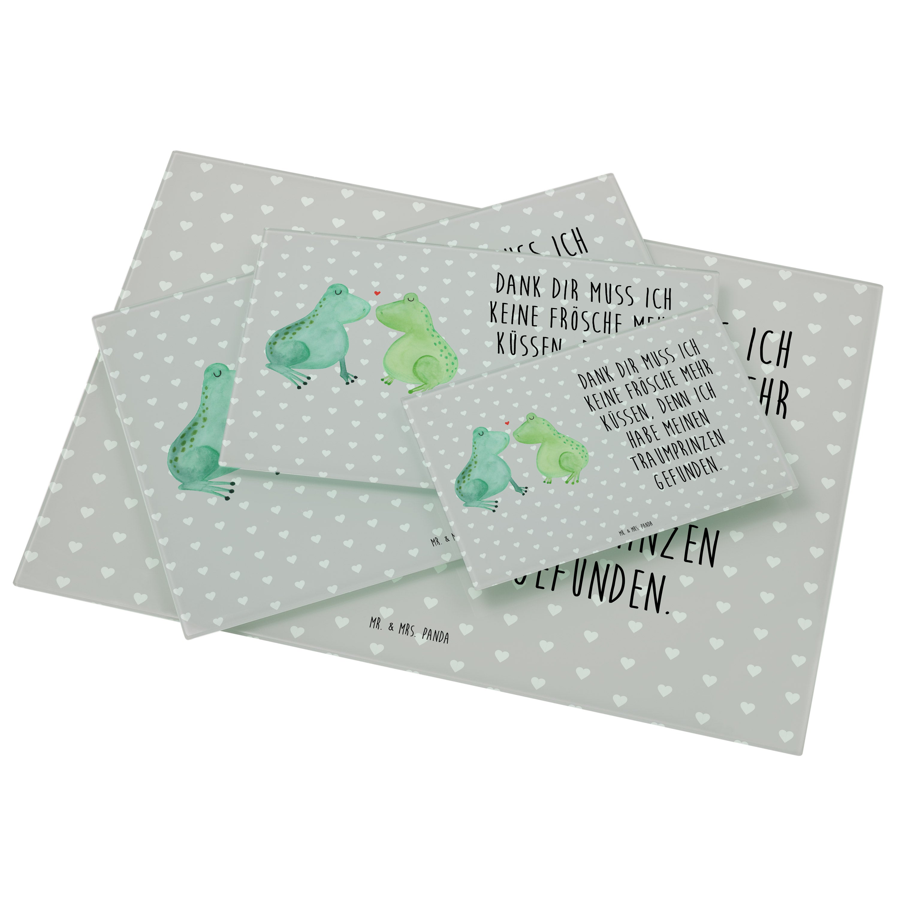 Medium Glas Schneidbrett Frosch Liebe - mit Spruch - Grau Pastell