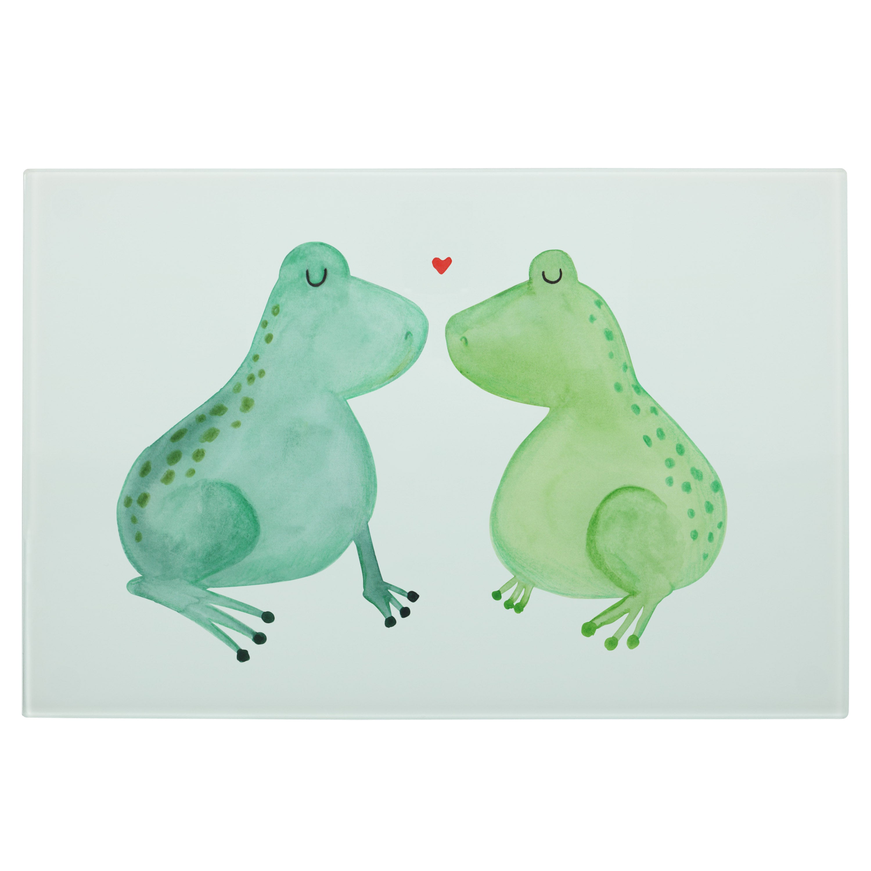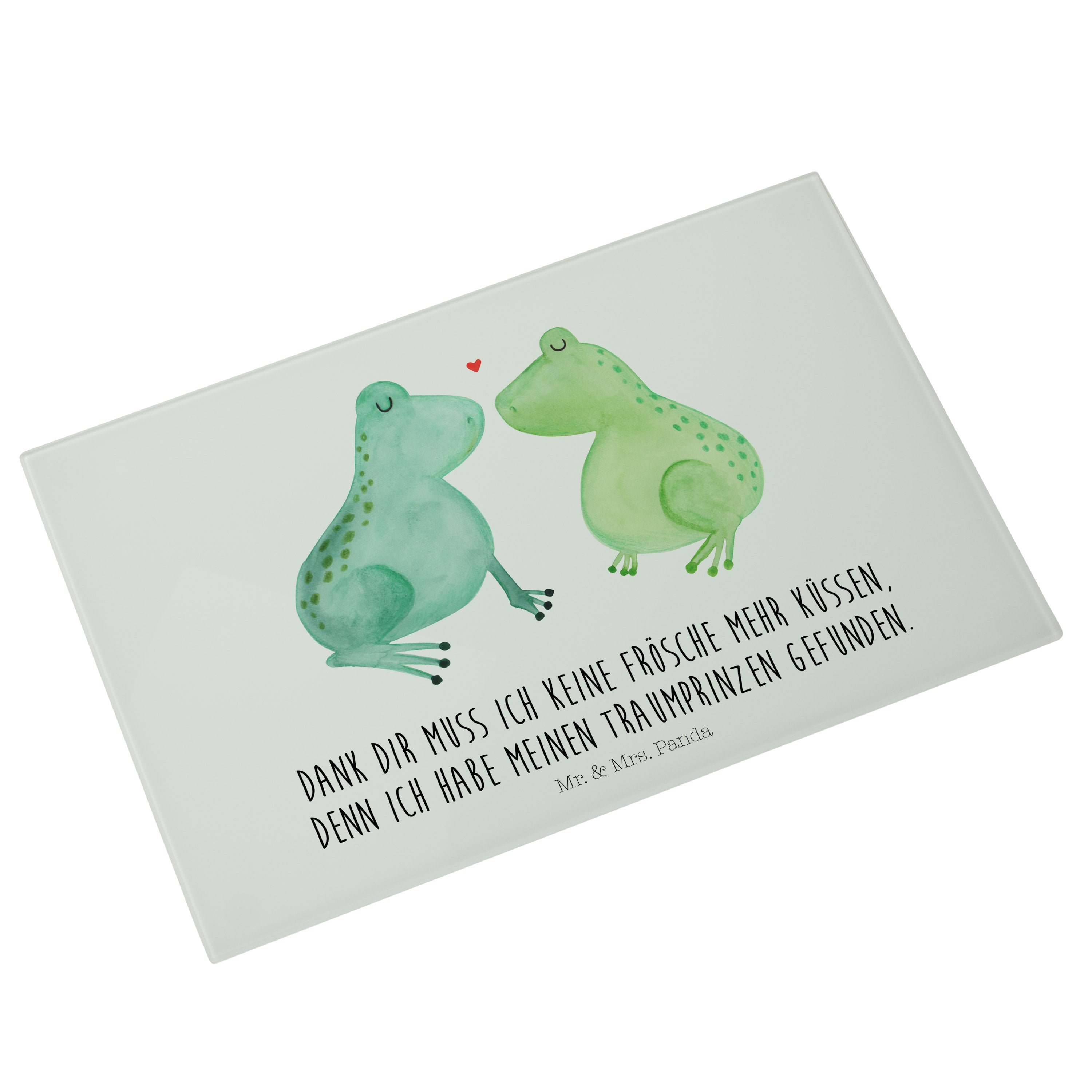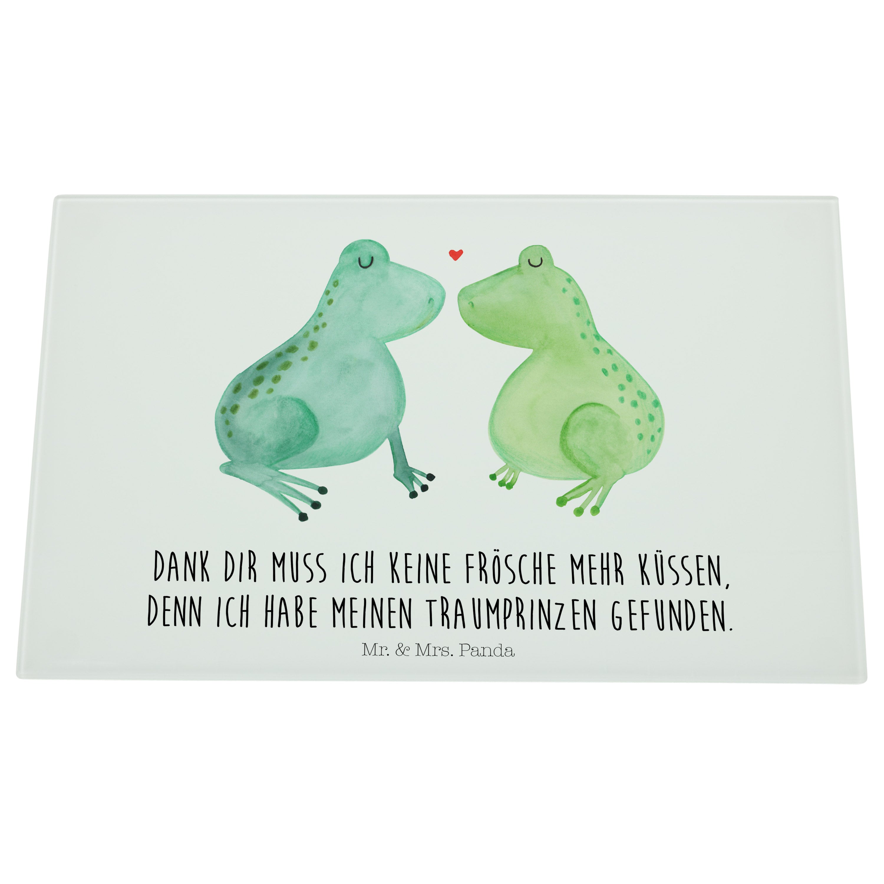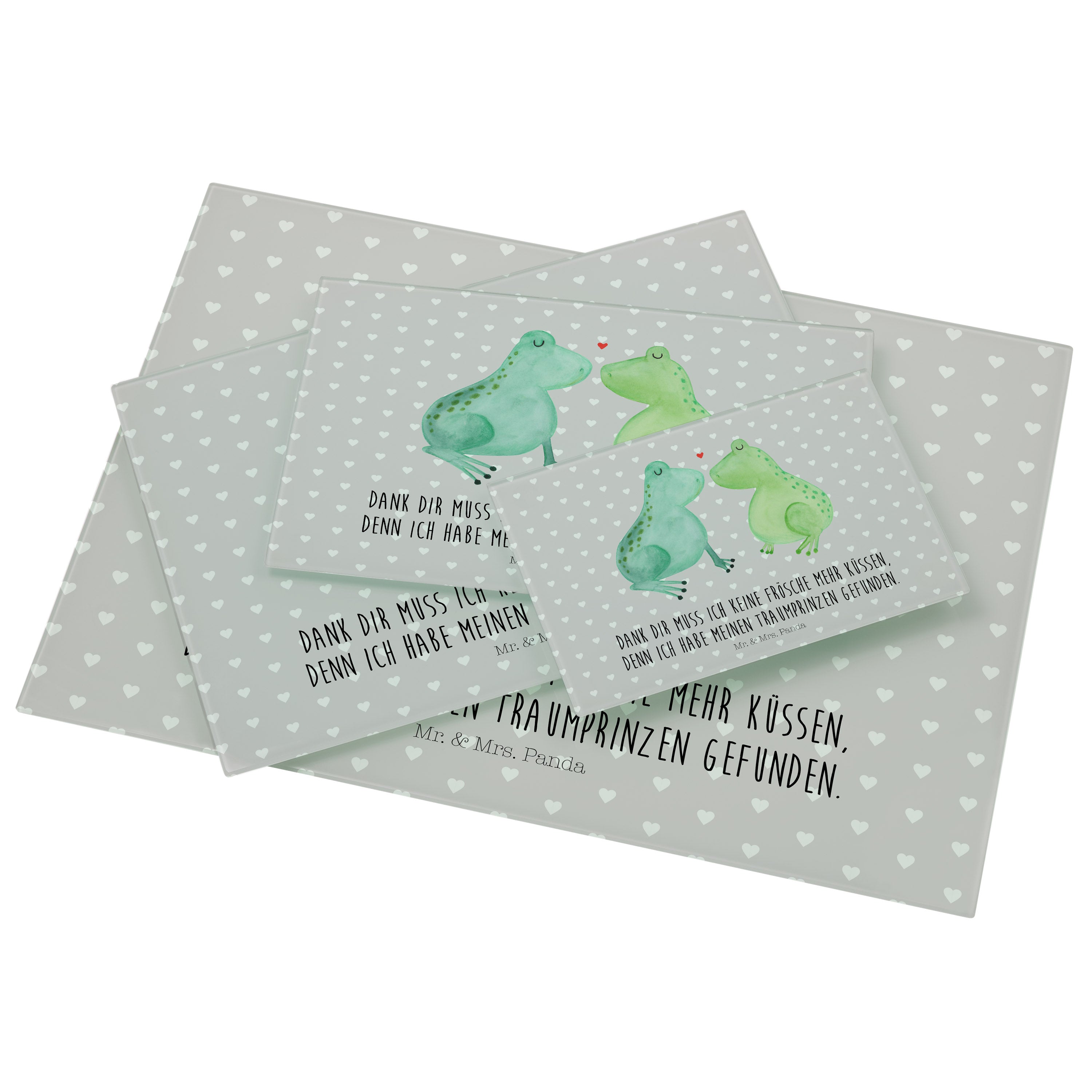 Medium Glas Schneidbrett Frosch Liebe - mit Spruch - Grau Pastell