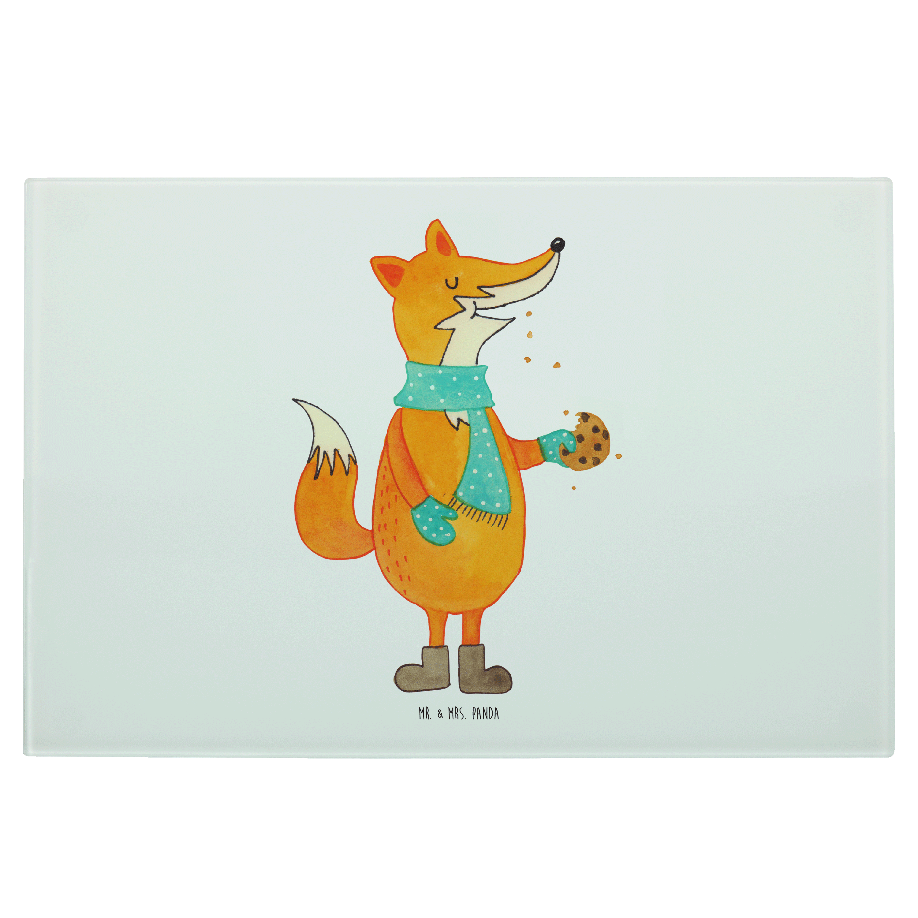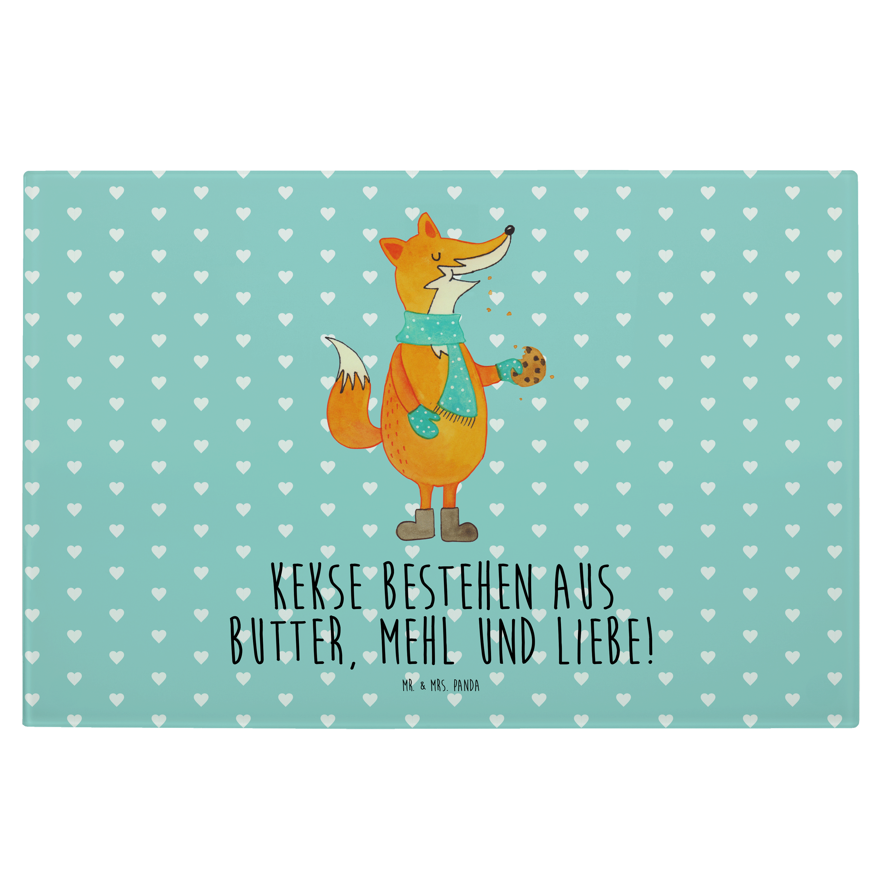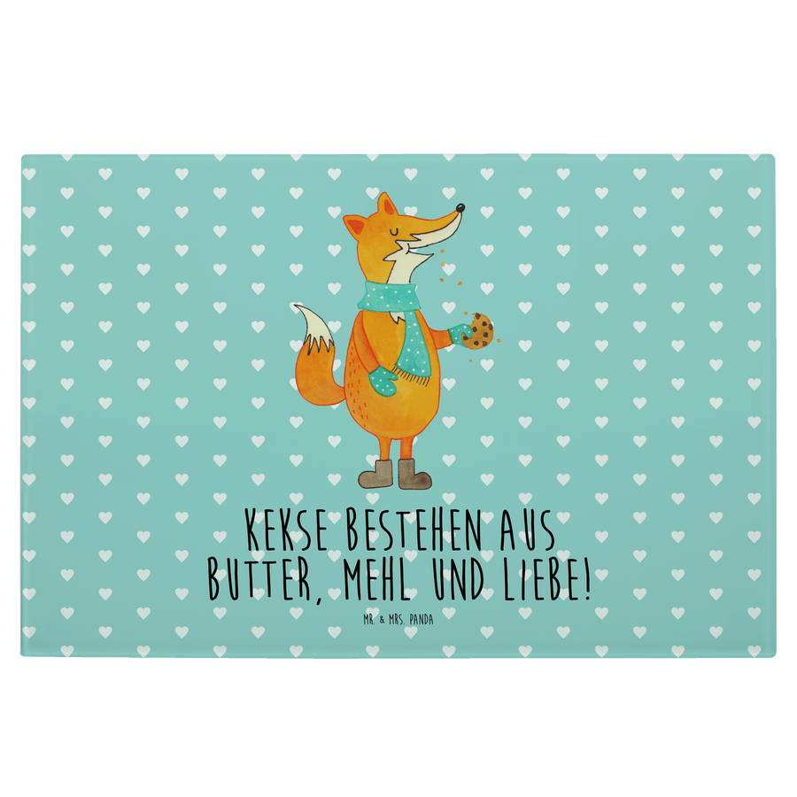 Medium Glas Schneidbrett Fuchs Keks - mit Spruch - Türkis Pastell