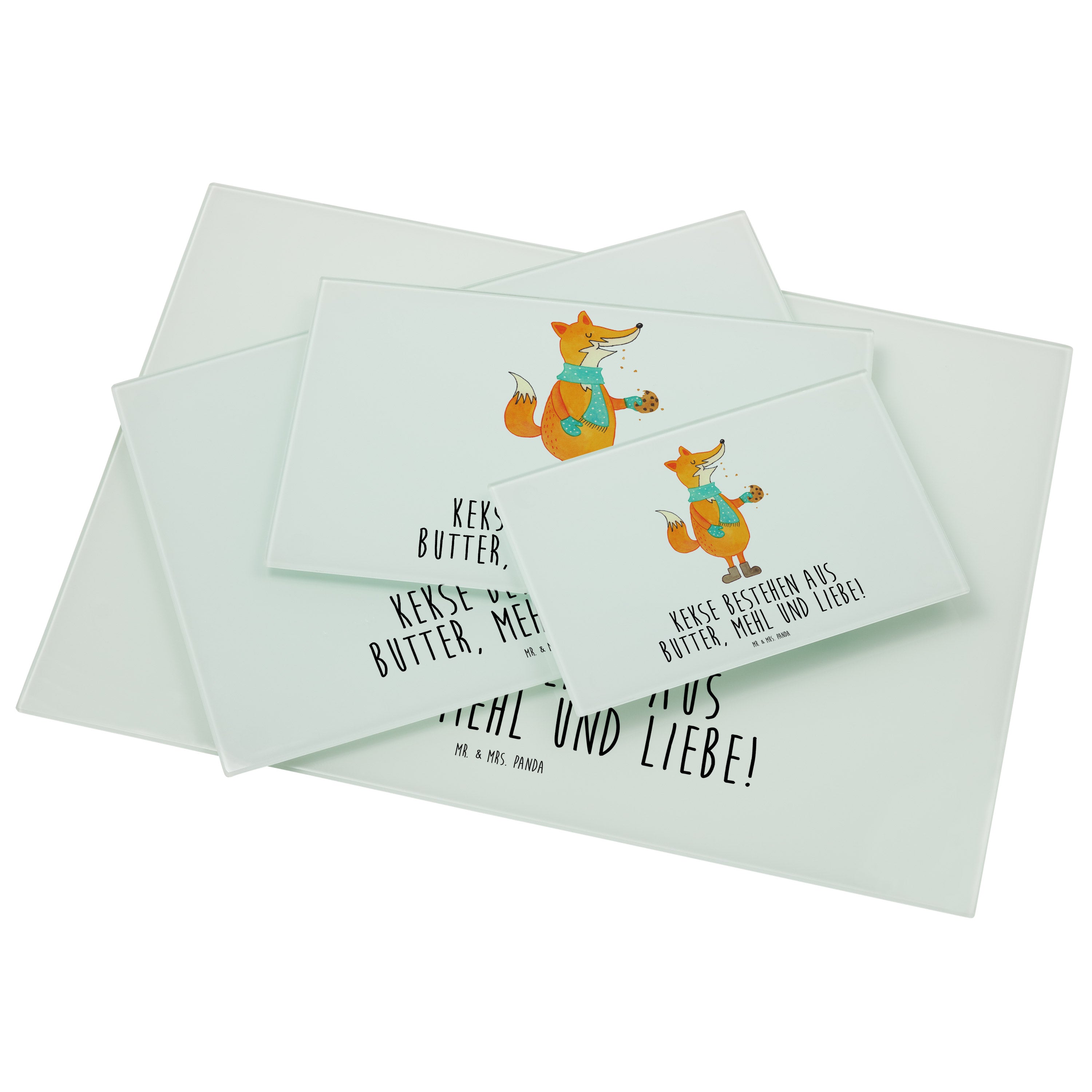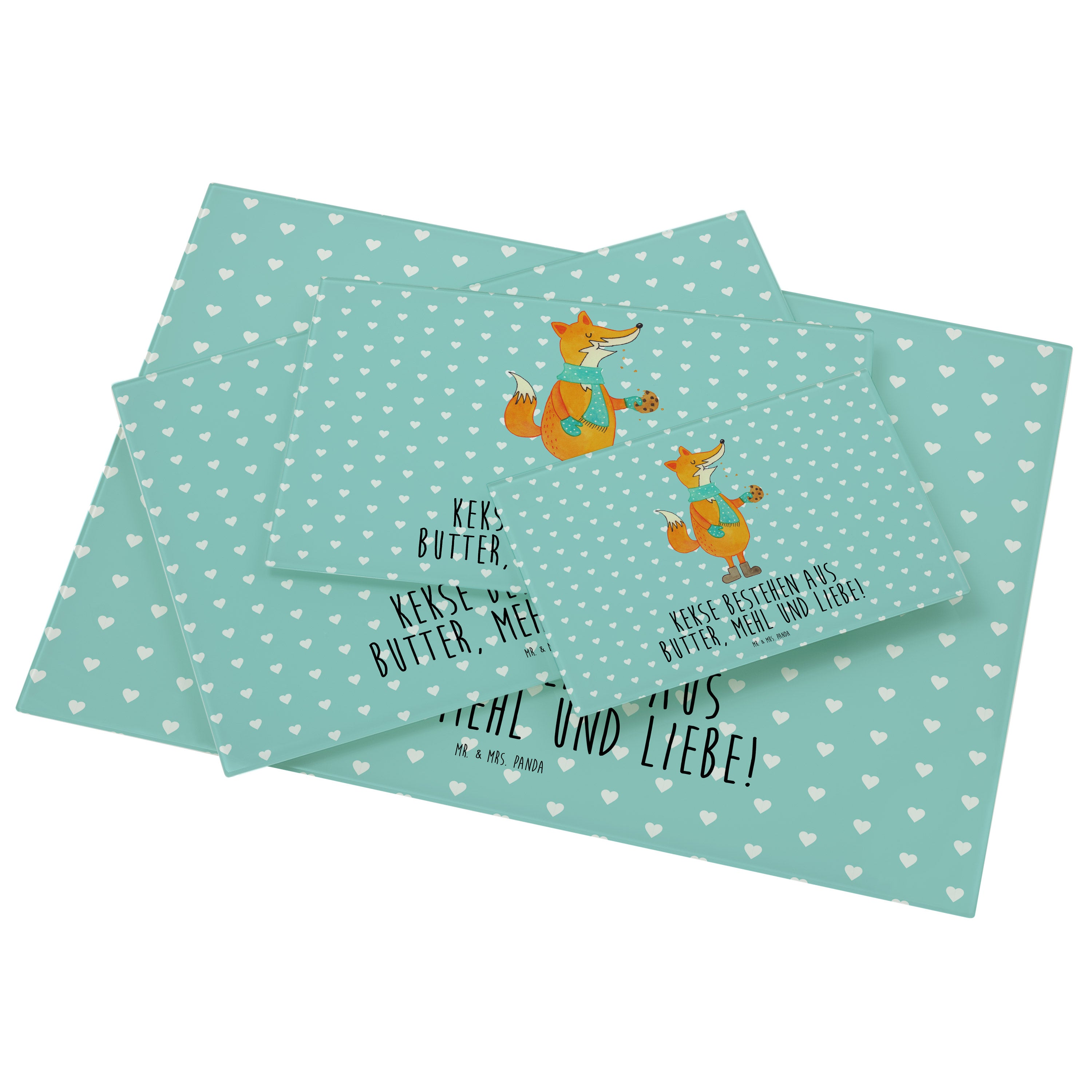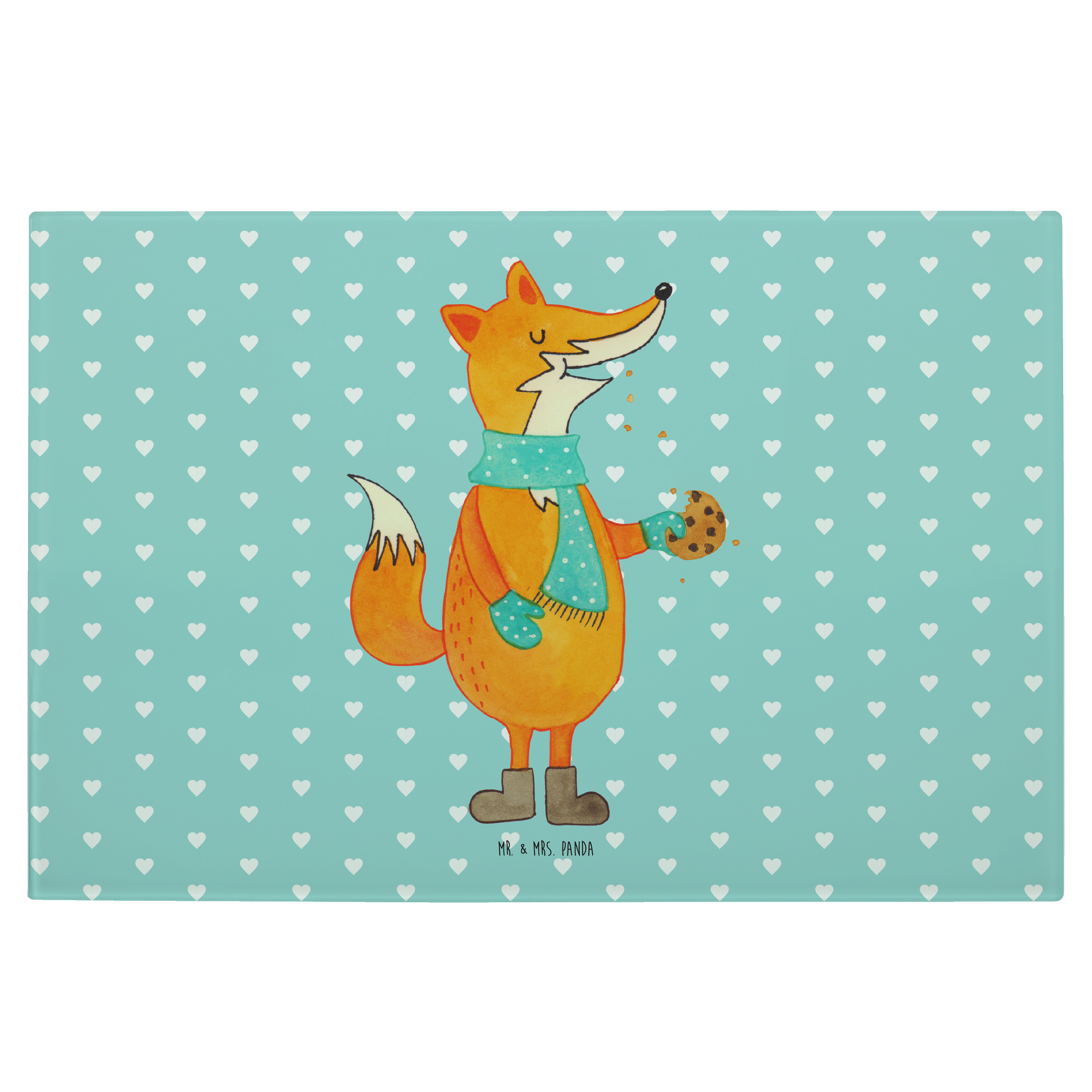 Medium Glas Schneidbrett Fuchs Keks - mit Spruch - Türkis Pastell