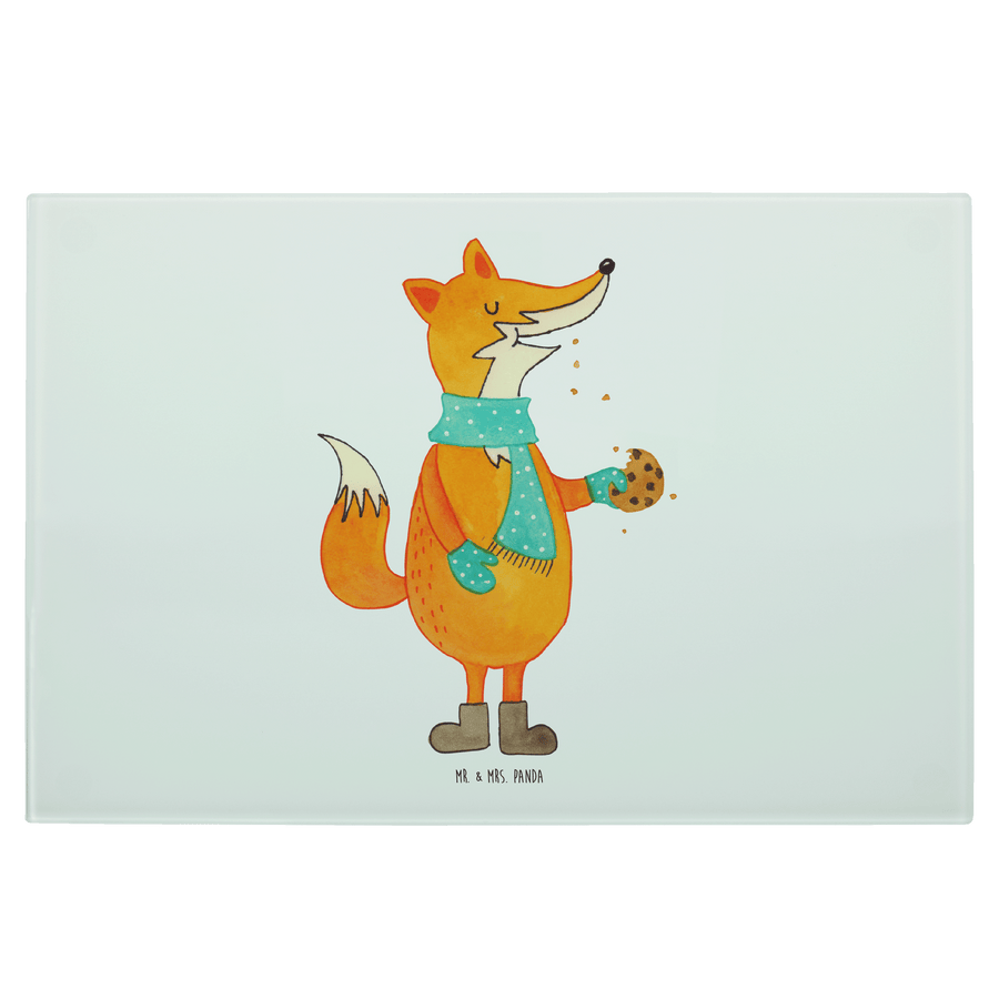 Medium Glas Schneidbrett Fuchs Keks - ohne Spruch - Weiß