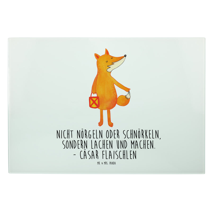XL Glas Schneidbrett Fuchs Laterne - mit Spruch - Weiß