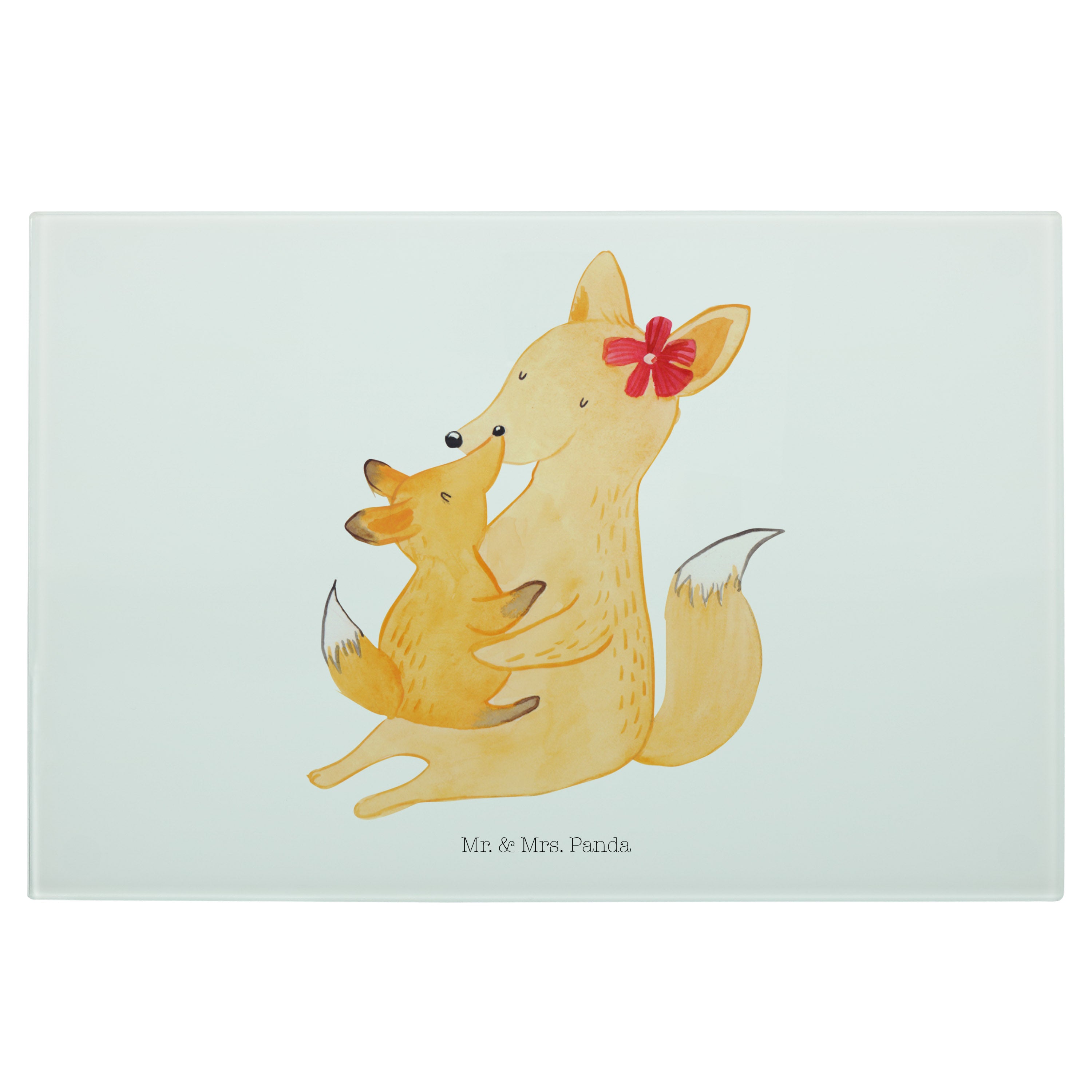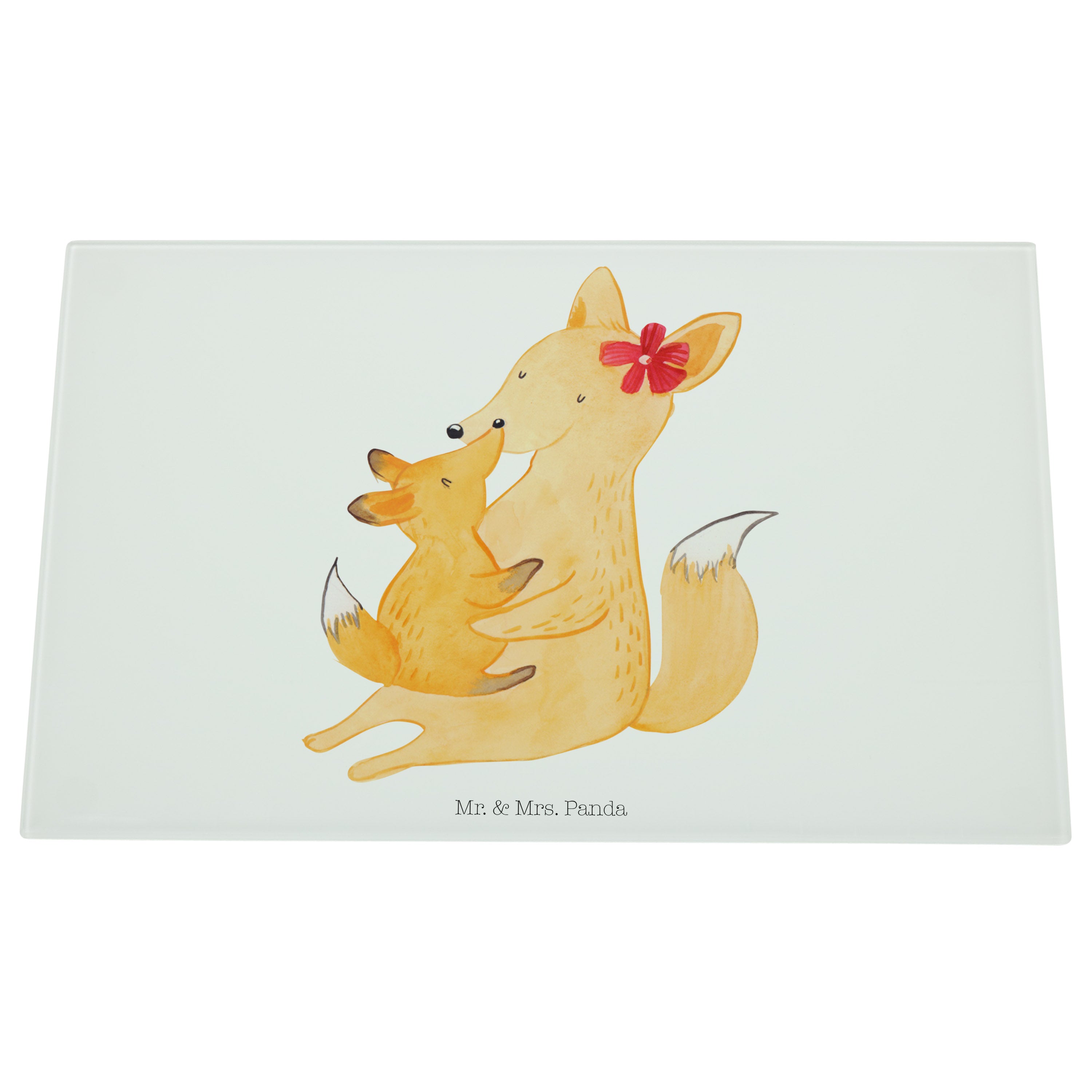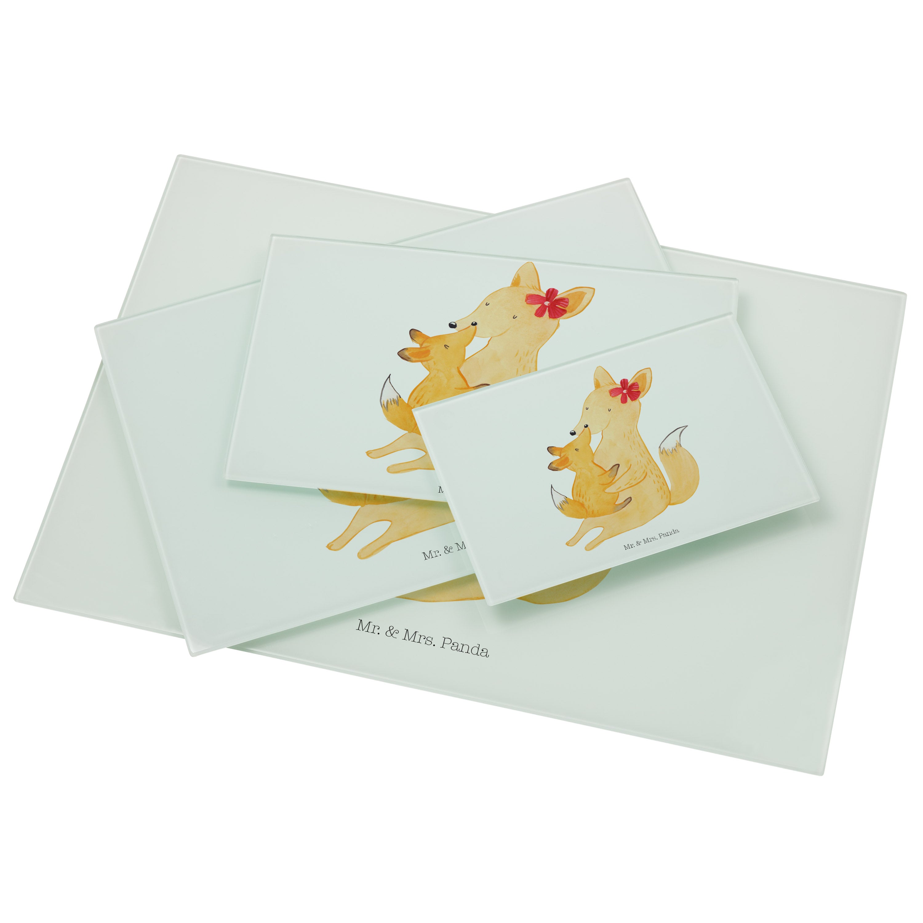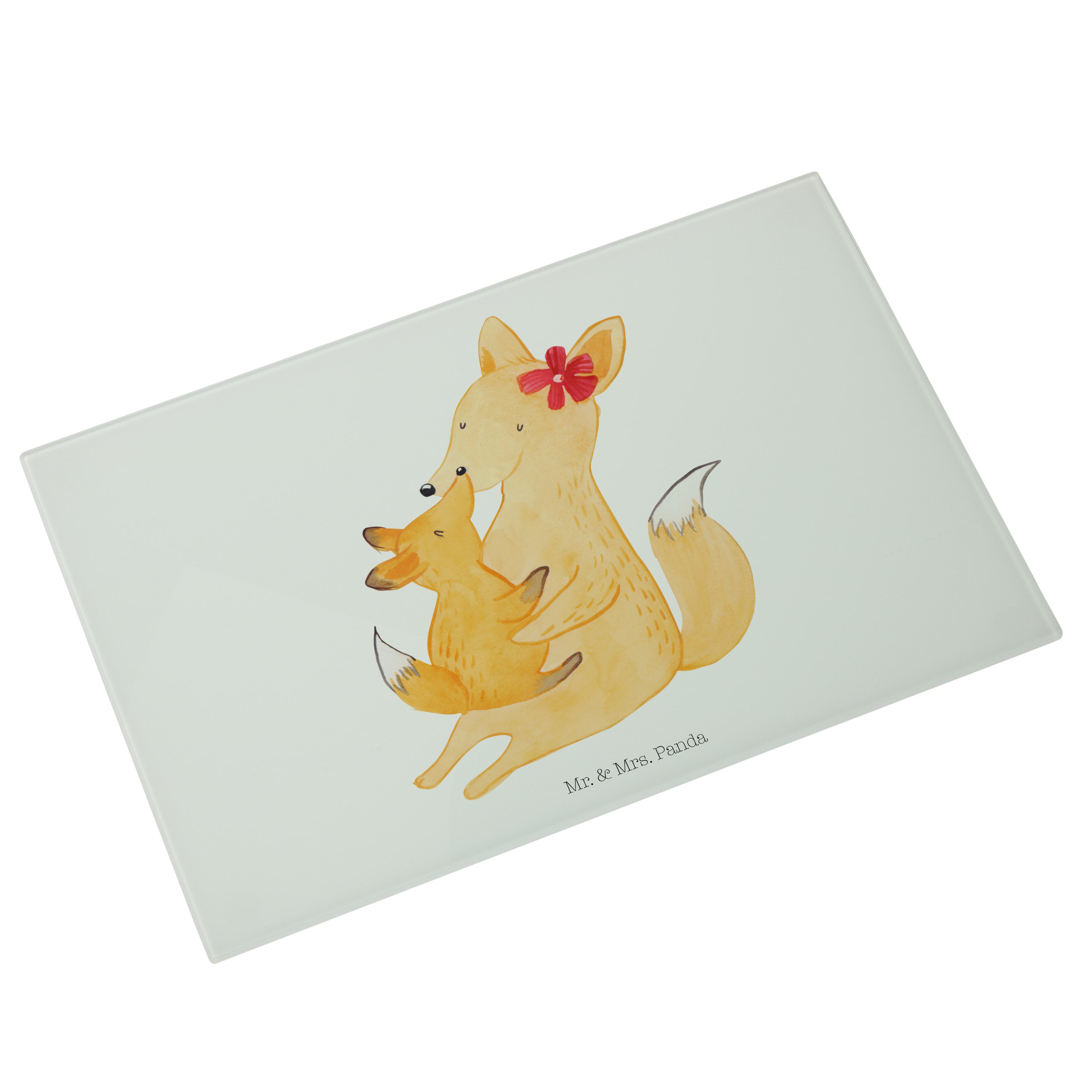 Medium Glas Schneidbrett Fuchs Mama & Kind - mit Spruch - Weiß