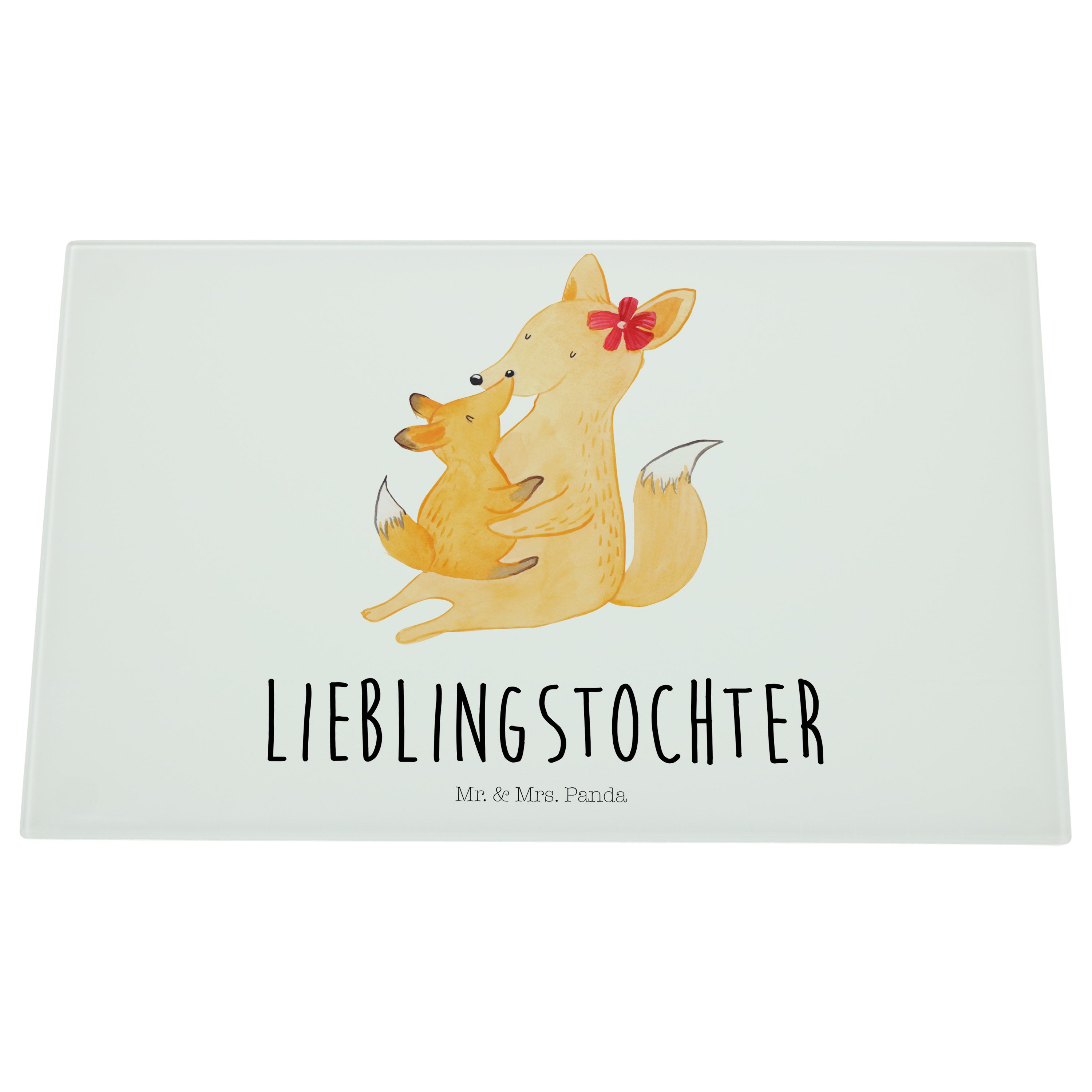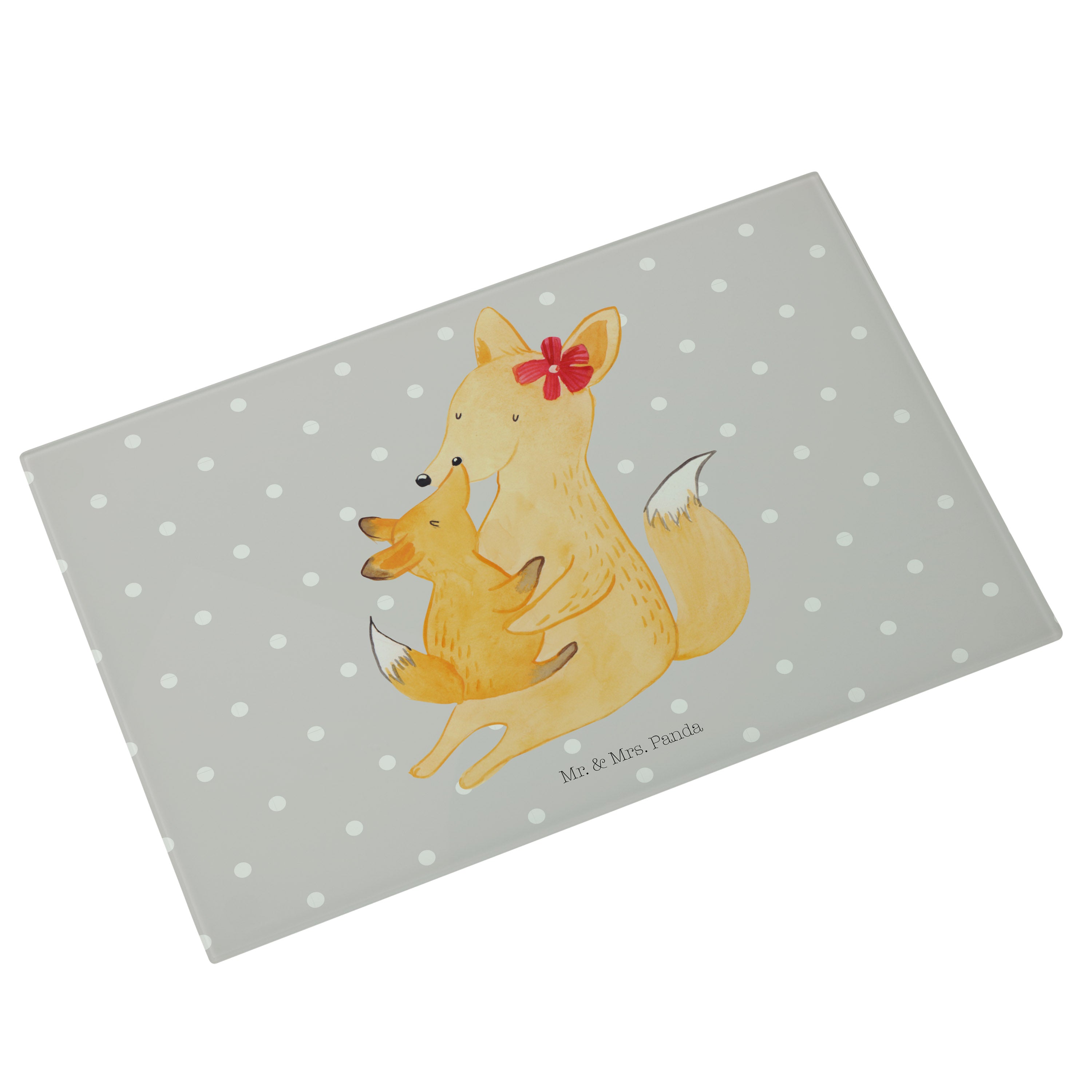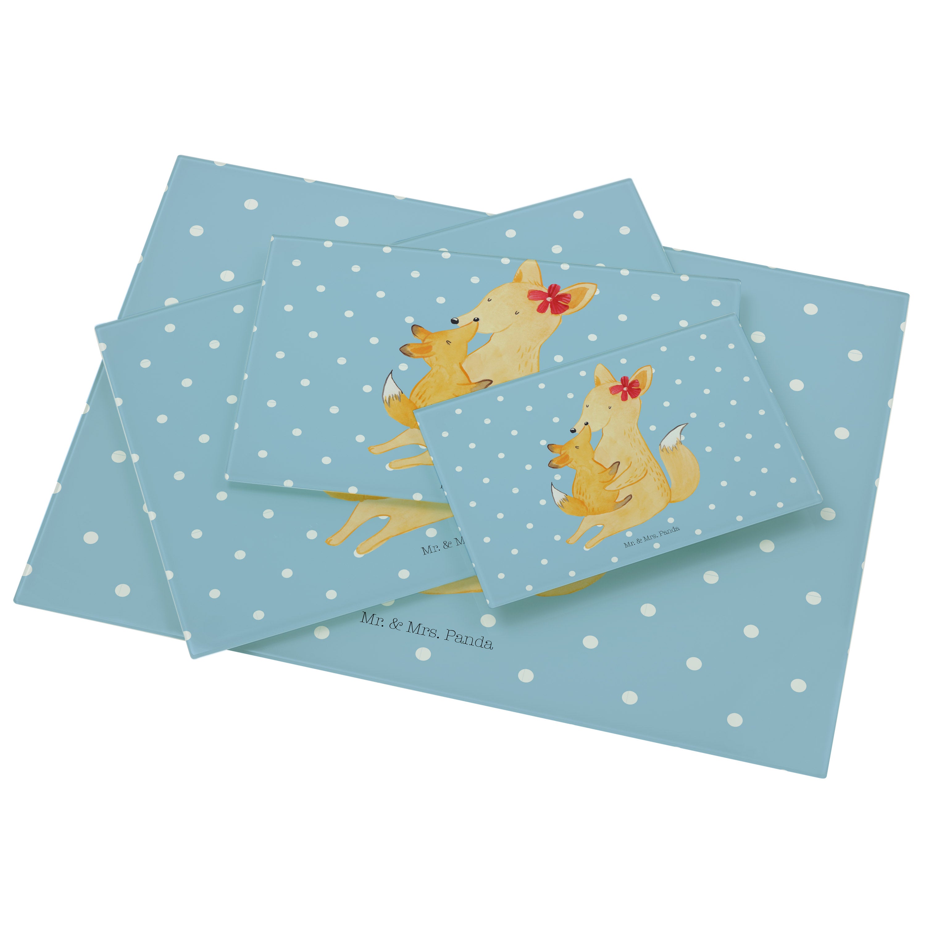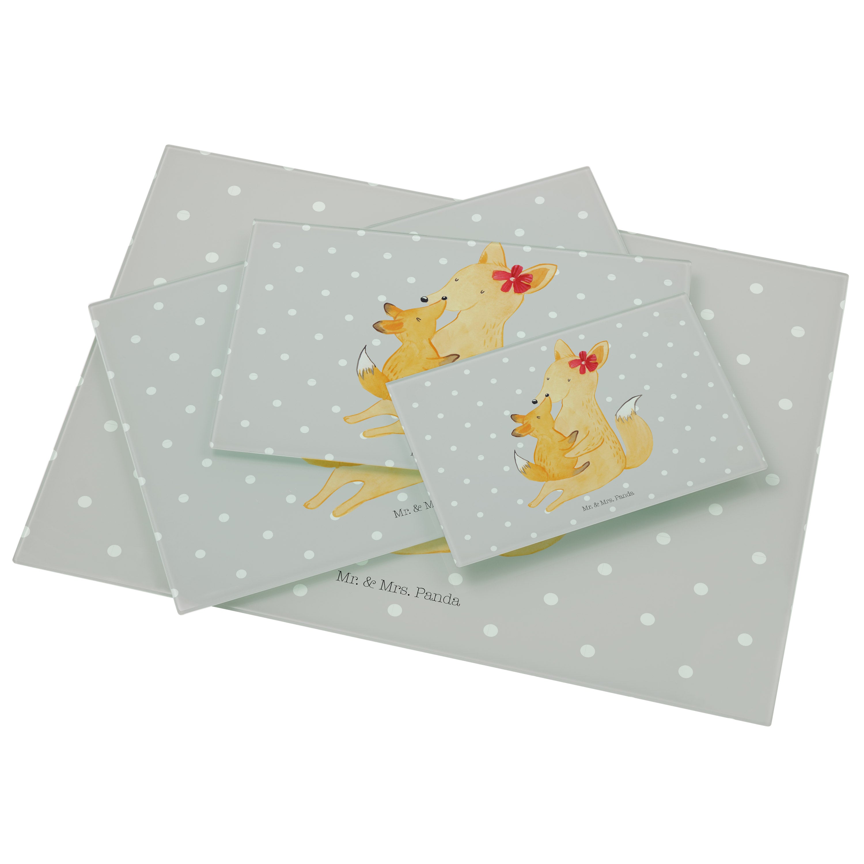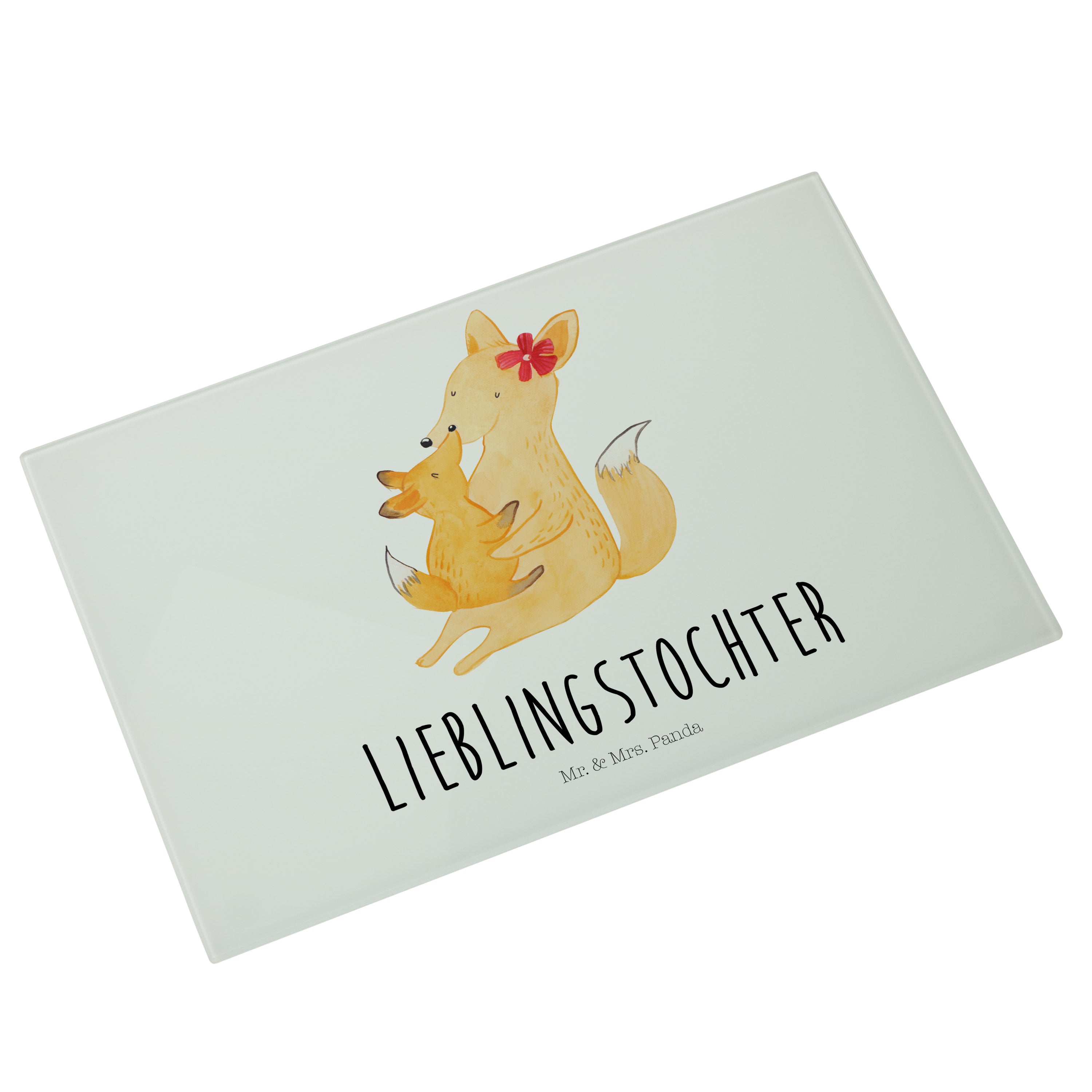 Medium Glas Schneidbrett Fuchs Mama & Kind - mit Spruch - Weiß