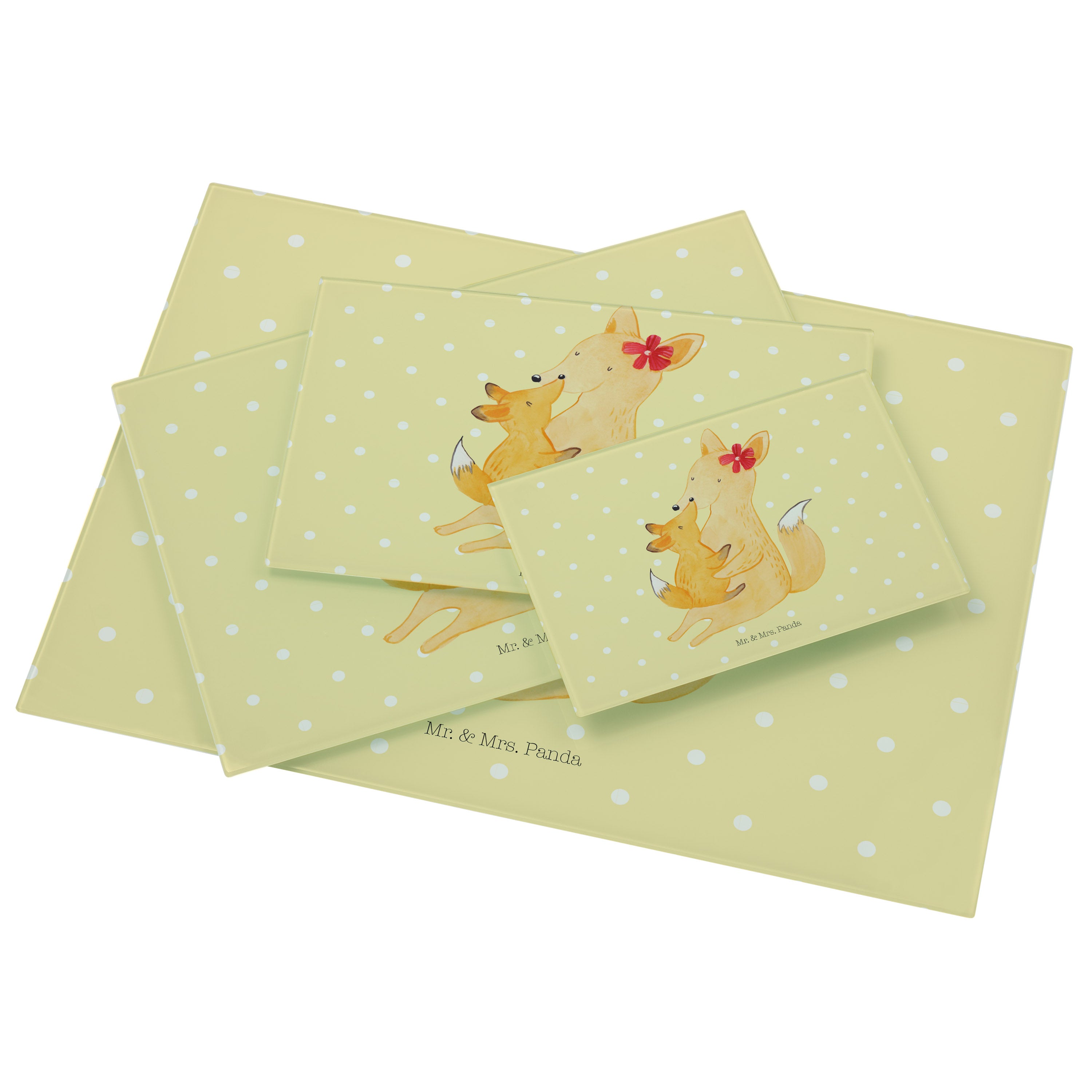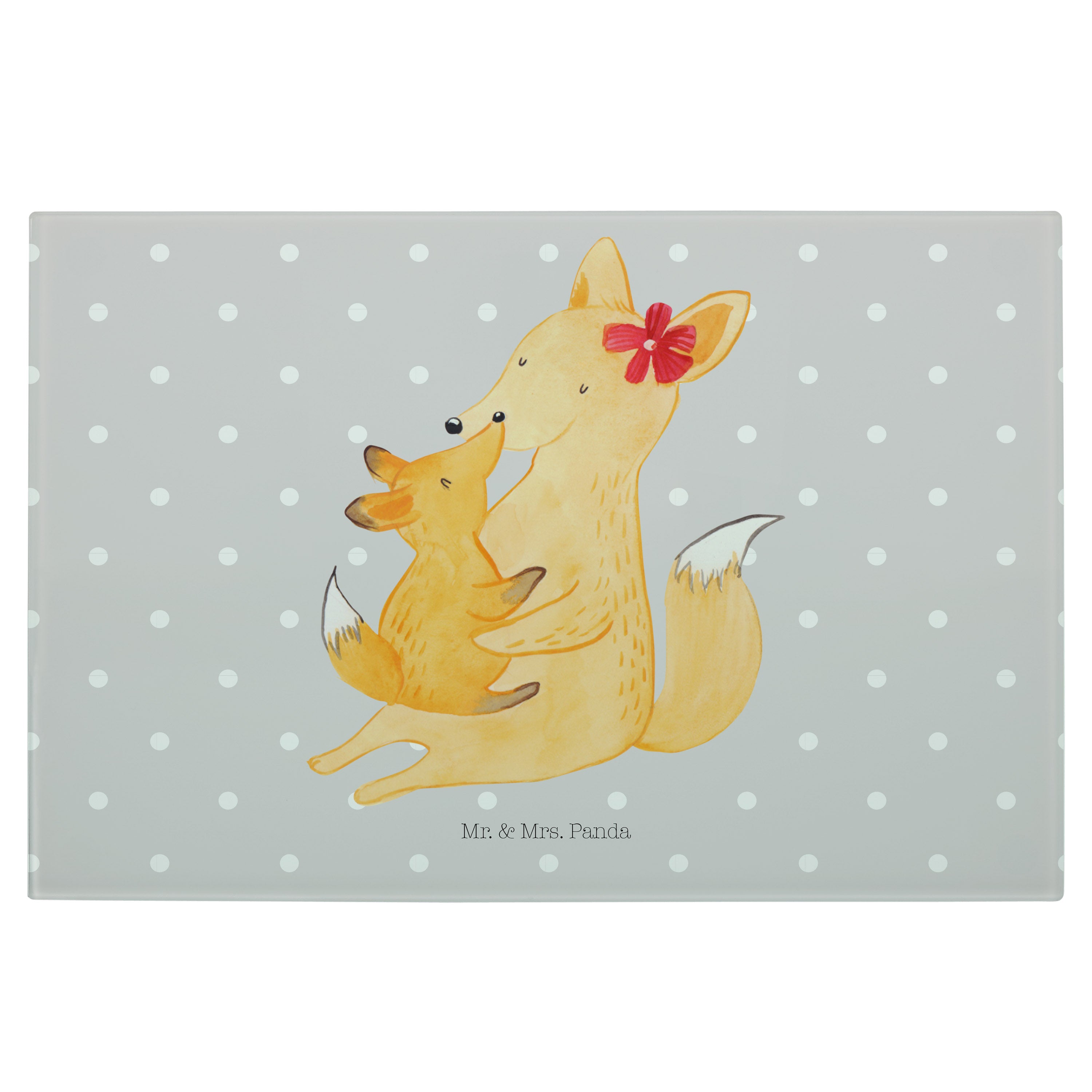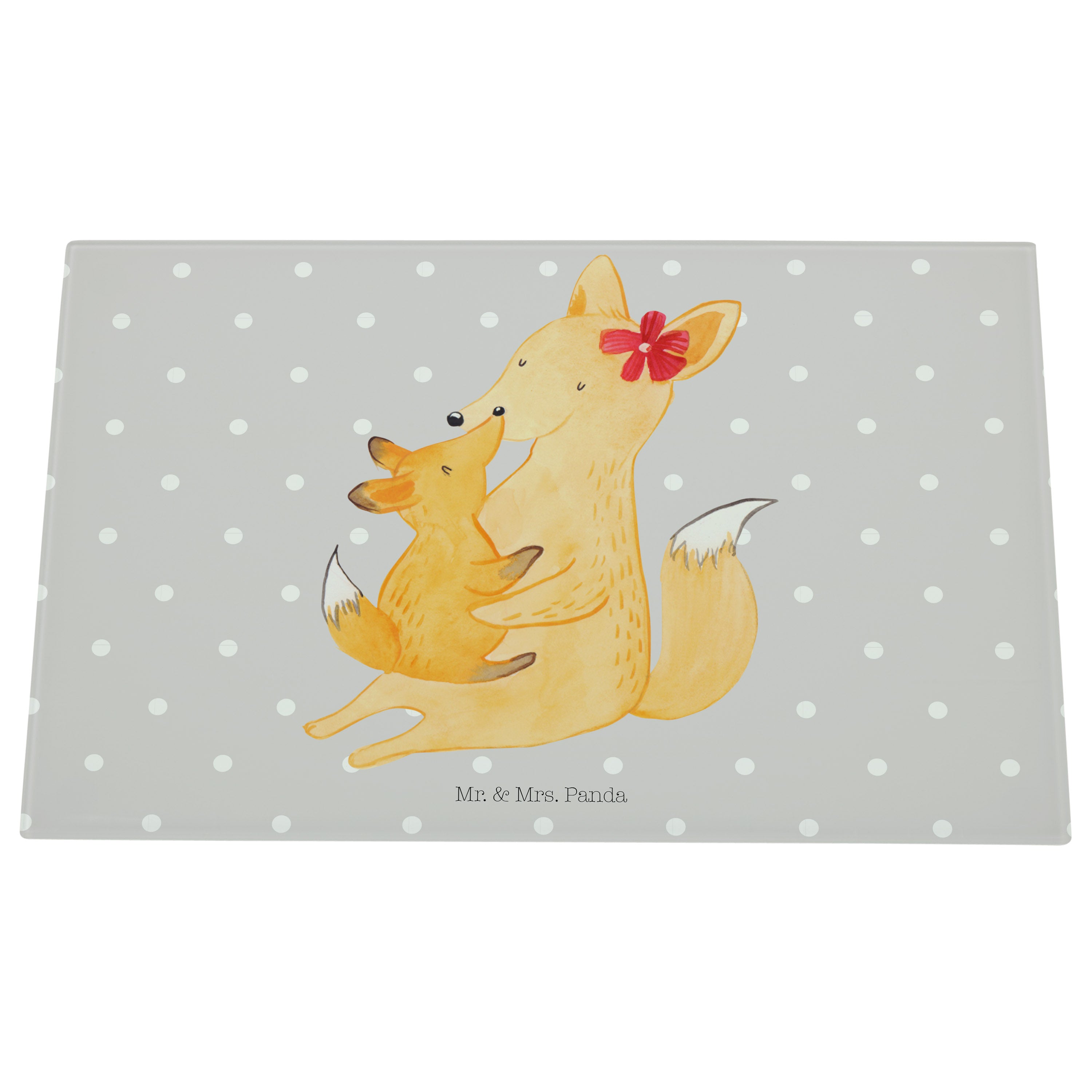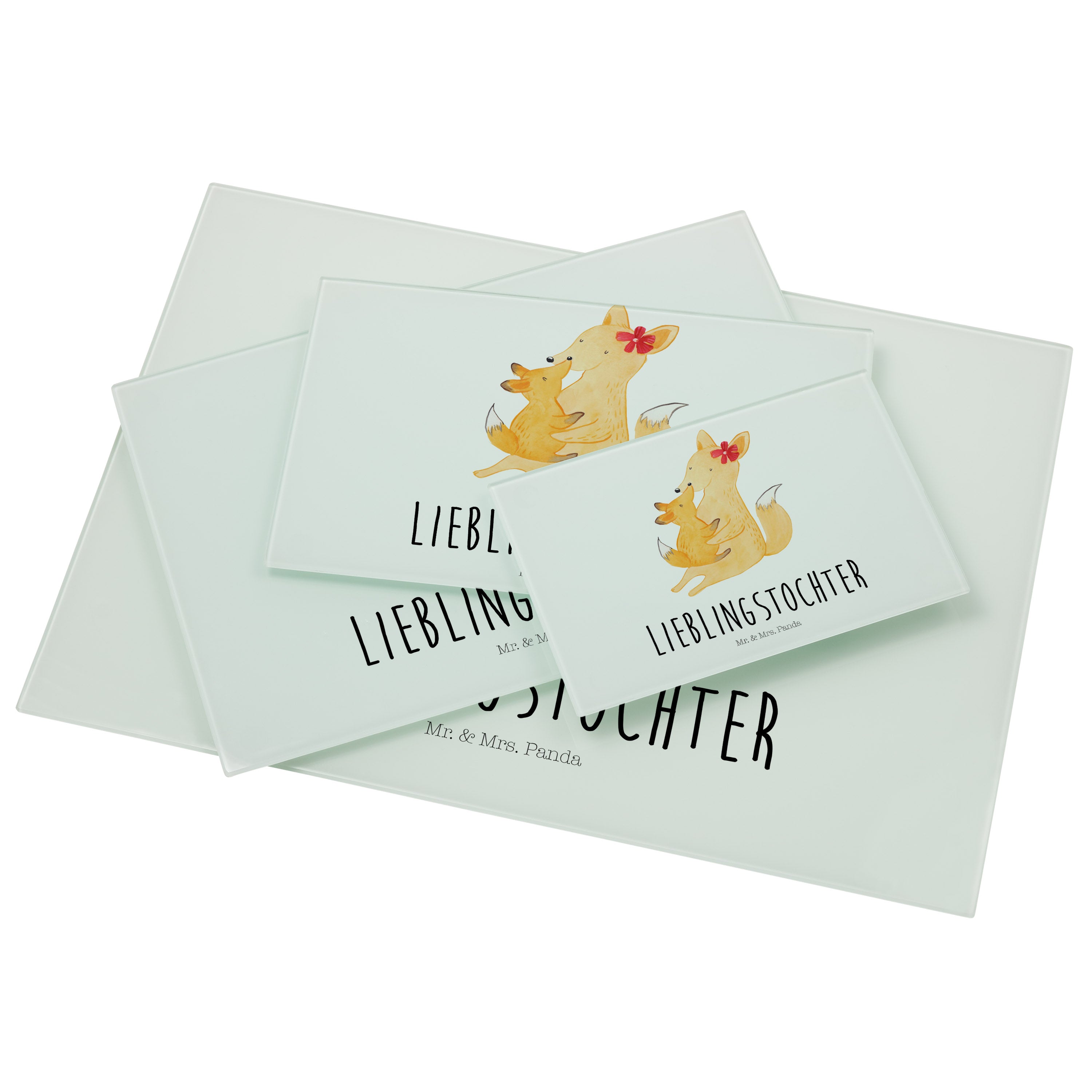 Medium Glas Schneidbrett Fuchs Mama & Kind - mit Spruch - Weiß