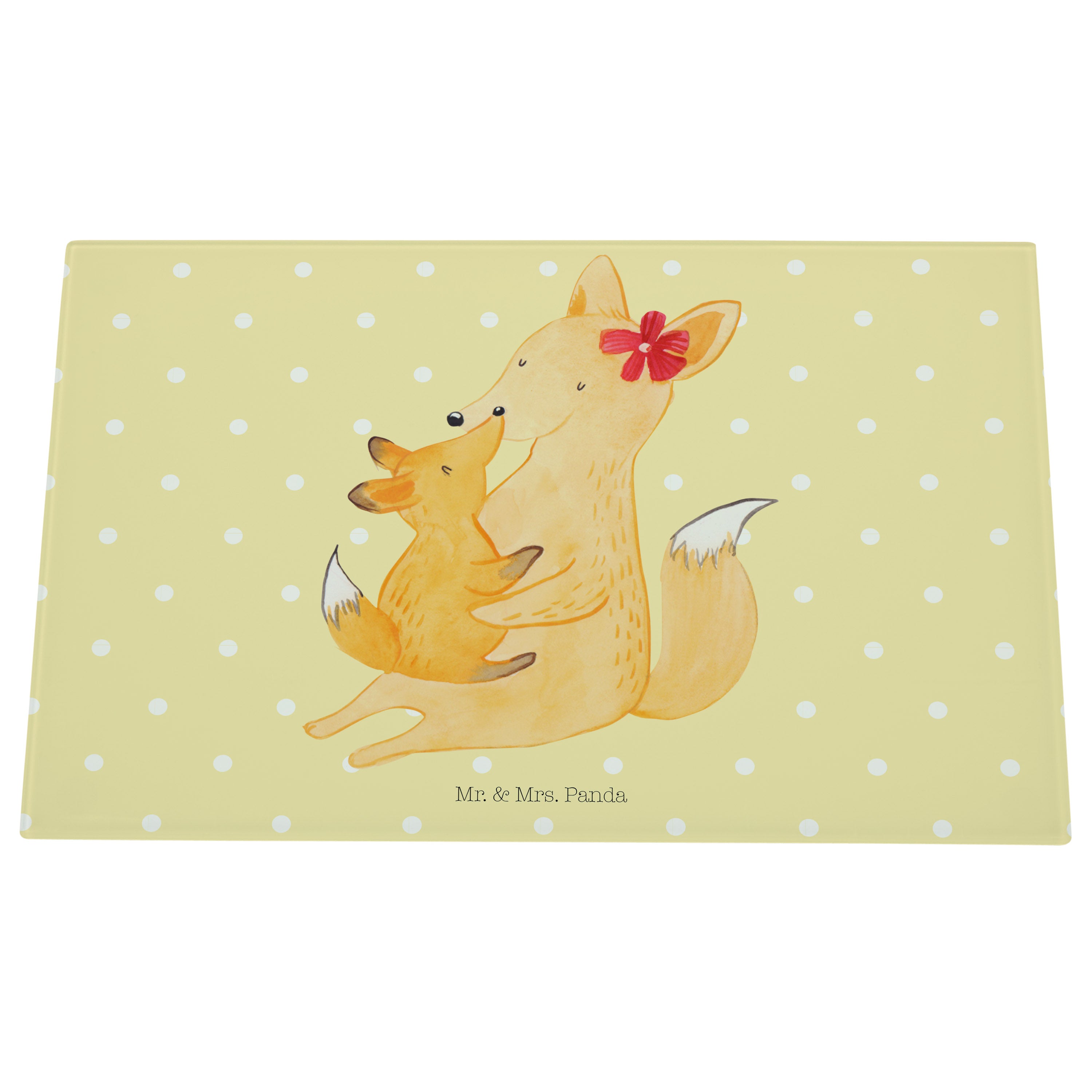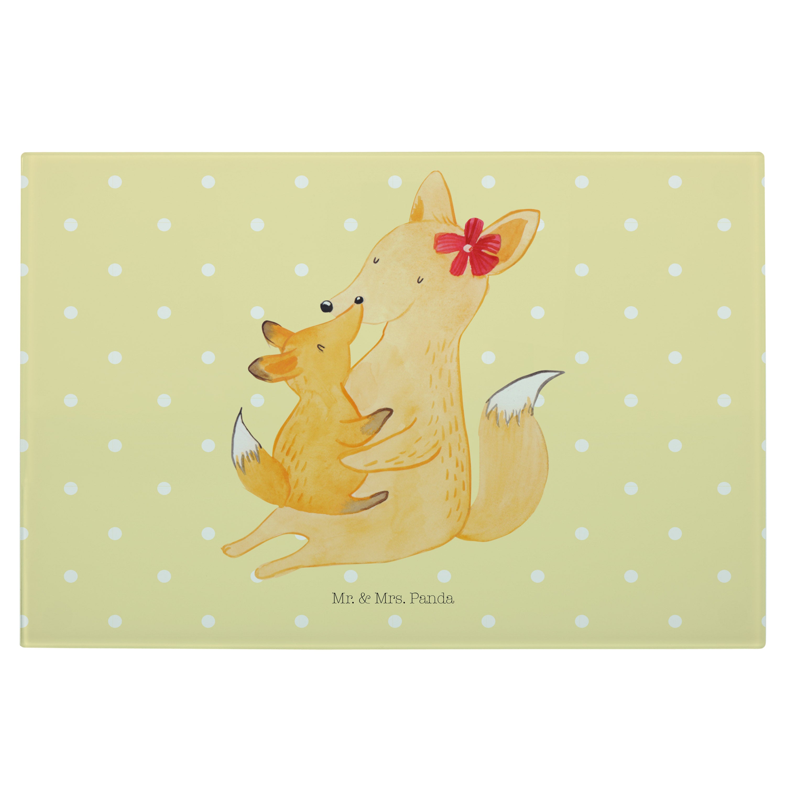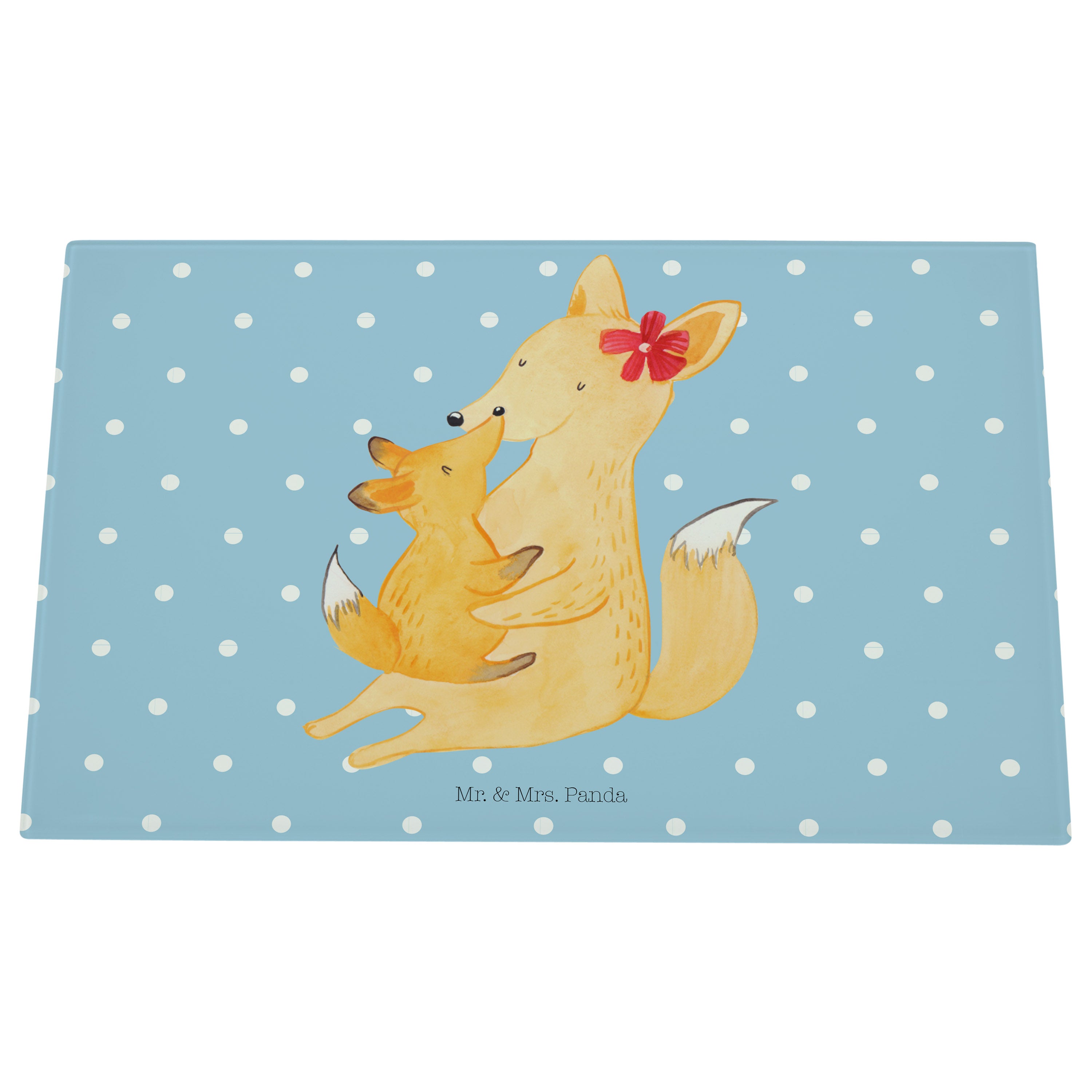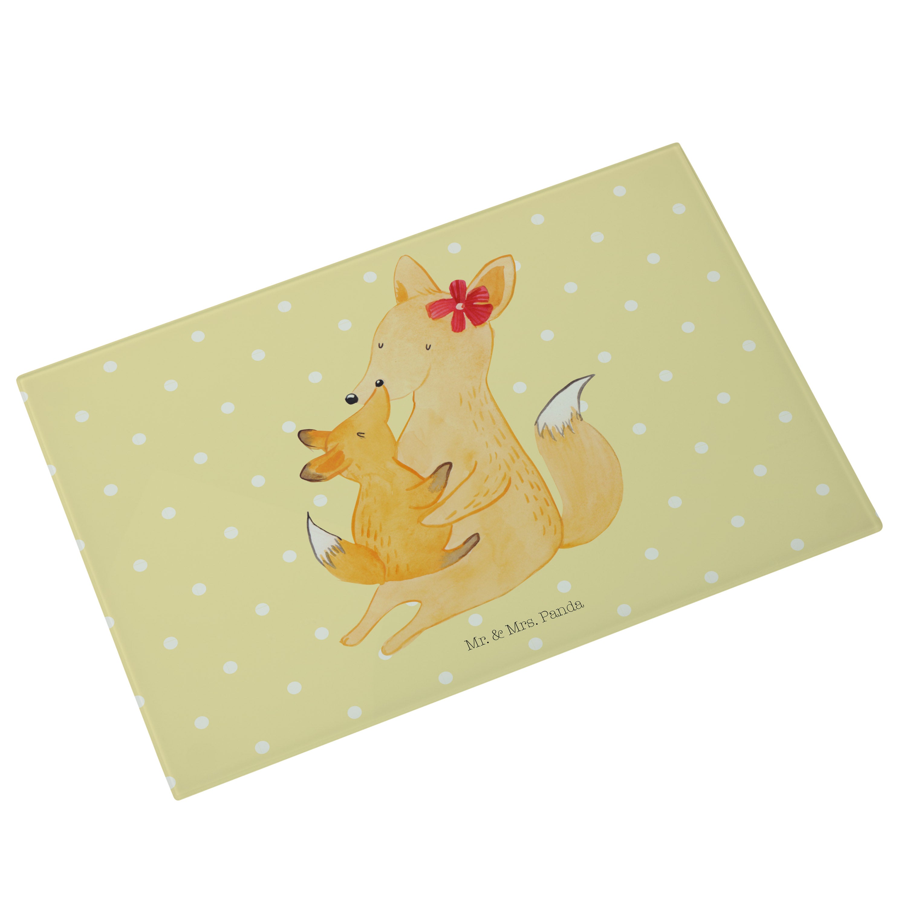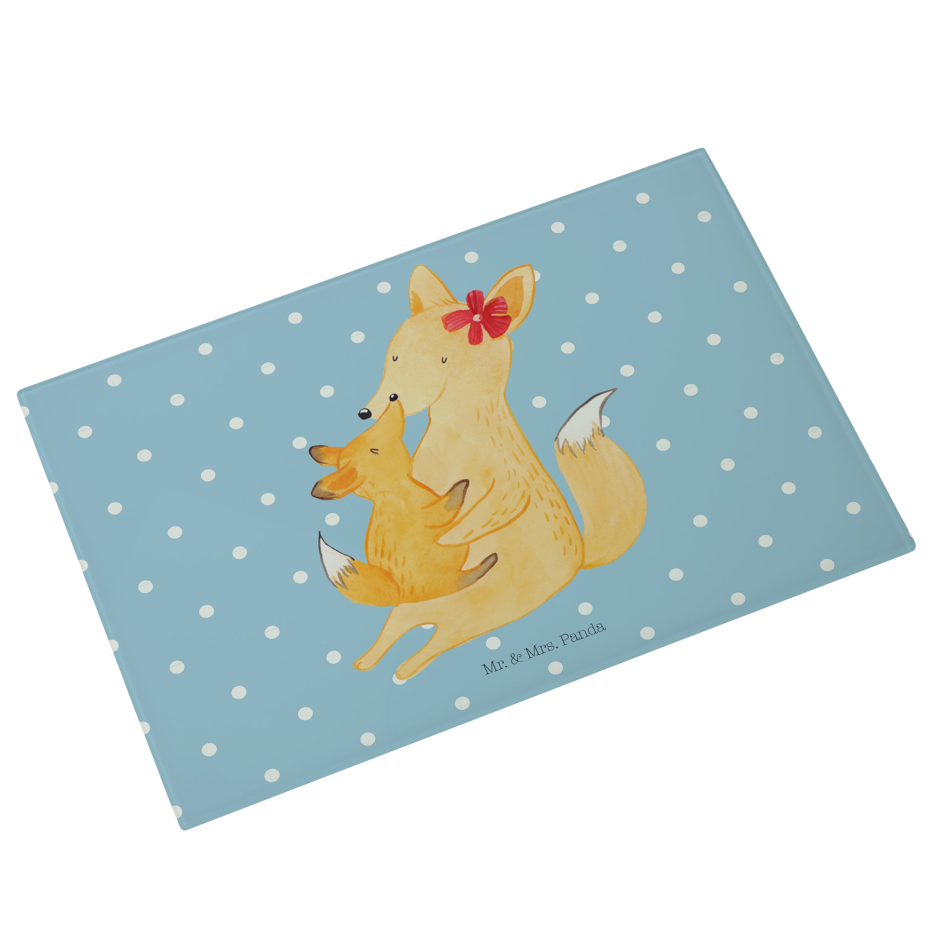 Medium Glas Schneidbrett Fuchs Mama & Kind - mit Spruch - Weiß