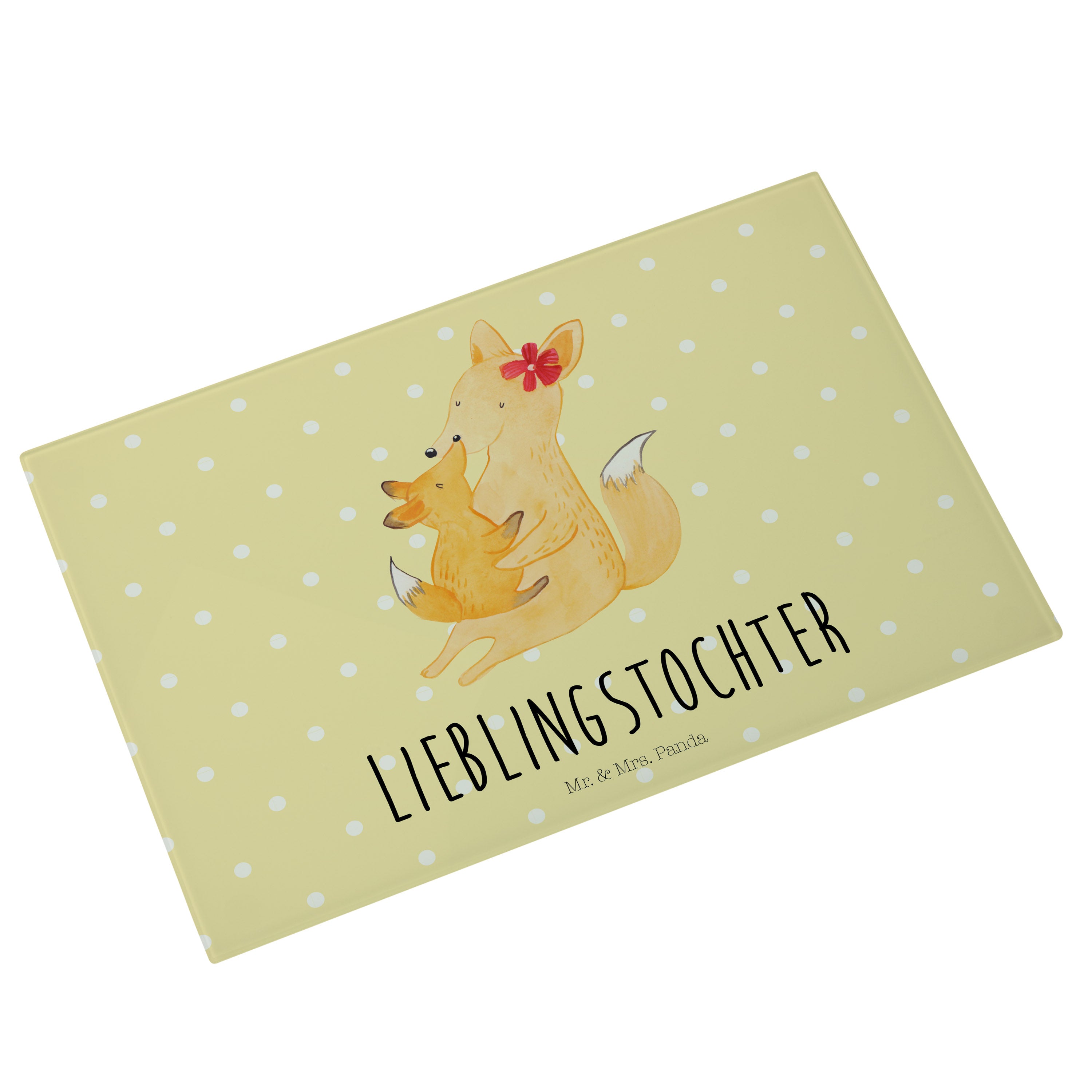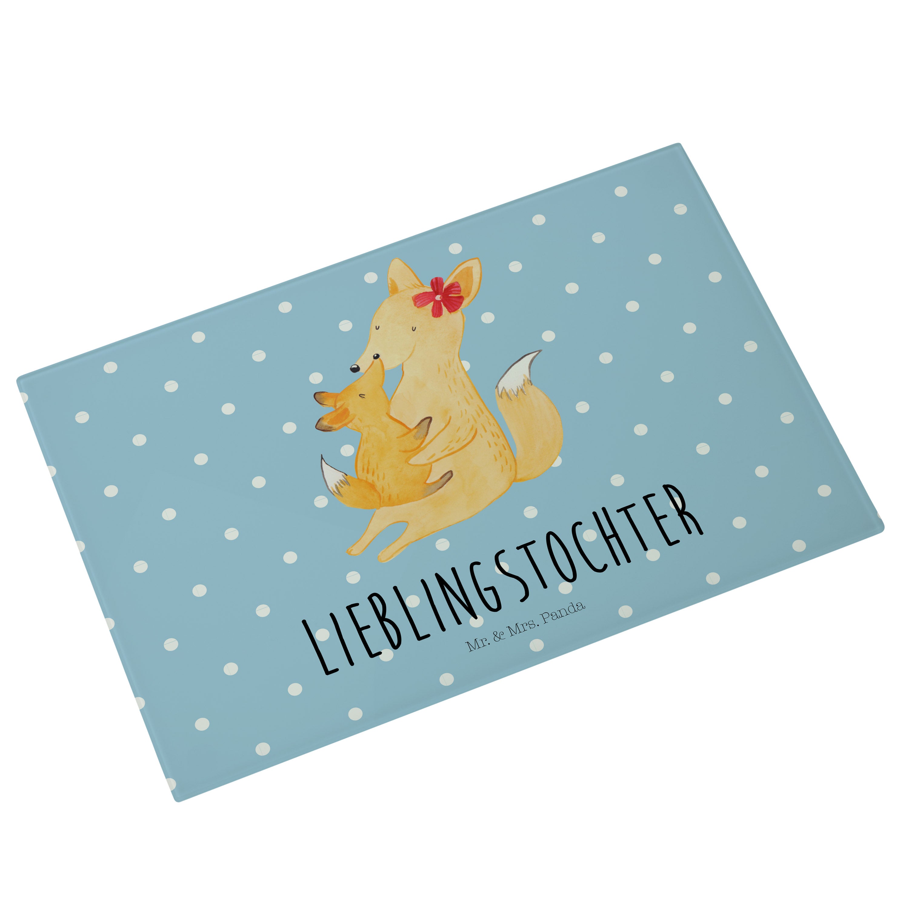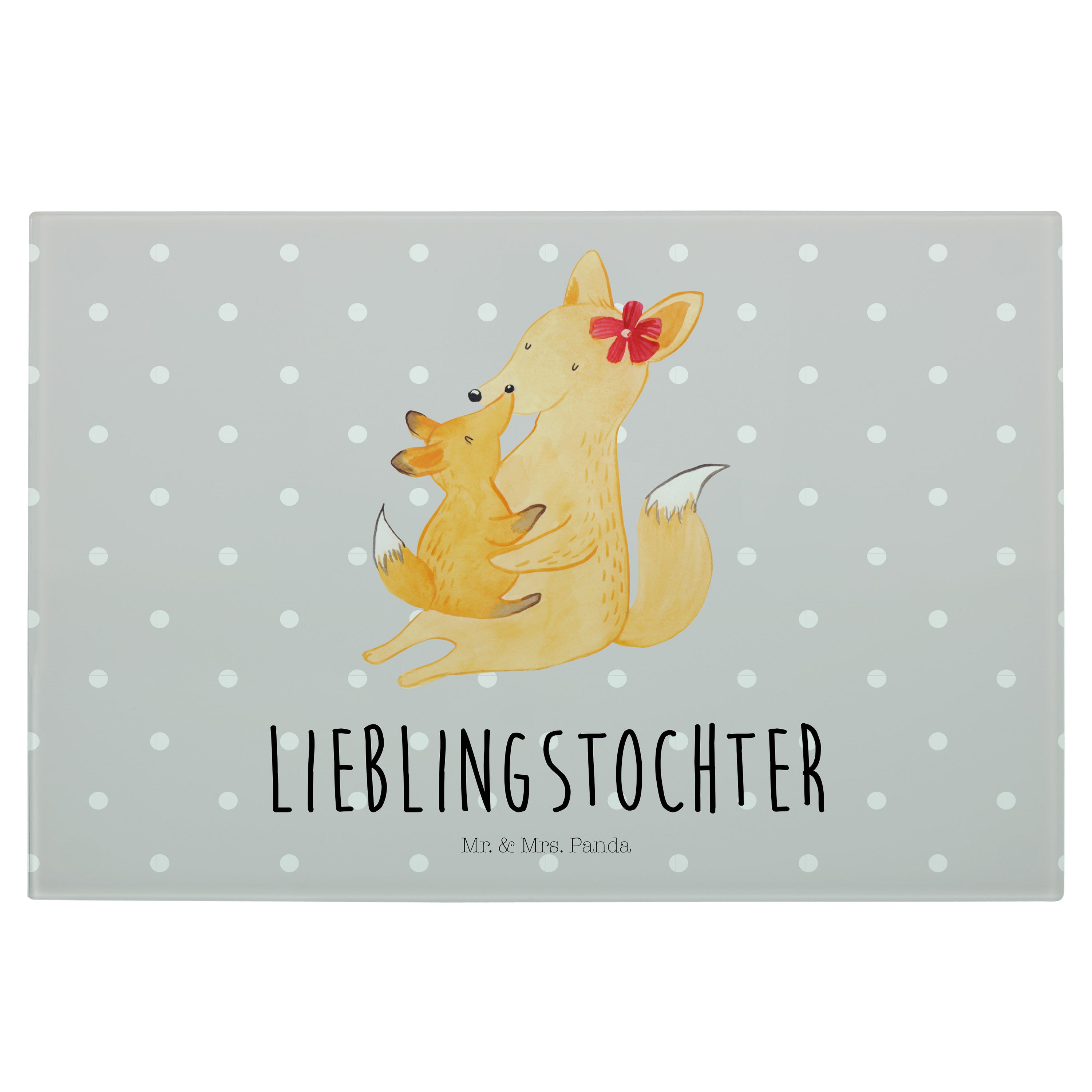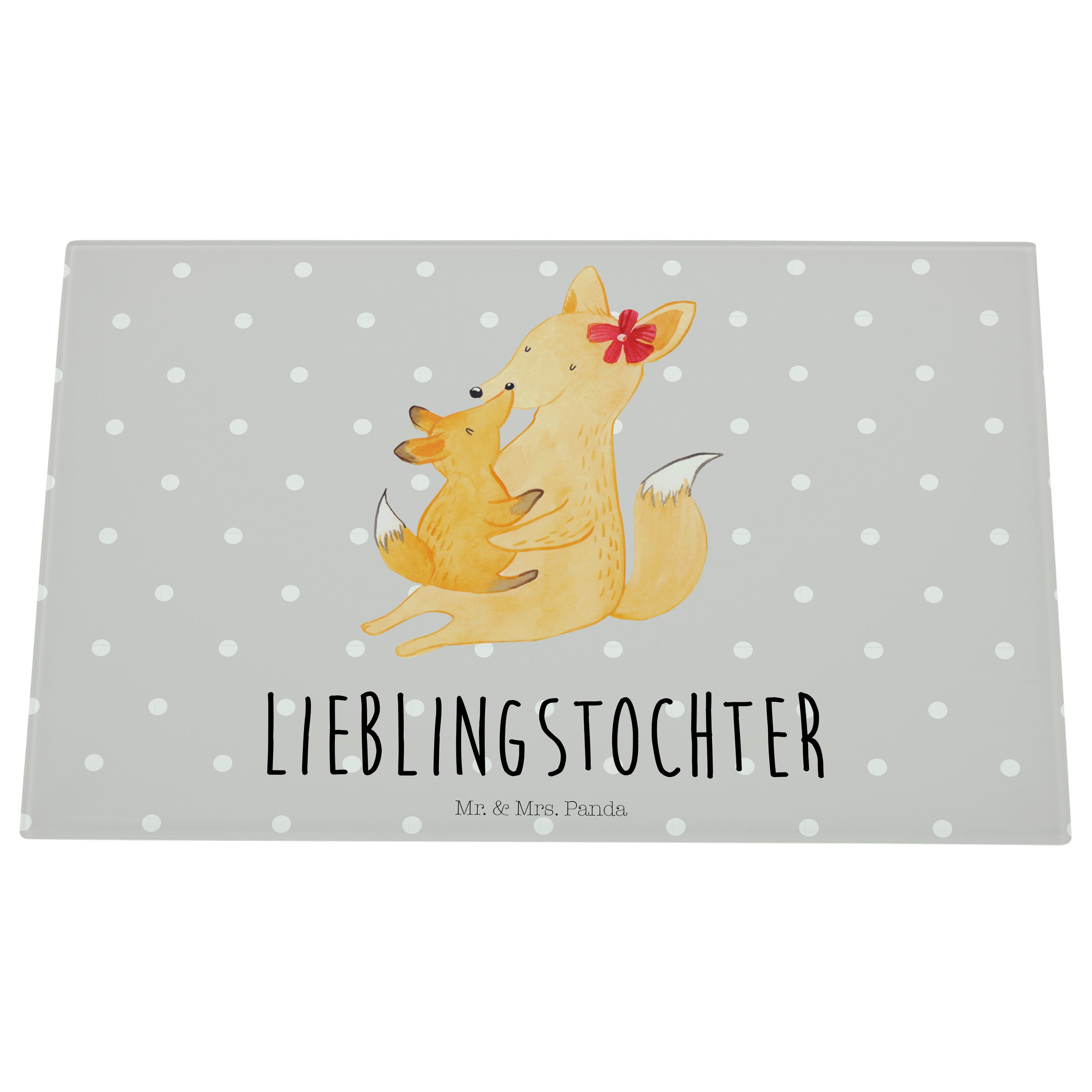 Medium Glas Schneidbrett Fuchs Mama & Kind - mit Spruch - Weiß