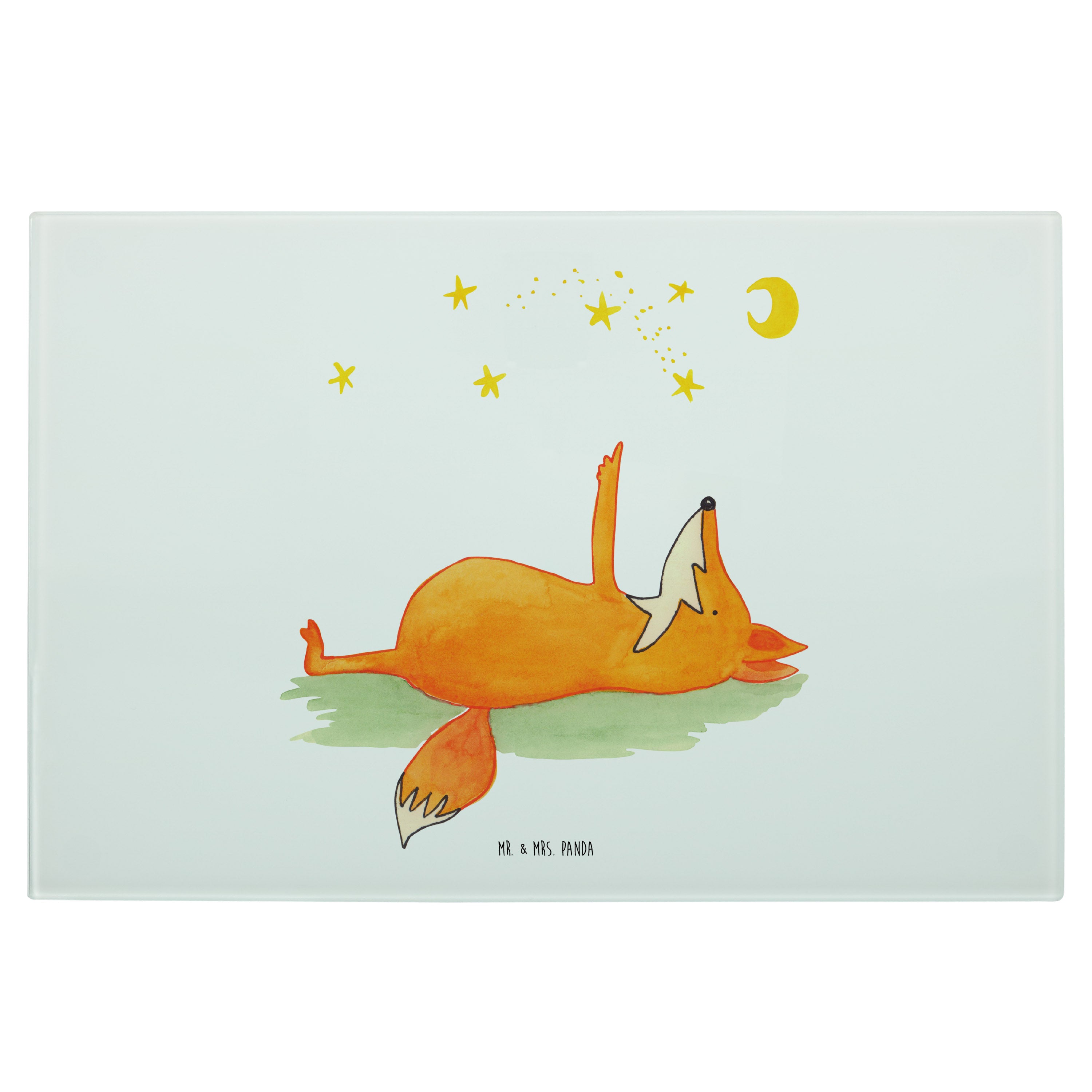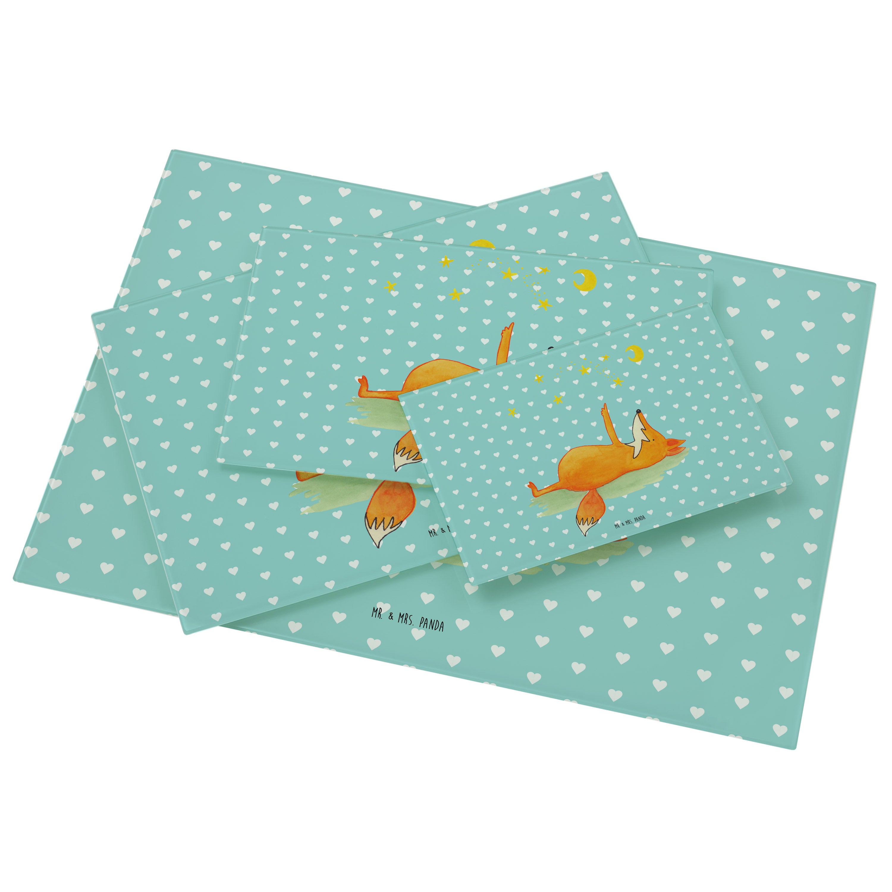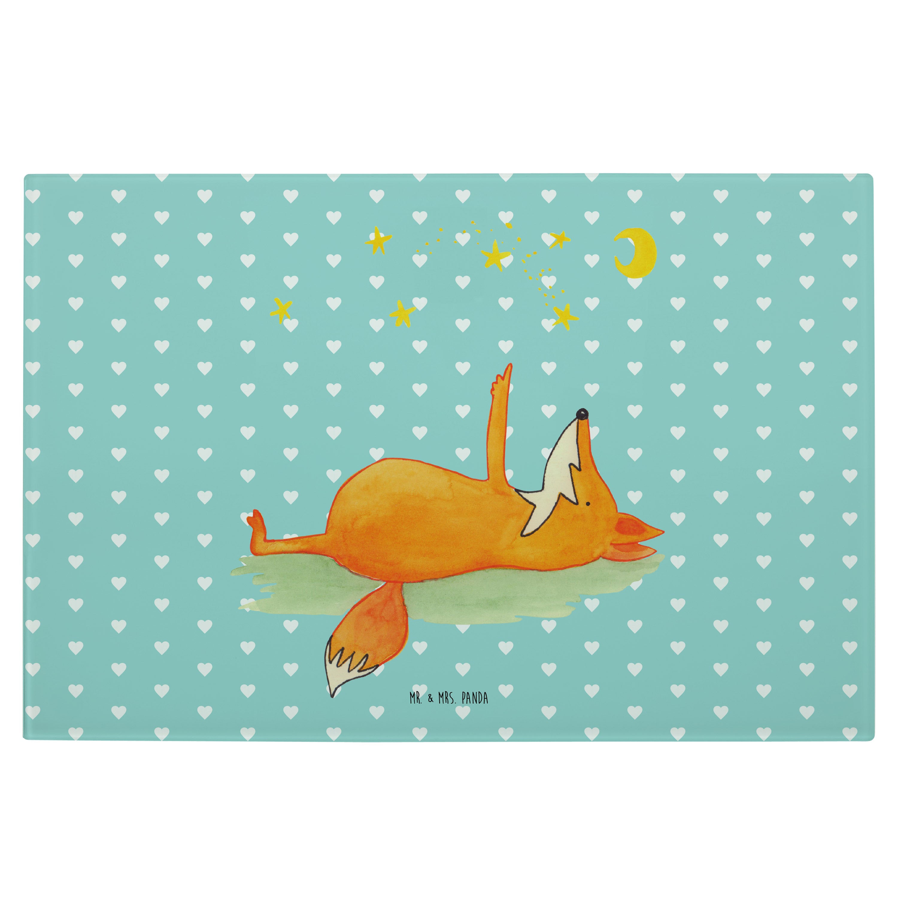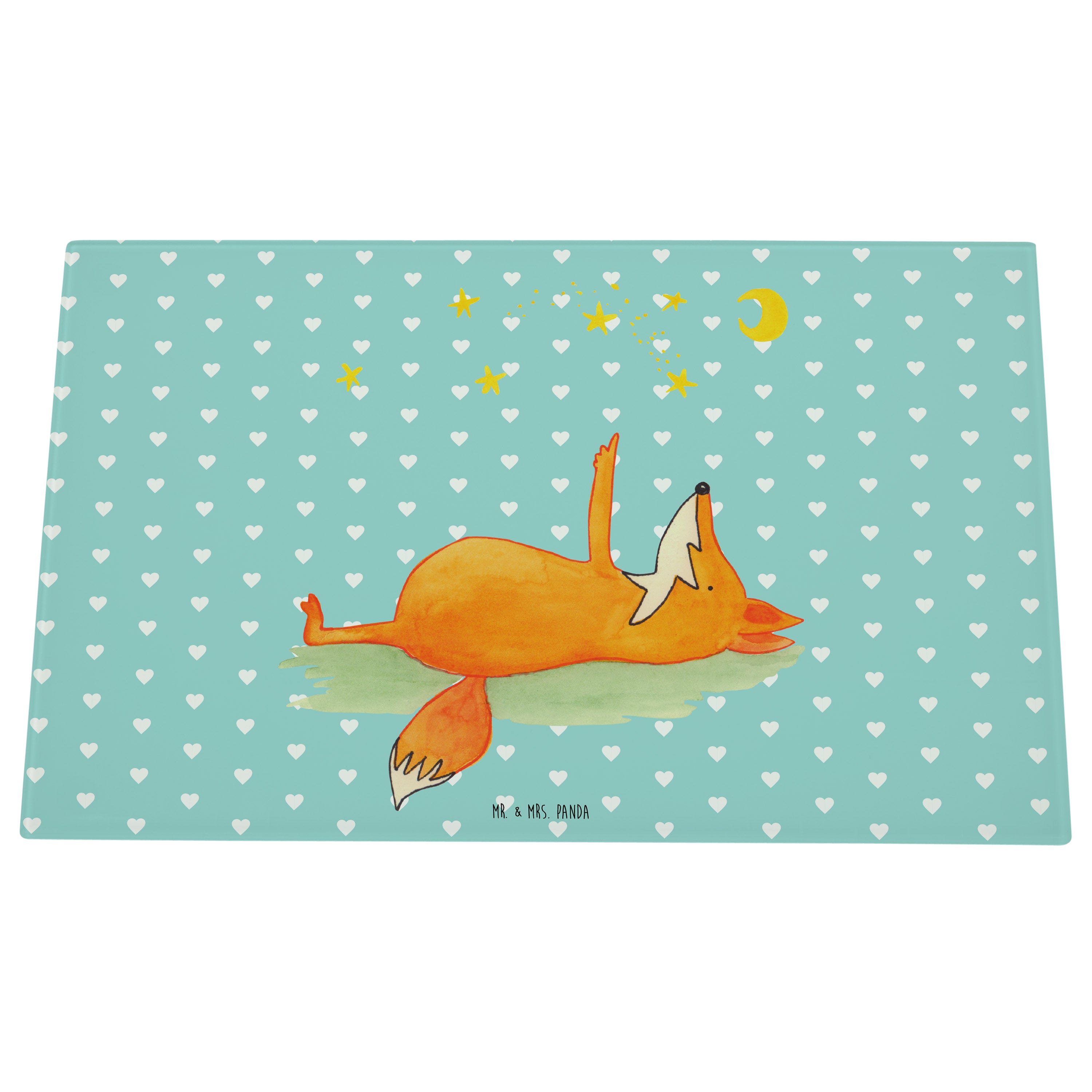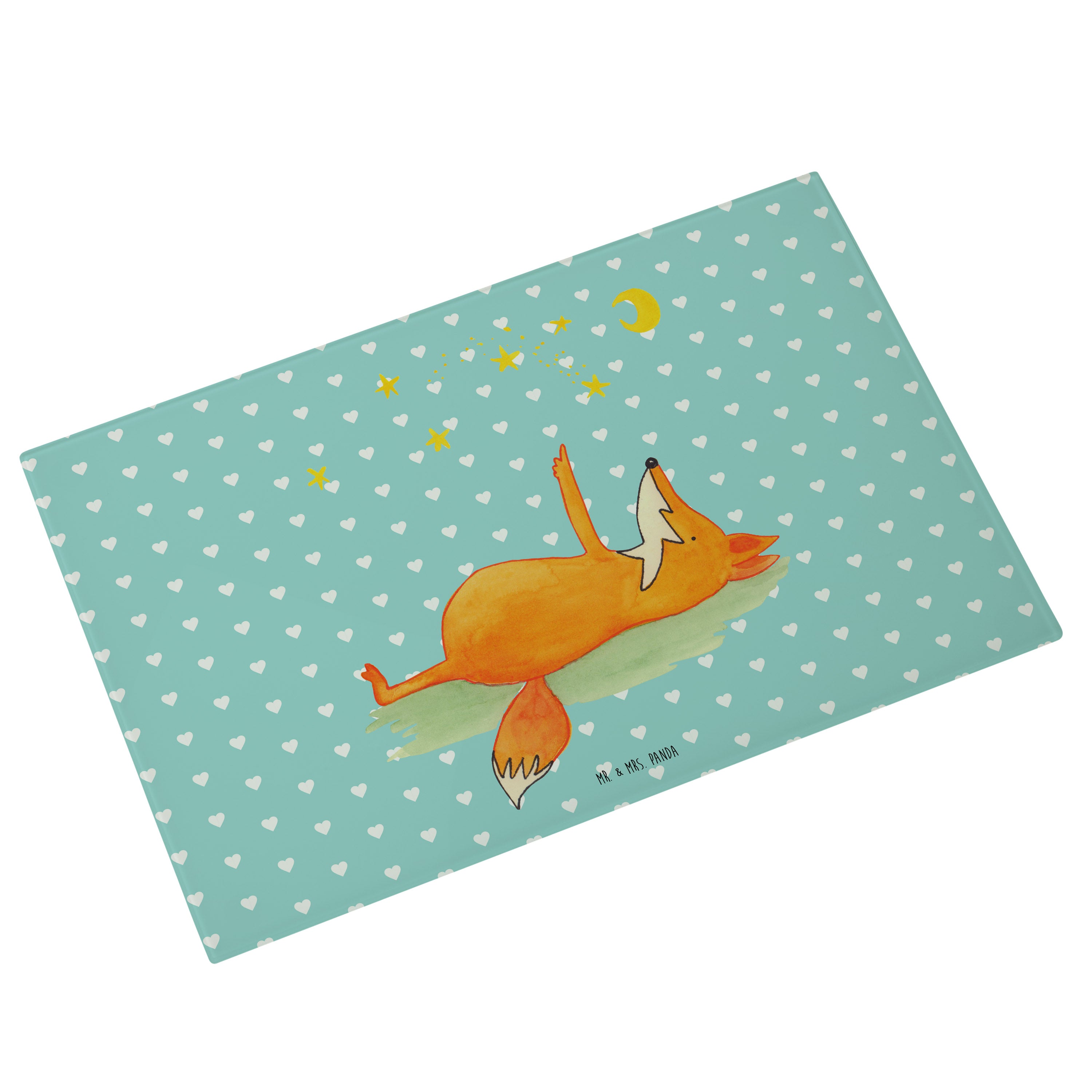 Medium Glas Schneidbrett Fuchs Sterne - mit Spruch - Türkis Pastell