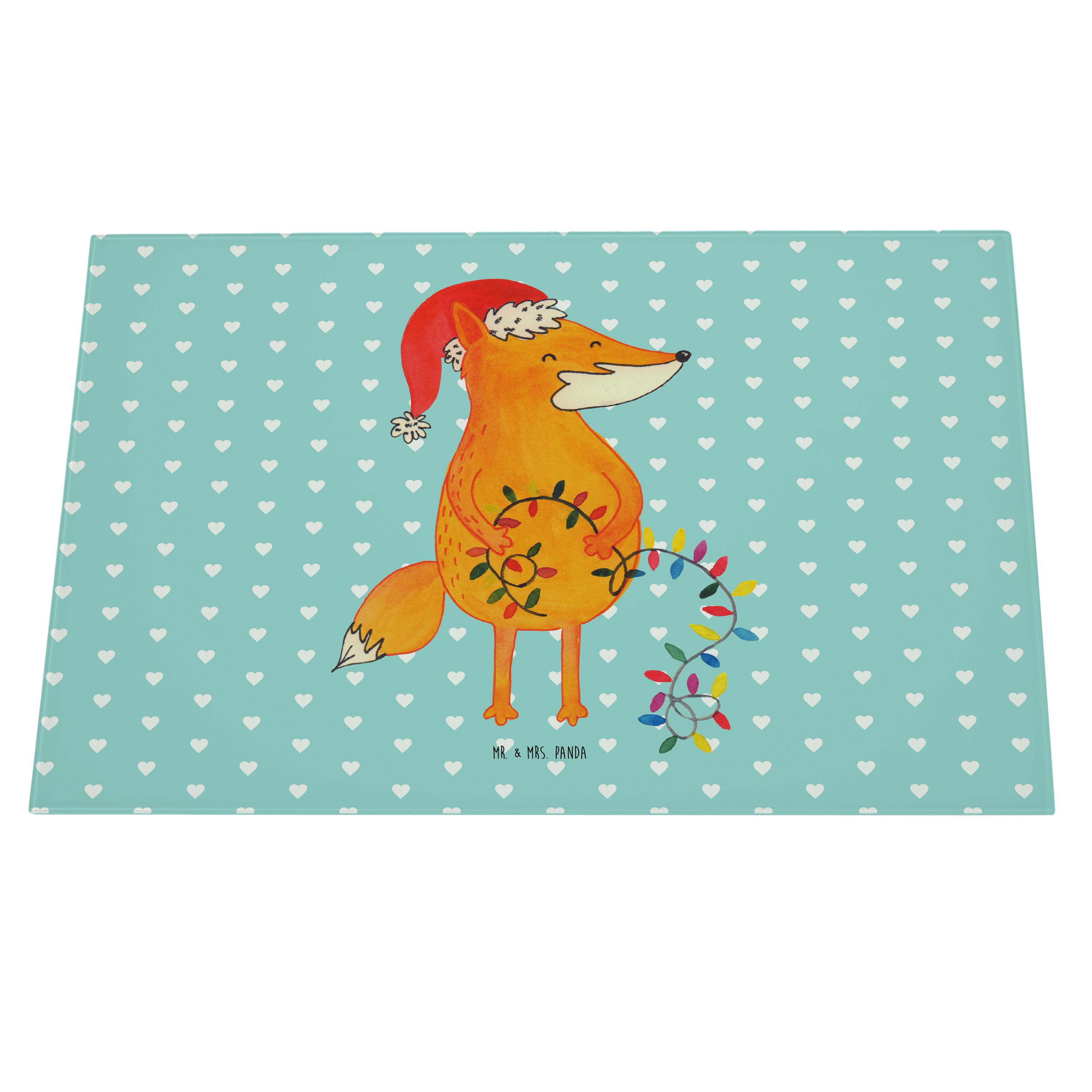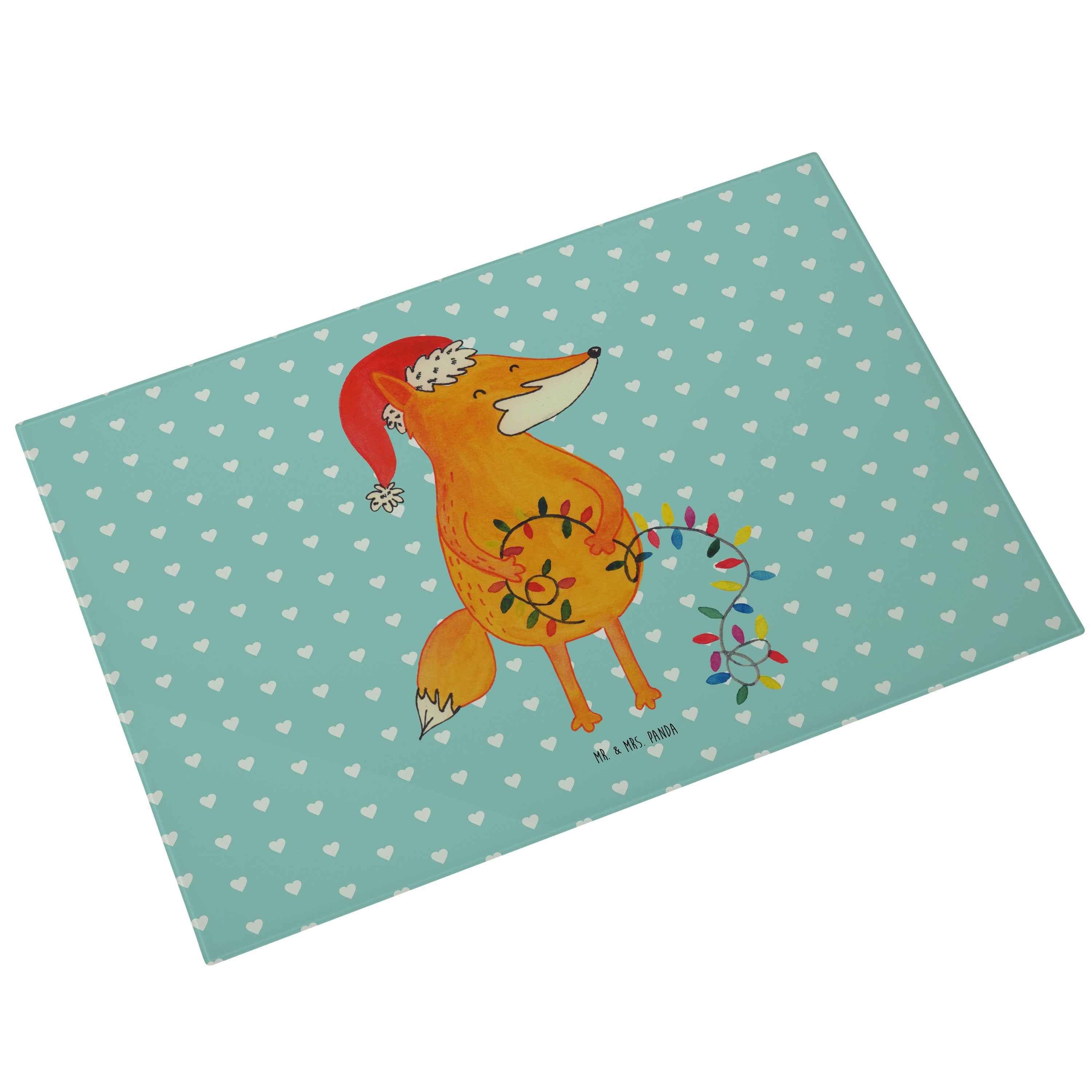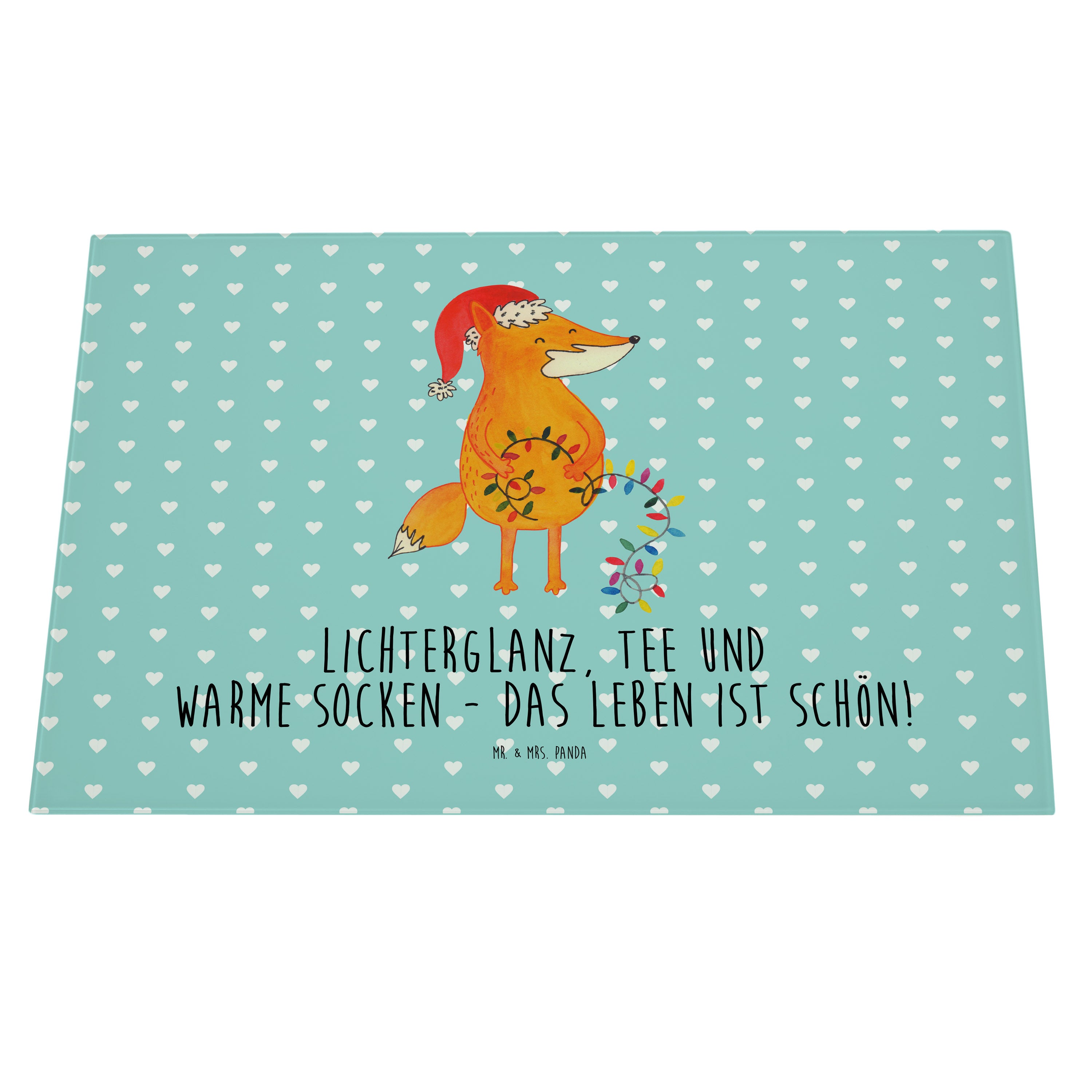 XL Glas Schneidbrett Fuchs Weihnachten - mit Spruch - Türkis Pastell