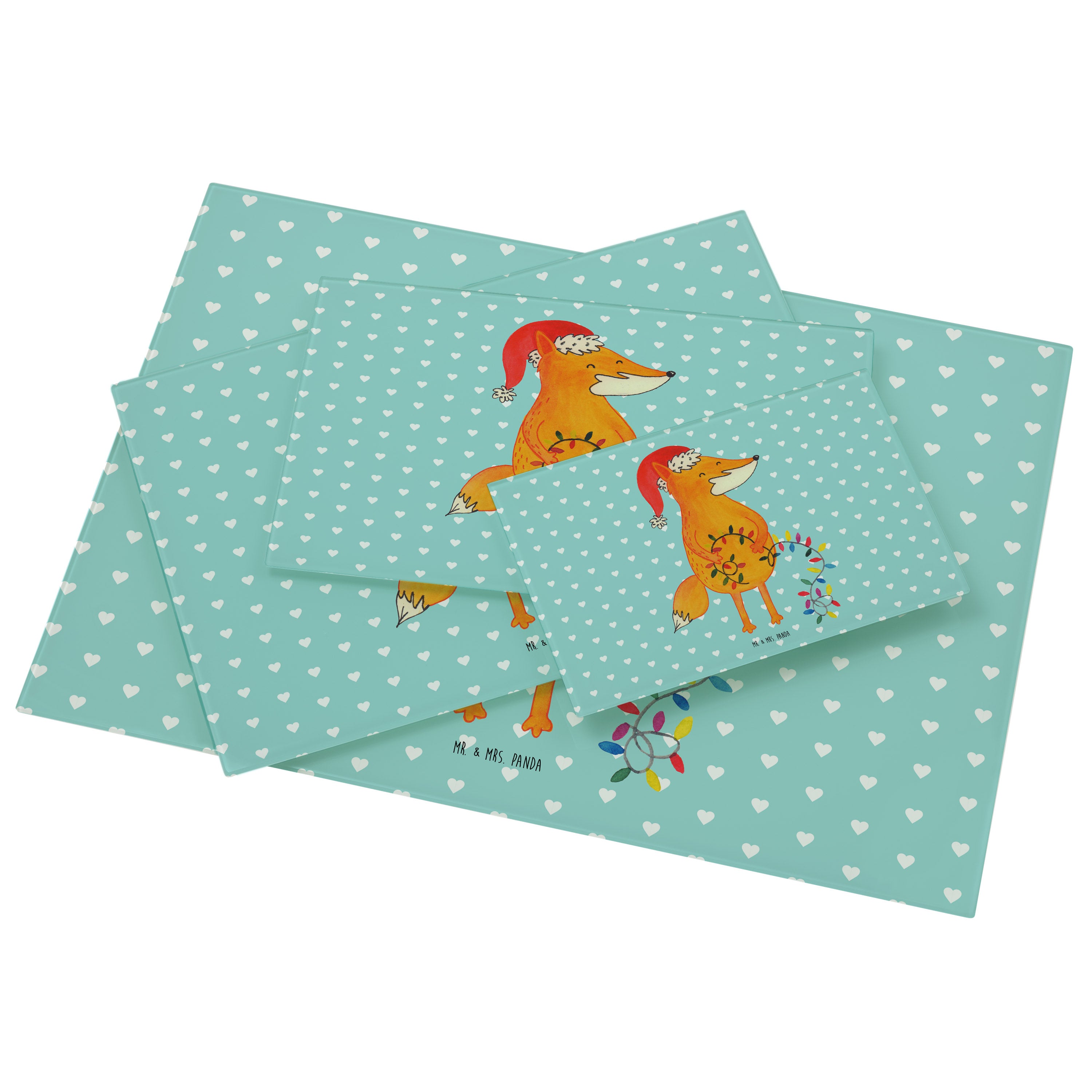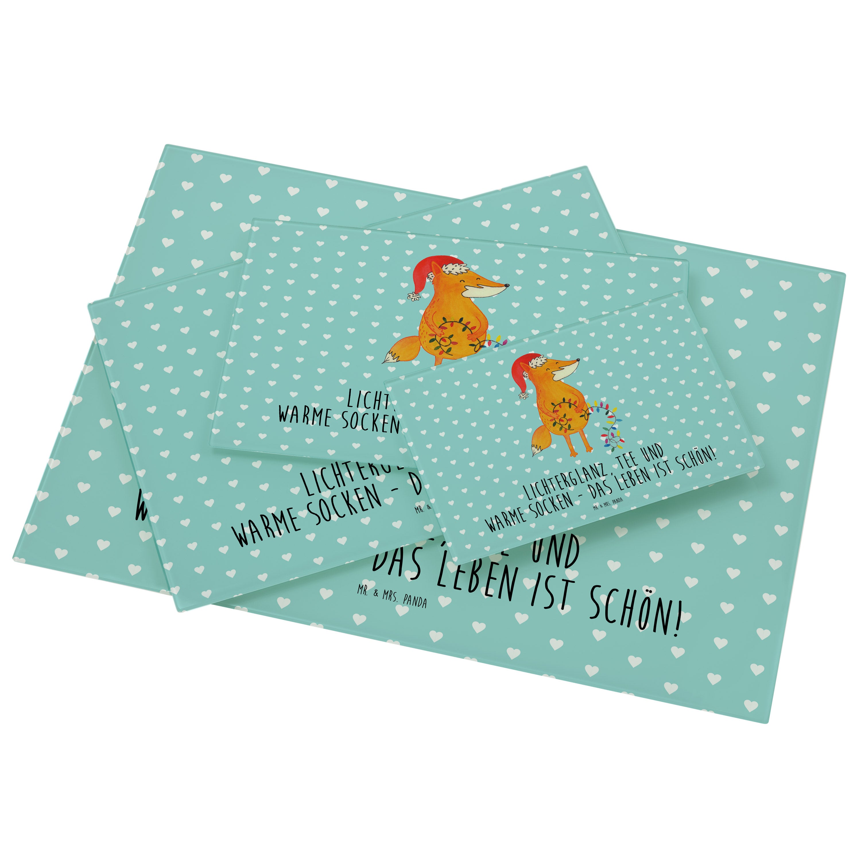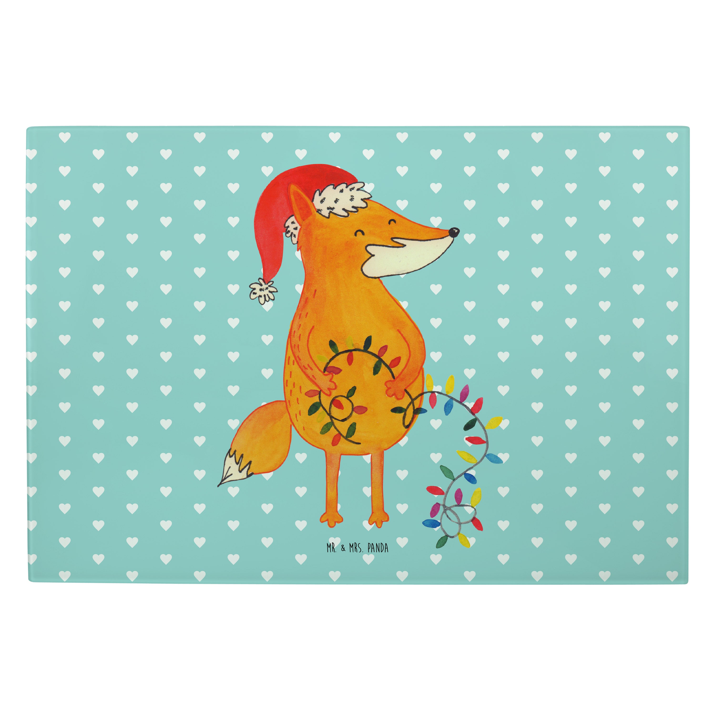 XL Glas Schneidbrett Fuchs Weihnachten - mit Spruch - Türkis Pastell