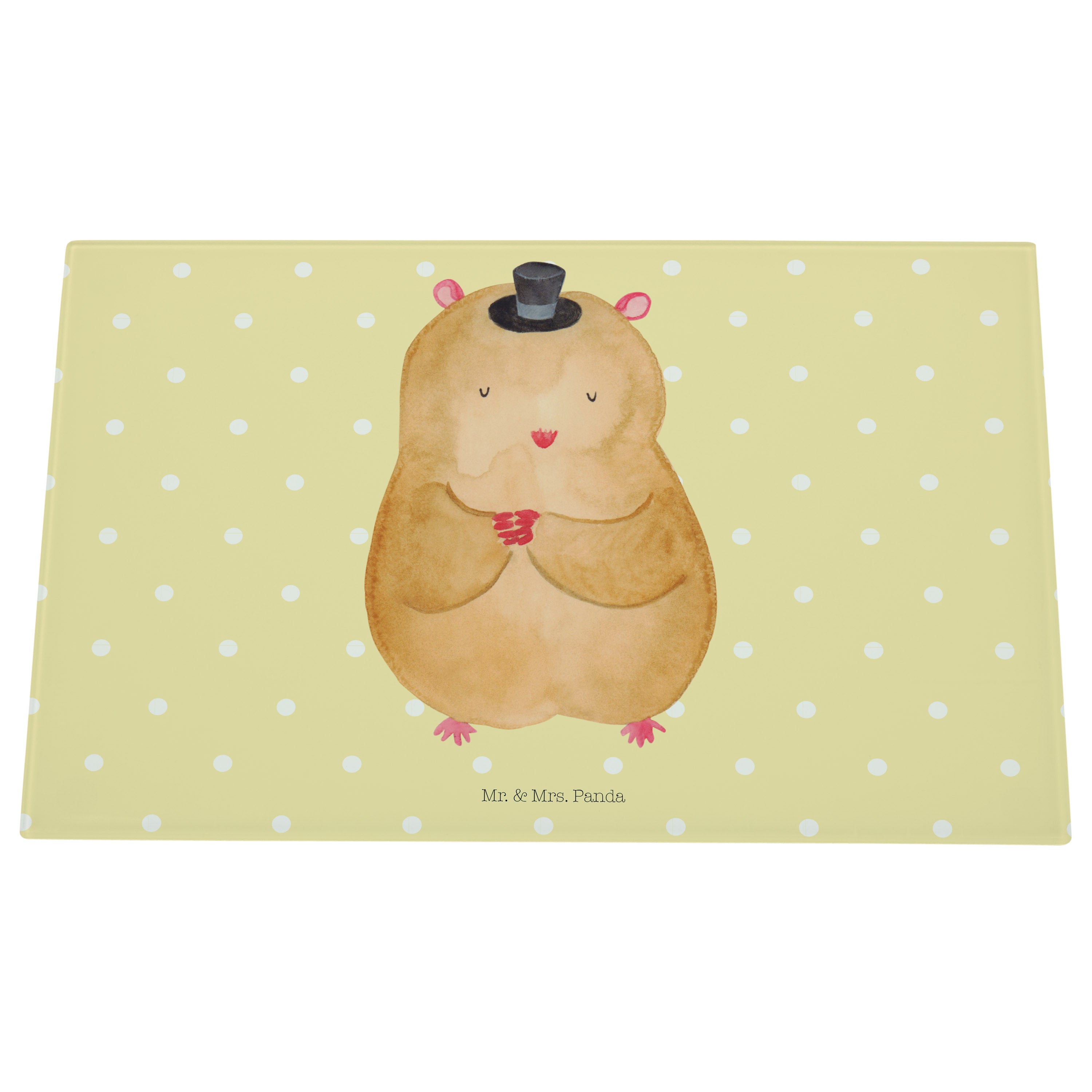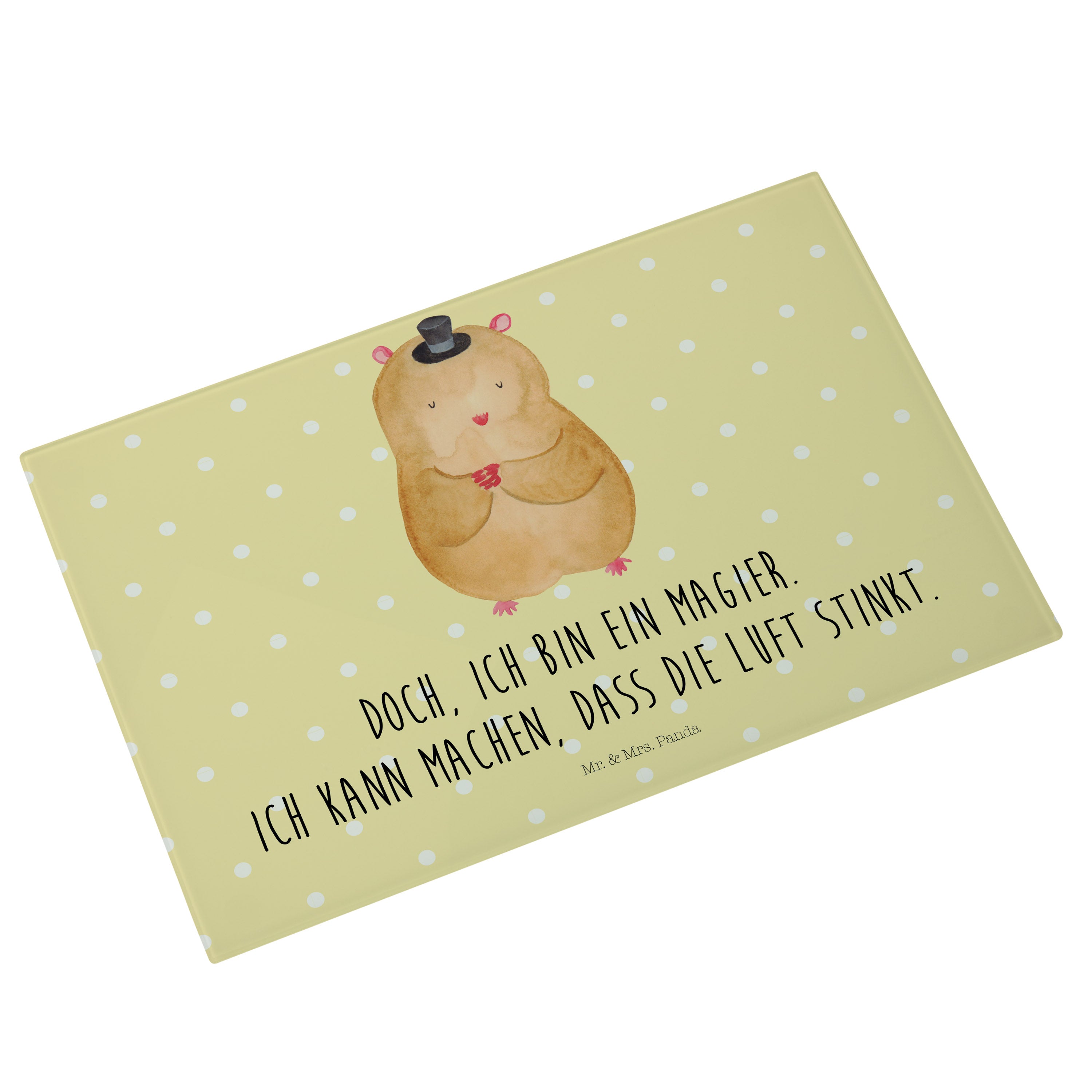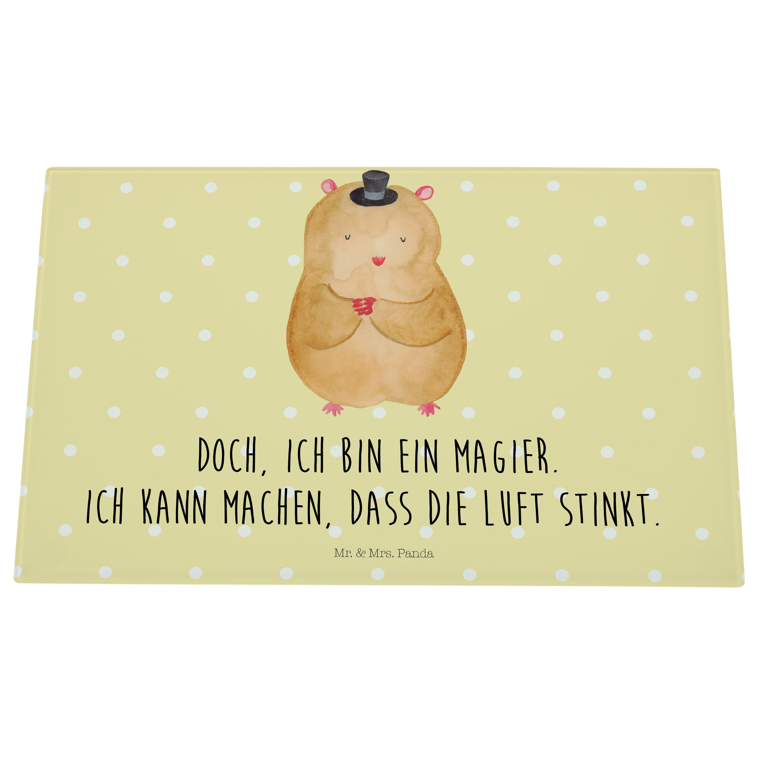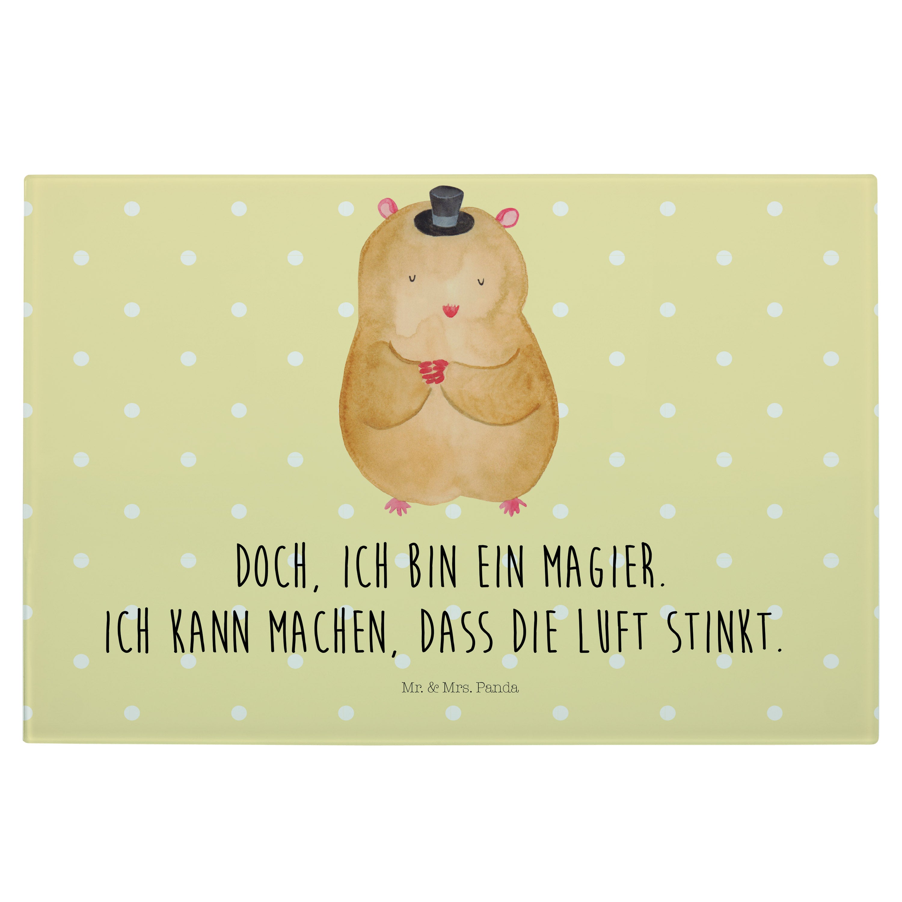 Medium Glas Schneidbrett Hamster mit Hut - mit Spruch - Gelb Pastell