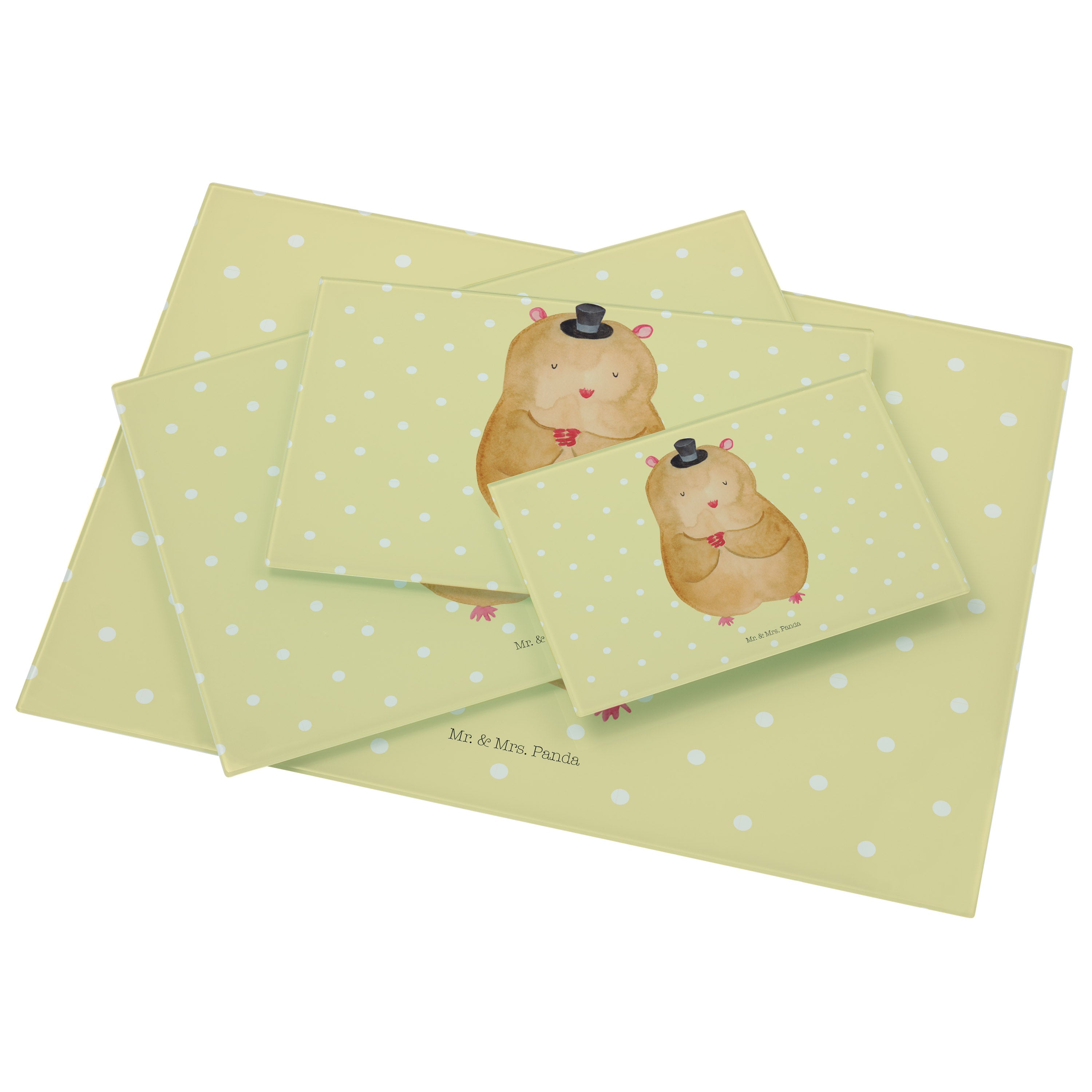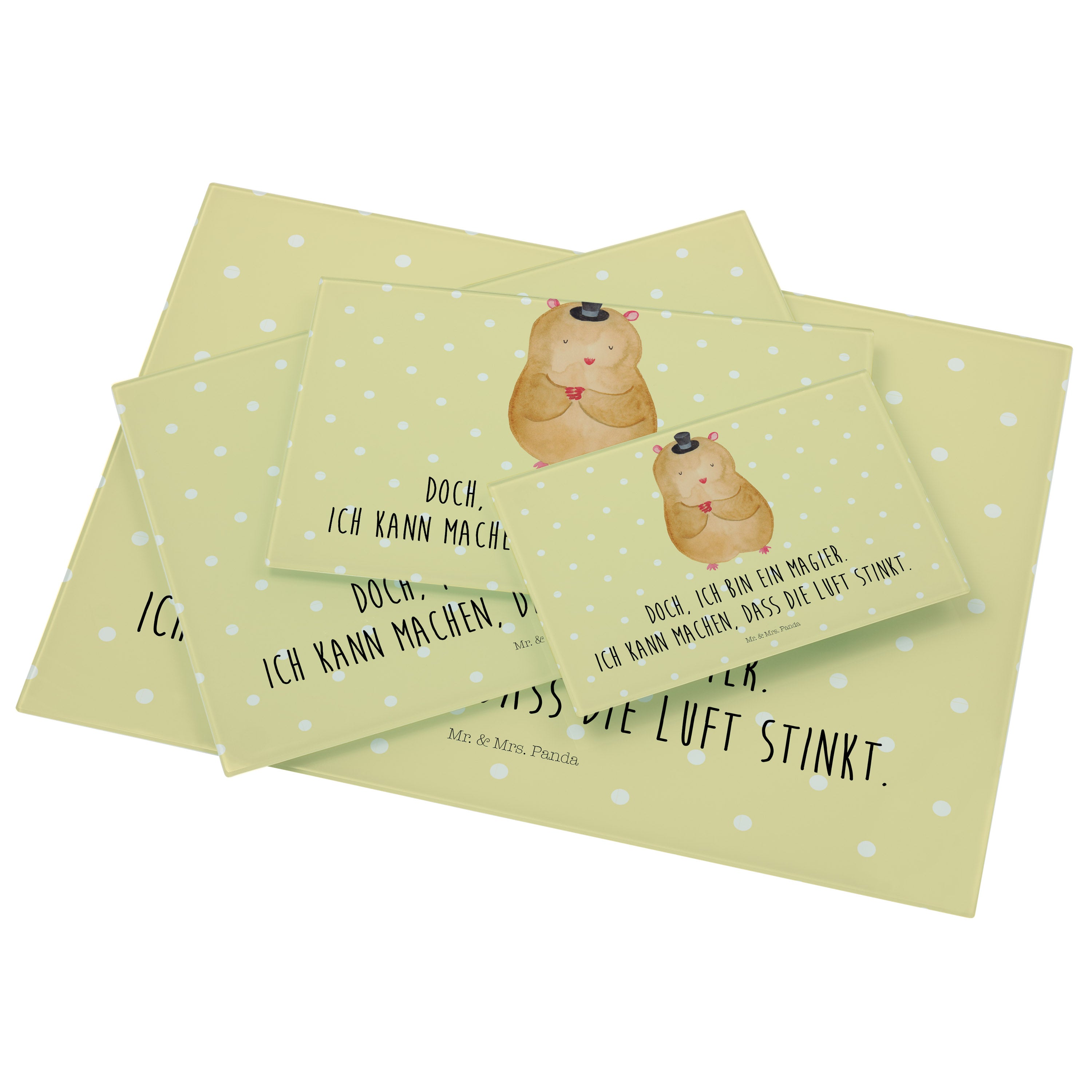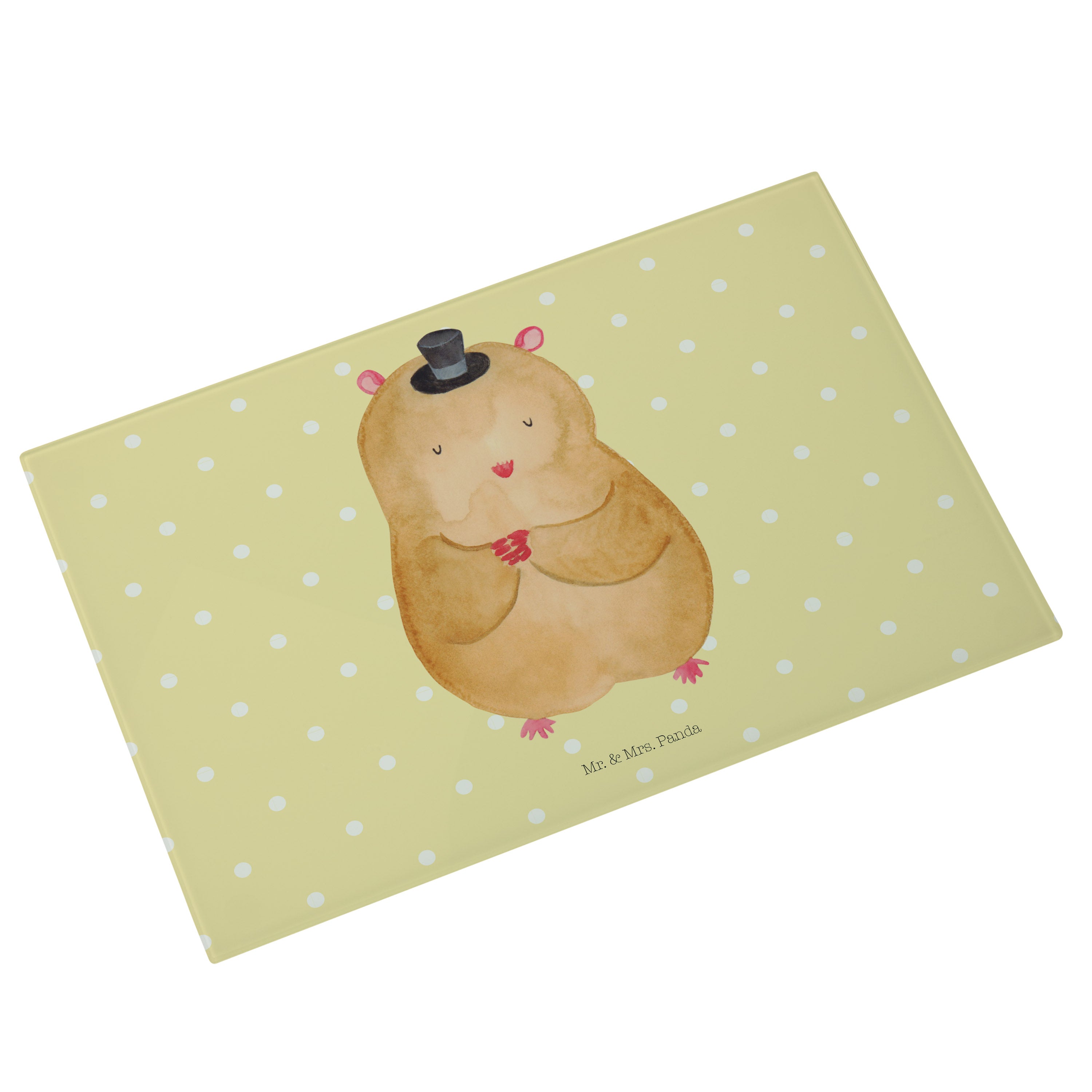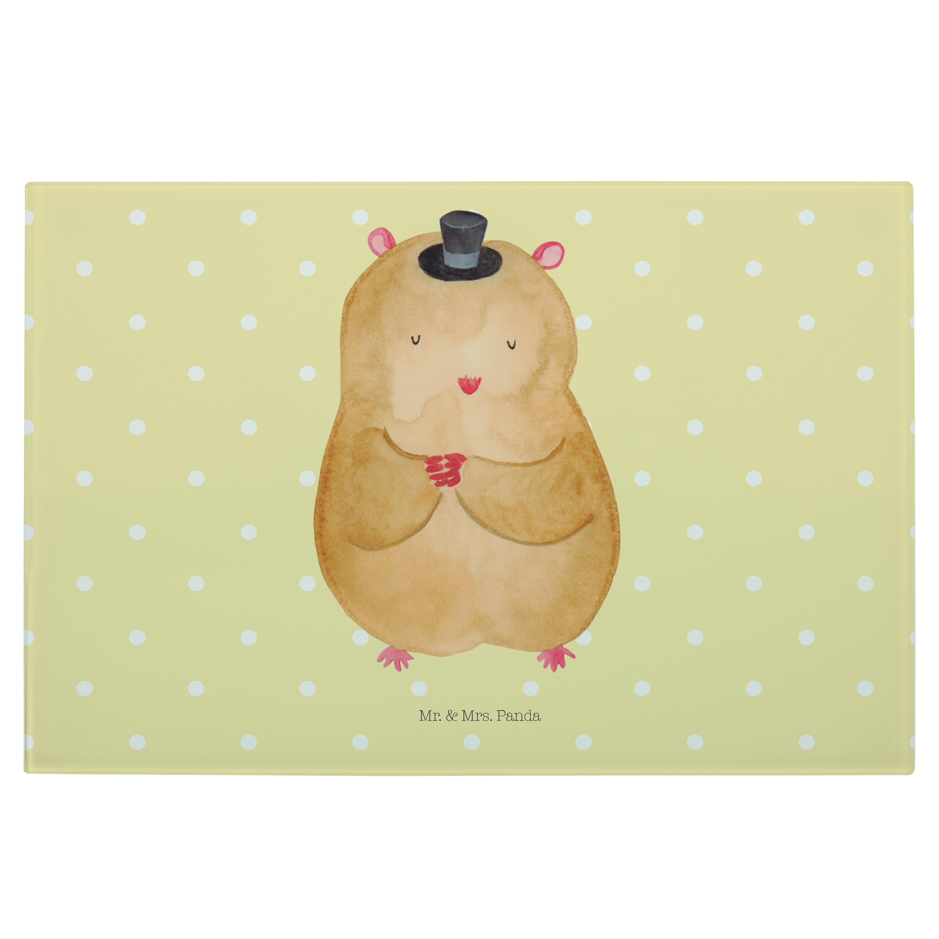 Medium Glas Schneidbrett Hamster mit Hut - mit Spruch - Gelb Pastell