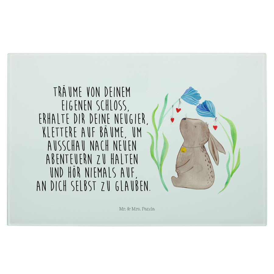 Medium Glas Schneidbrett Hase Blume - mit Spruch - Weiß