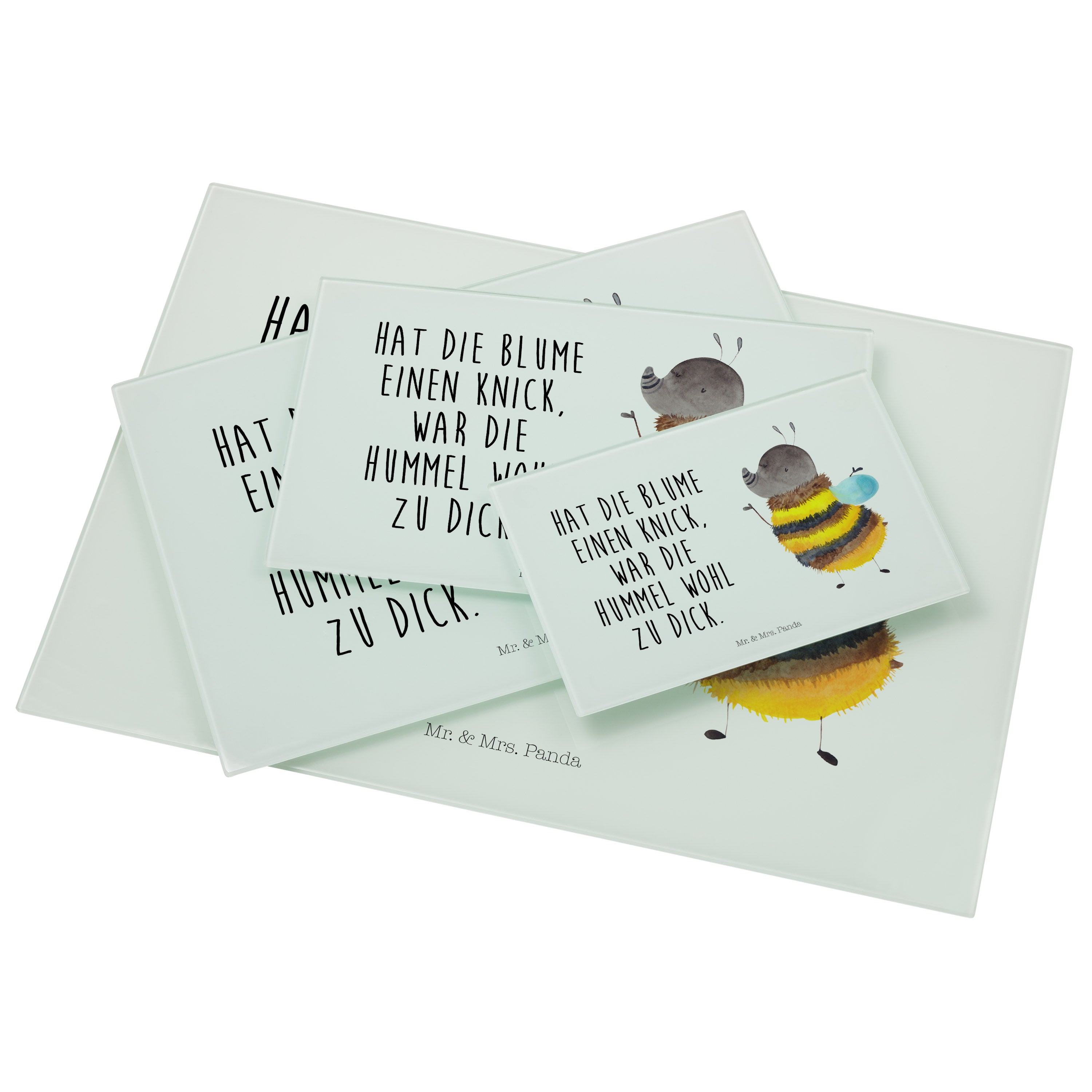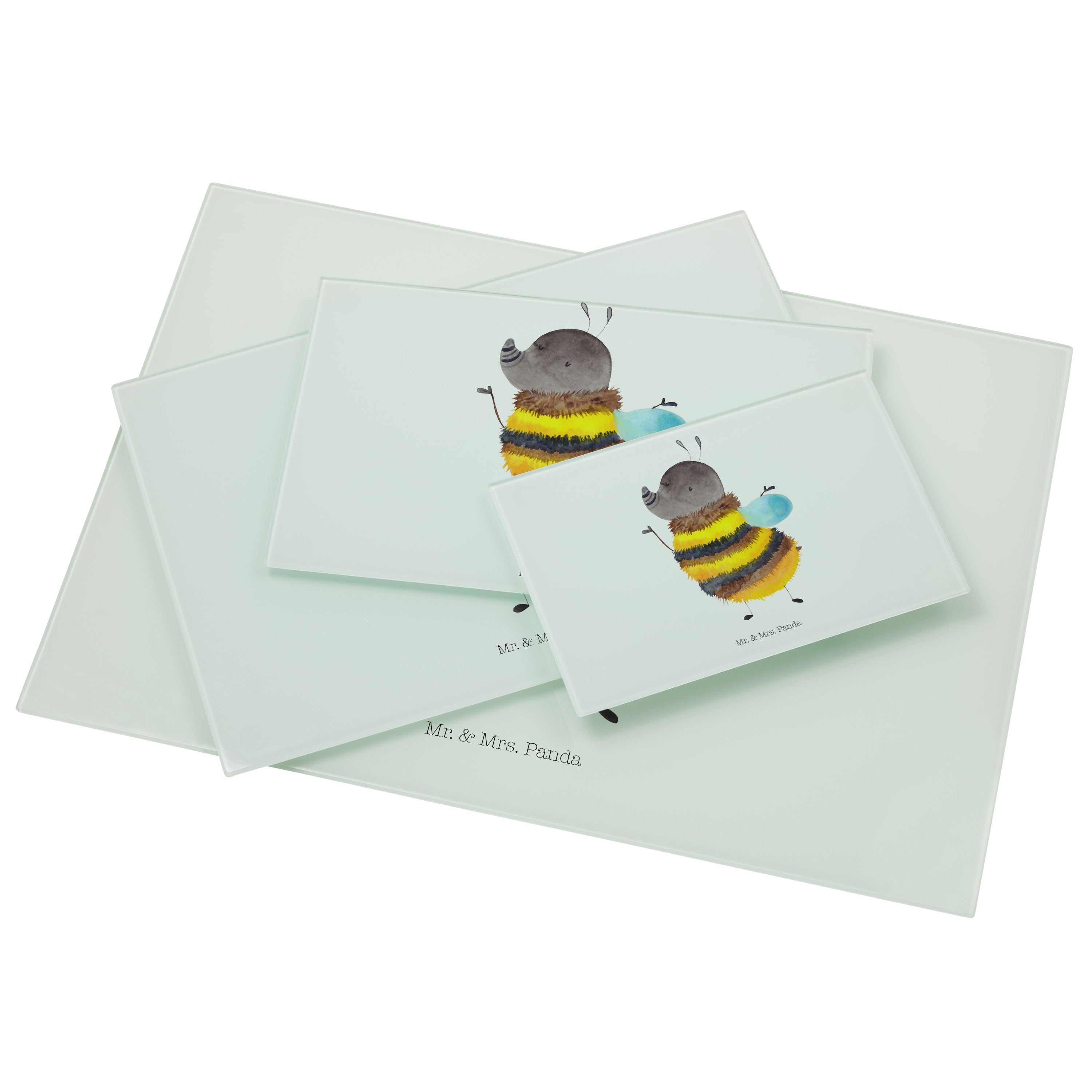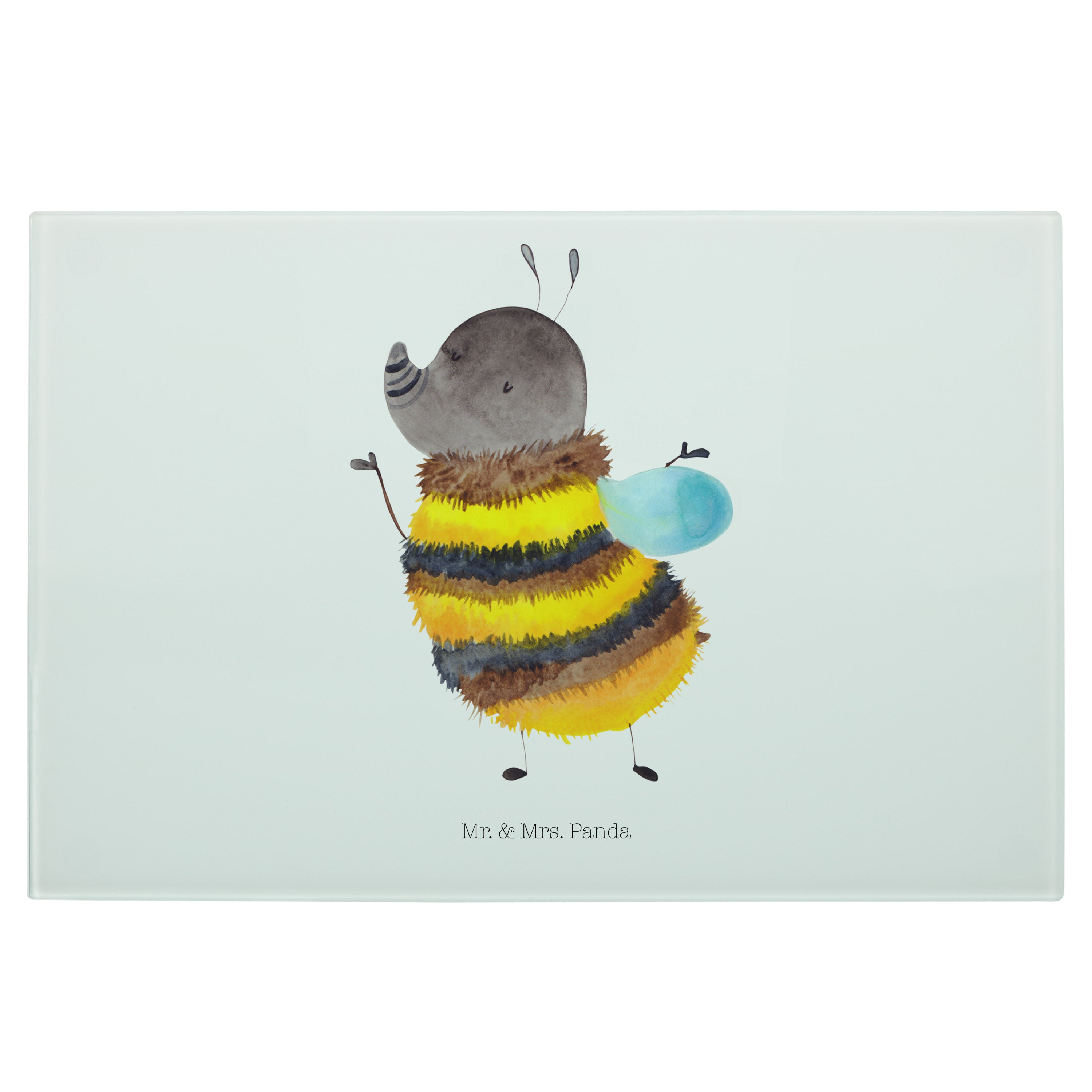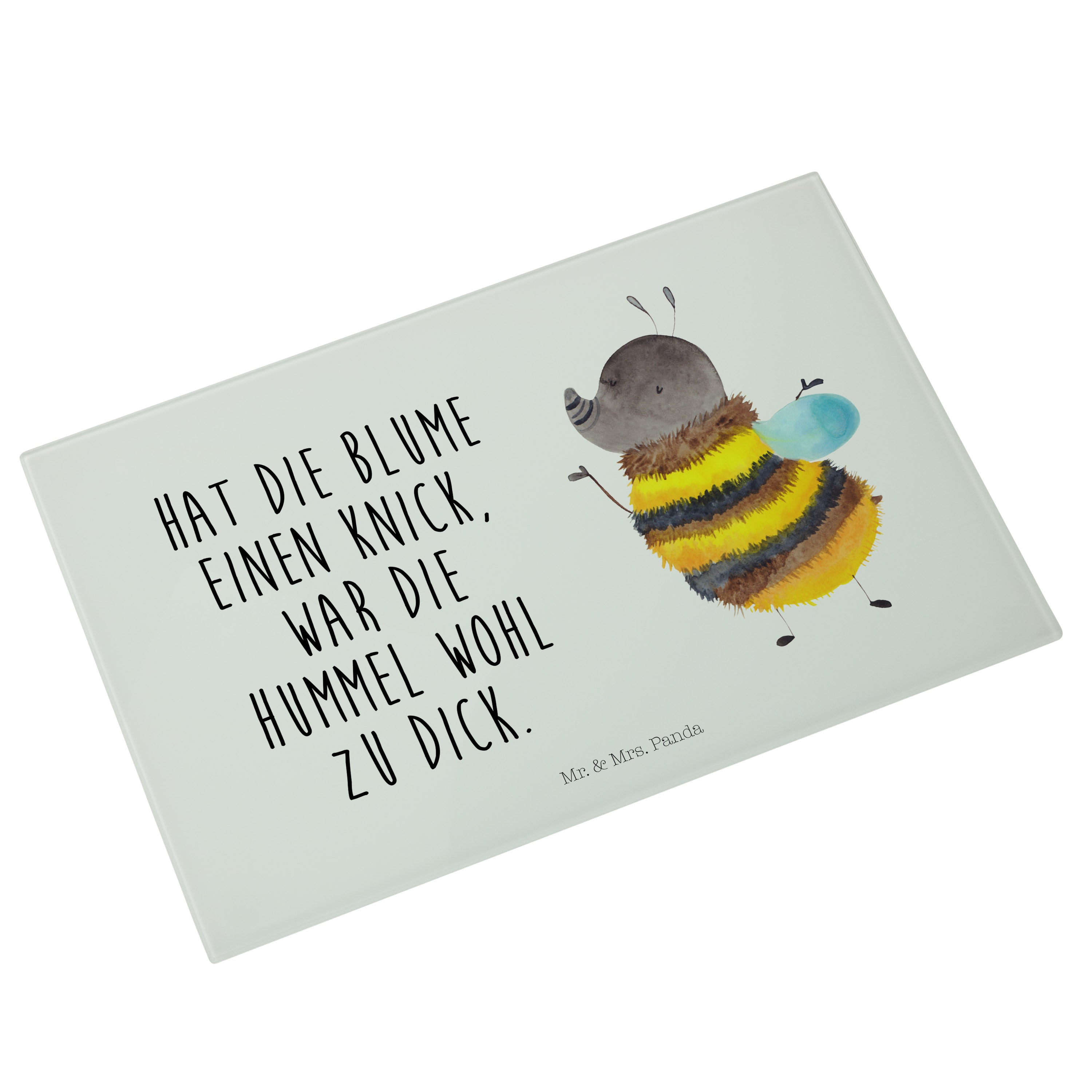 Medium Glas Schneidbrett Hummel flauschig - mit Spruch - Weiß