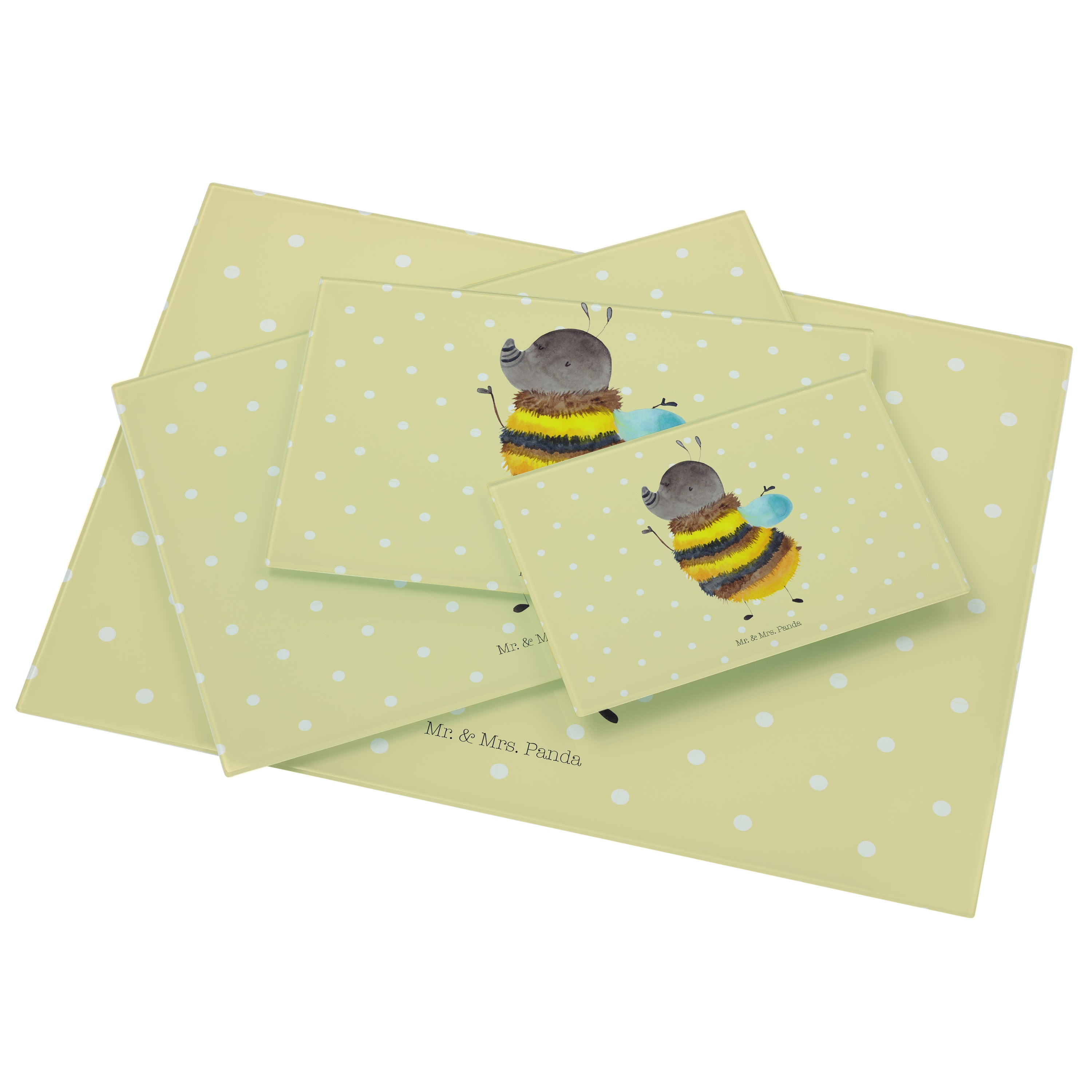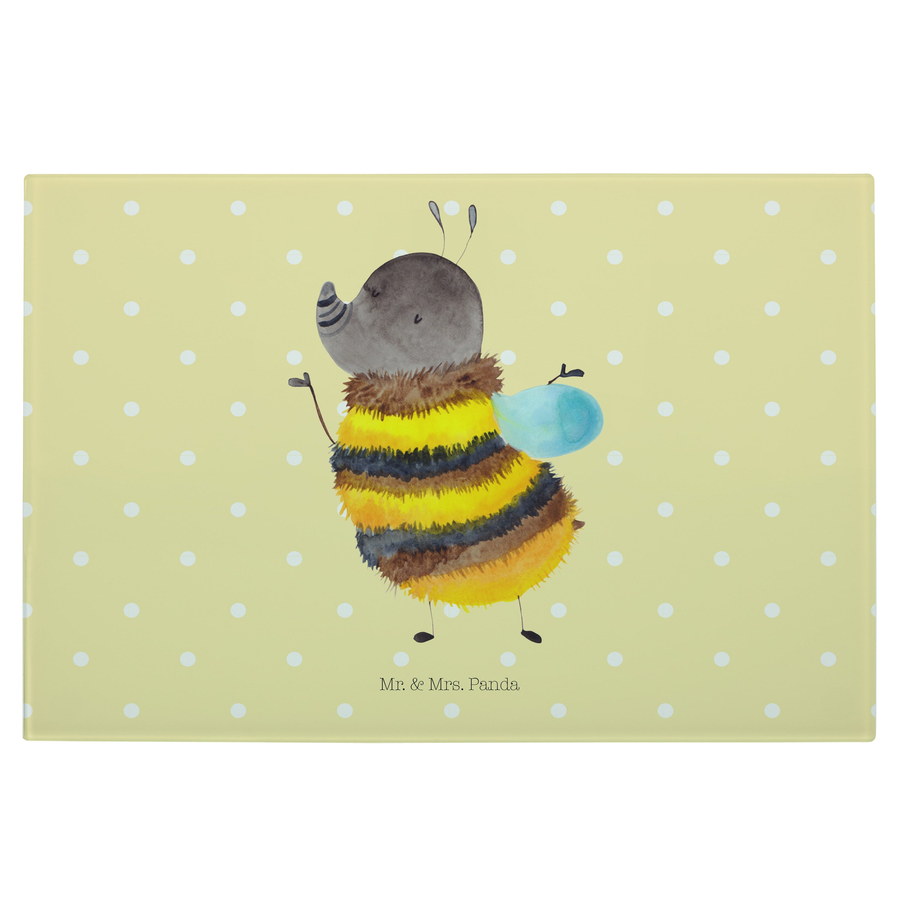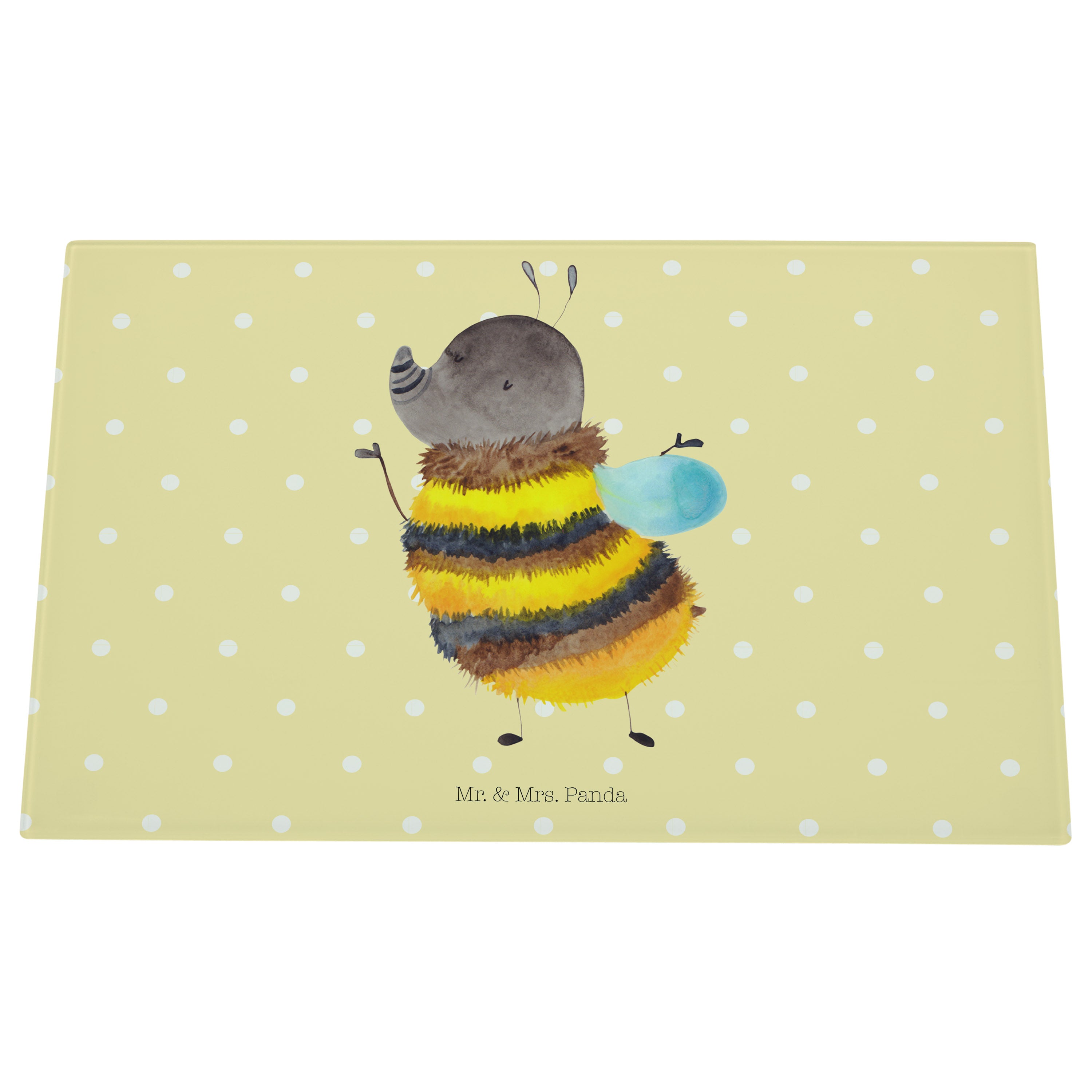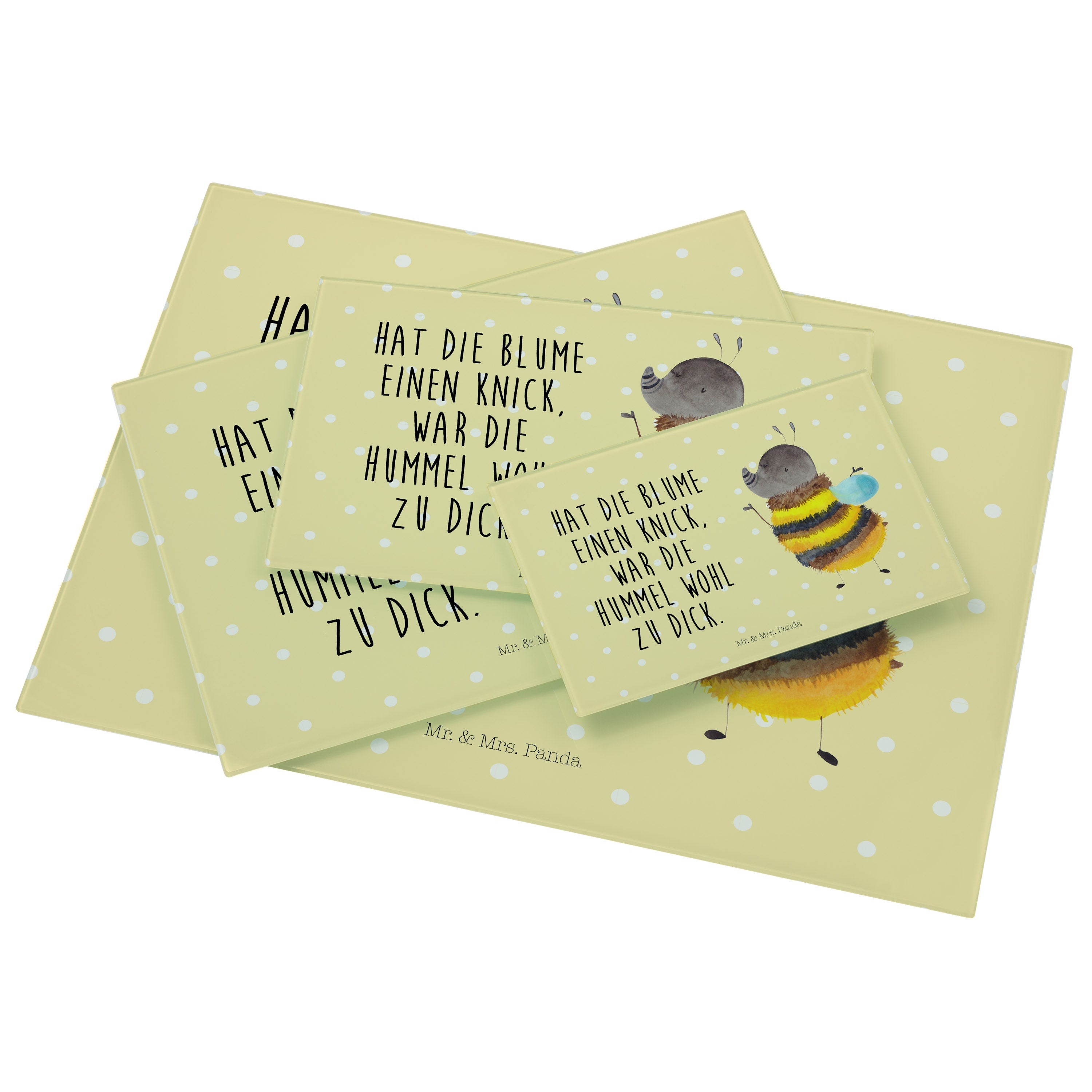 Medium Glas Schneidbrett Hummel flauschig - mit Spruch - Weiß