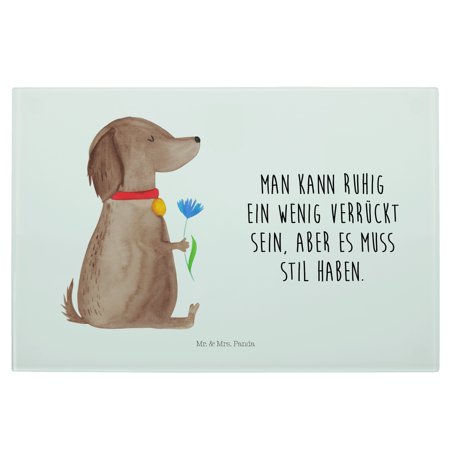 Medium Glas Schneidbrett Hund Blume - mit Spruch - Weiß
