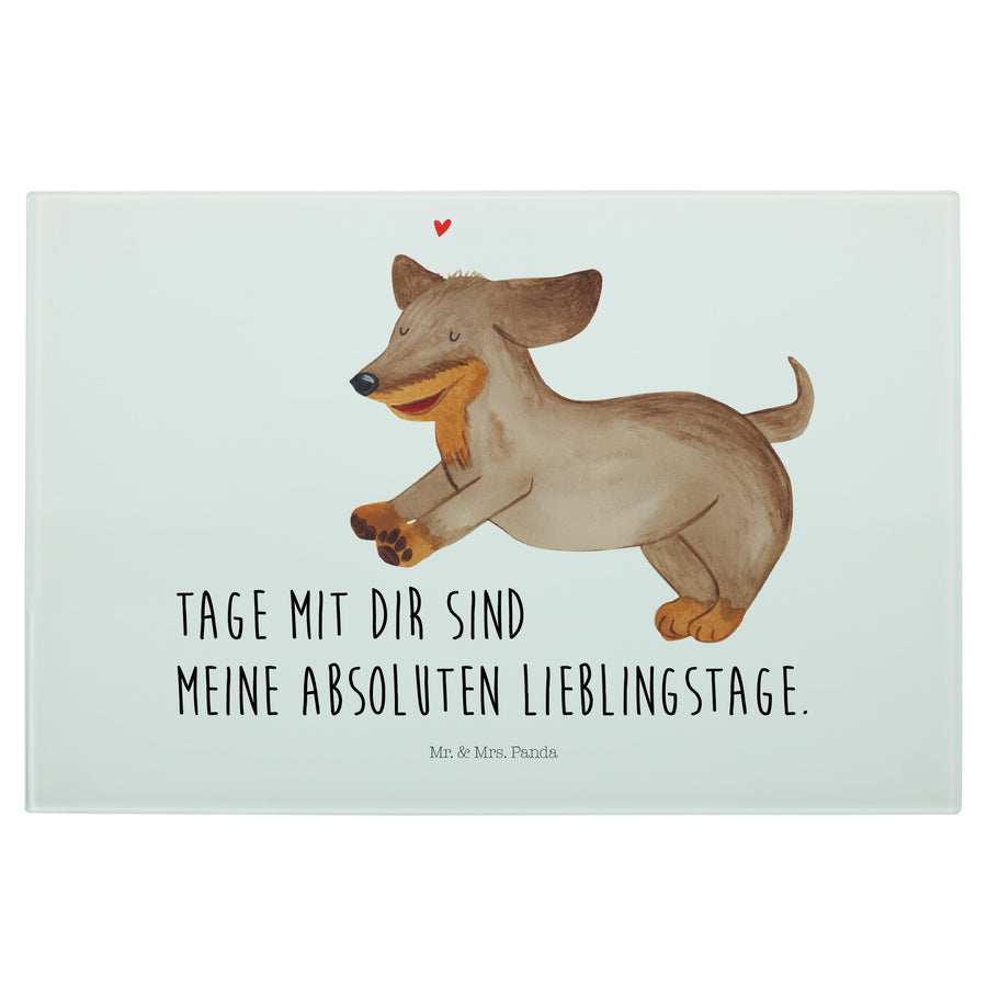 Medium Glas Schneidbrett Hund Dackel fröhlich - mit Spruch - Weiß