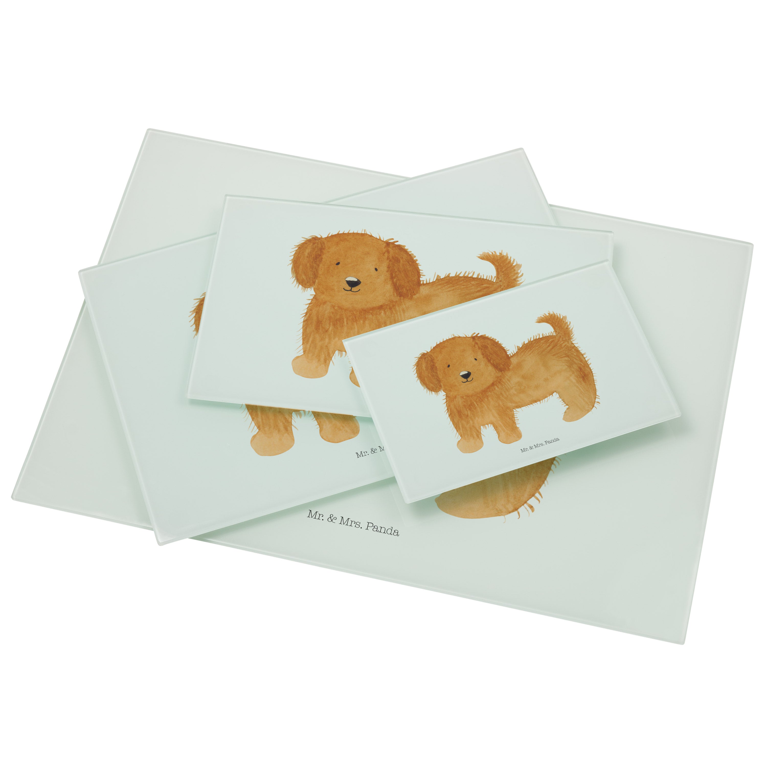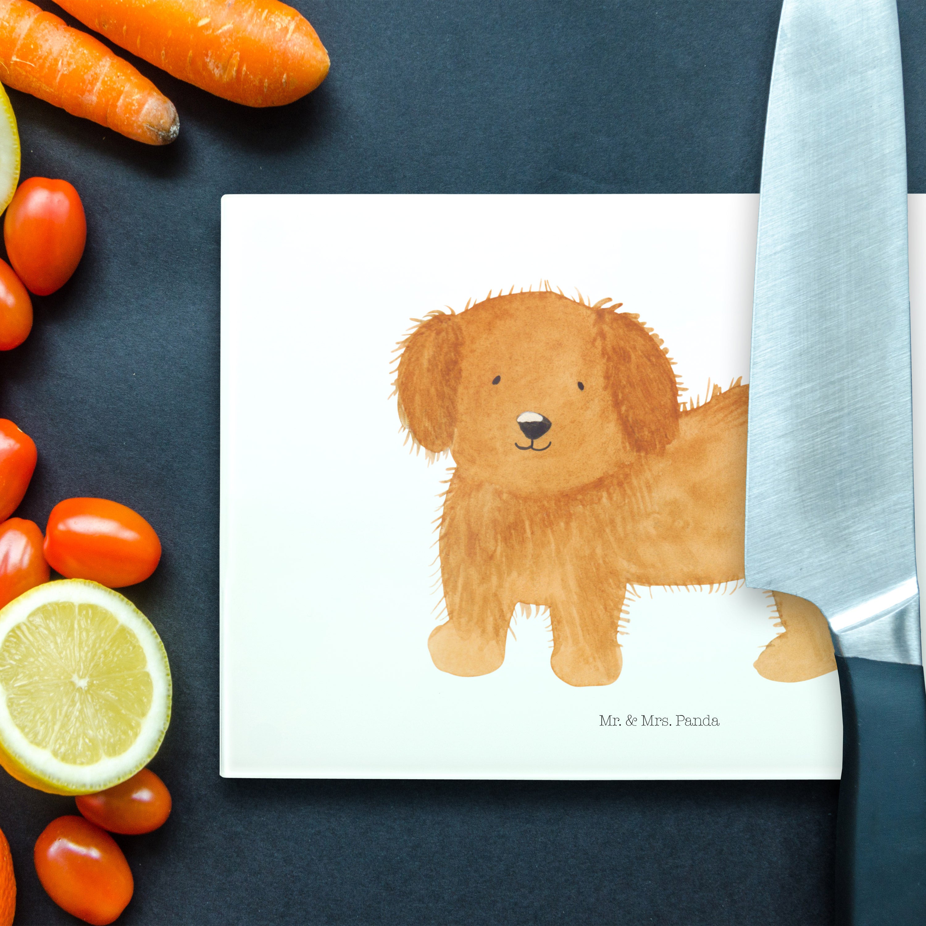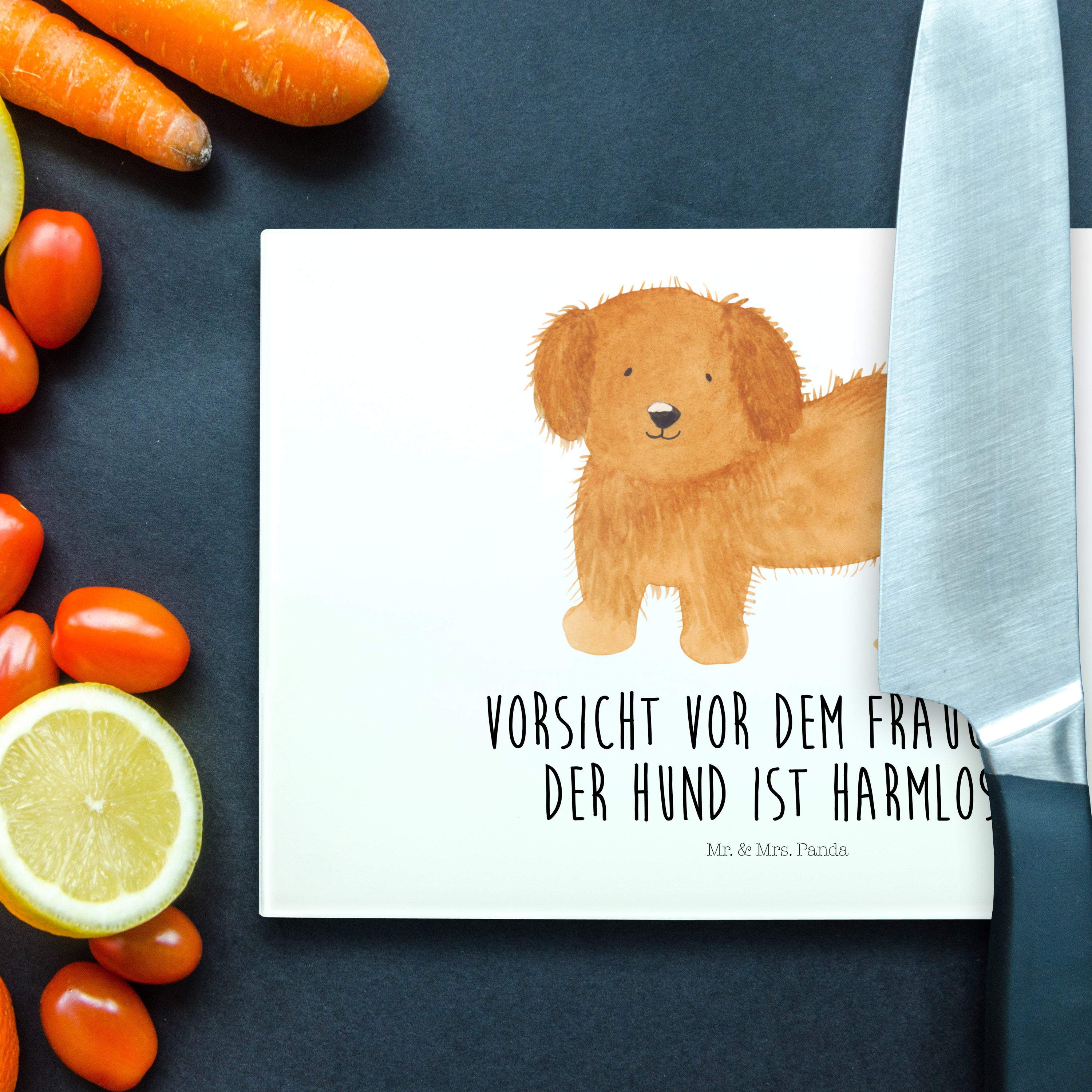 XL Glas Schneidbrett Hund flauschig - mit Spruch - Hundeglück