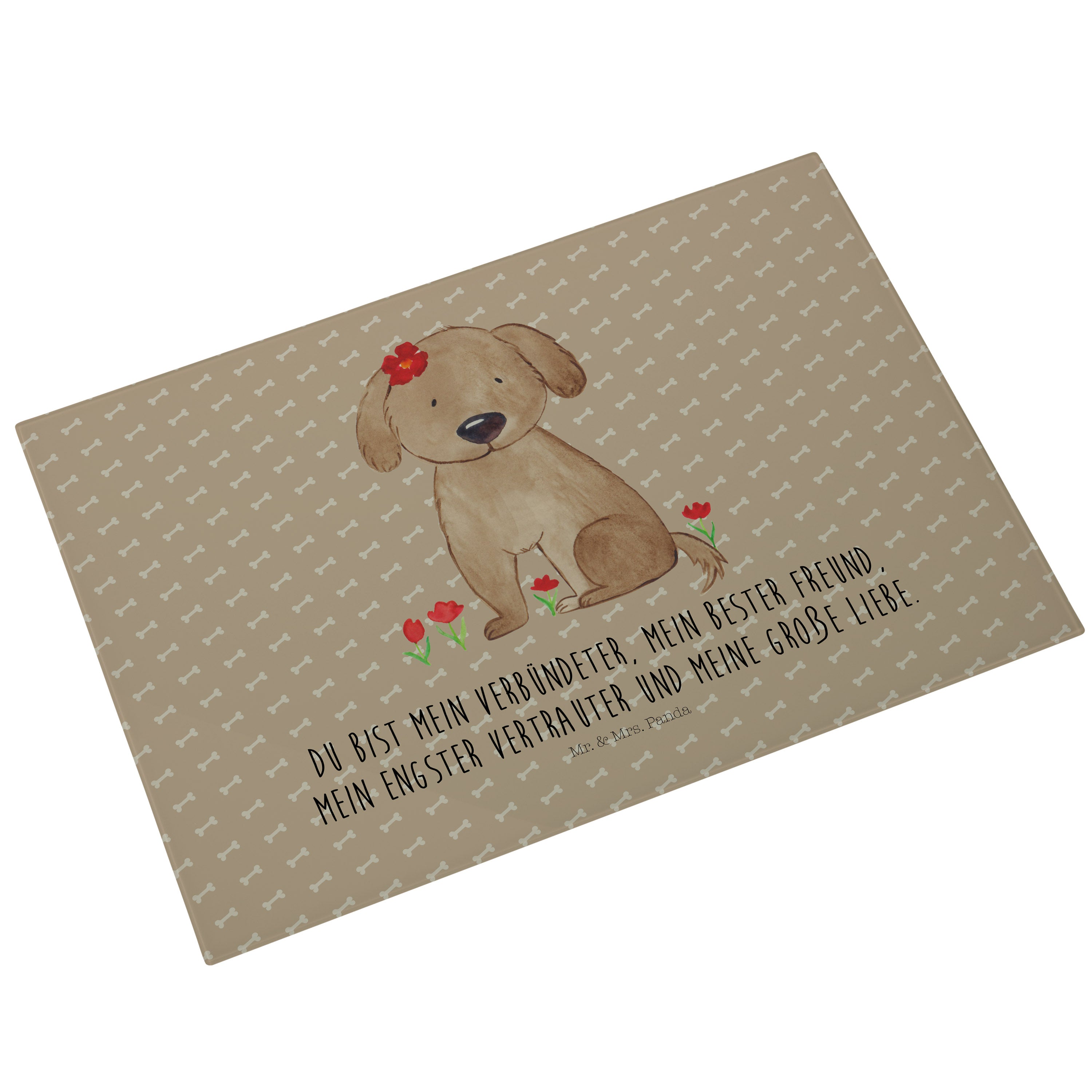 XL Glas Schneidbrett Hund Hundedame - ohne Spruch - Hundeglück