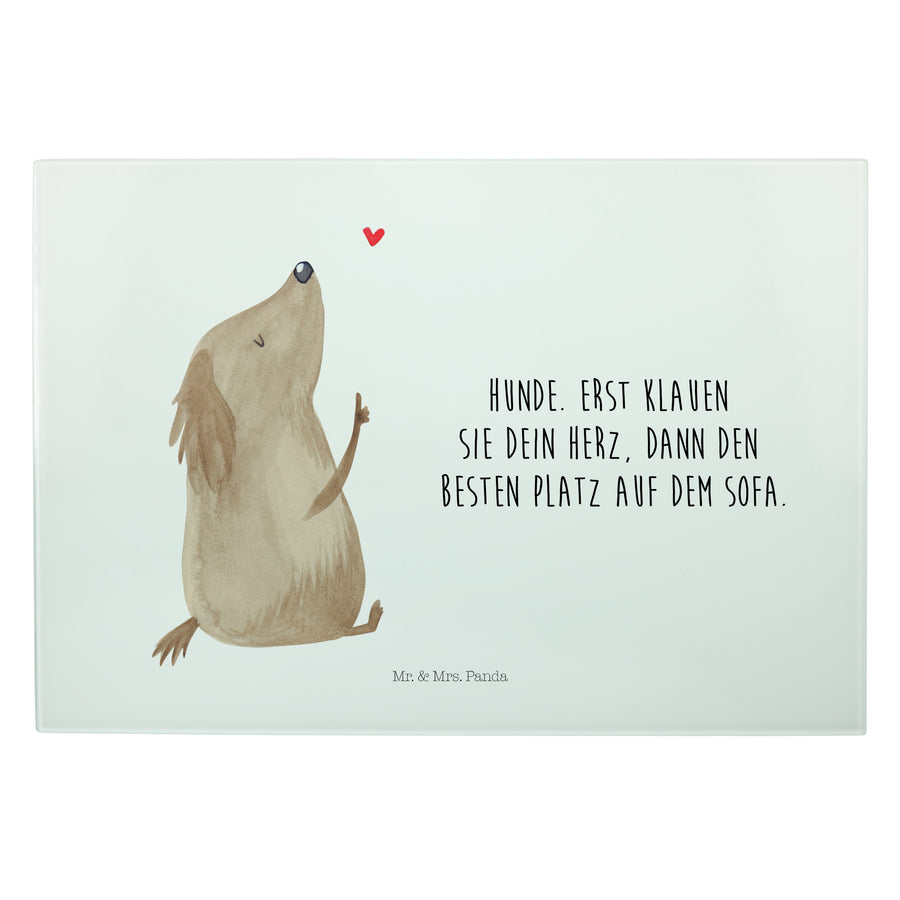 XL Glas Schneidbrett Hund Liebe - mit Spruch - Weiß