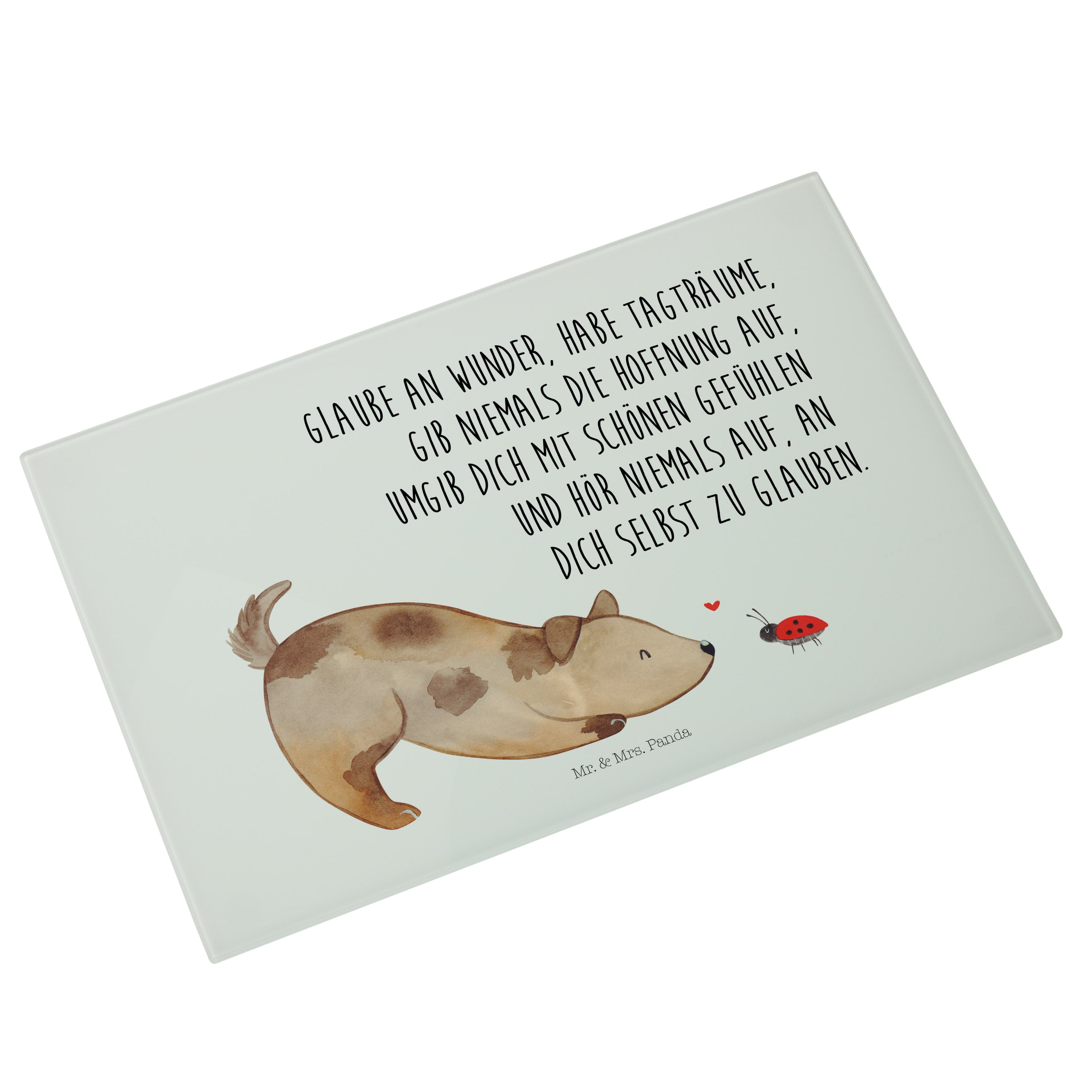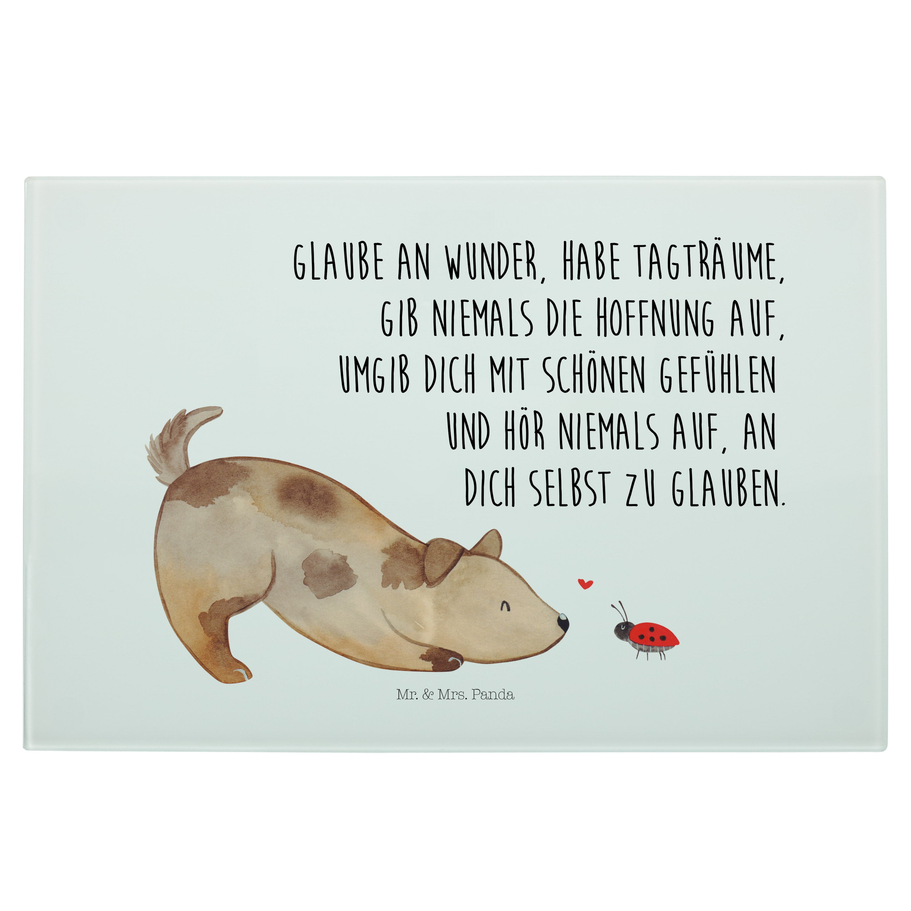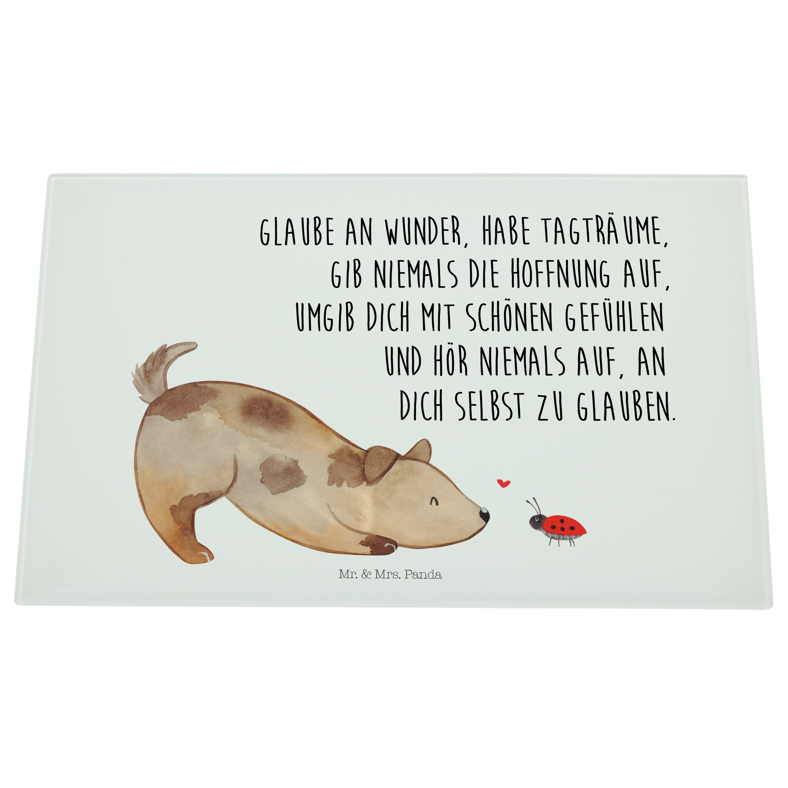 Medium Glas Schneidbrett Hund Marienkäfer - mit Spruch - Hundeglück