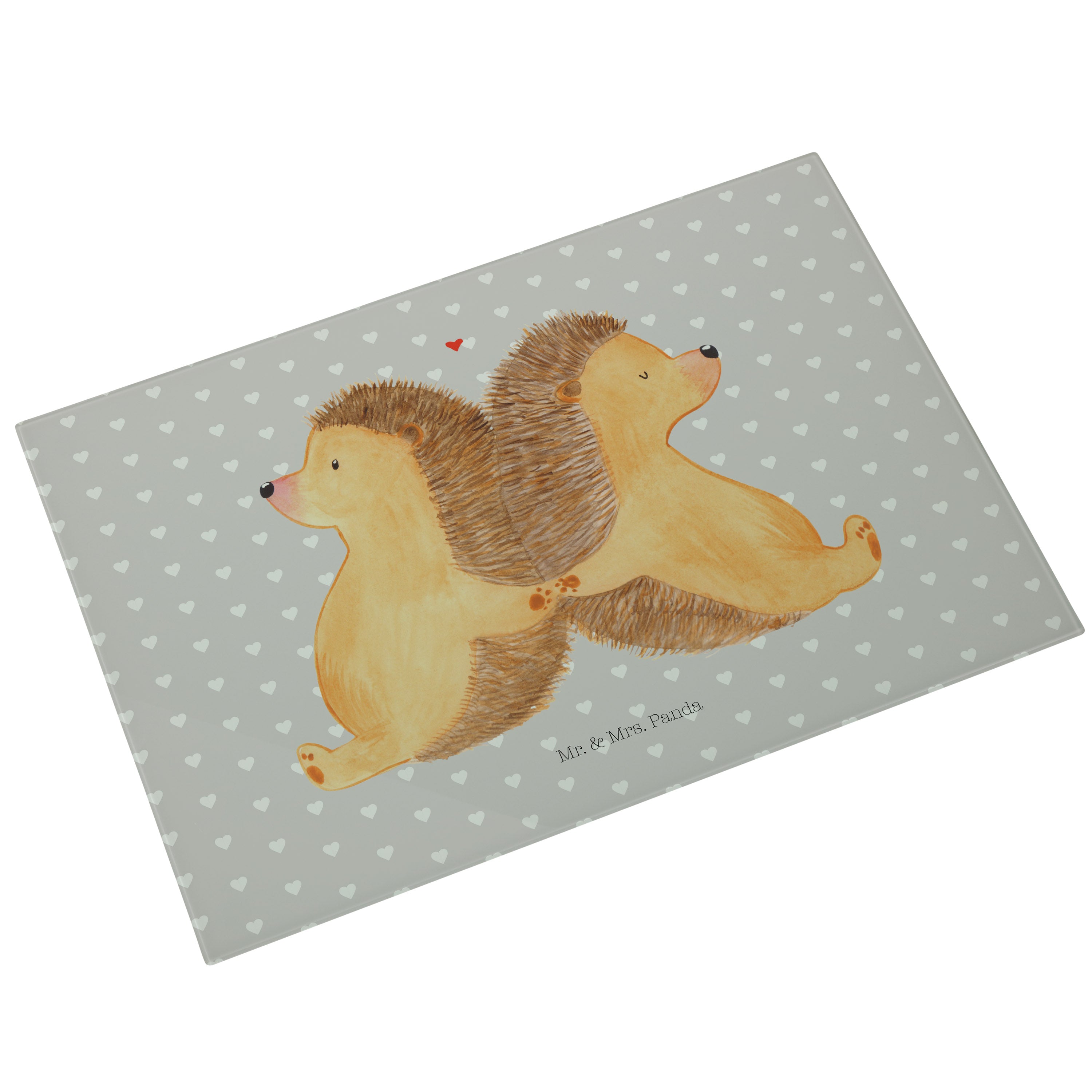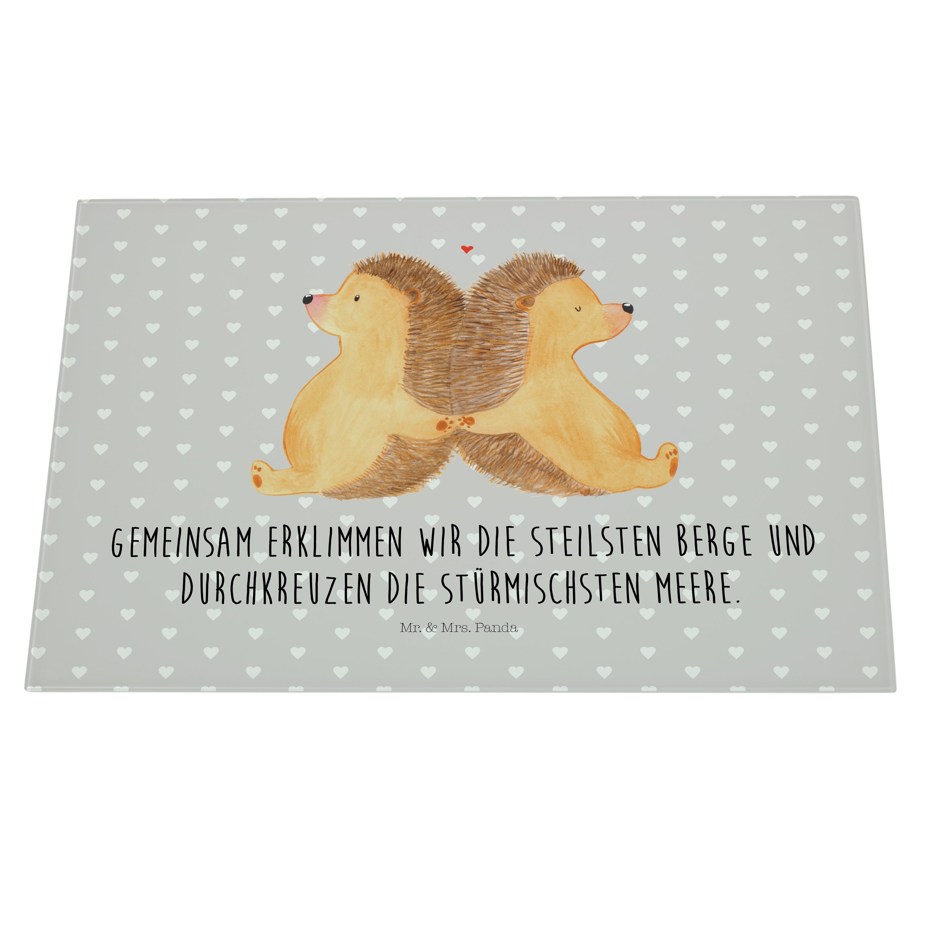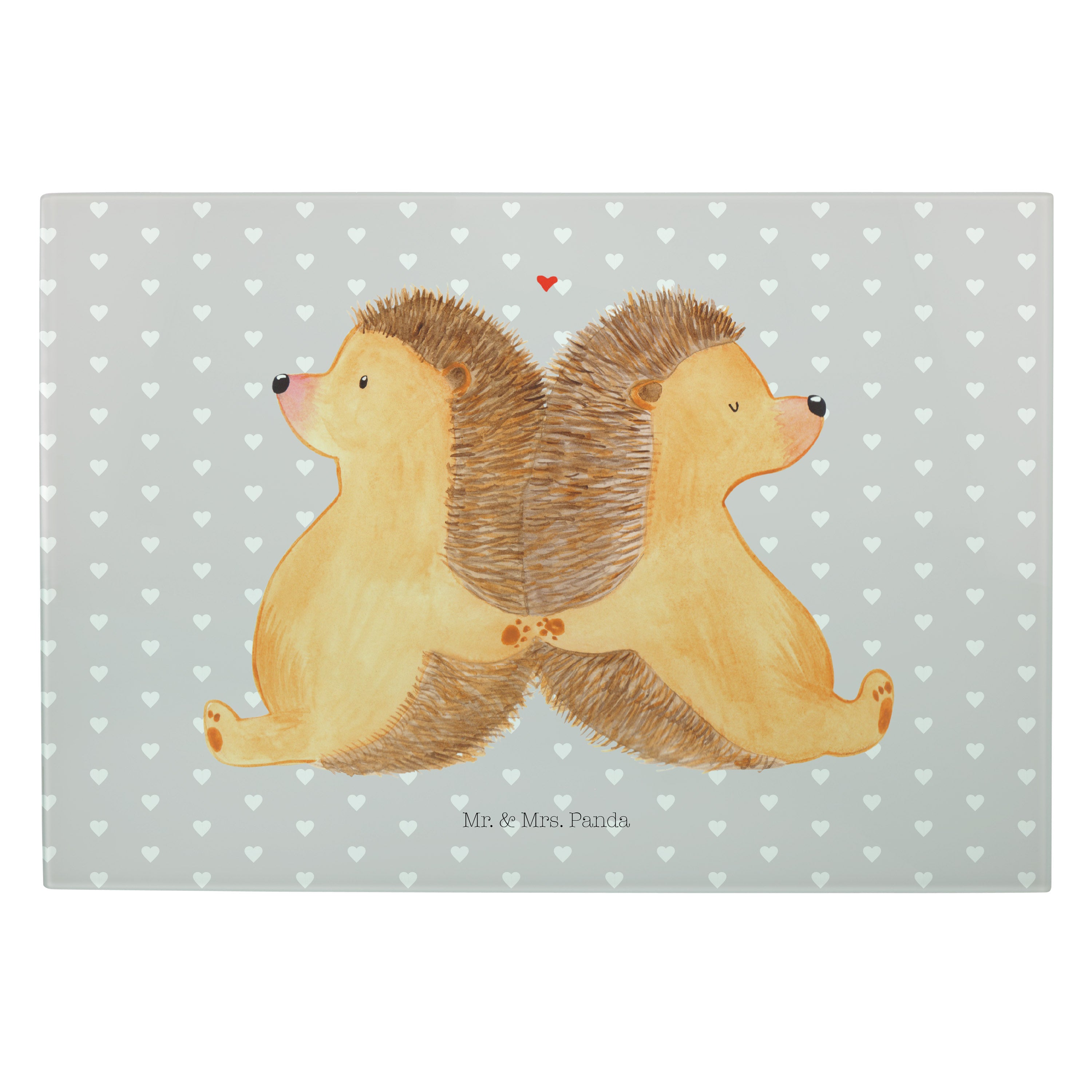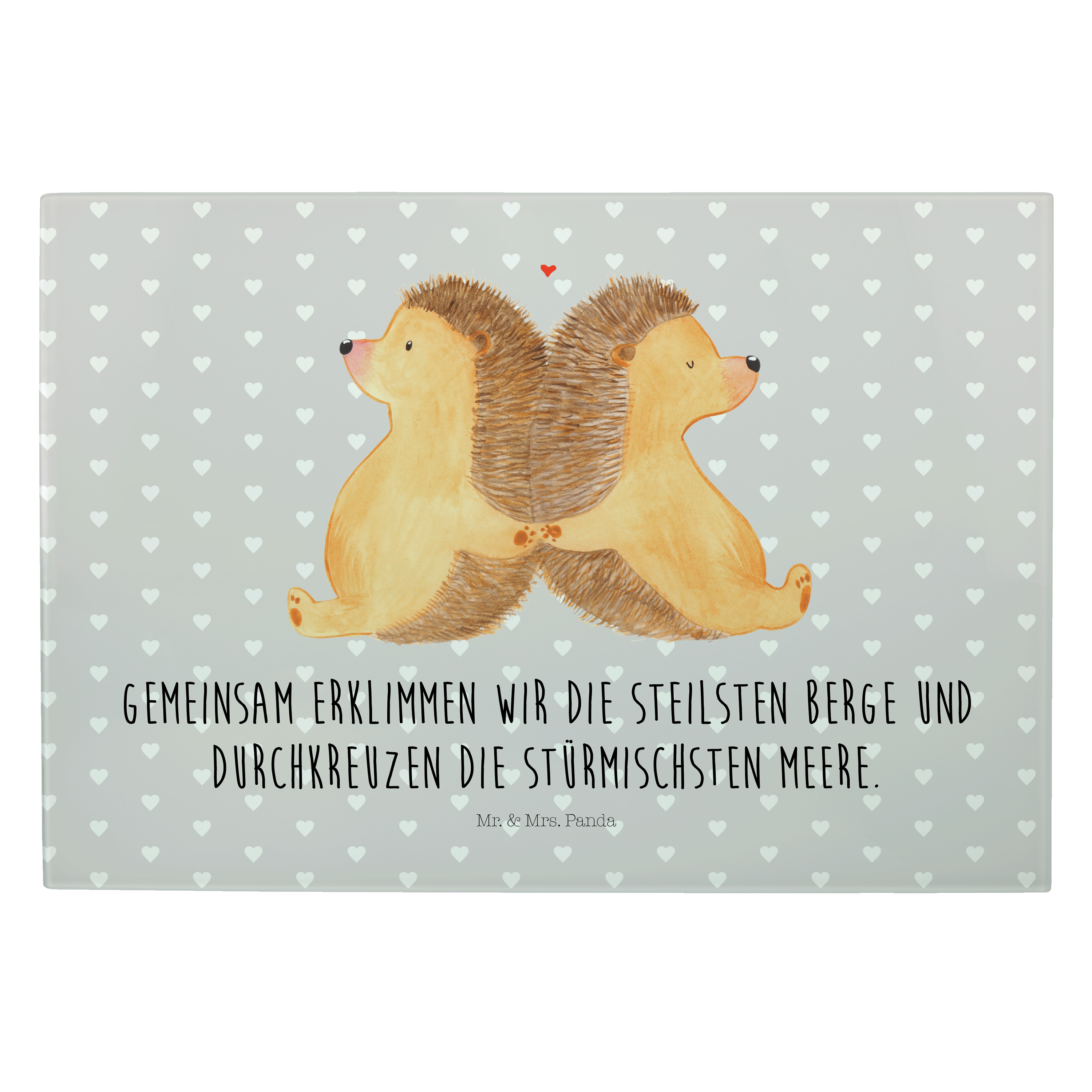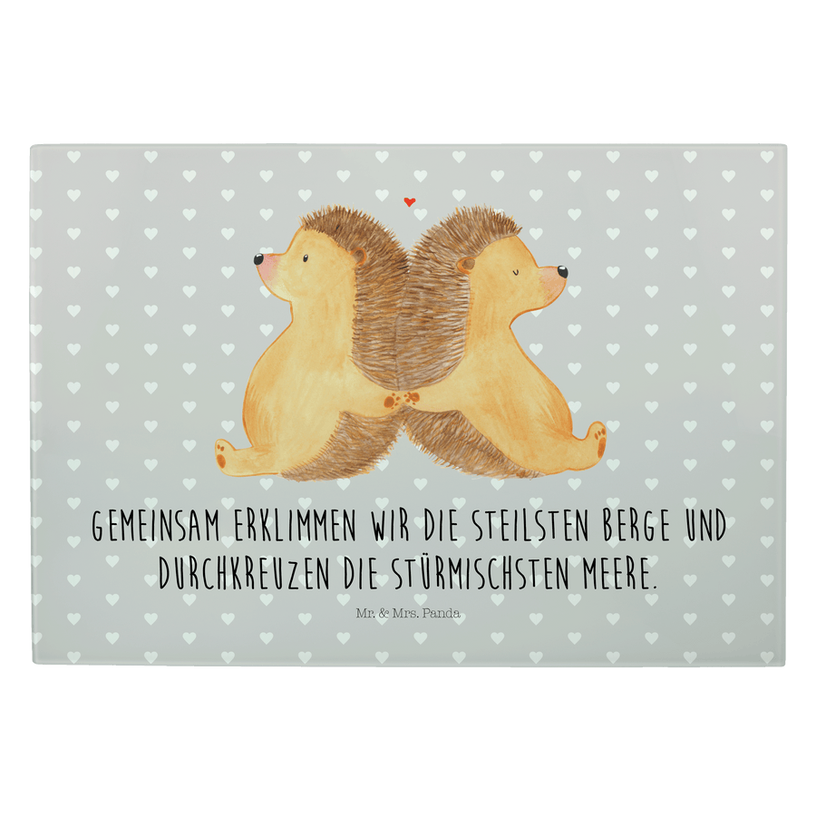 XL Glas Schneidbrett Igel händchenhaltend - mit Spruch - Grau Pastell