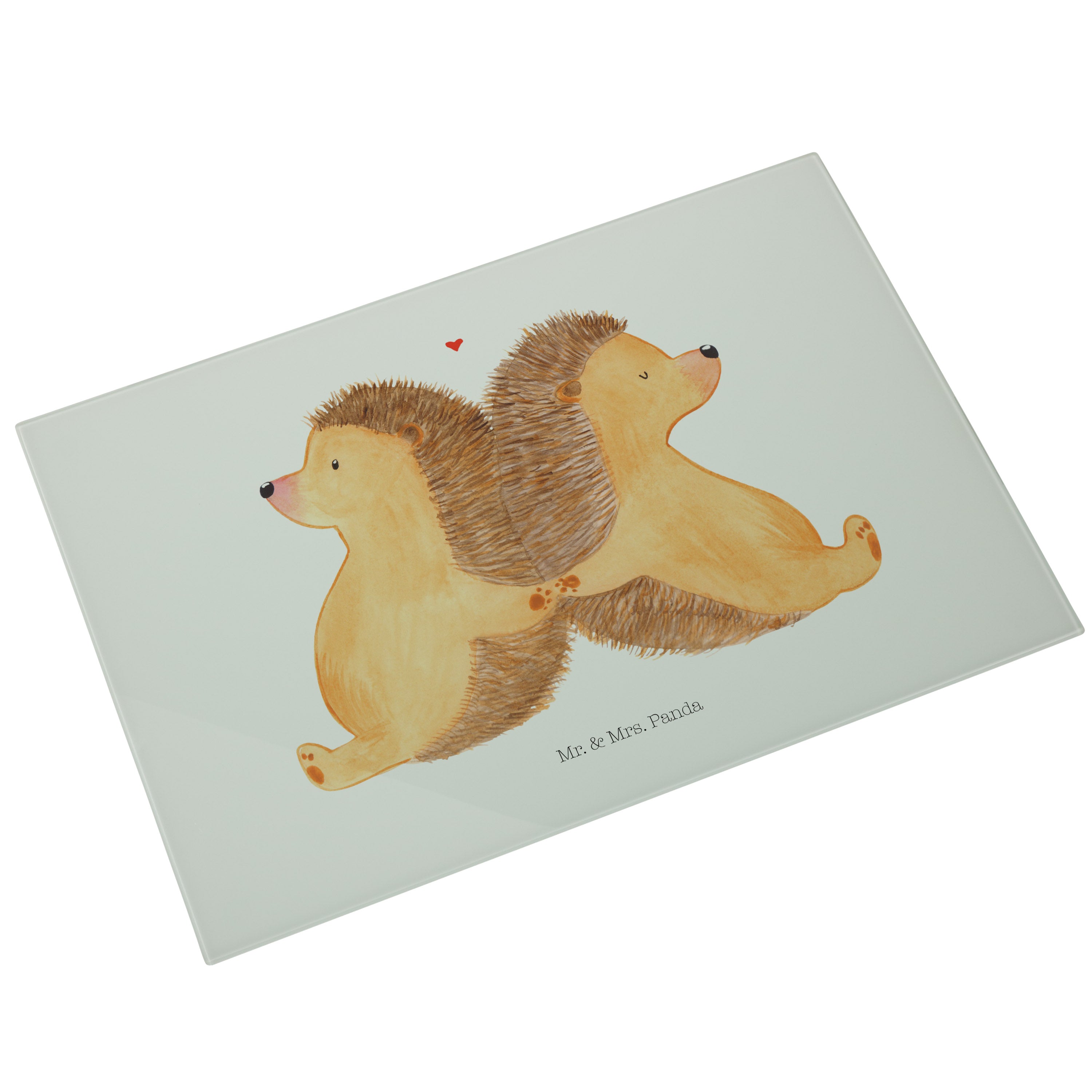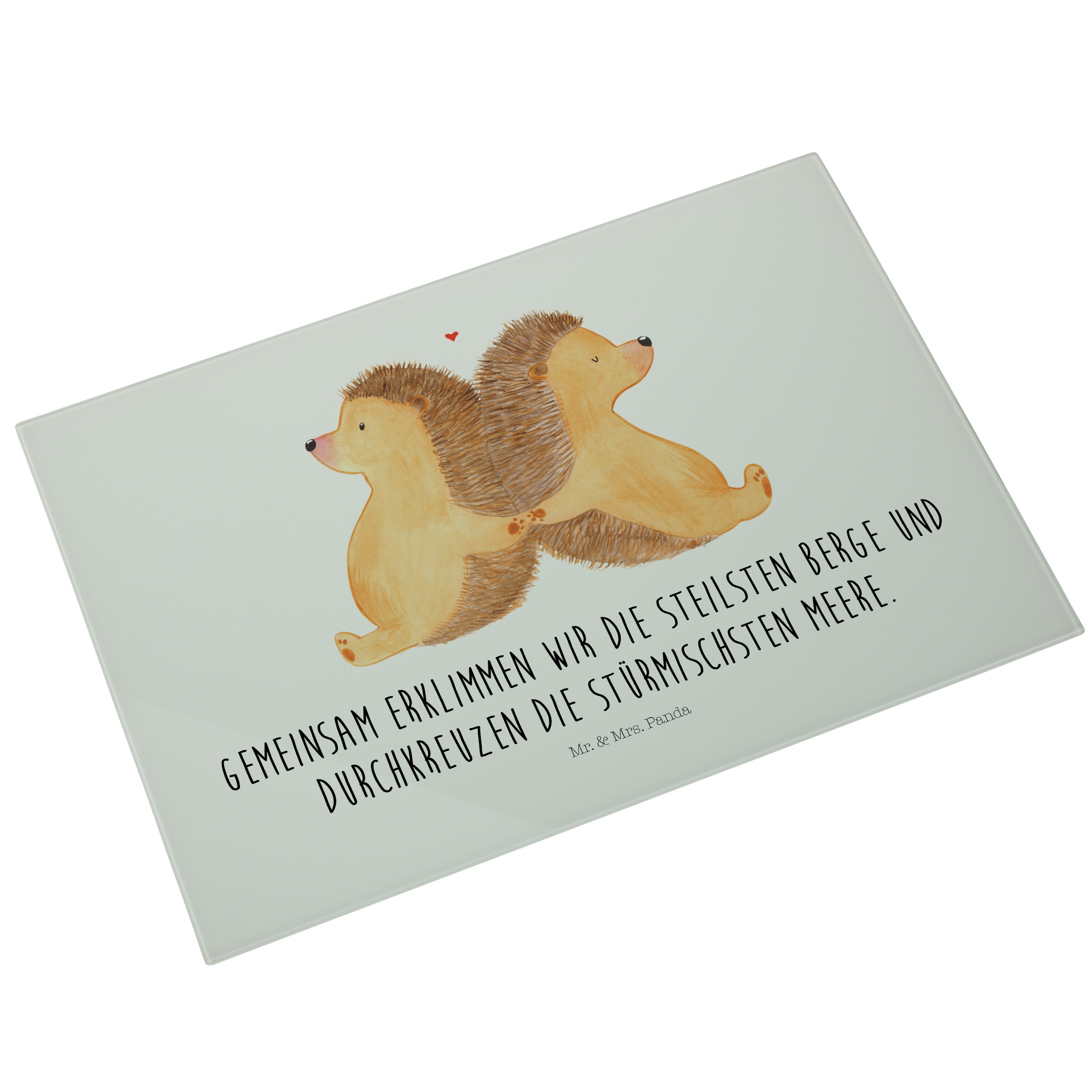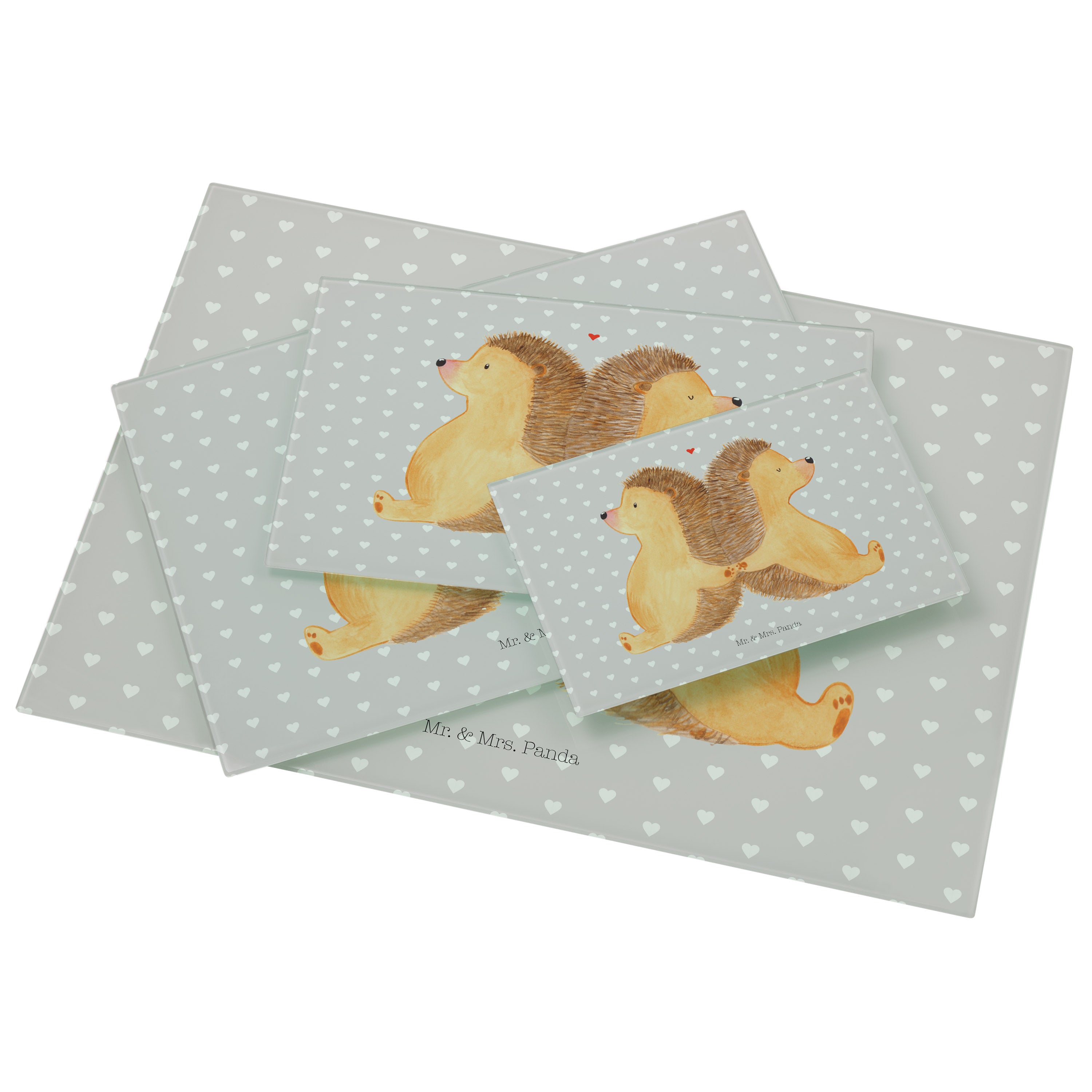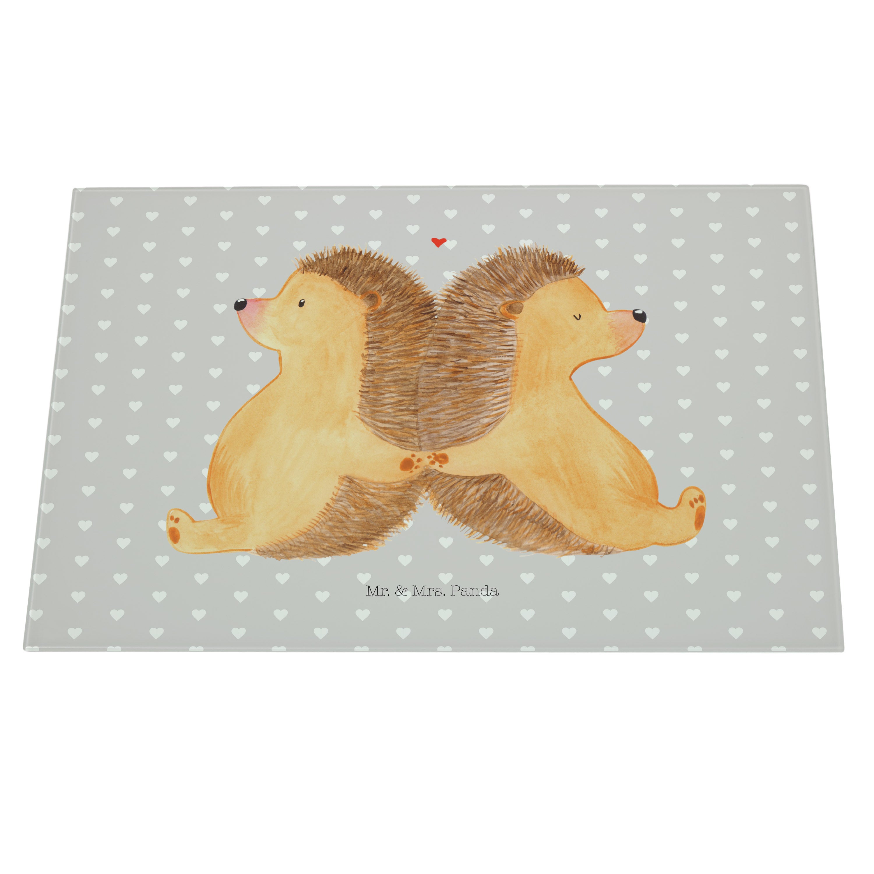 XL Glas Schneidbrett Igel händchenhaltend - mit Spruch - Grau Pastell