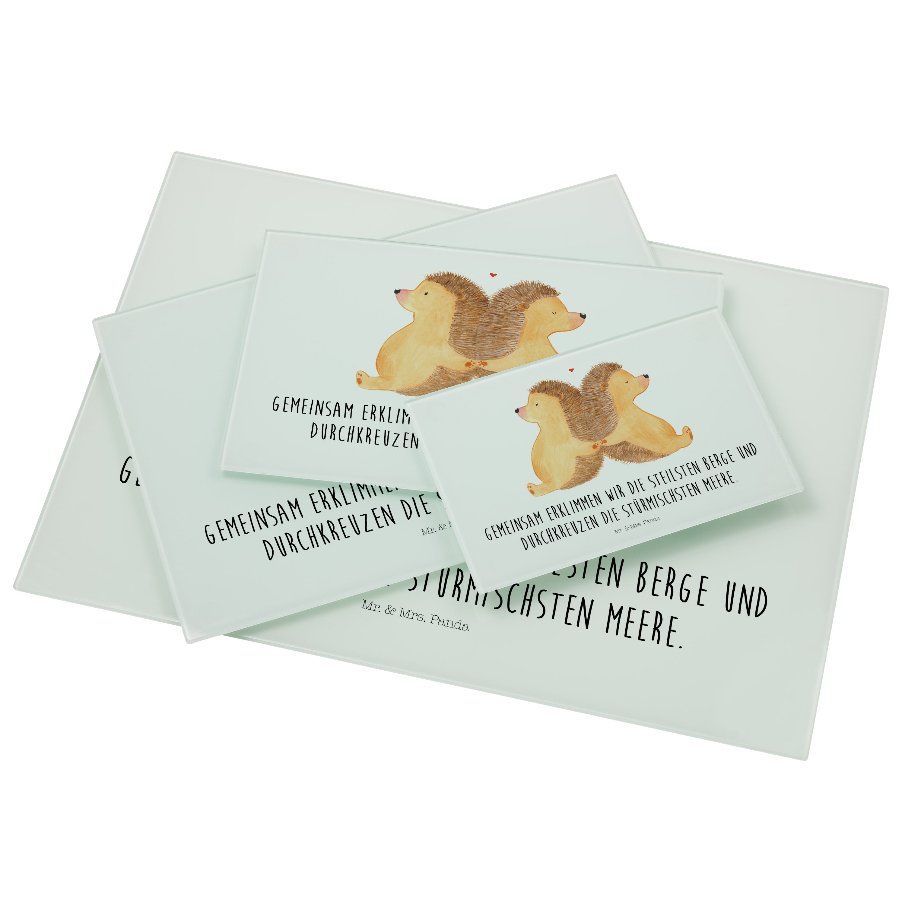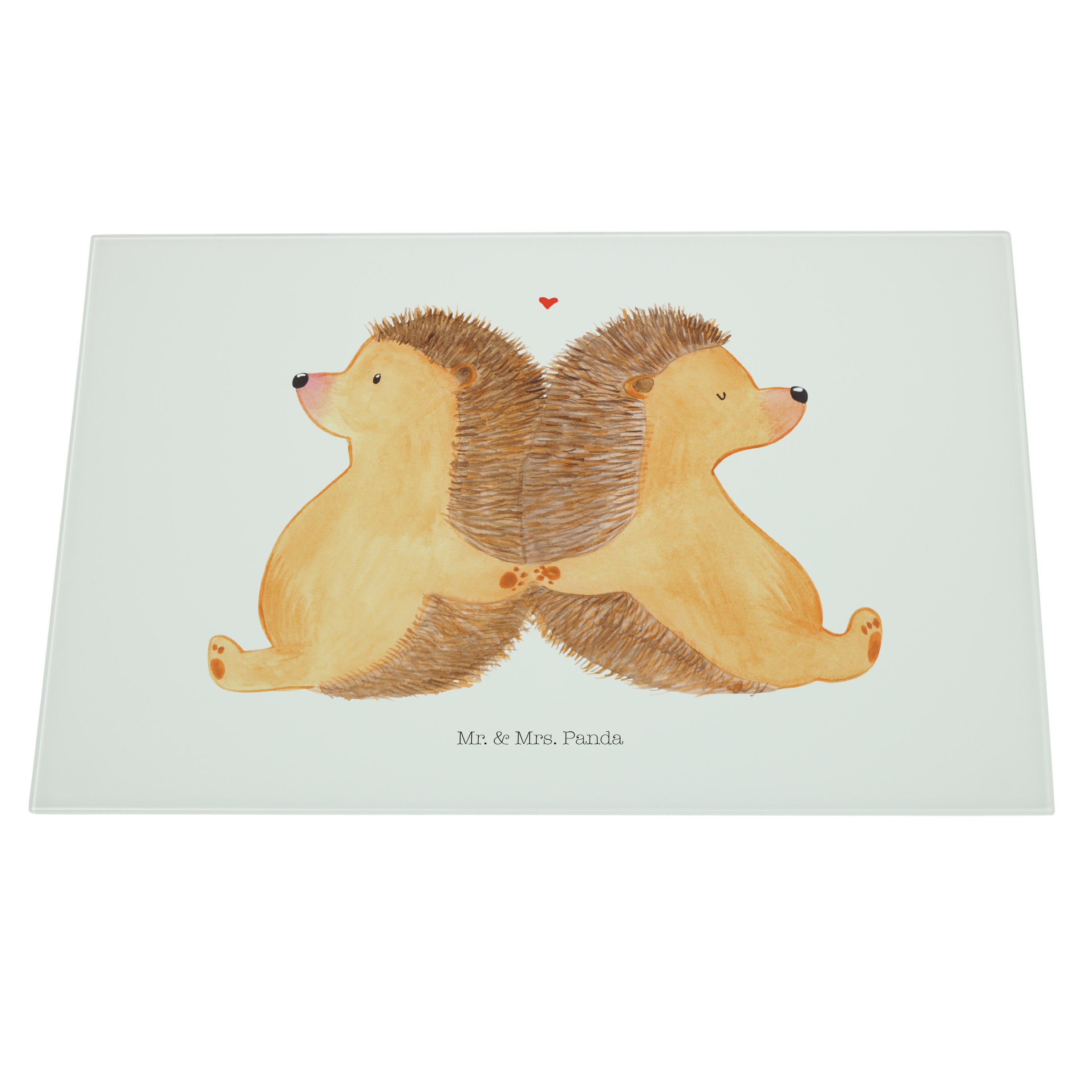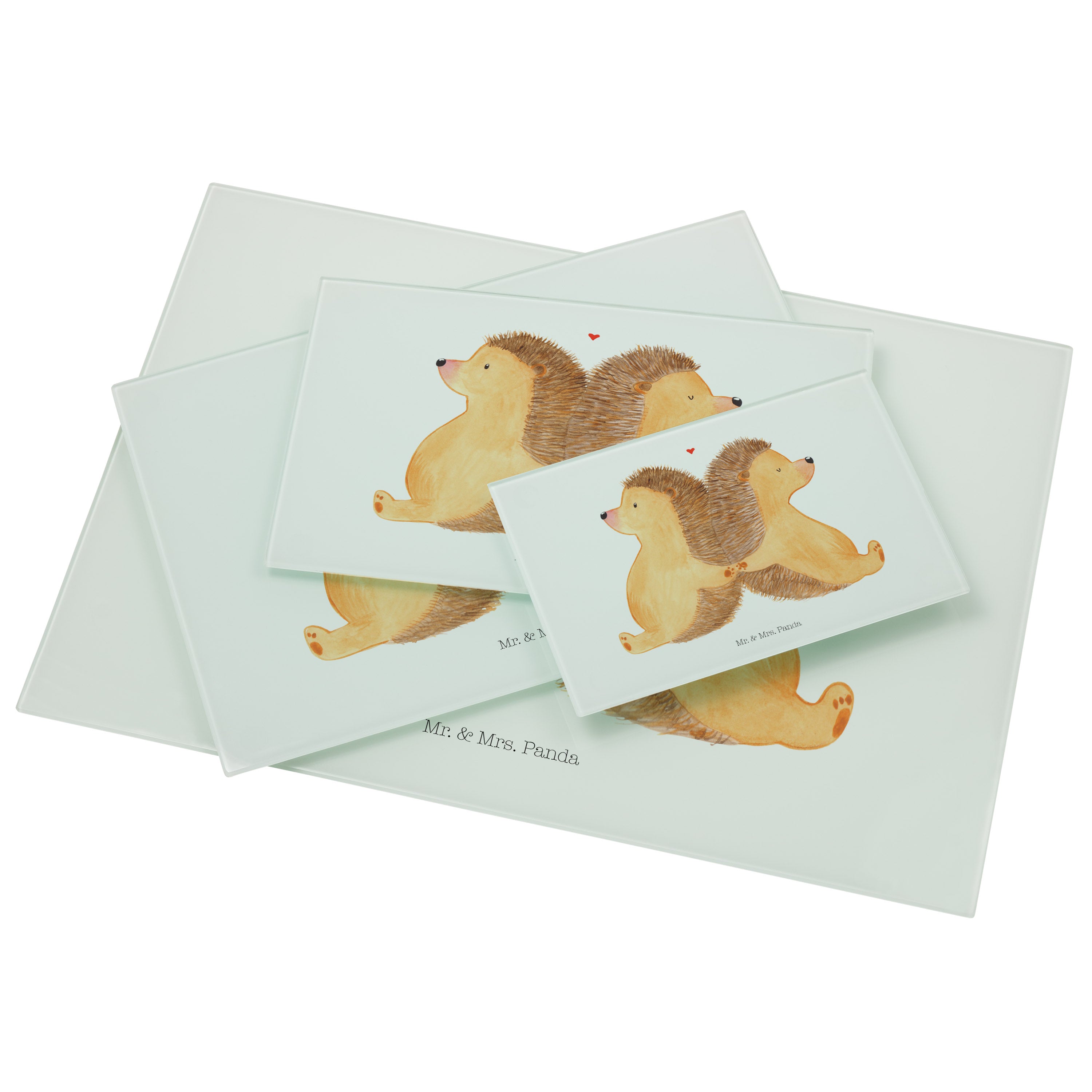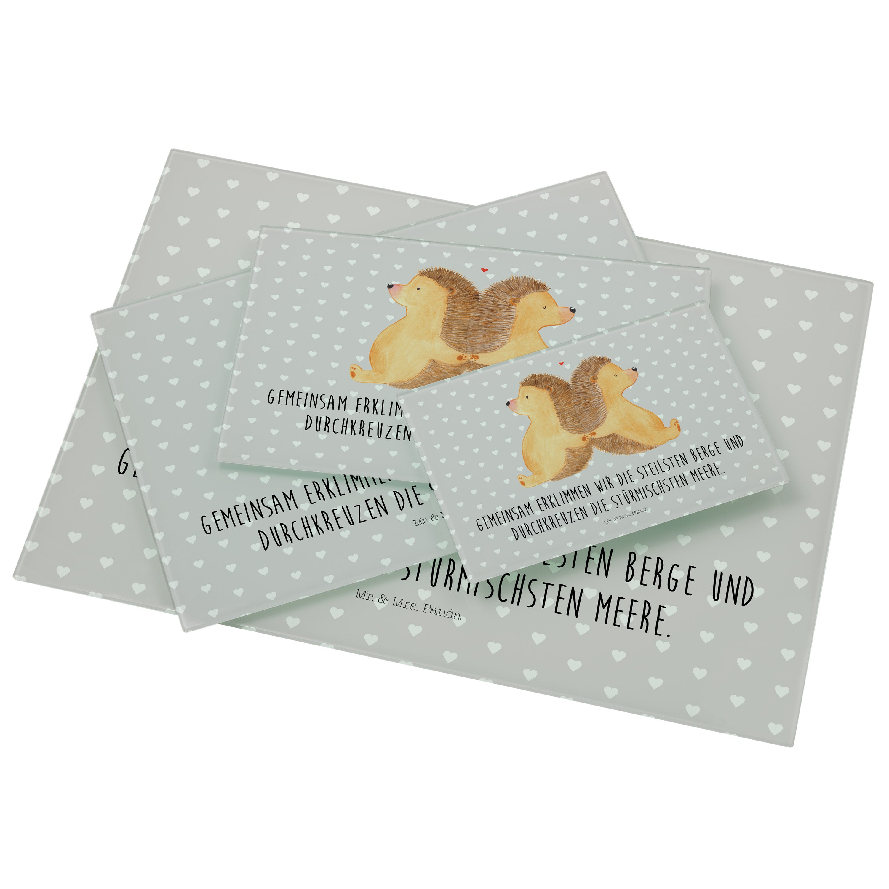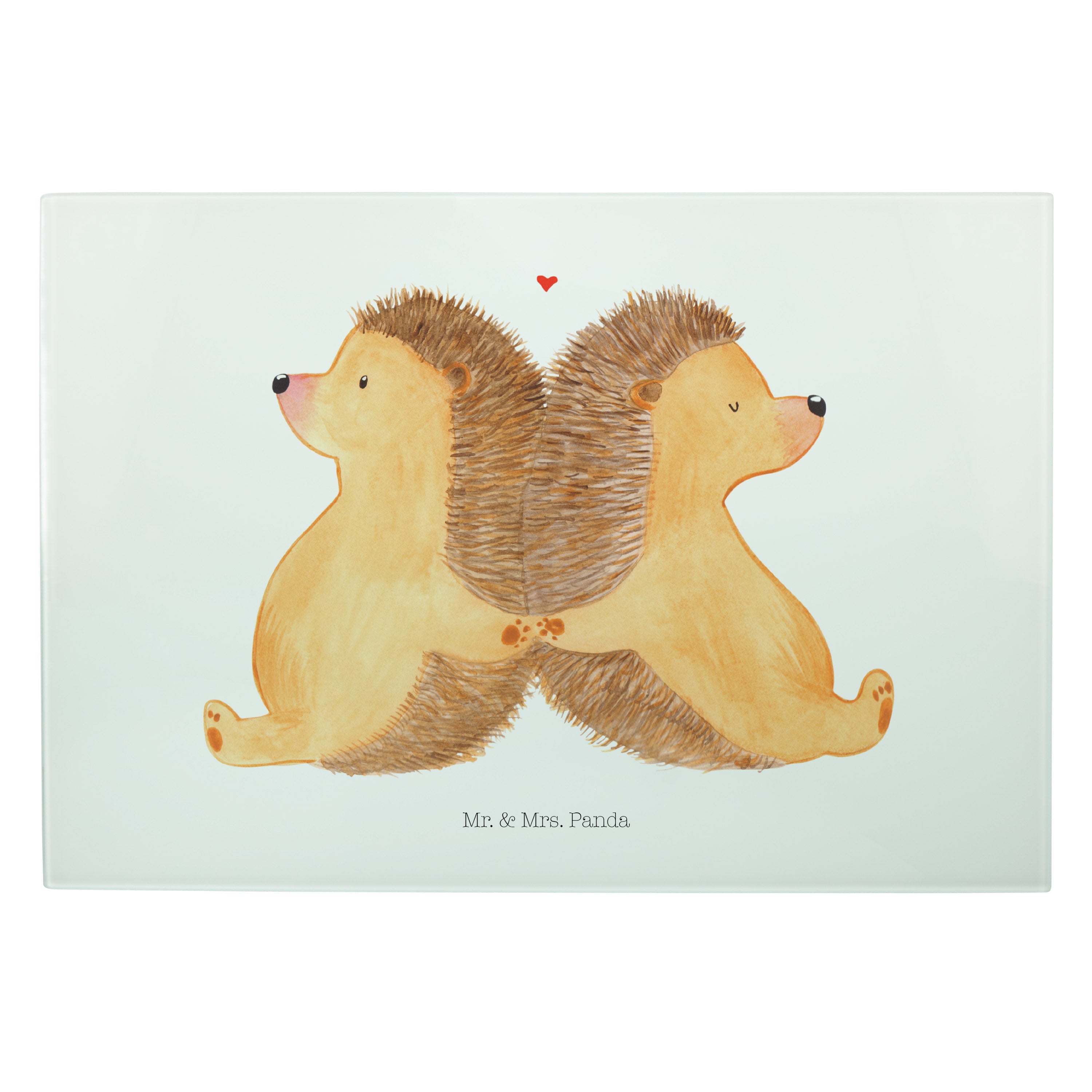 XL Glas Schneidbrett Igel händchenhaltend - mit Spruch - Grau Pastell
