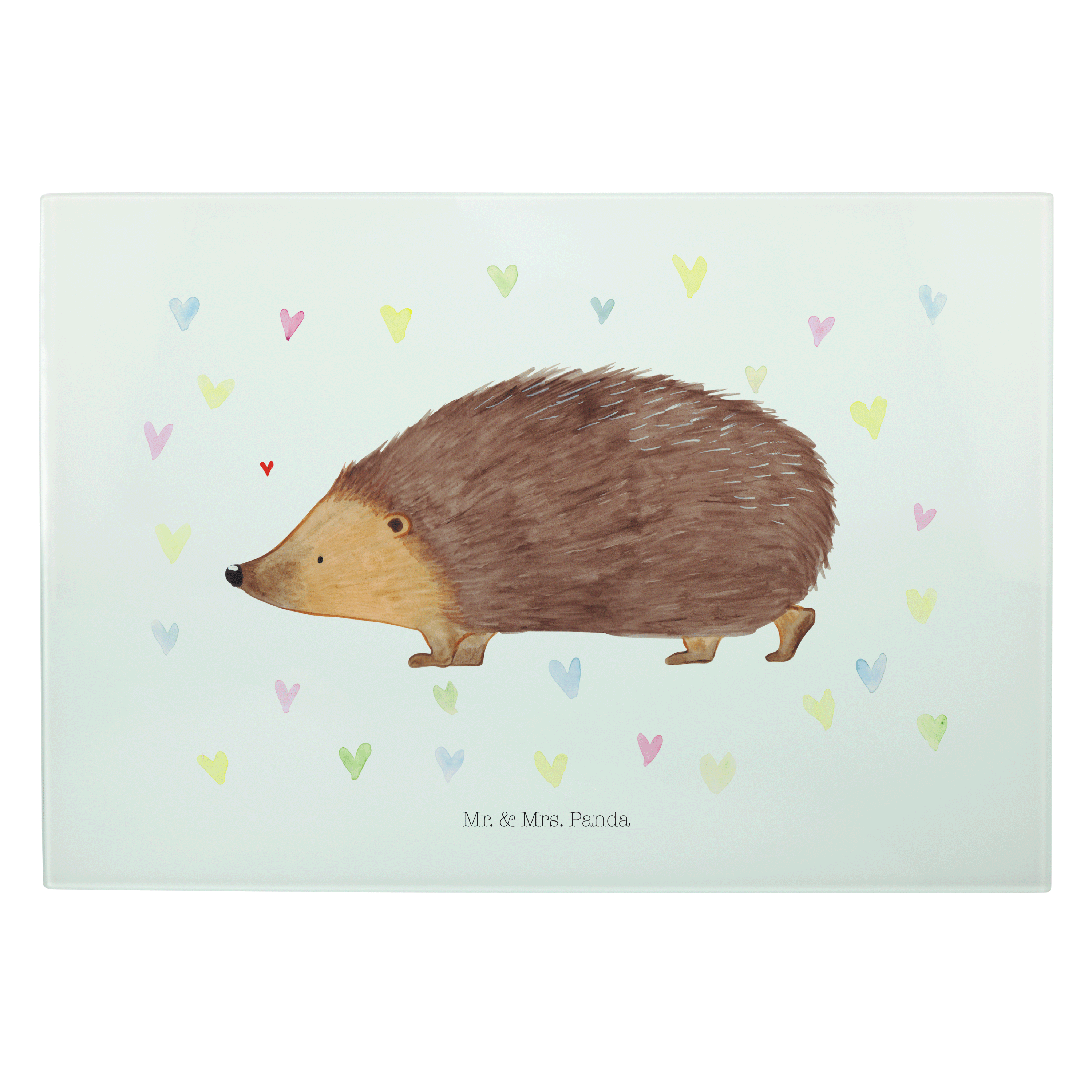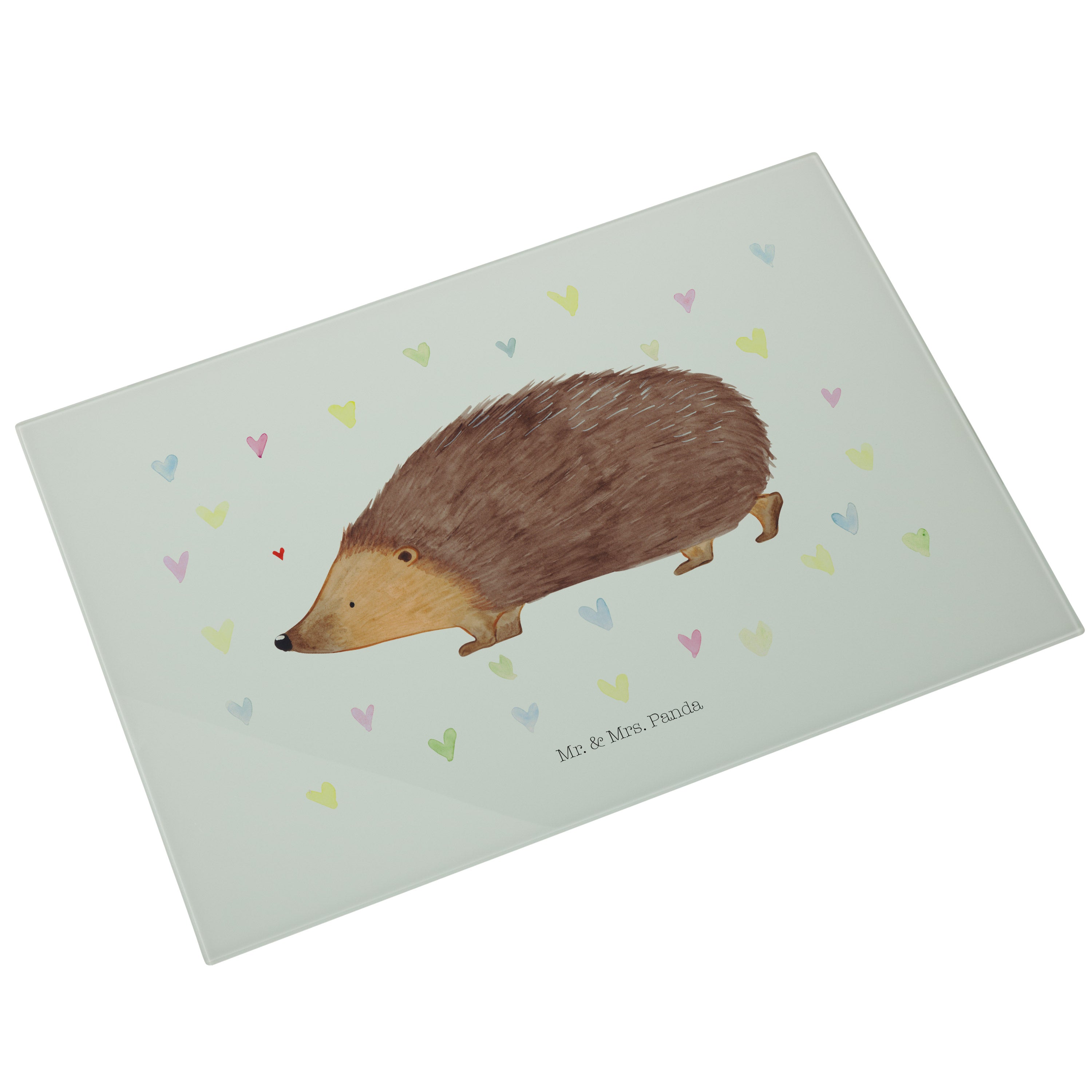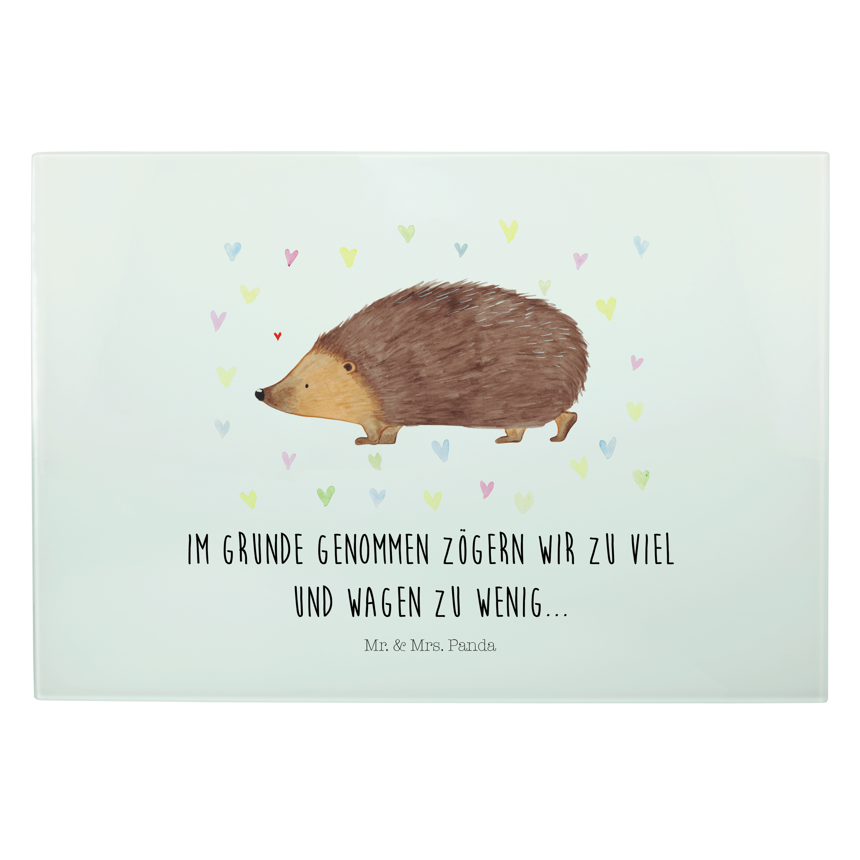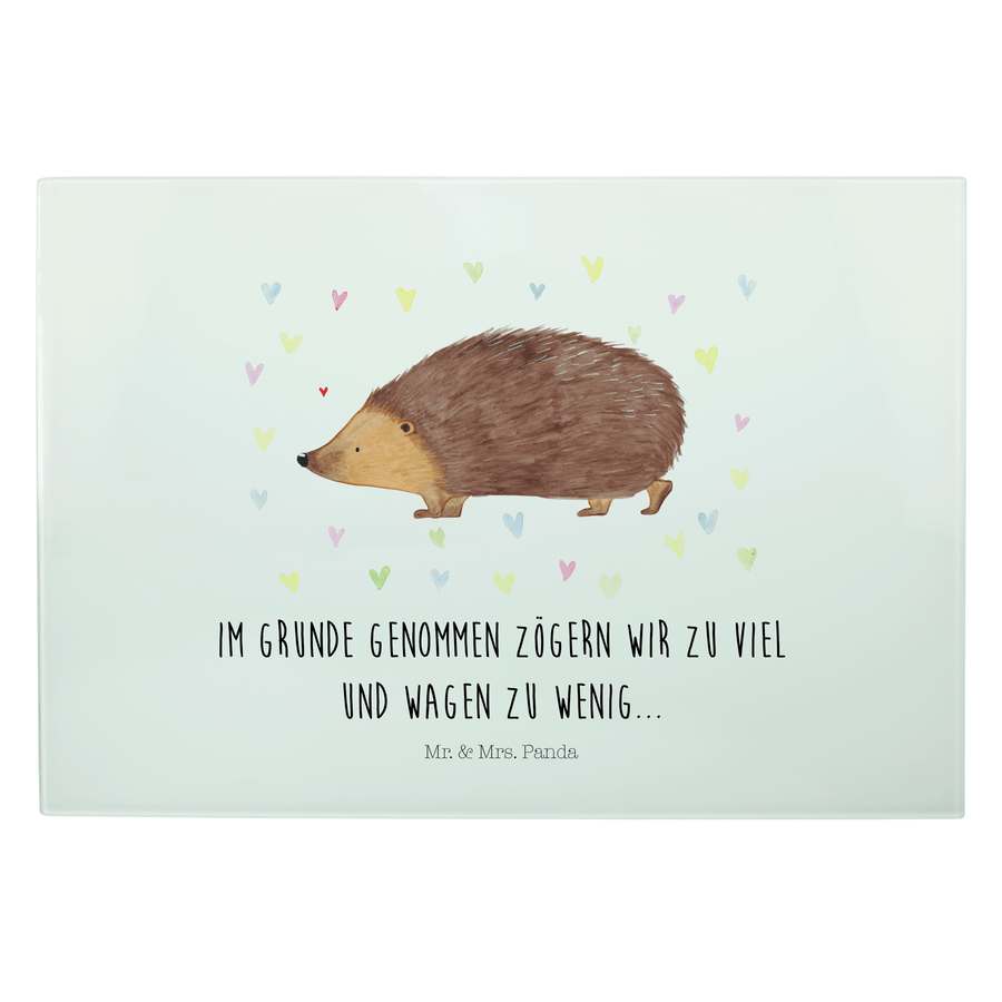 XL Glas Schneidbrett Igel Herzen - mit Spruch - Weiß