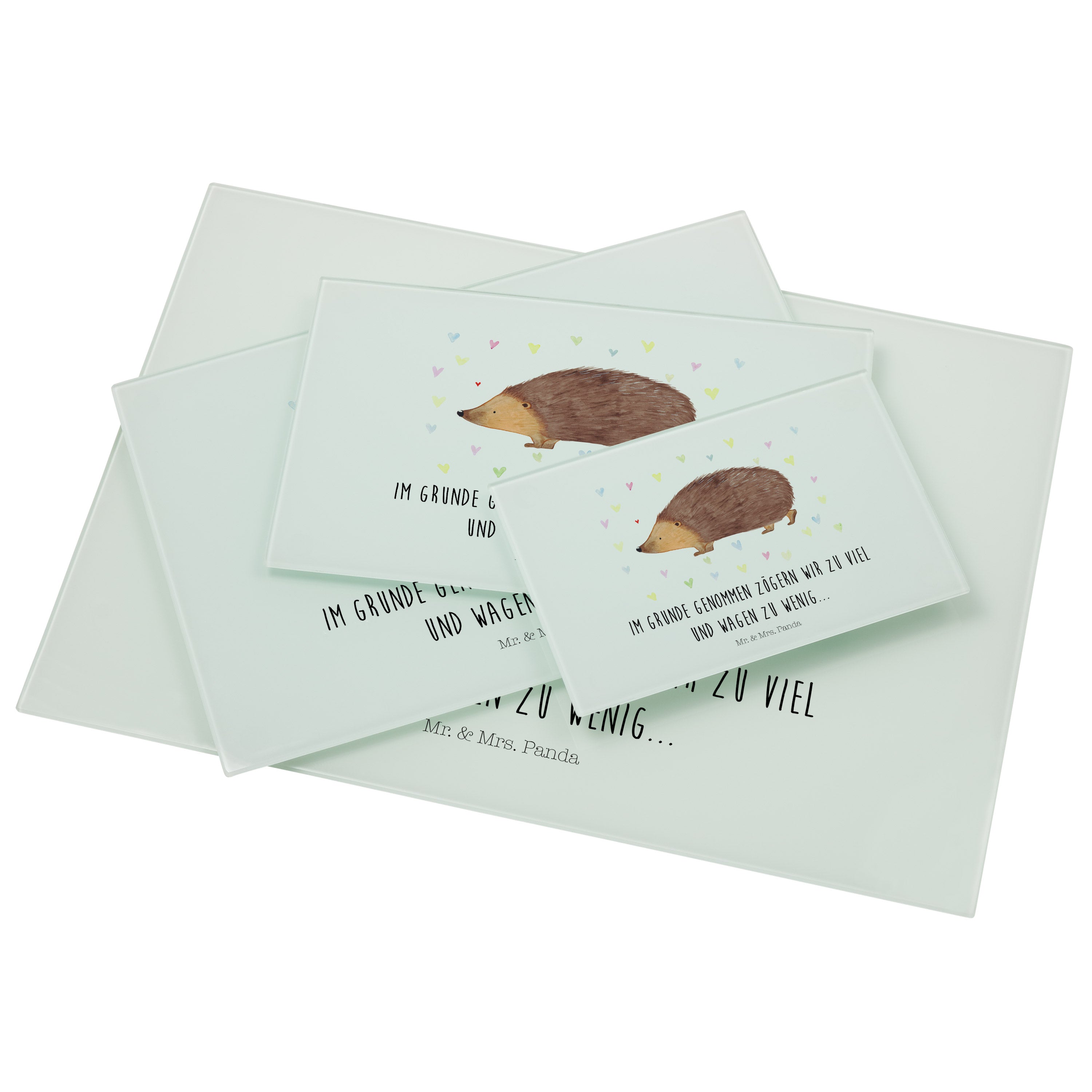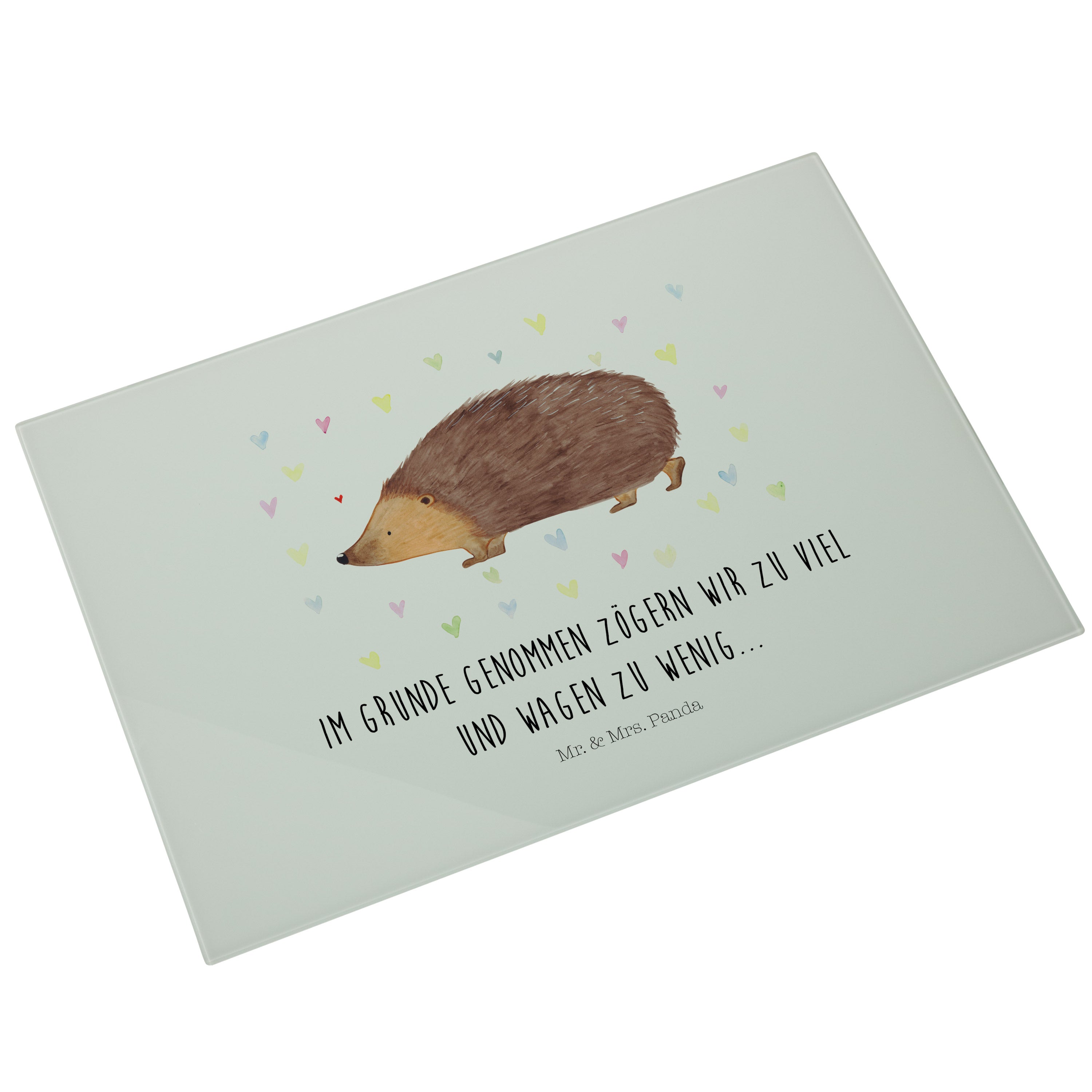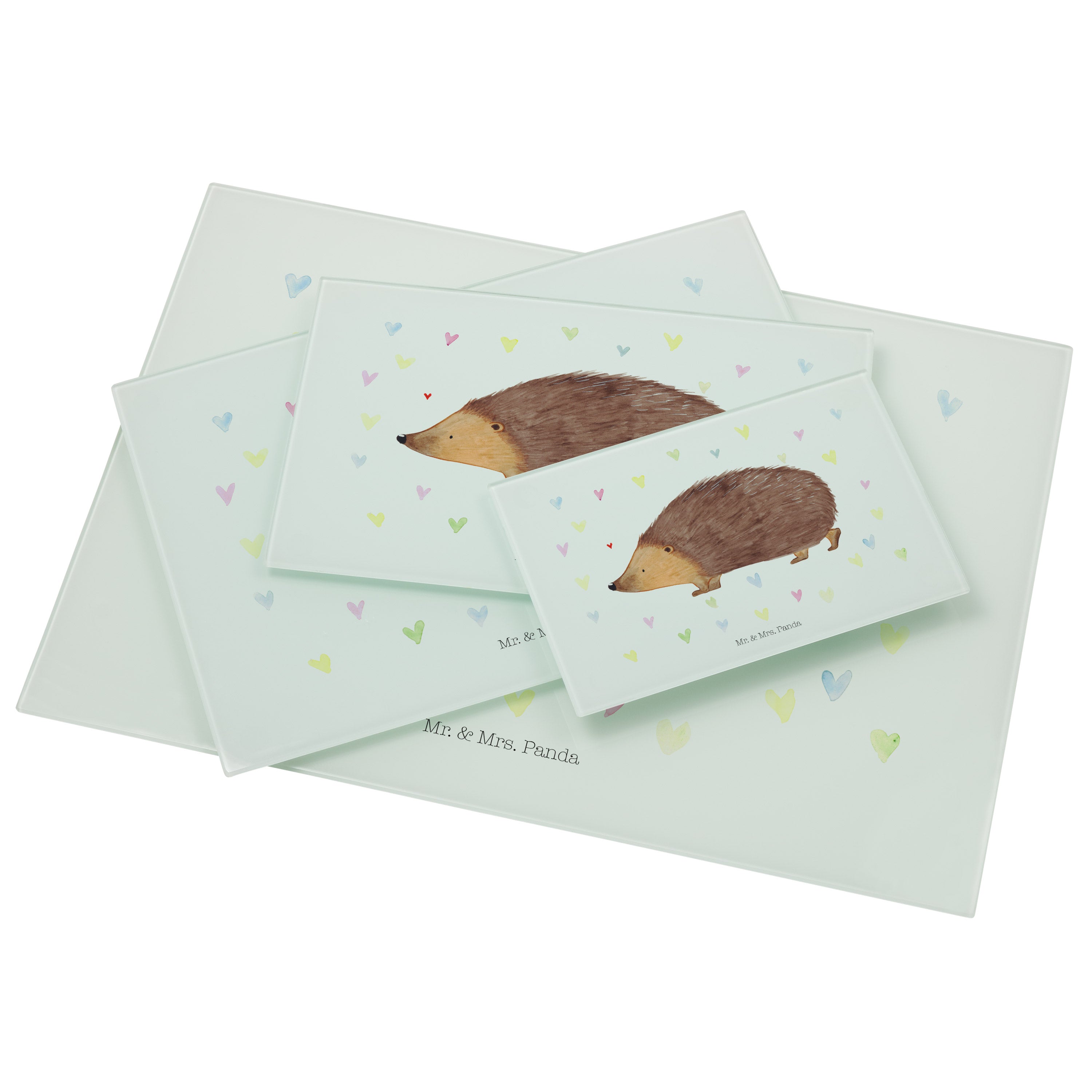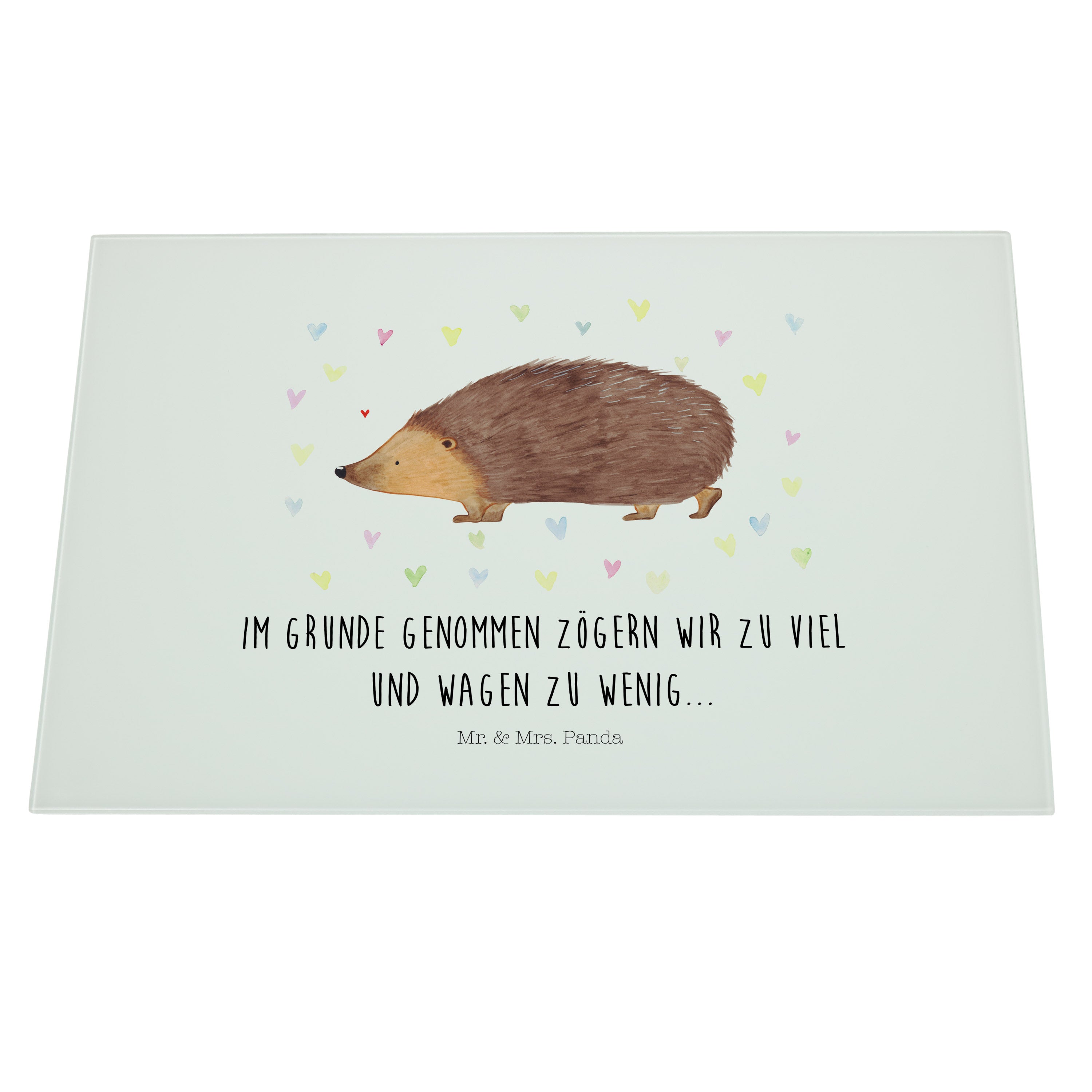 XL Glas Schneidbrett Igel Herzen - mit Spruch - Weiß