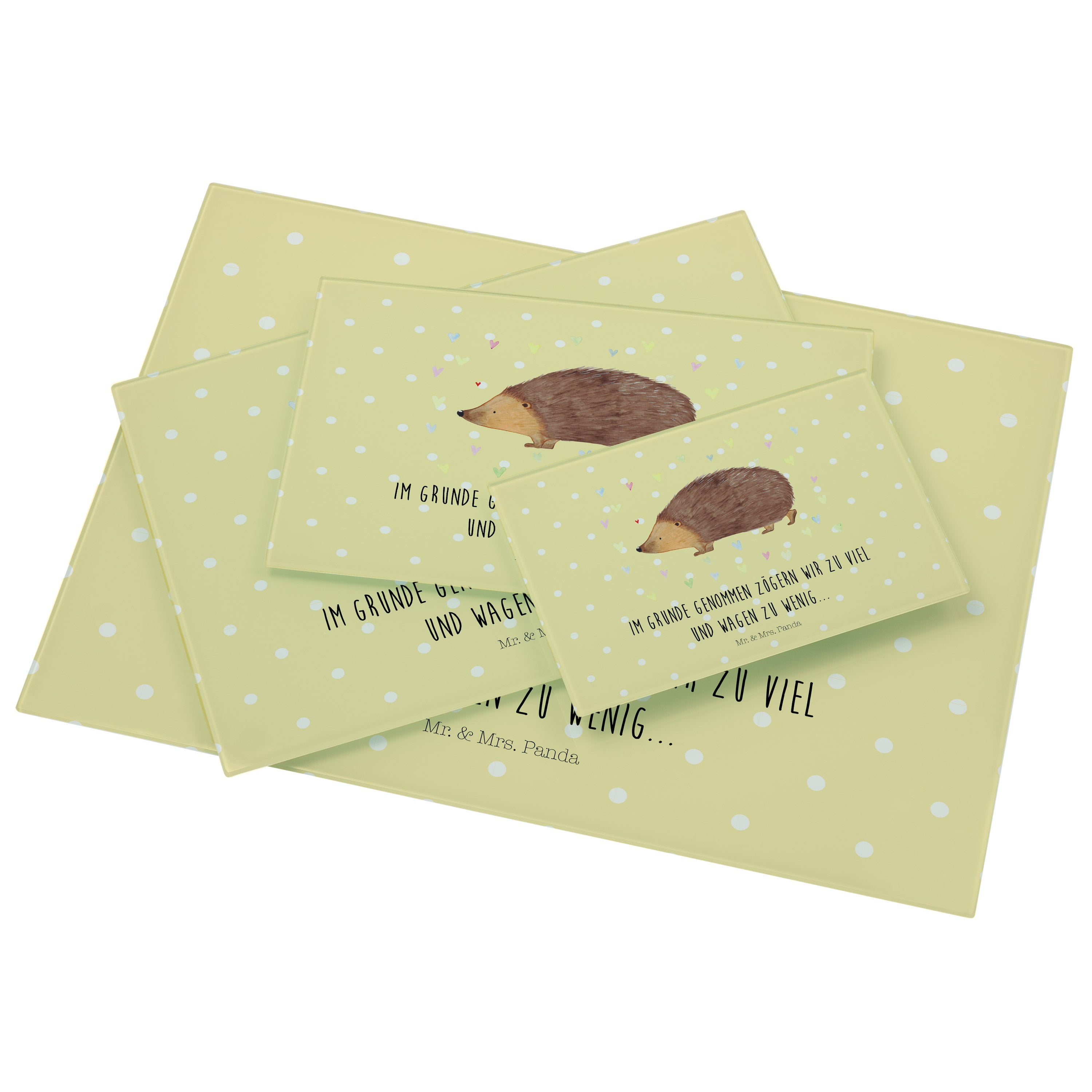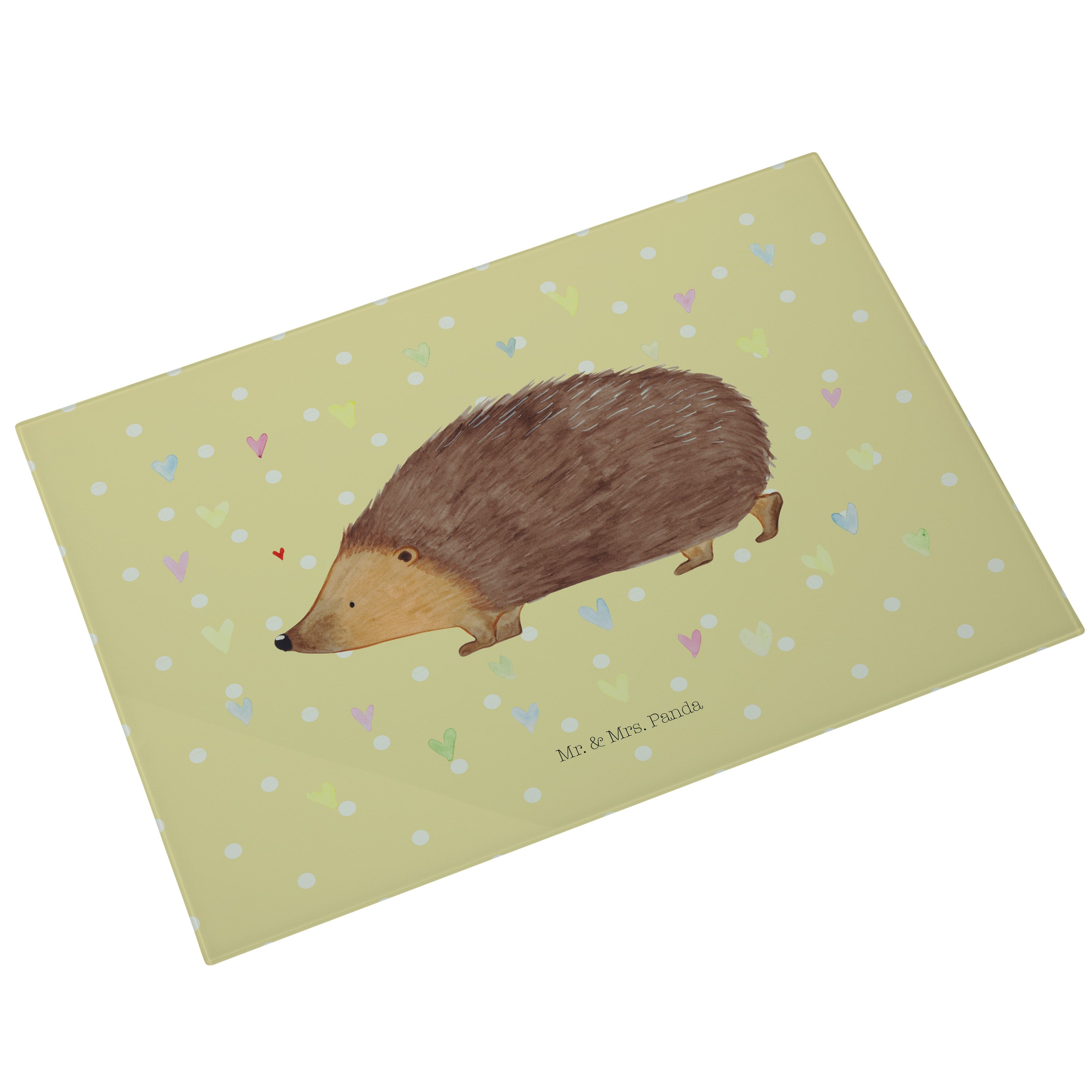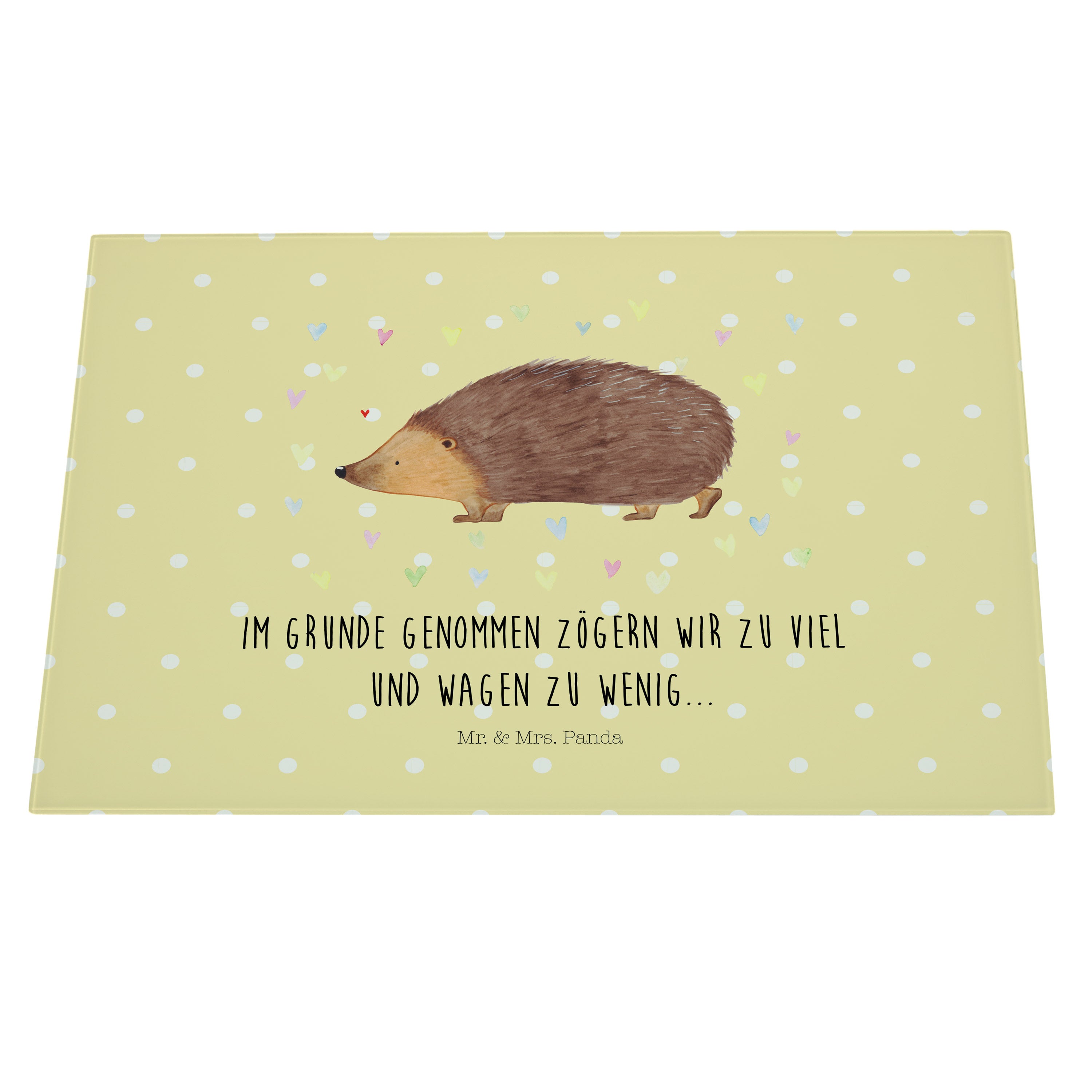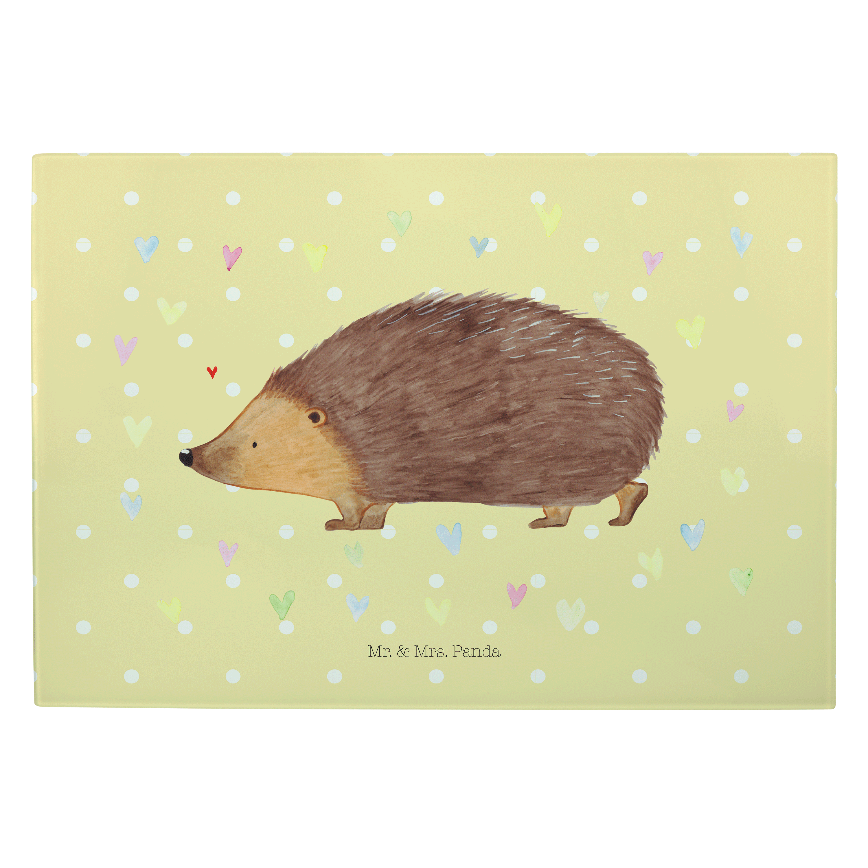 XL Glas Schneidbrett Igel Herzen - mit Spruch - Weiß