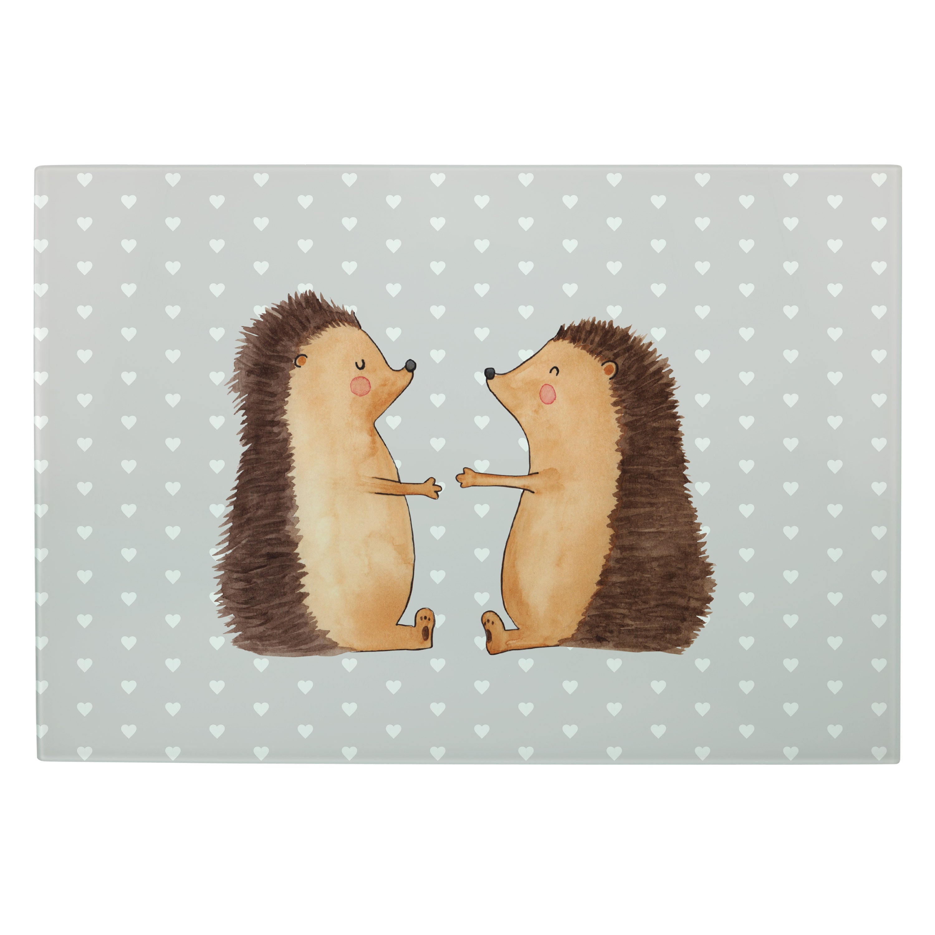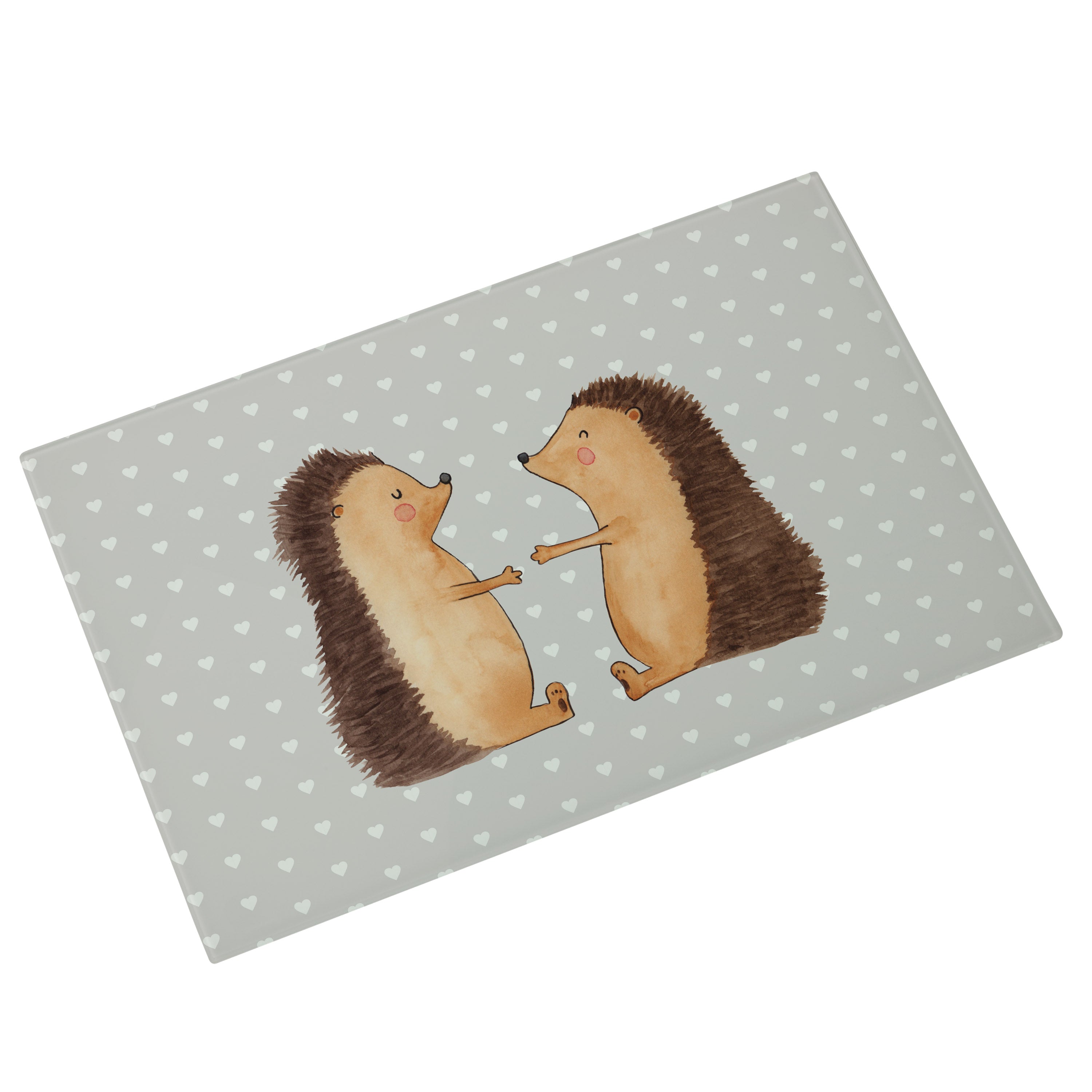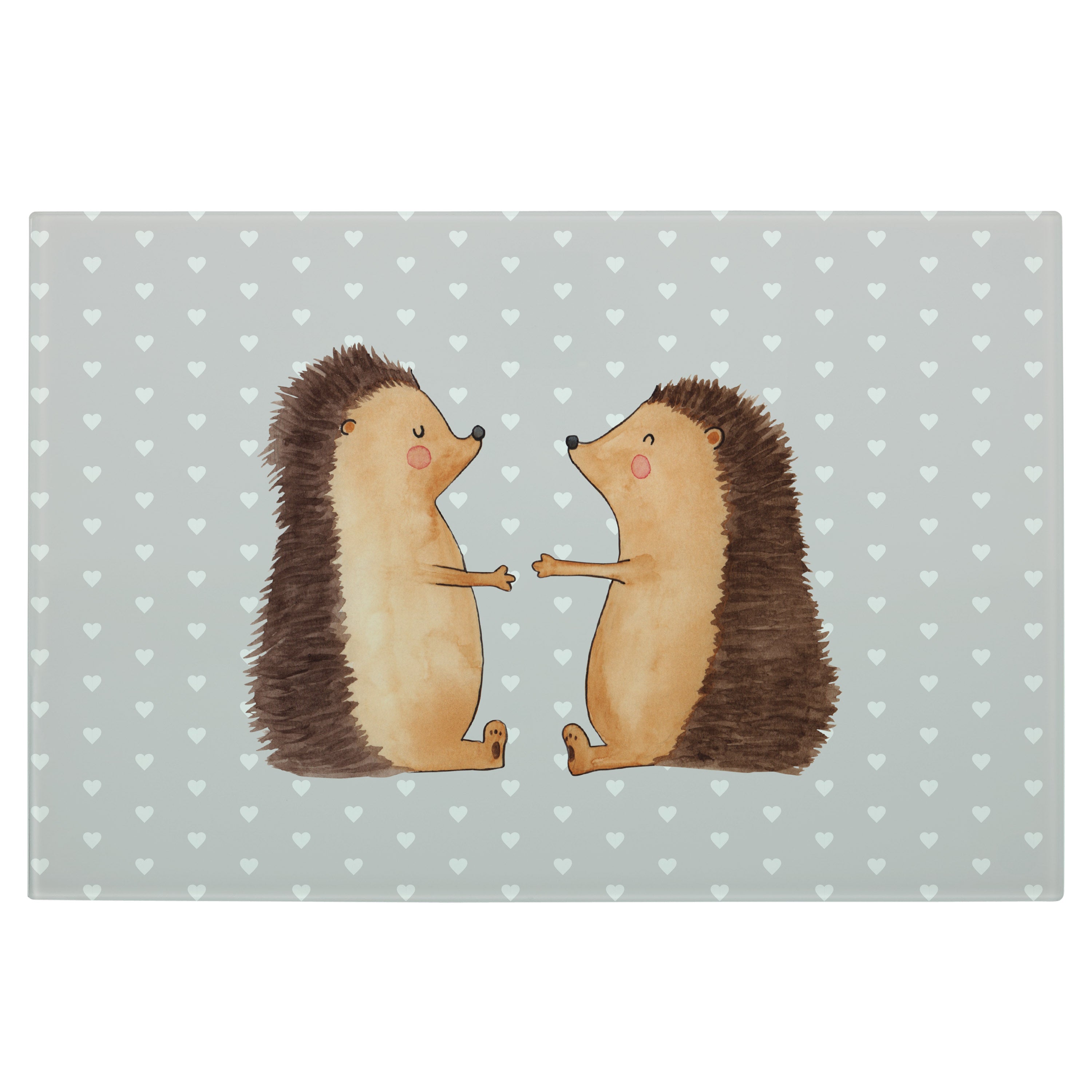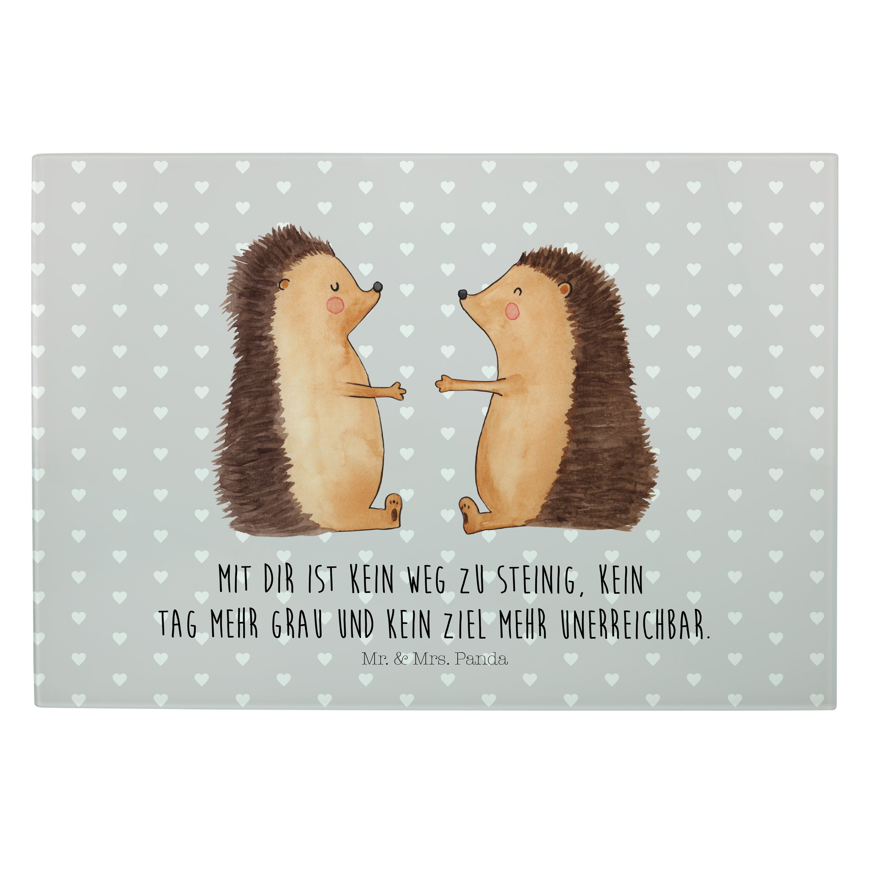 XL Glas Schneidbrett Igel Liebe - mit Spruch - Grau Pastell