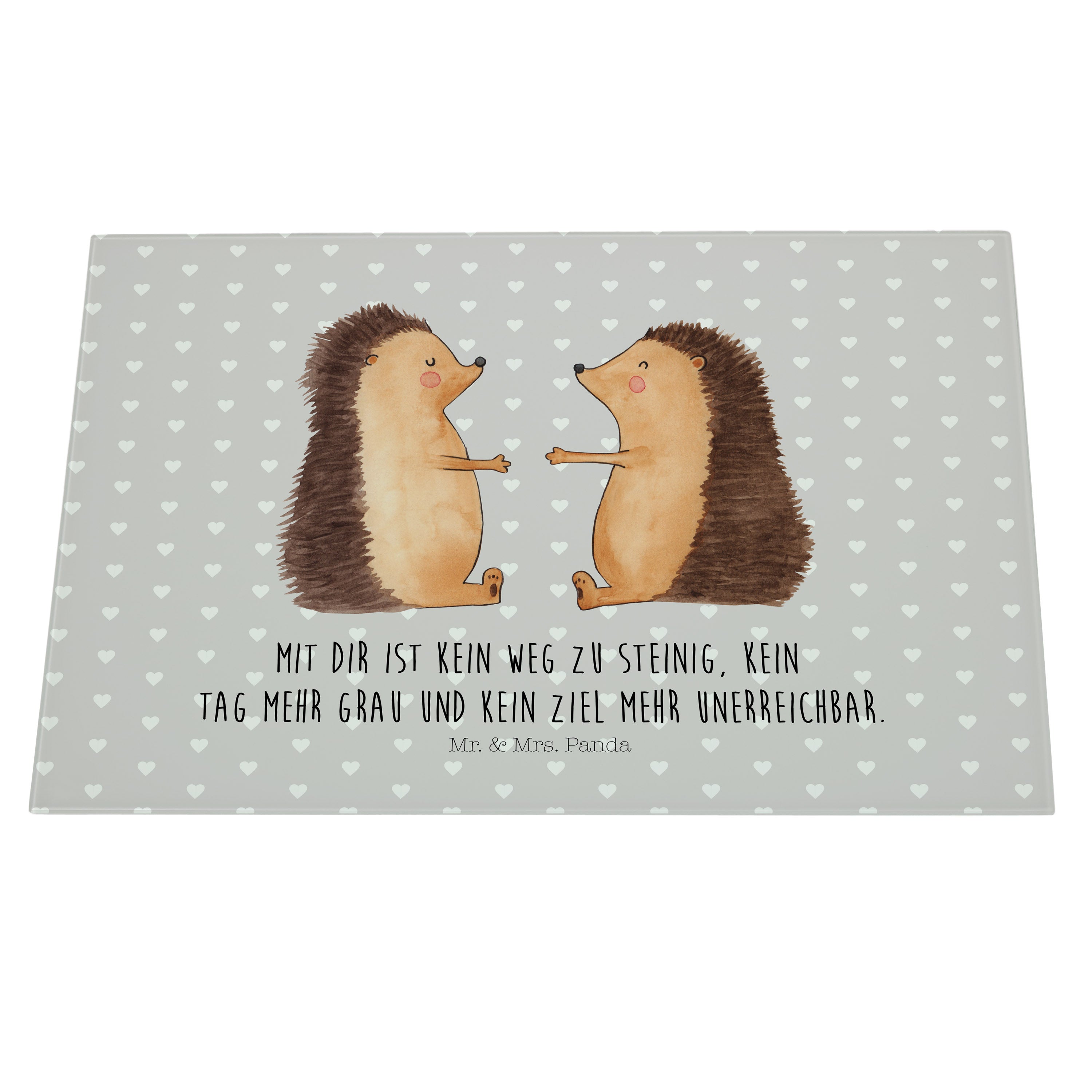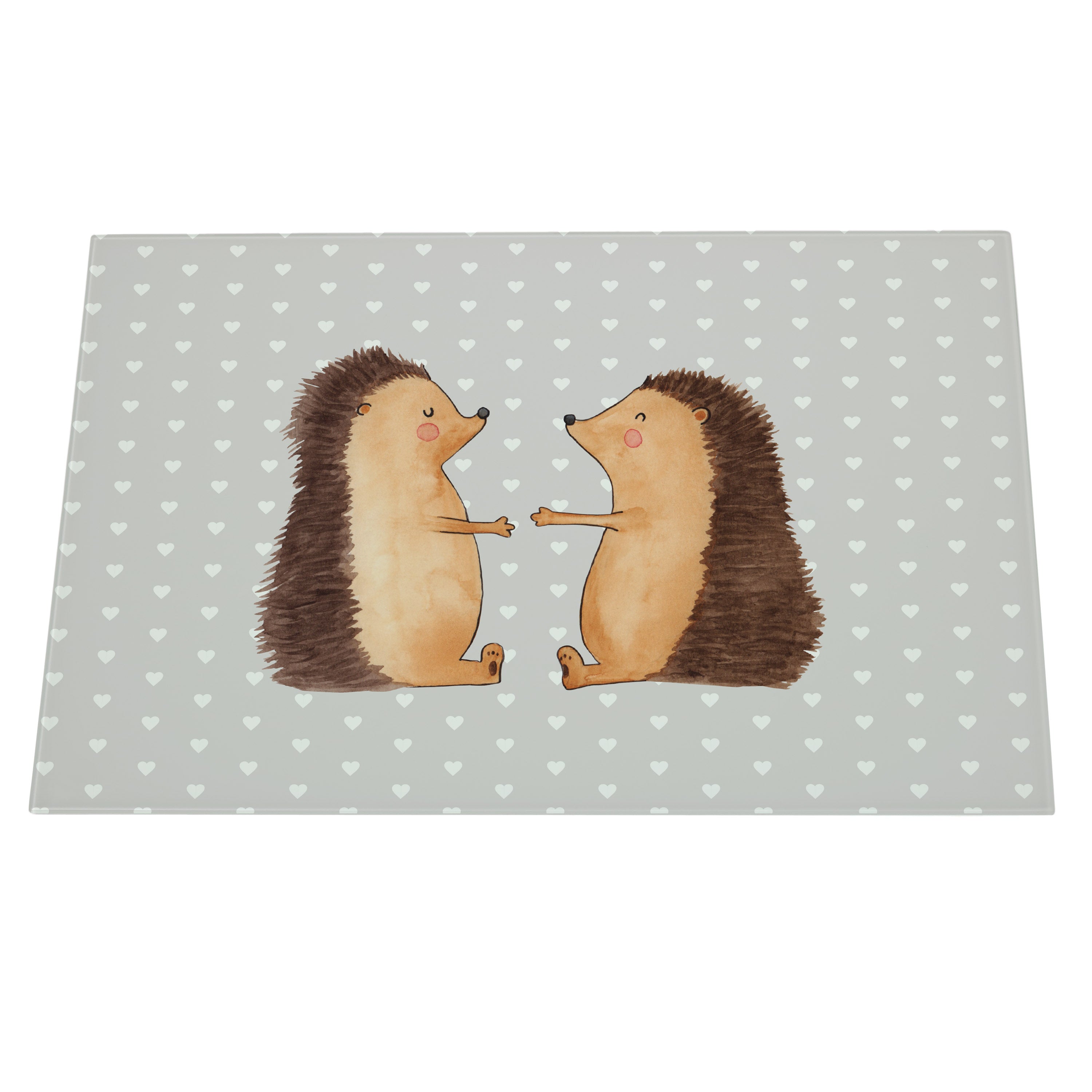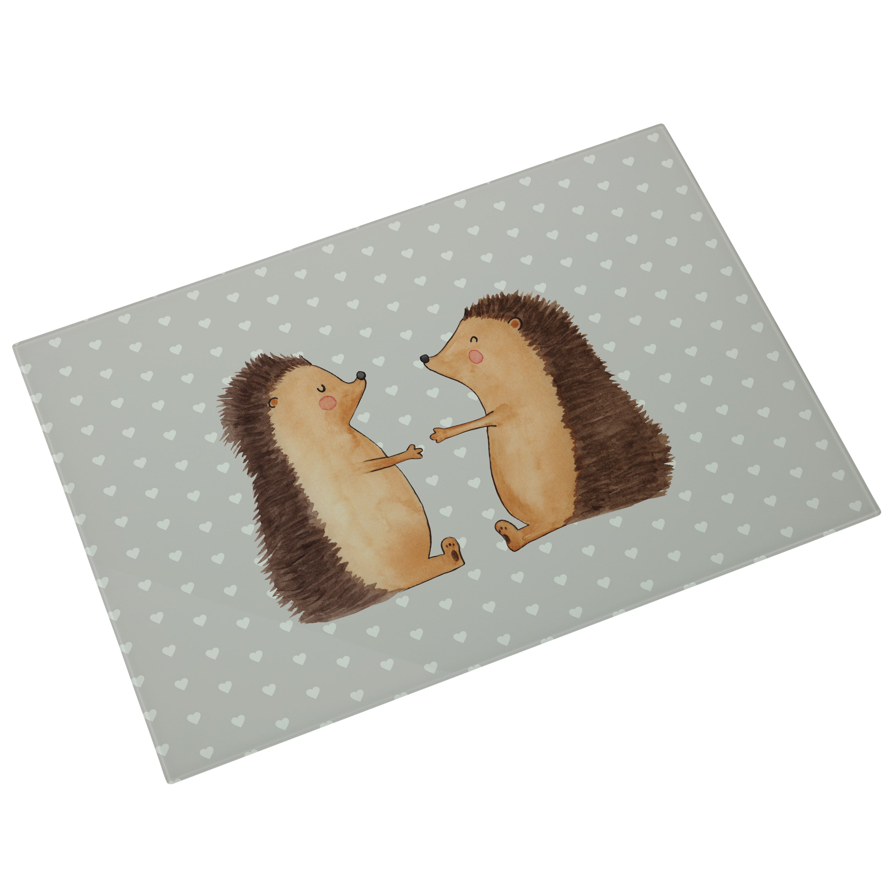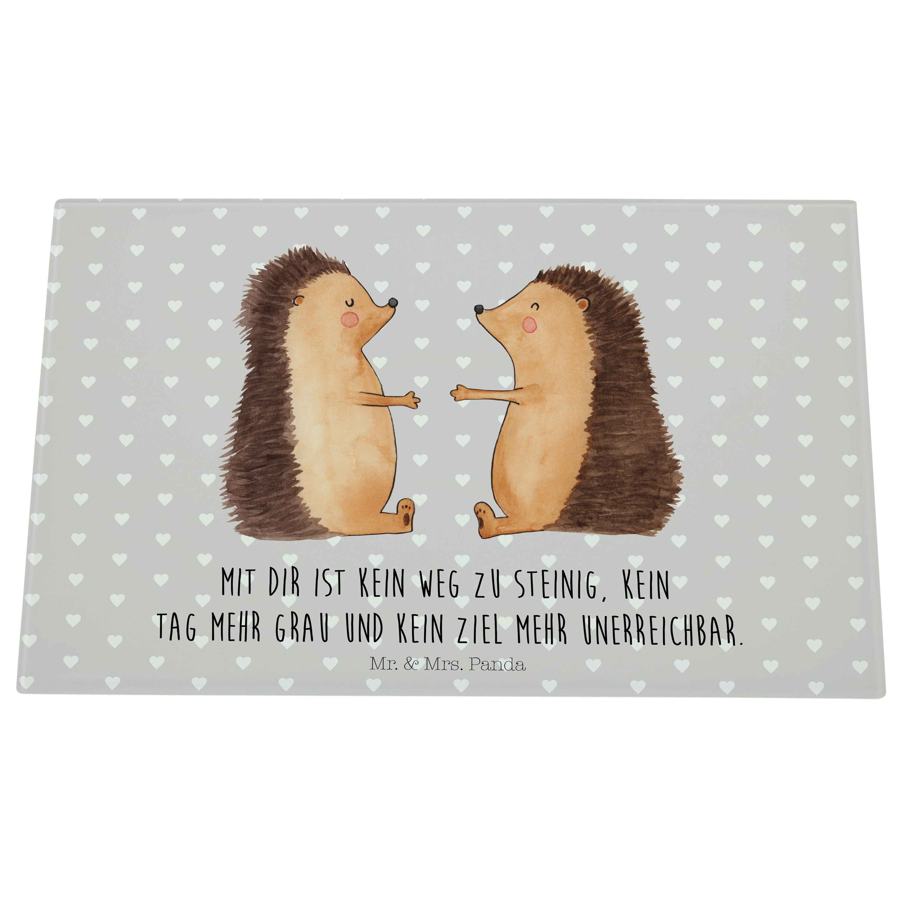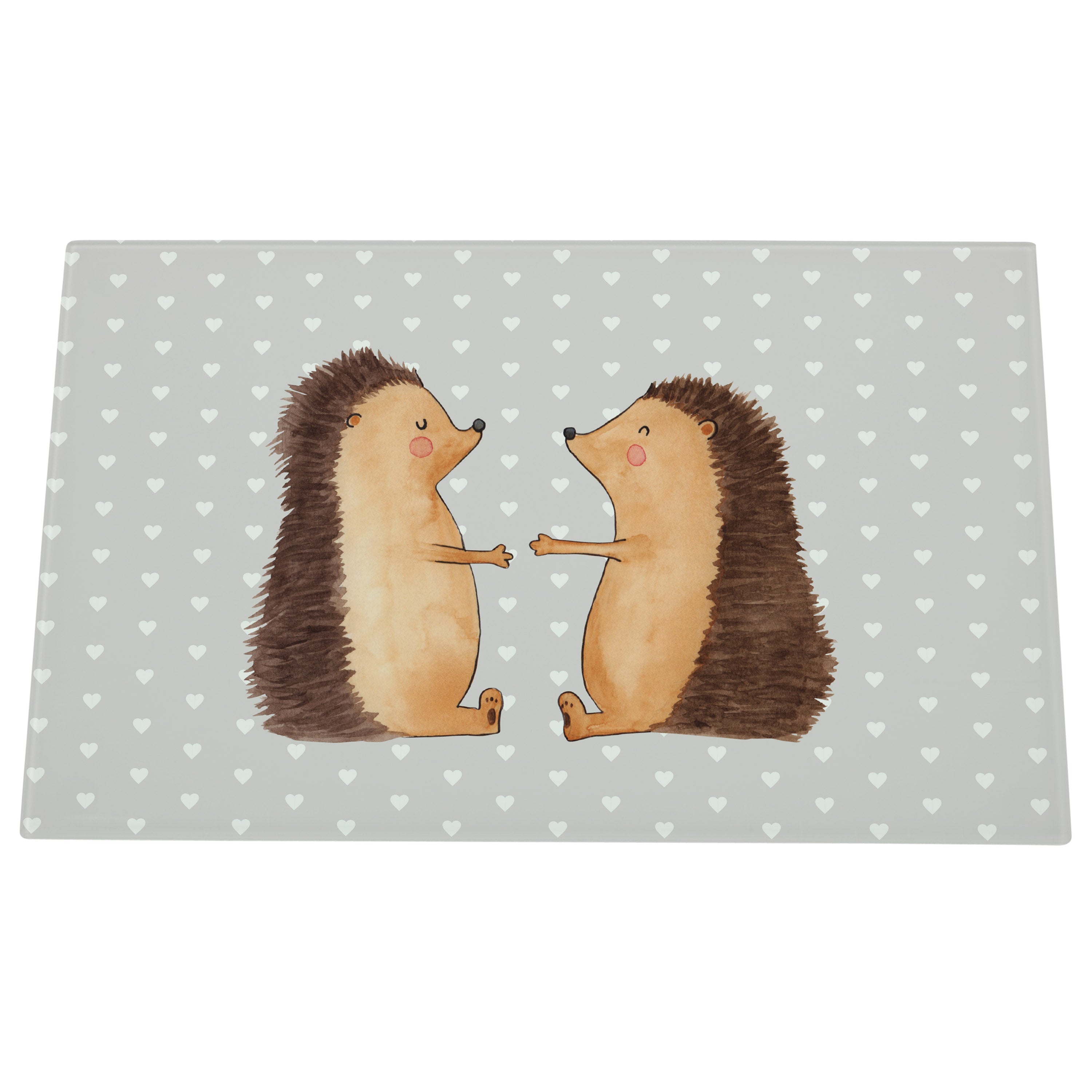 XL Glas Schneidbrett Igel Liebe - mit Spruch - Grau Pastell
