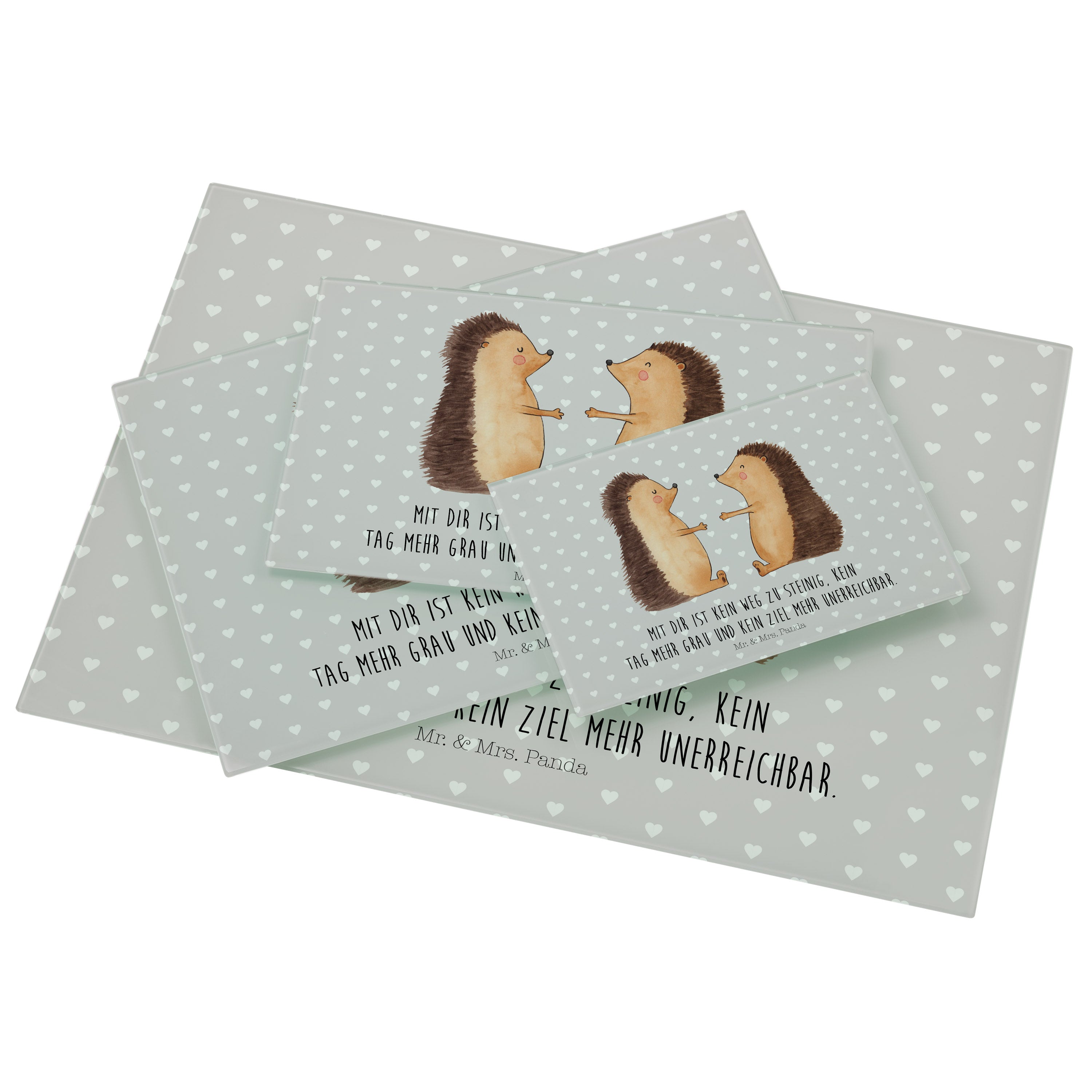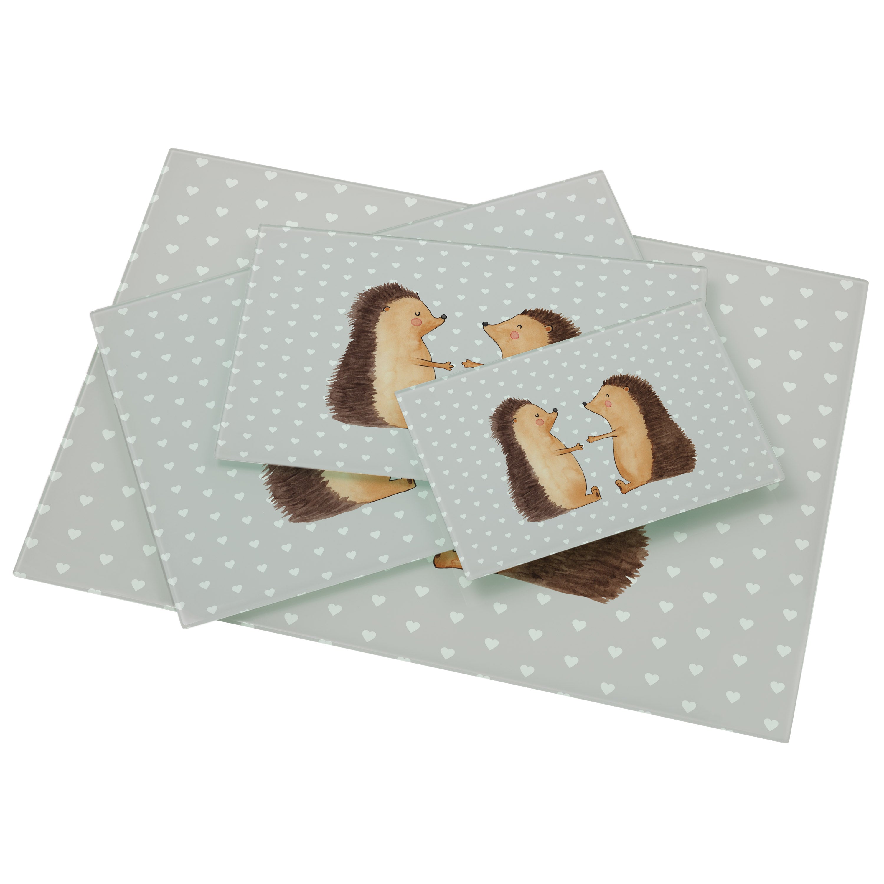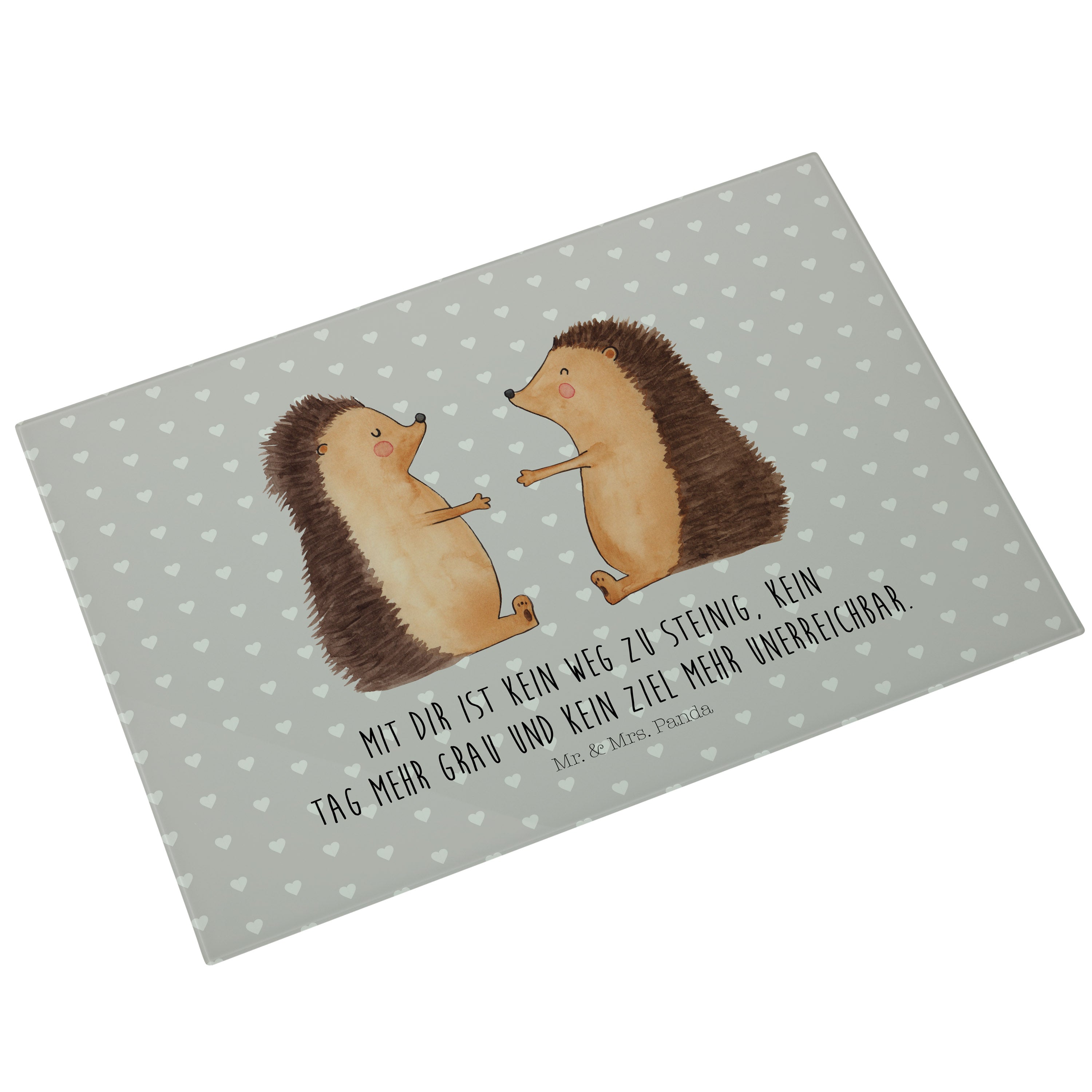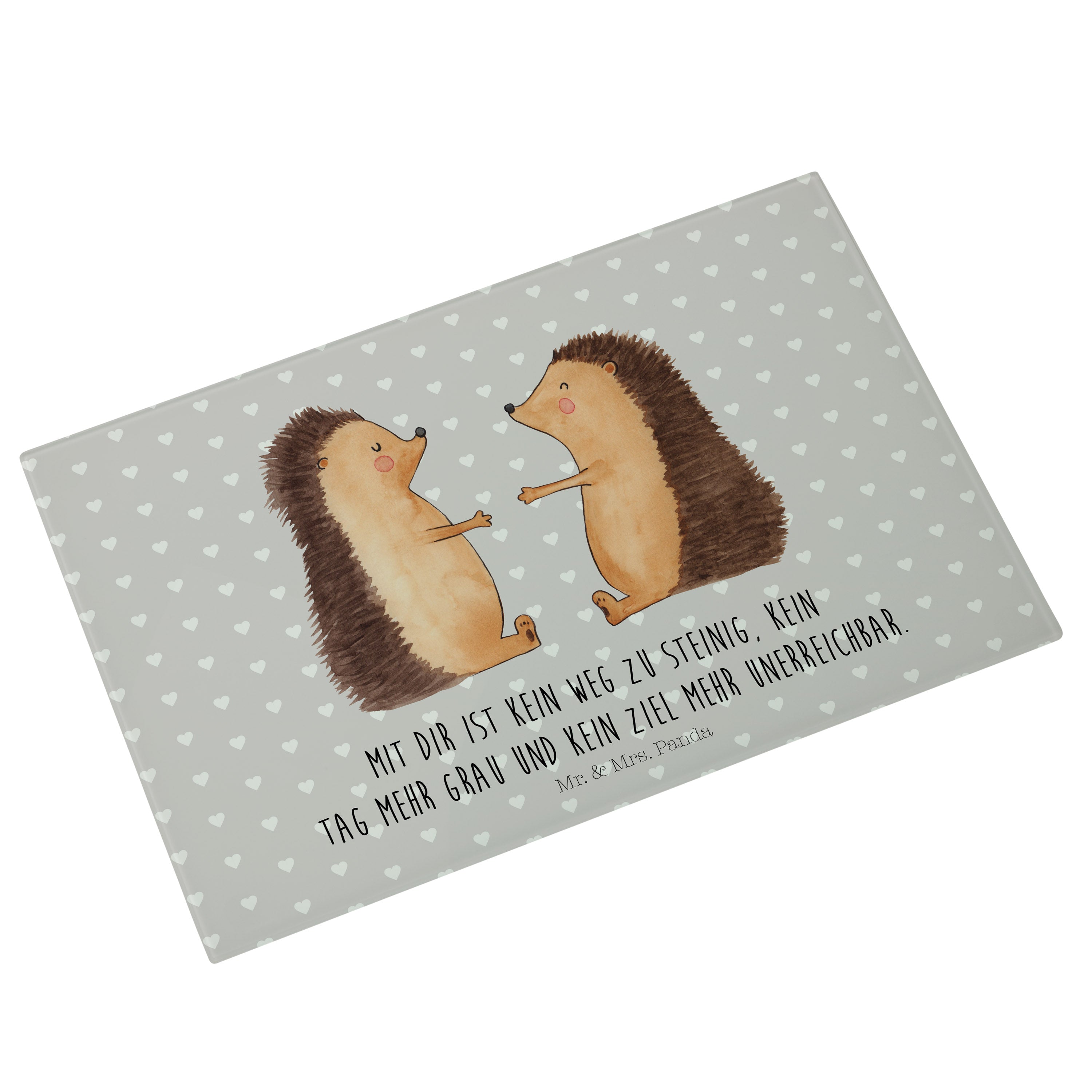 XL Glas Schneidbrett Igel Liebe - mit Spruch - Grau Pastell