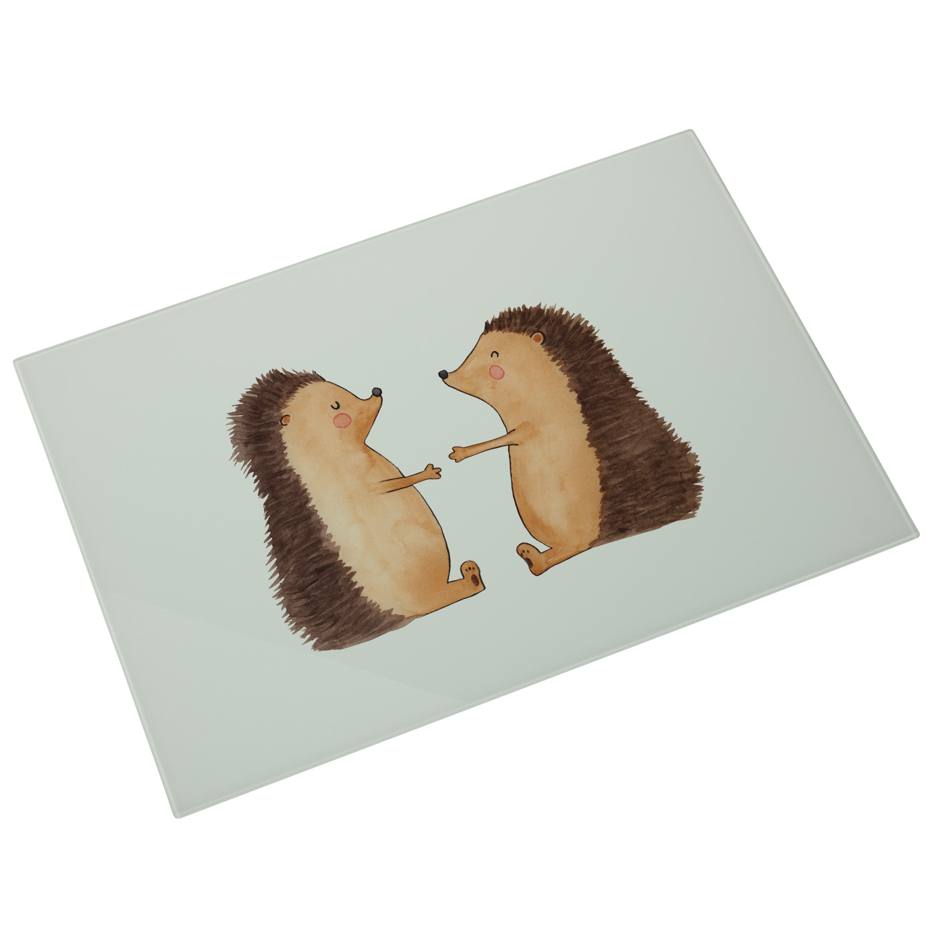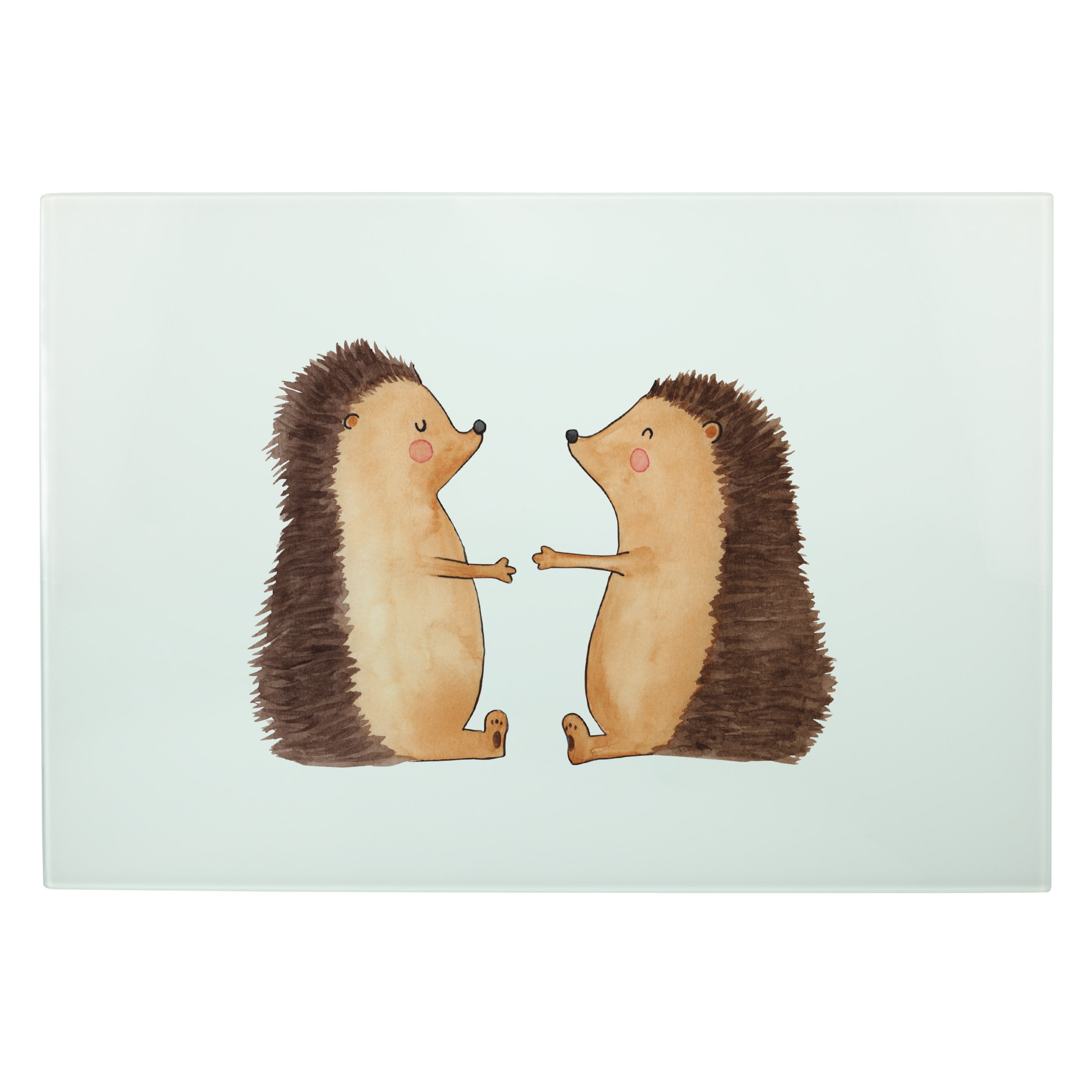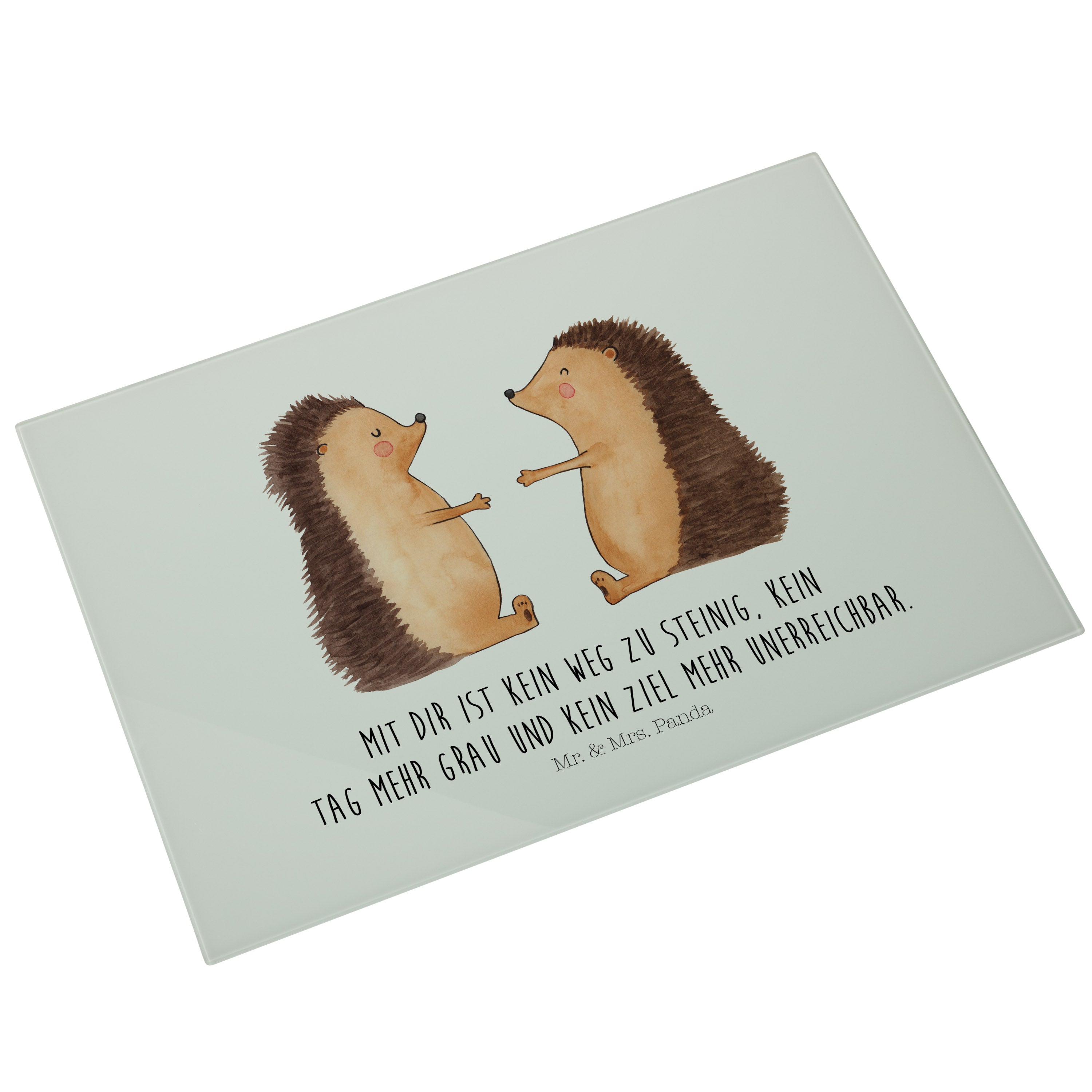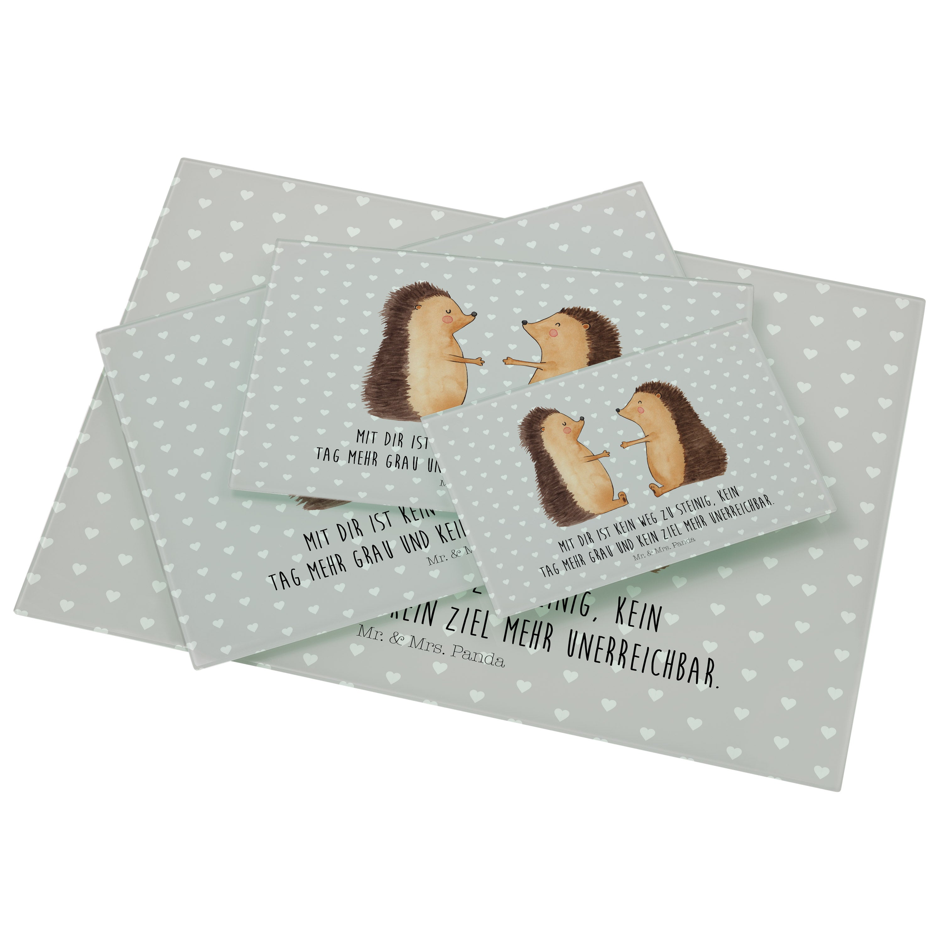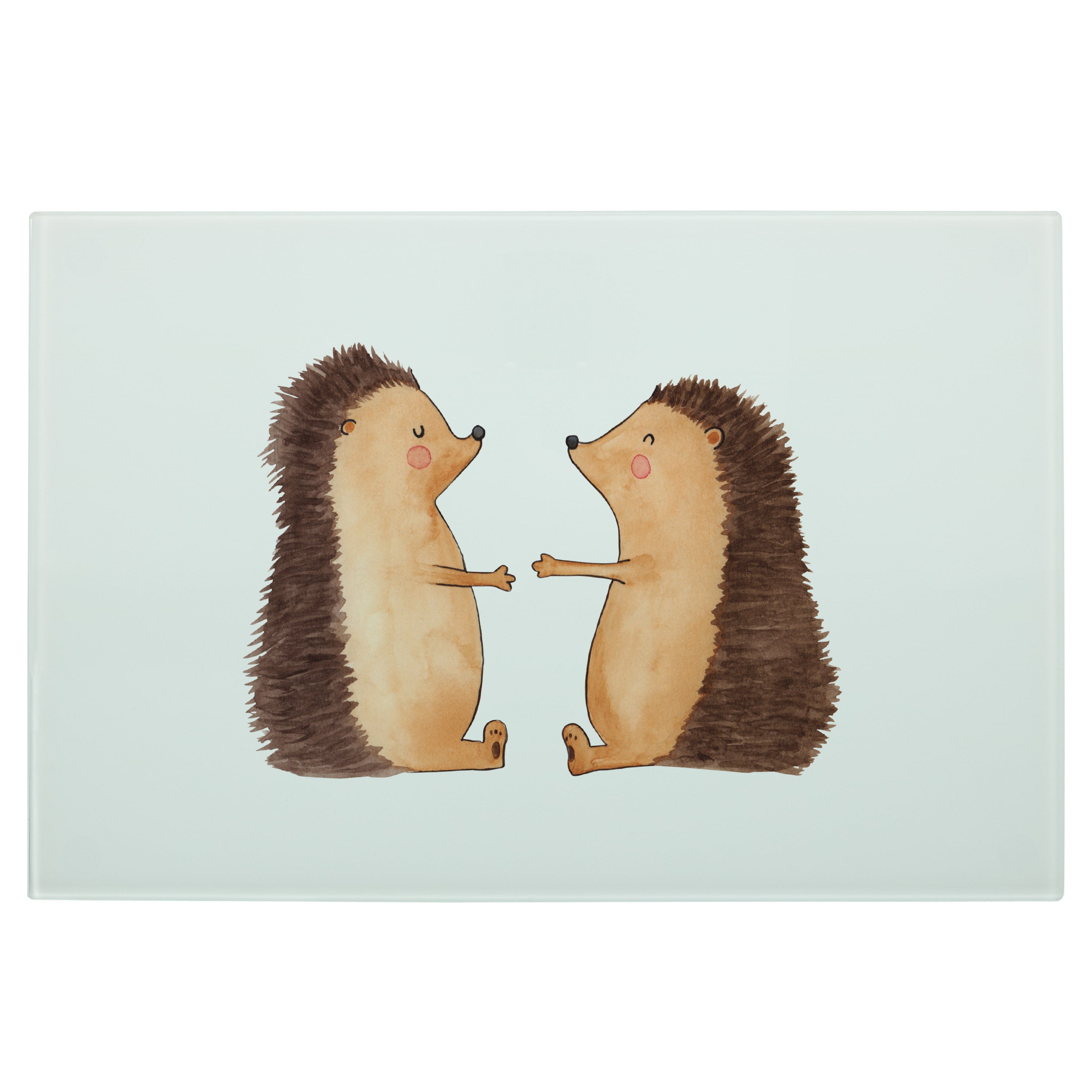 XL Glas Schneidbrett Igel Liebe - mit Spruch - Grau Pastell