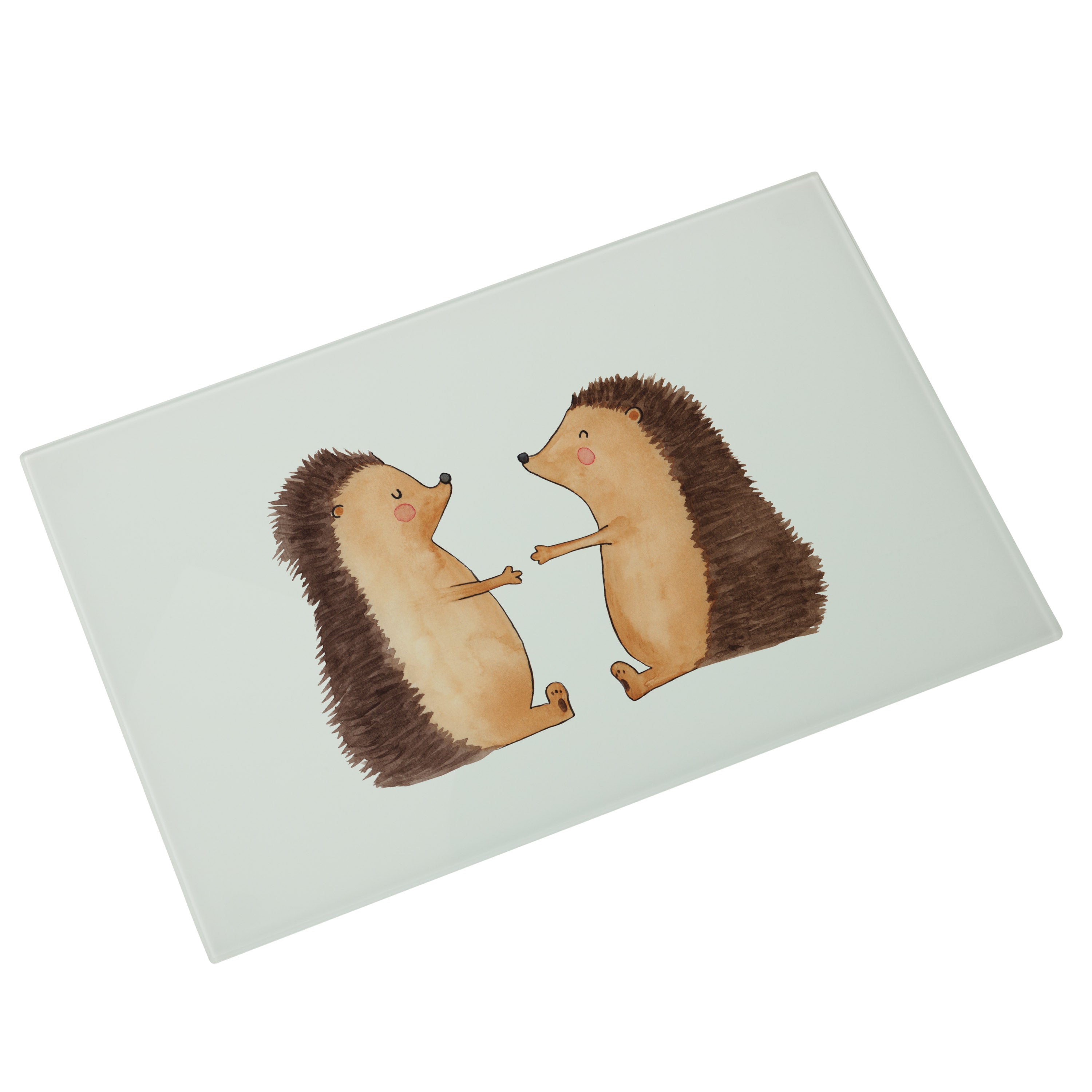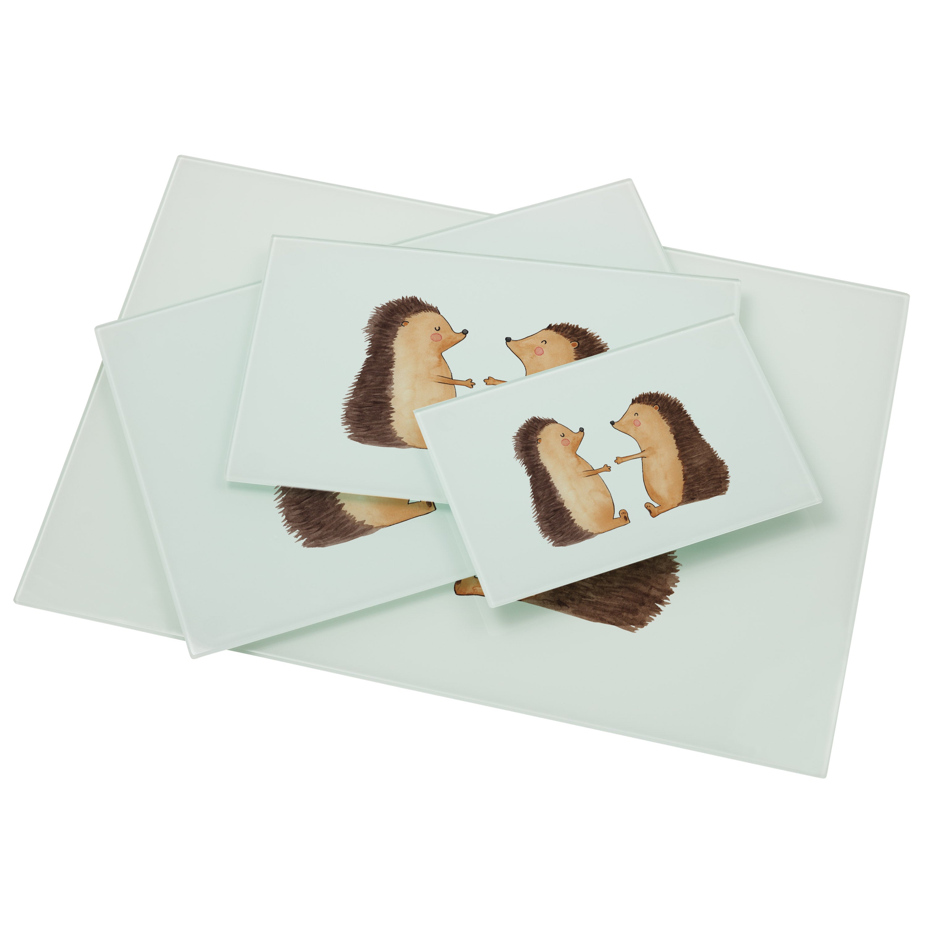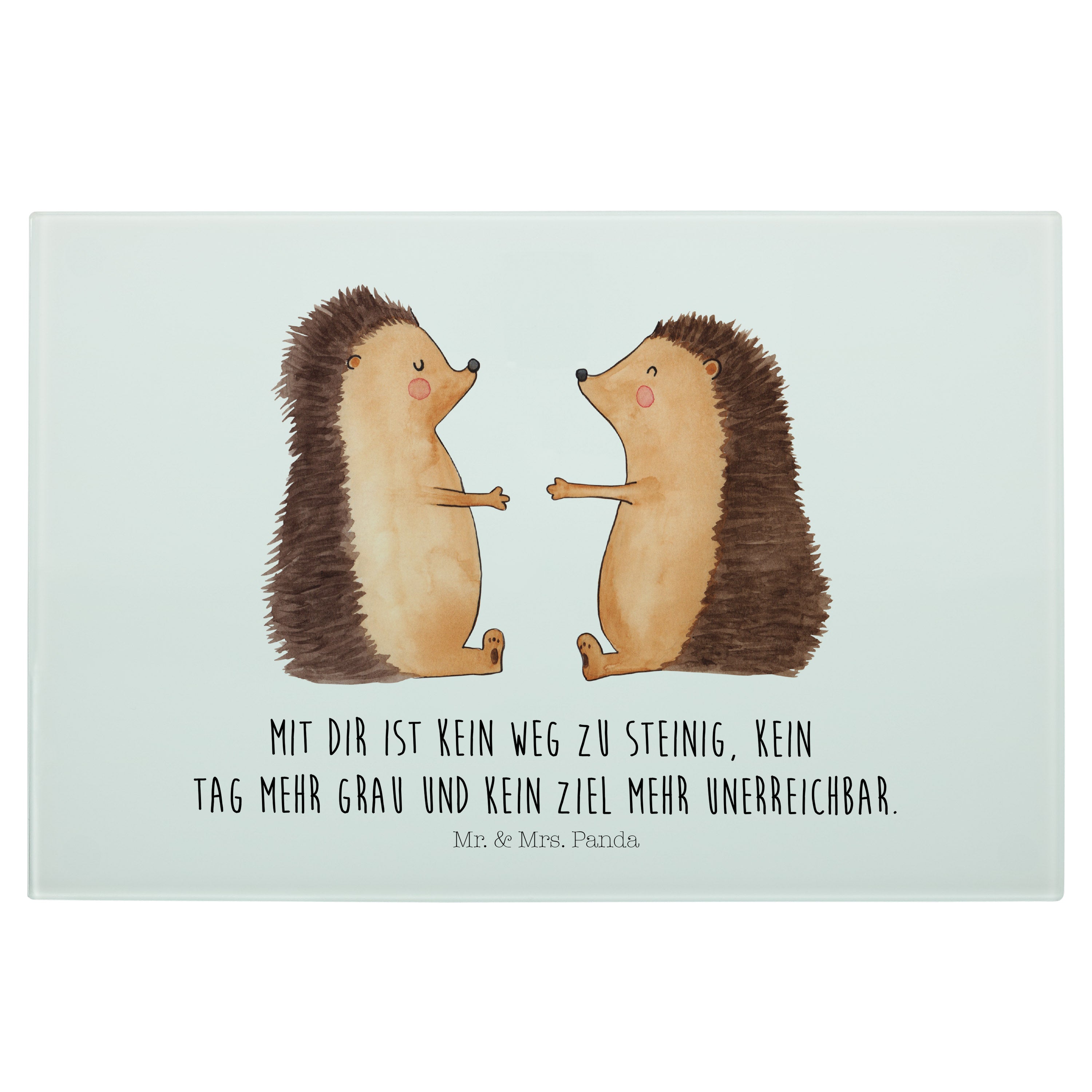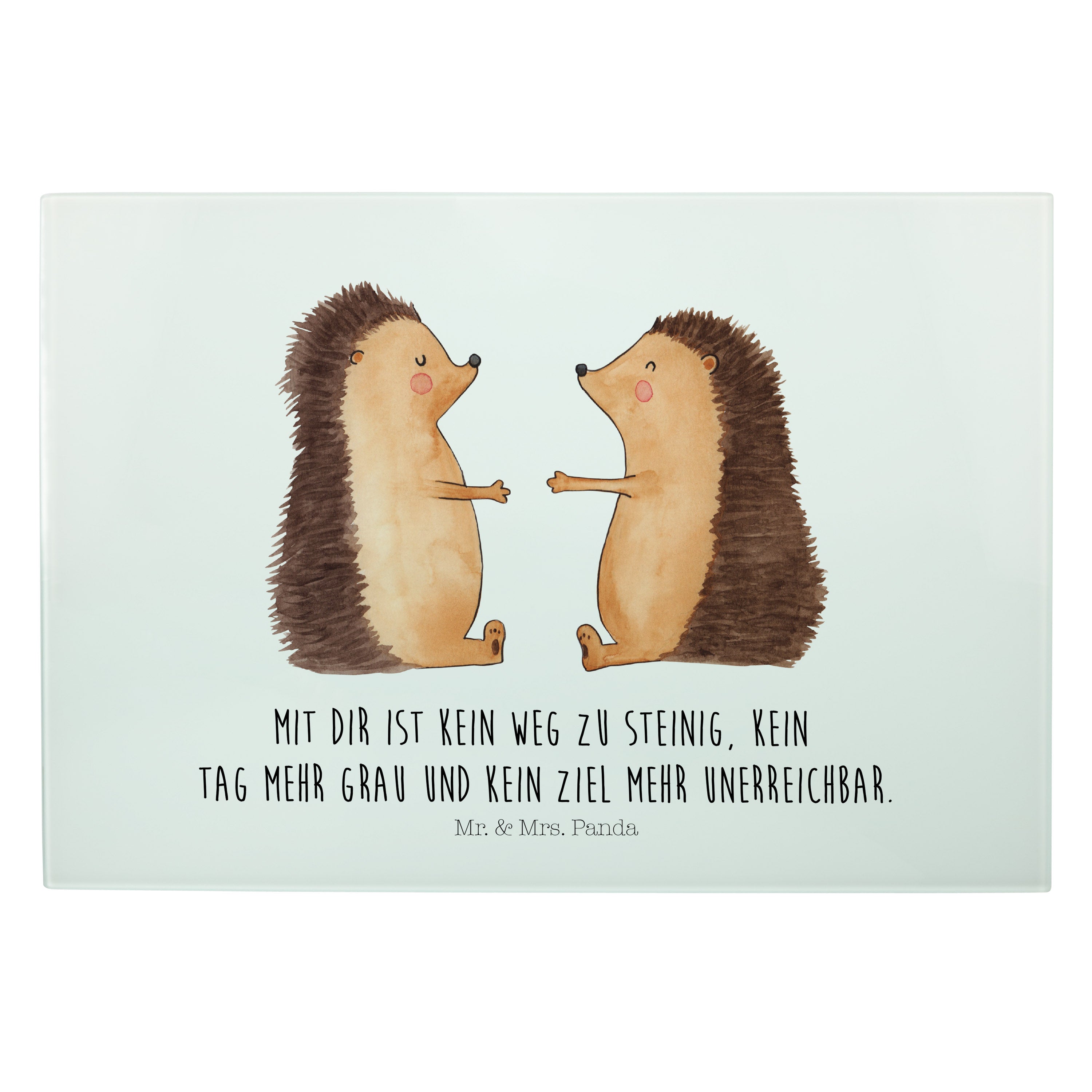 XL Glas Schneidbrett Igel Liebe - mit Spruch - Grau Pastell