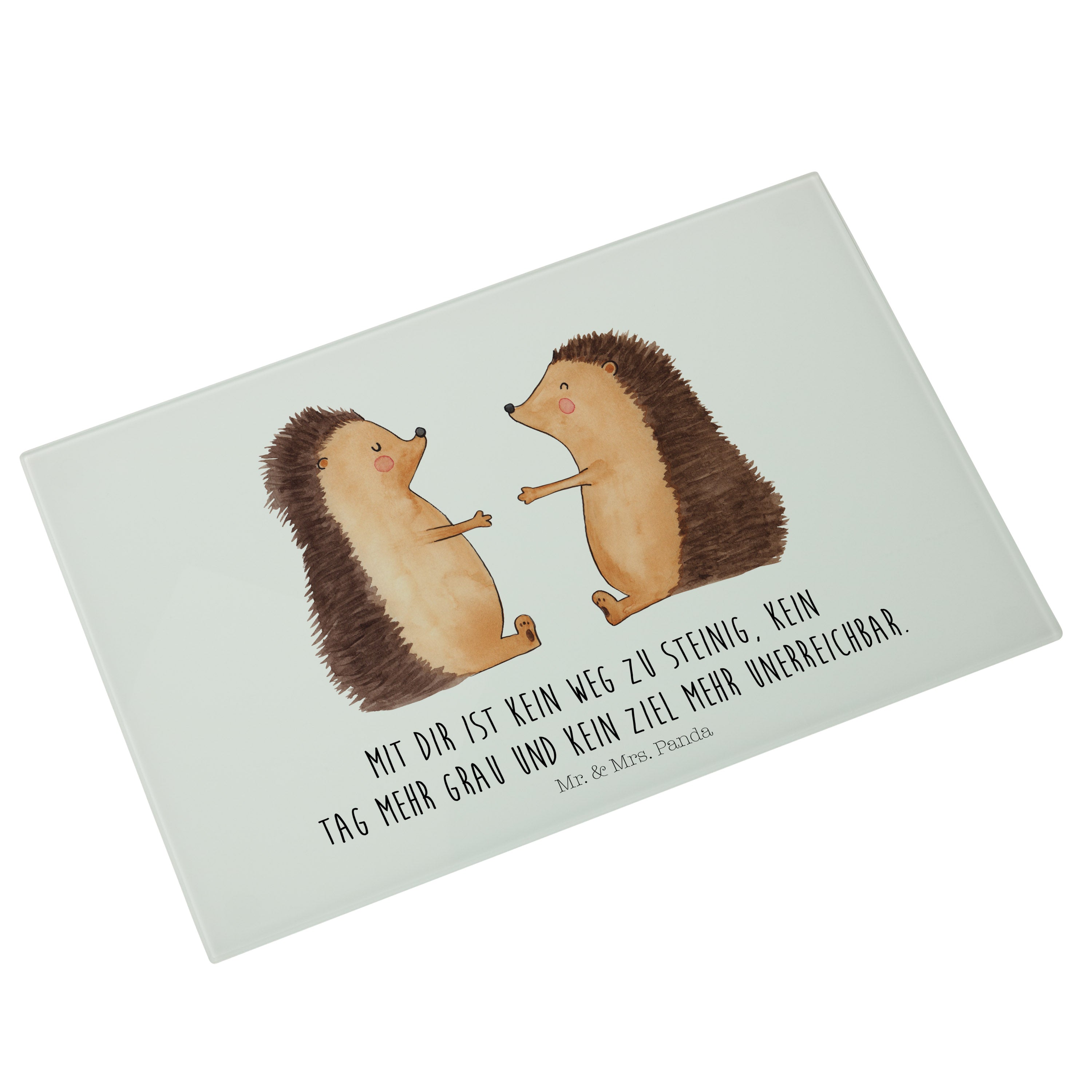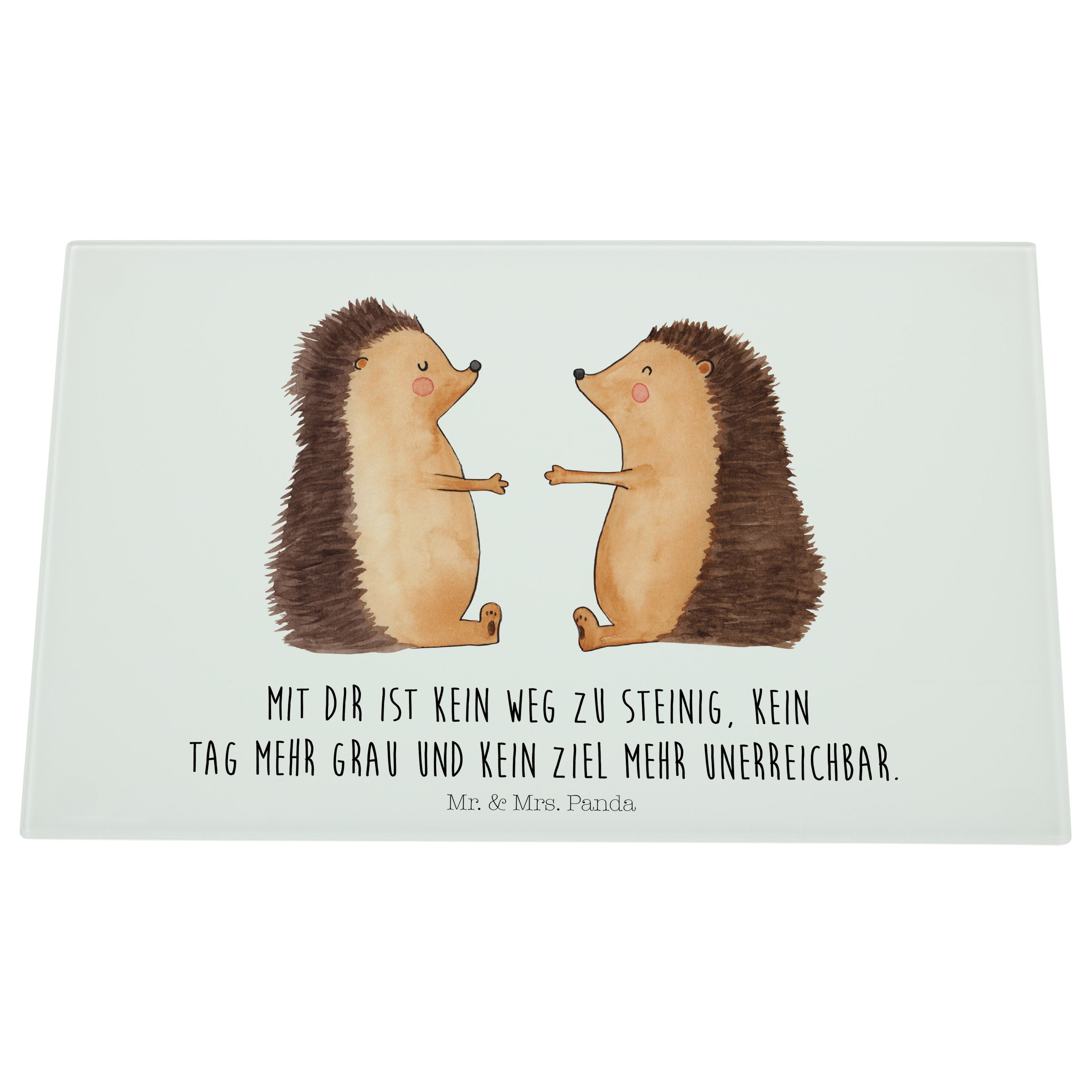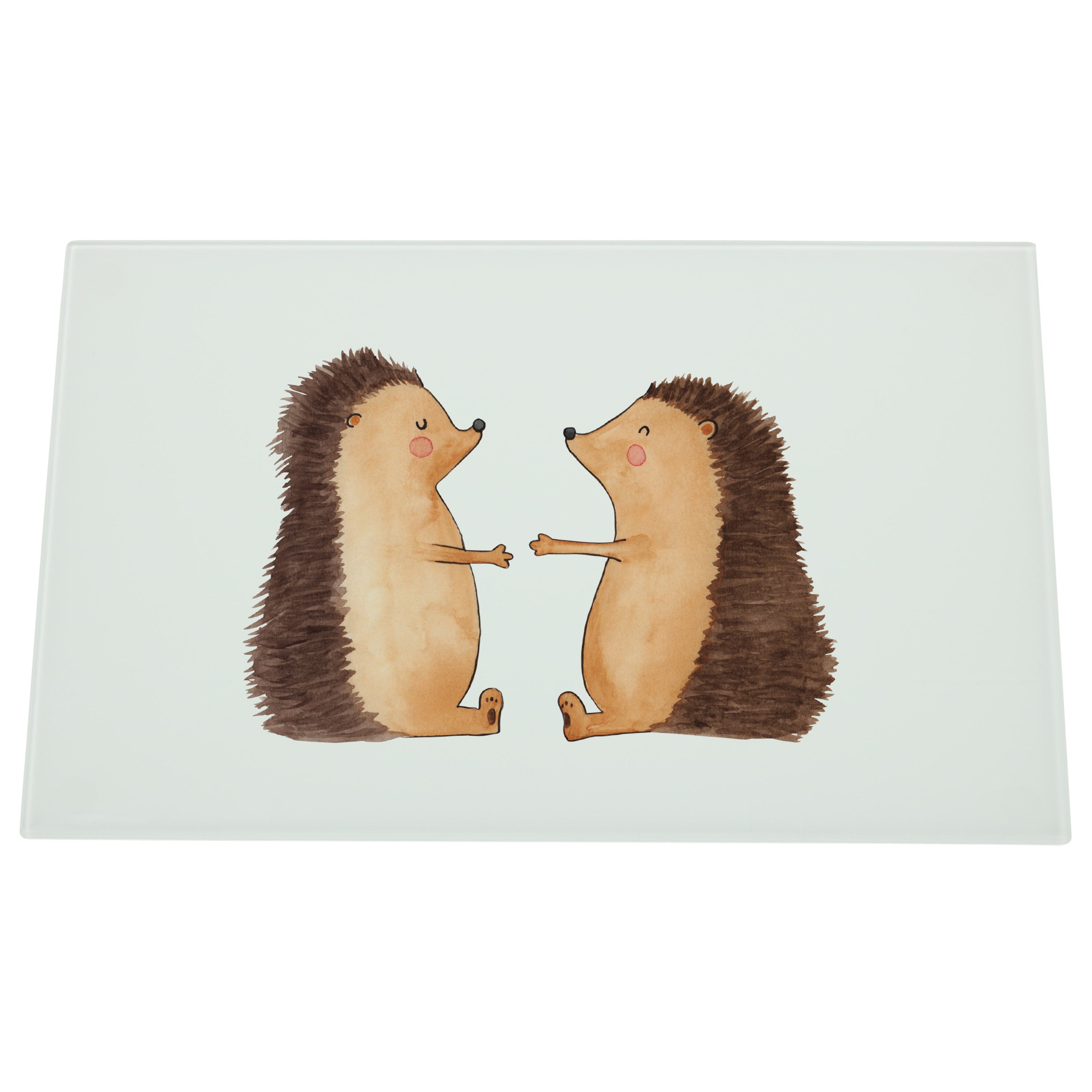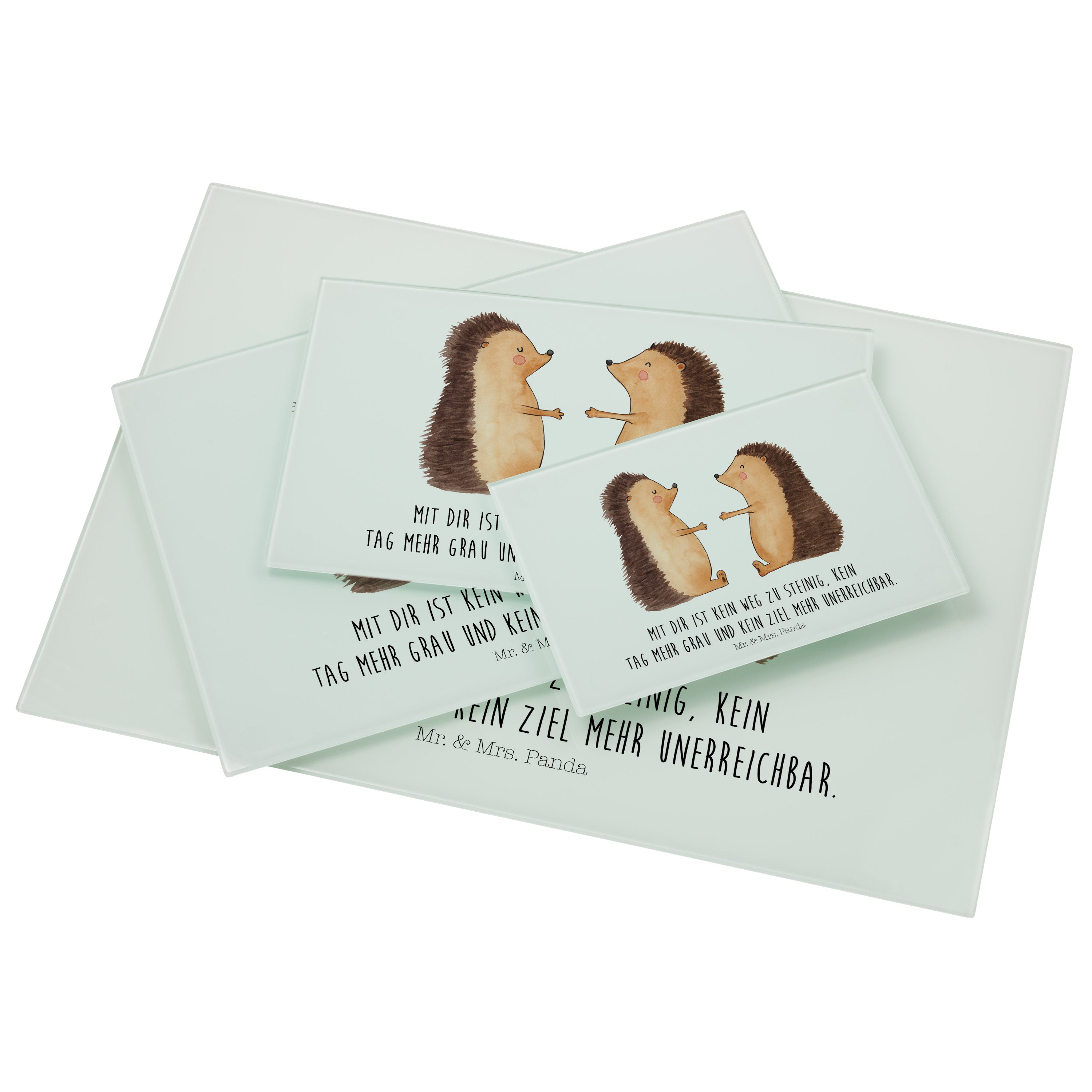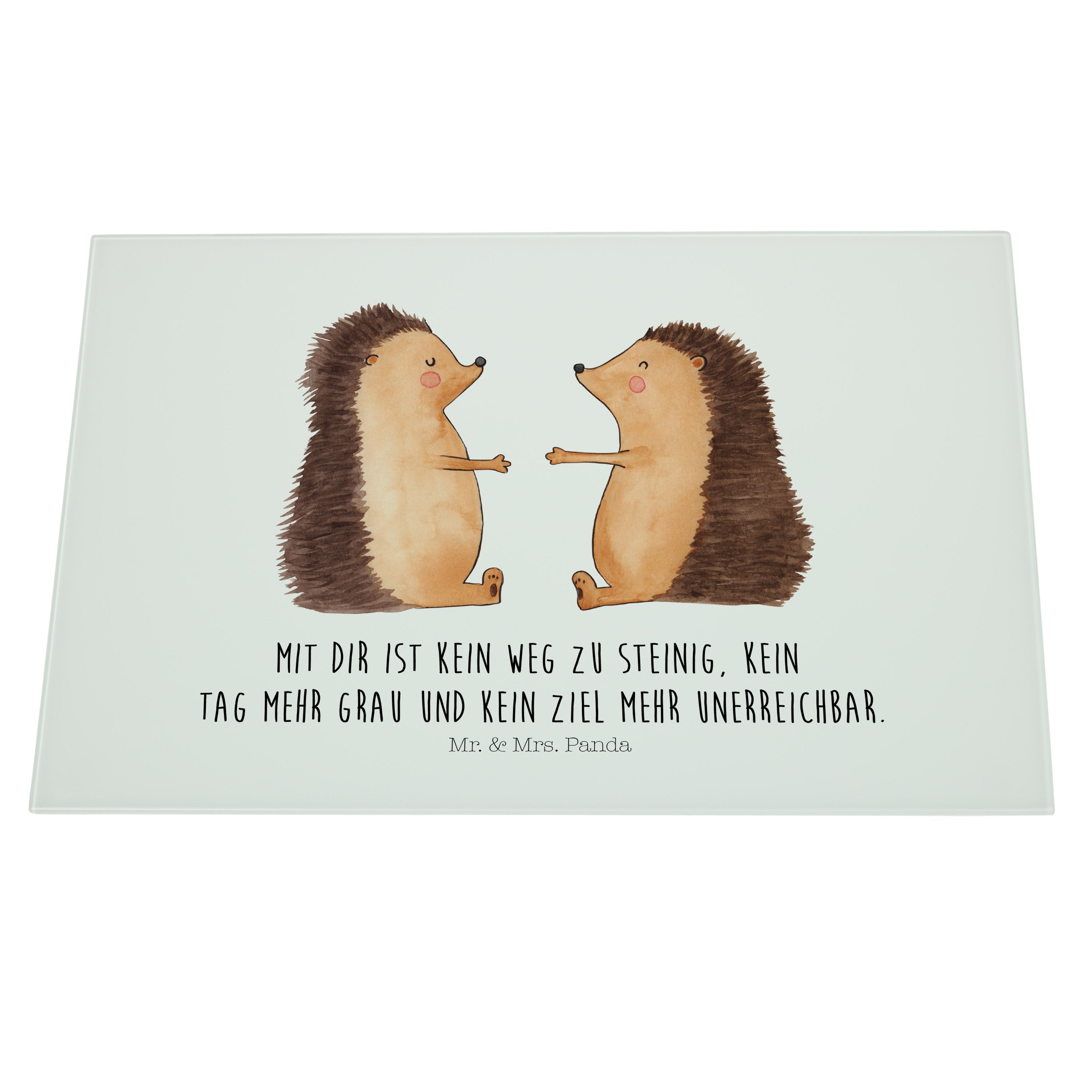 XL Glas Schneidbrett Igel Liebe - mit Spruch - Grau Pastell