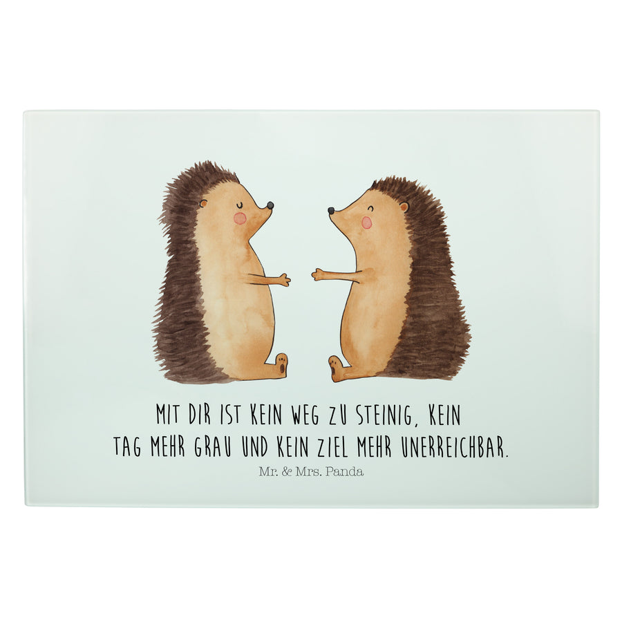 XL Glas Schneidbrett Igel Liebe - mit Spruch - Weiß