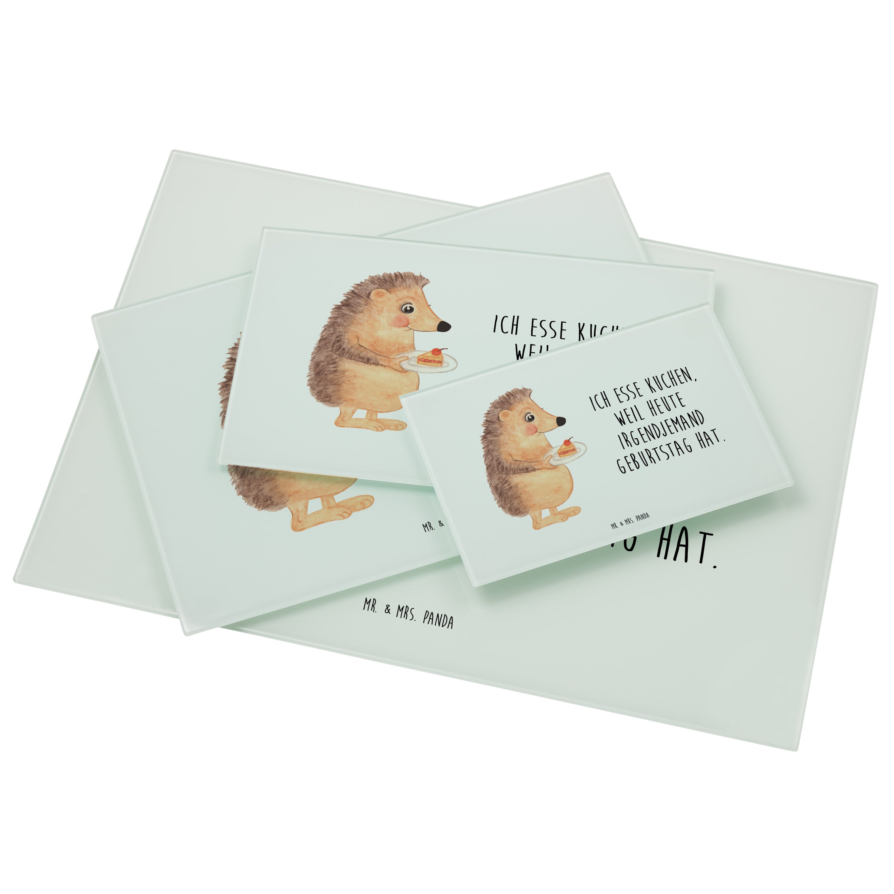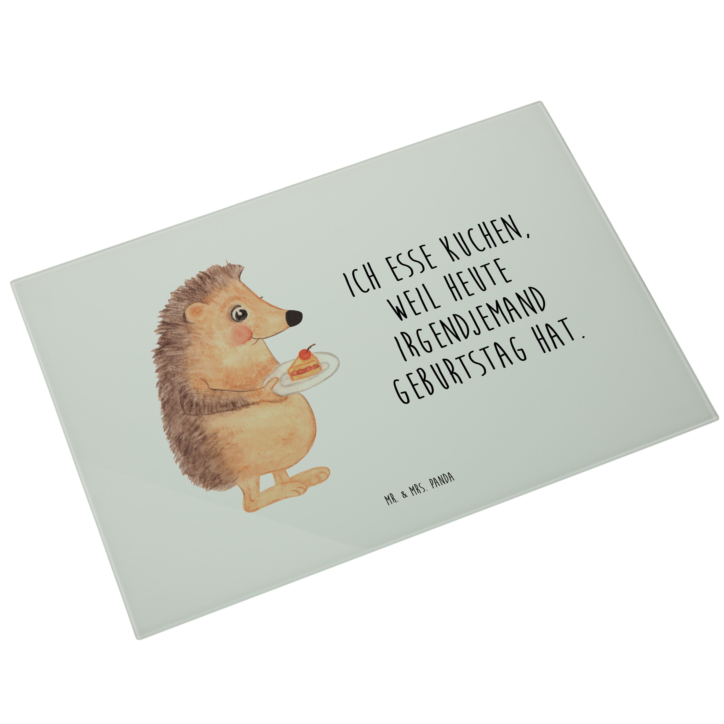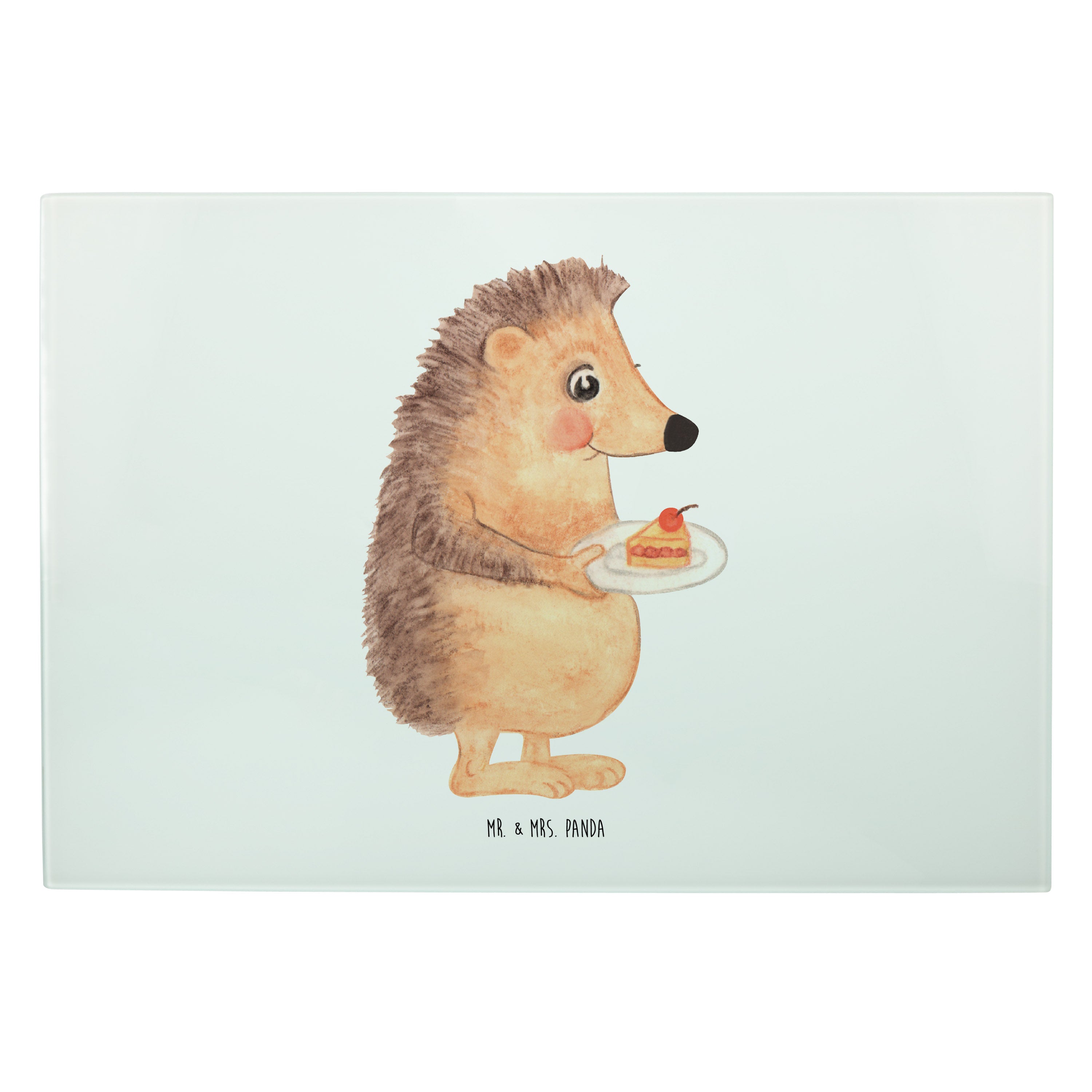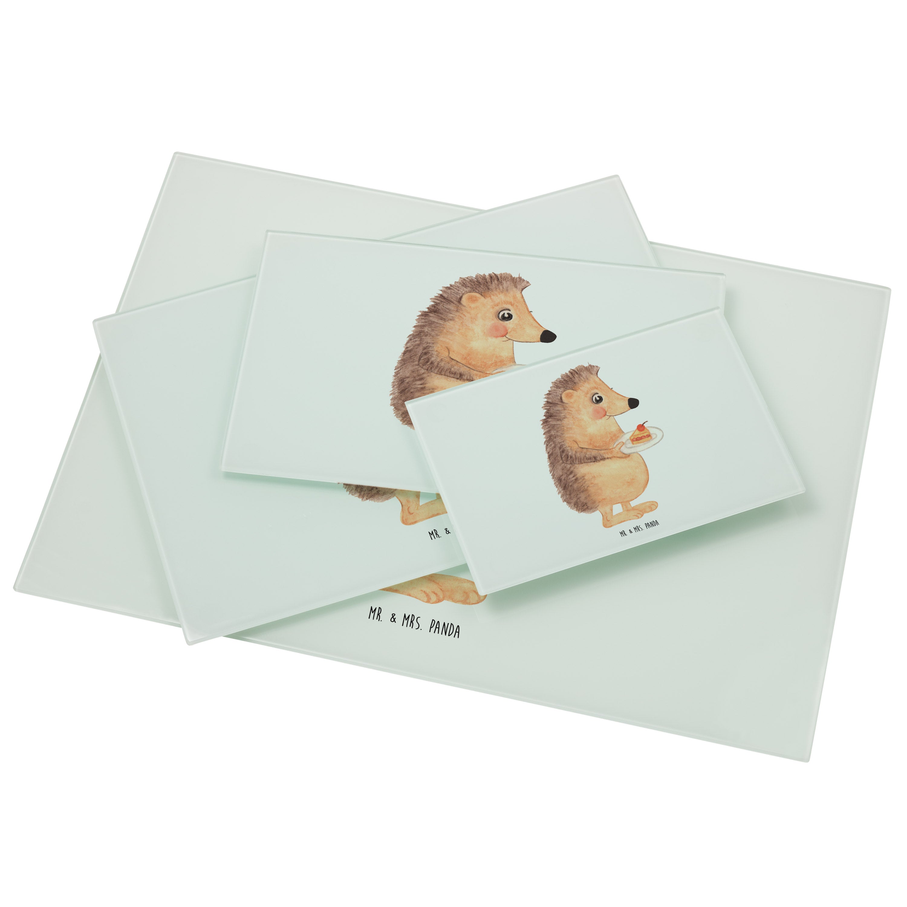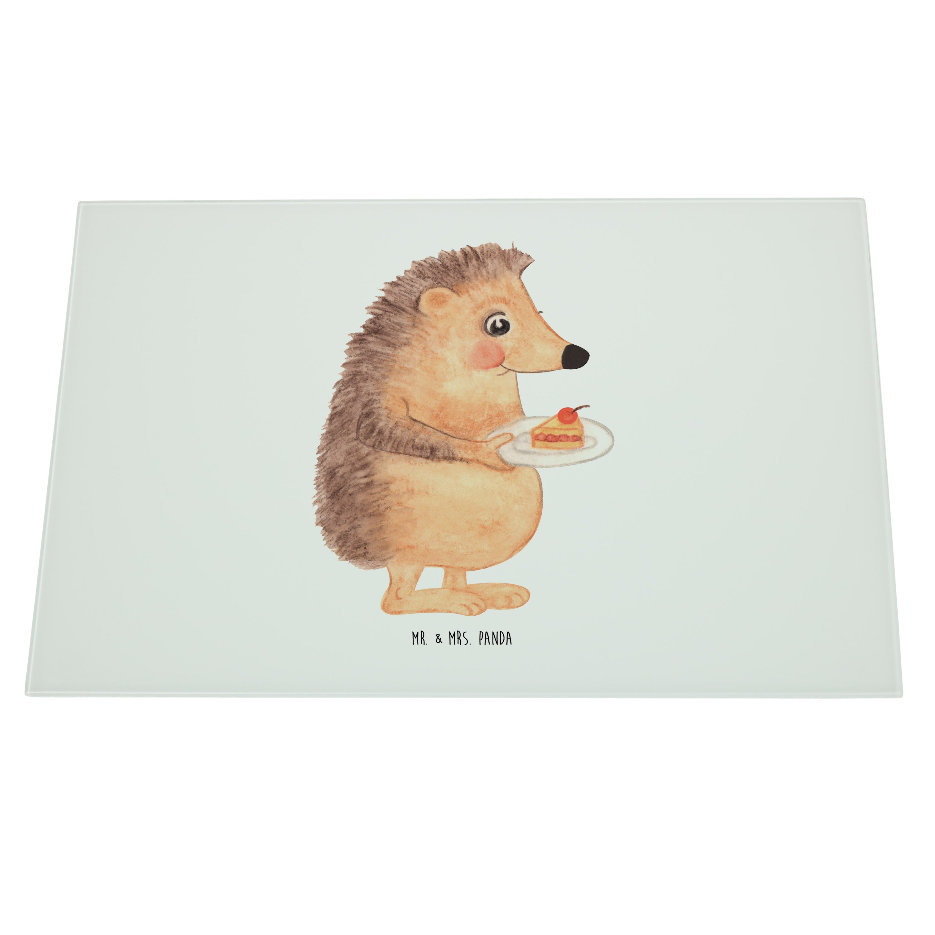 XL Glas Schneidbrett Igel mit Kuchenstück - mit Spruch - Weiß