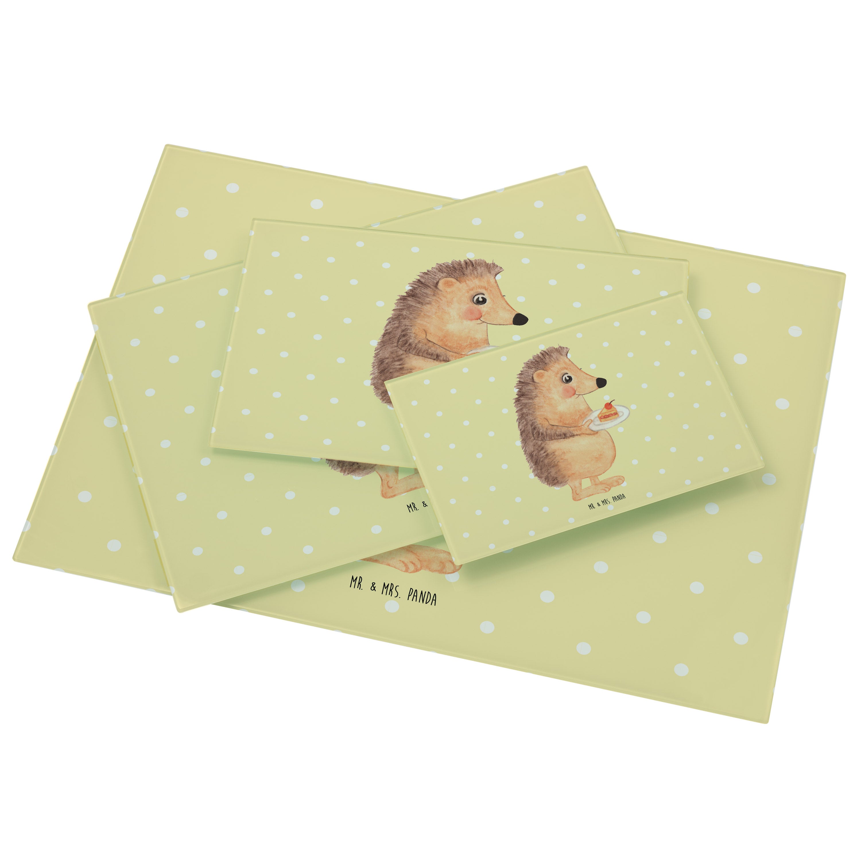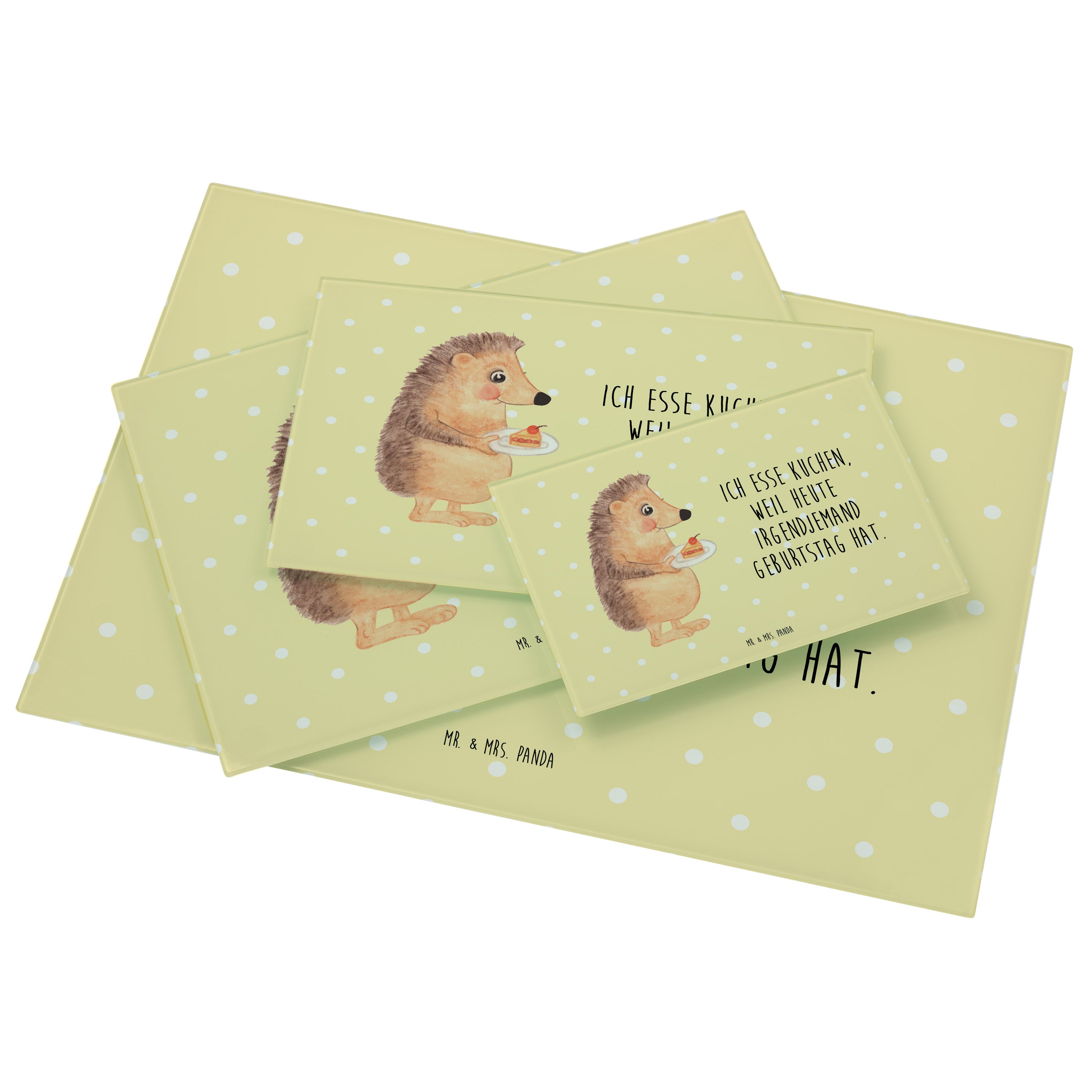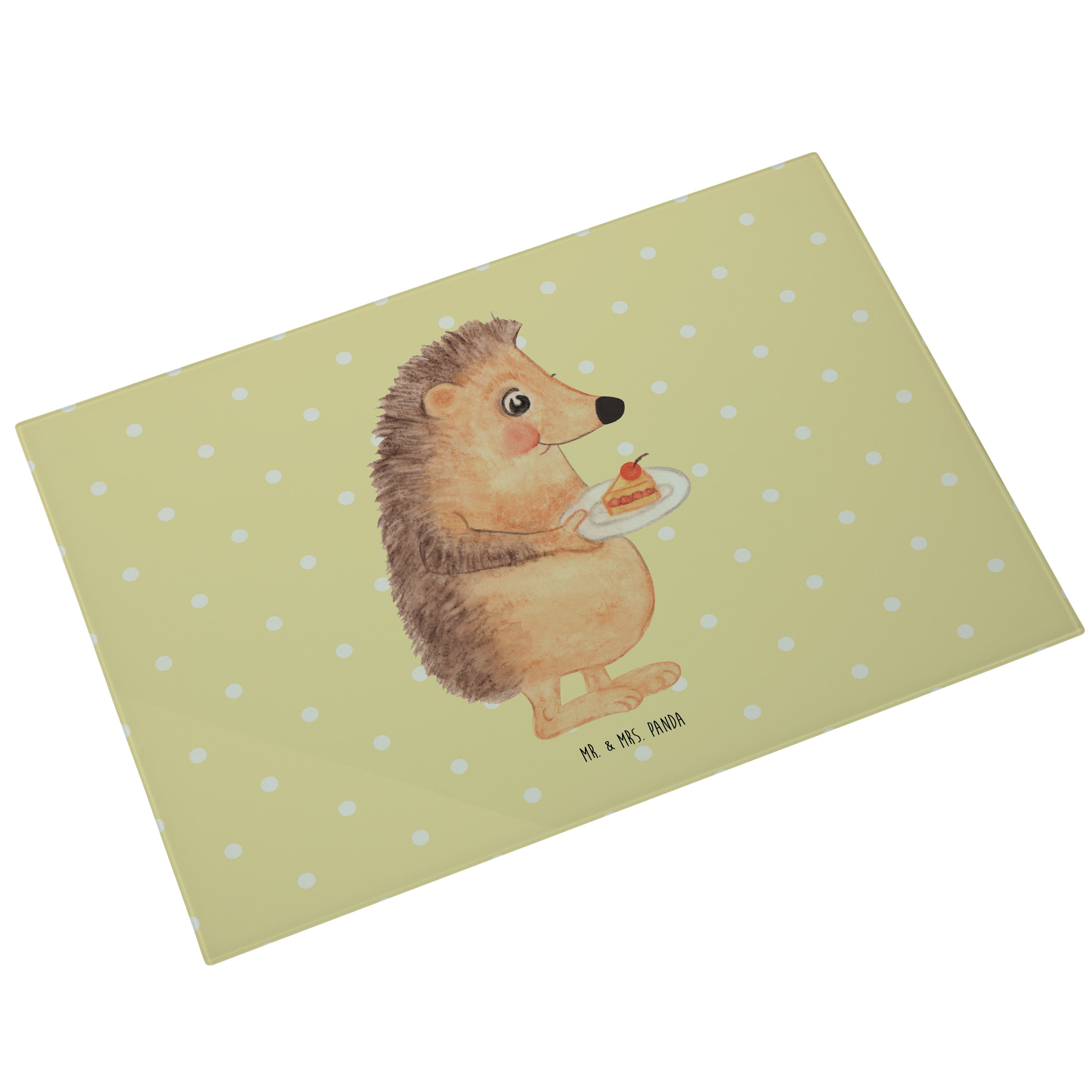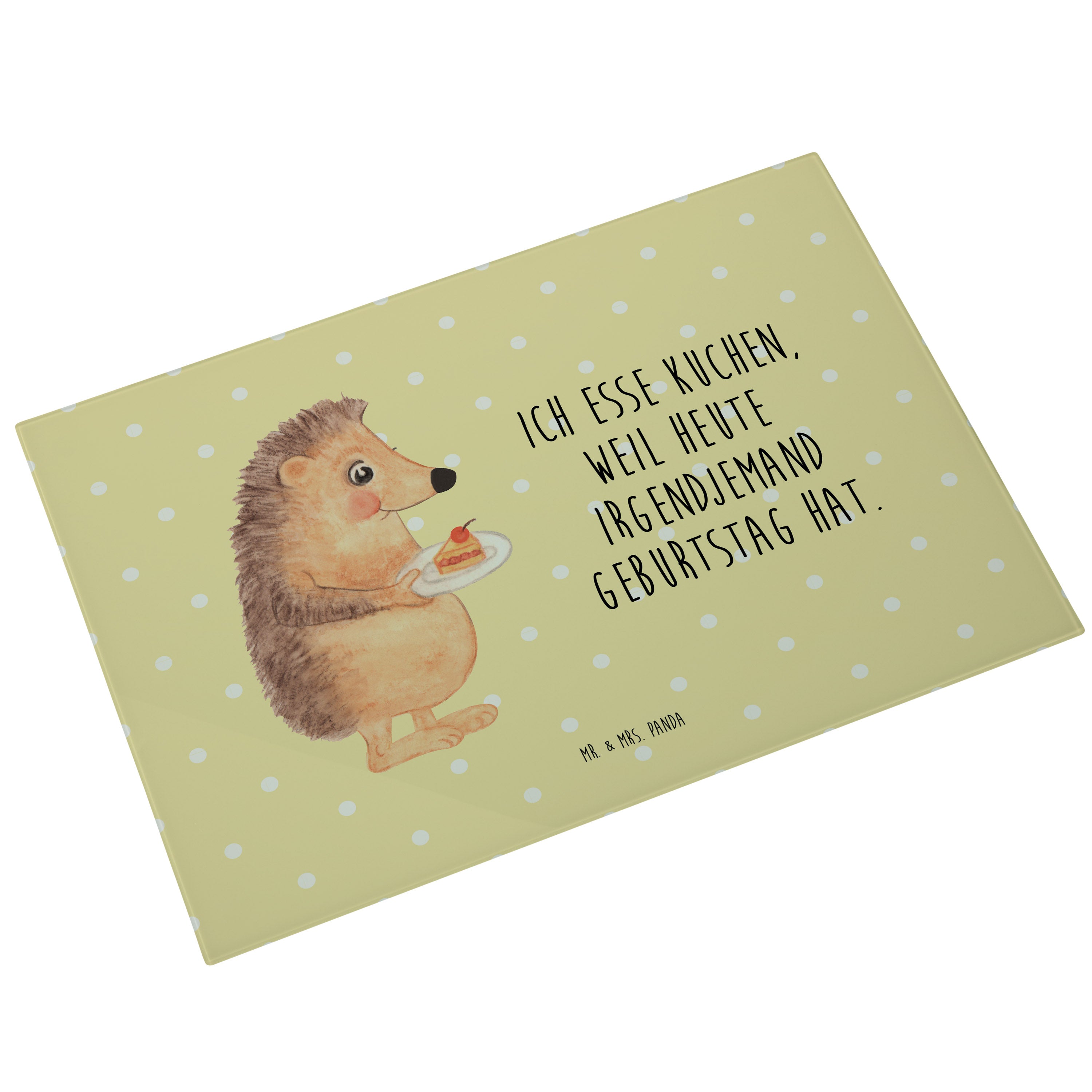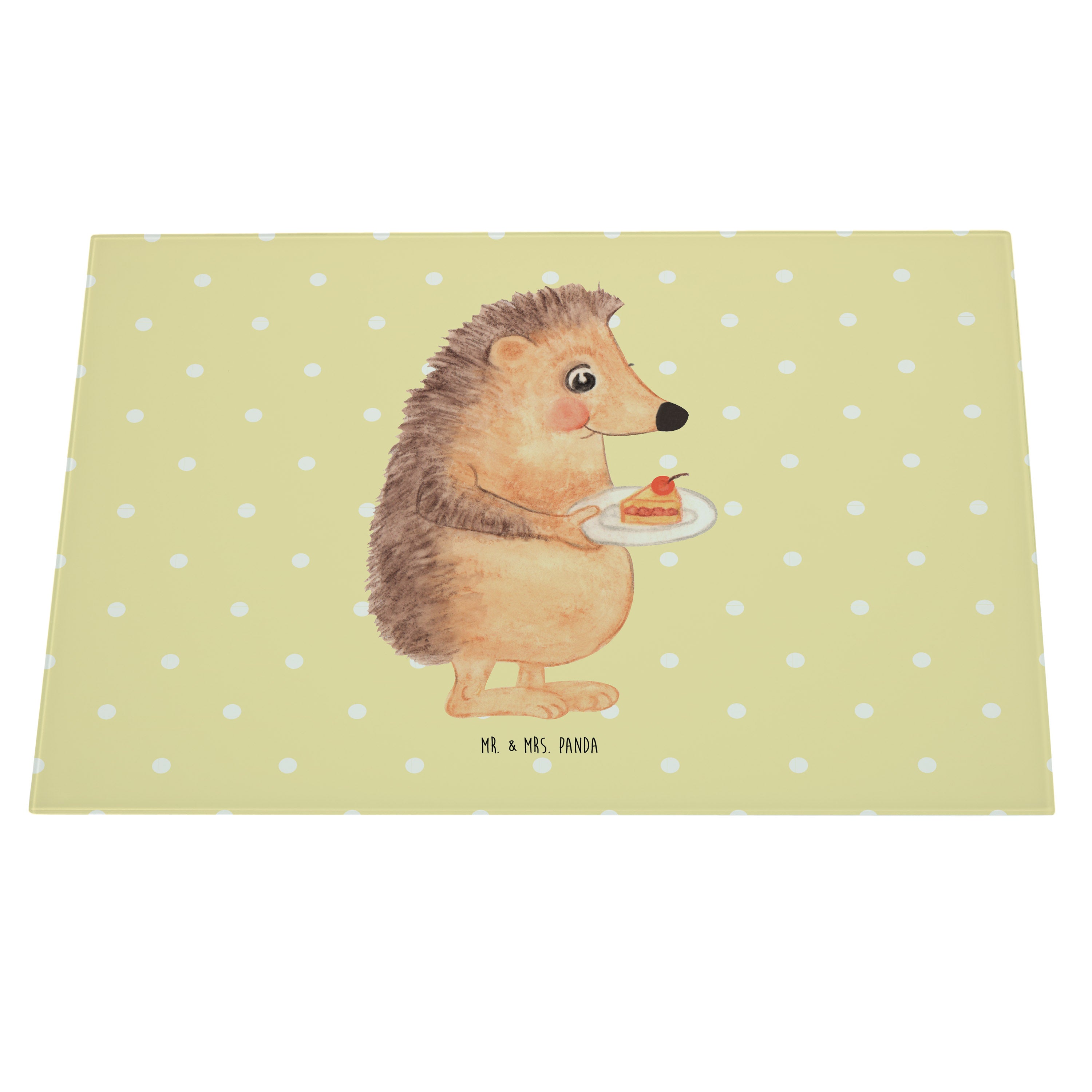 XL Glas Schneidbrett Igel mit Kuchenstück - mit Spruch - Weiß