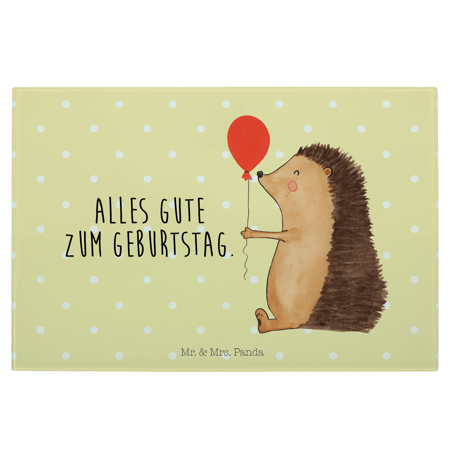 Medium Glas Schneidbrett Igel mit Luftballon - mit Spruch - Gelb Pastell