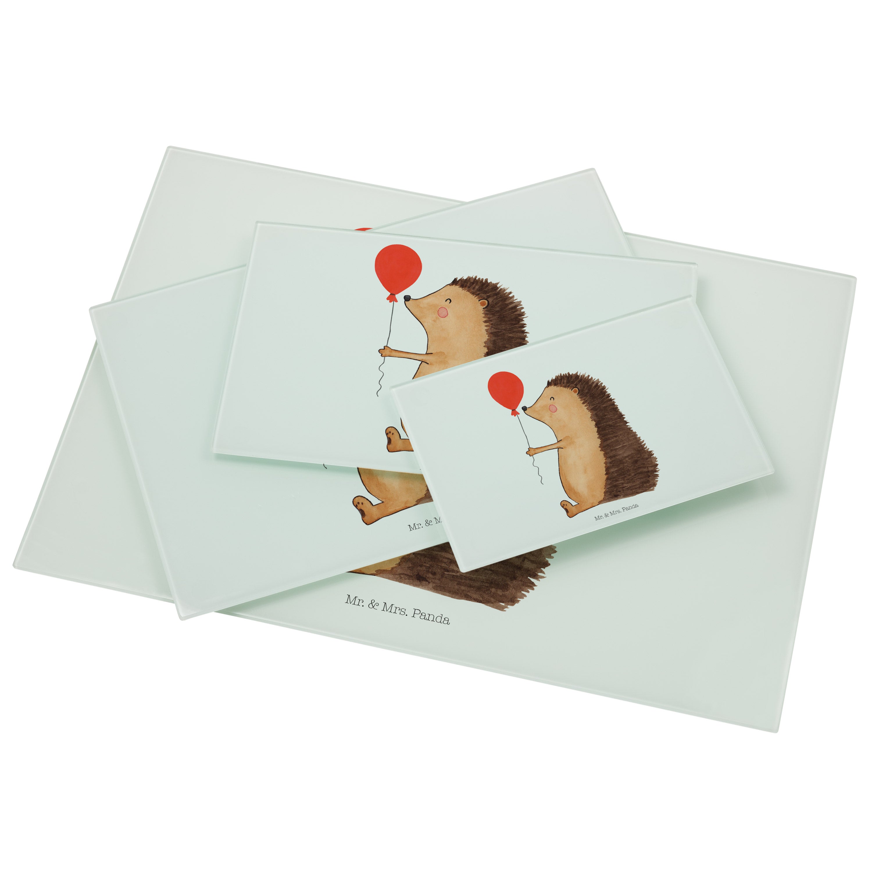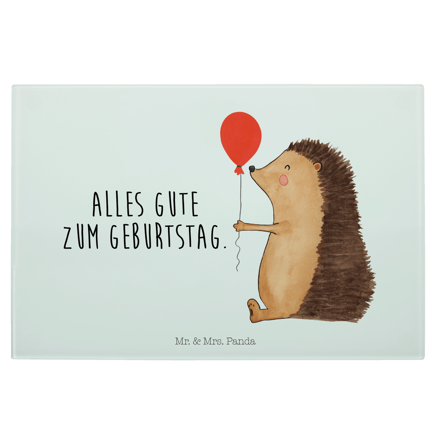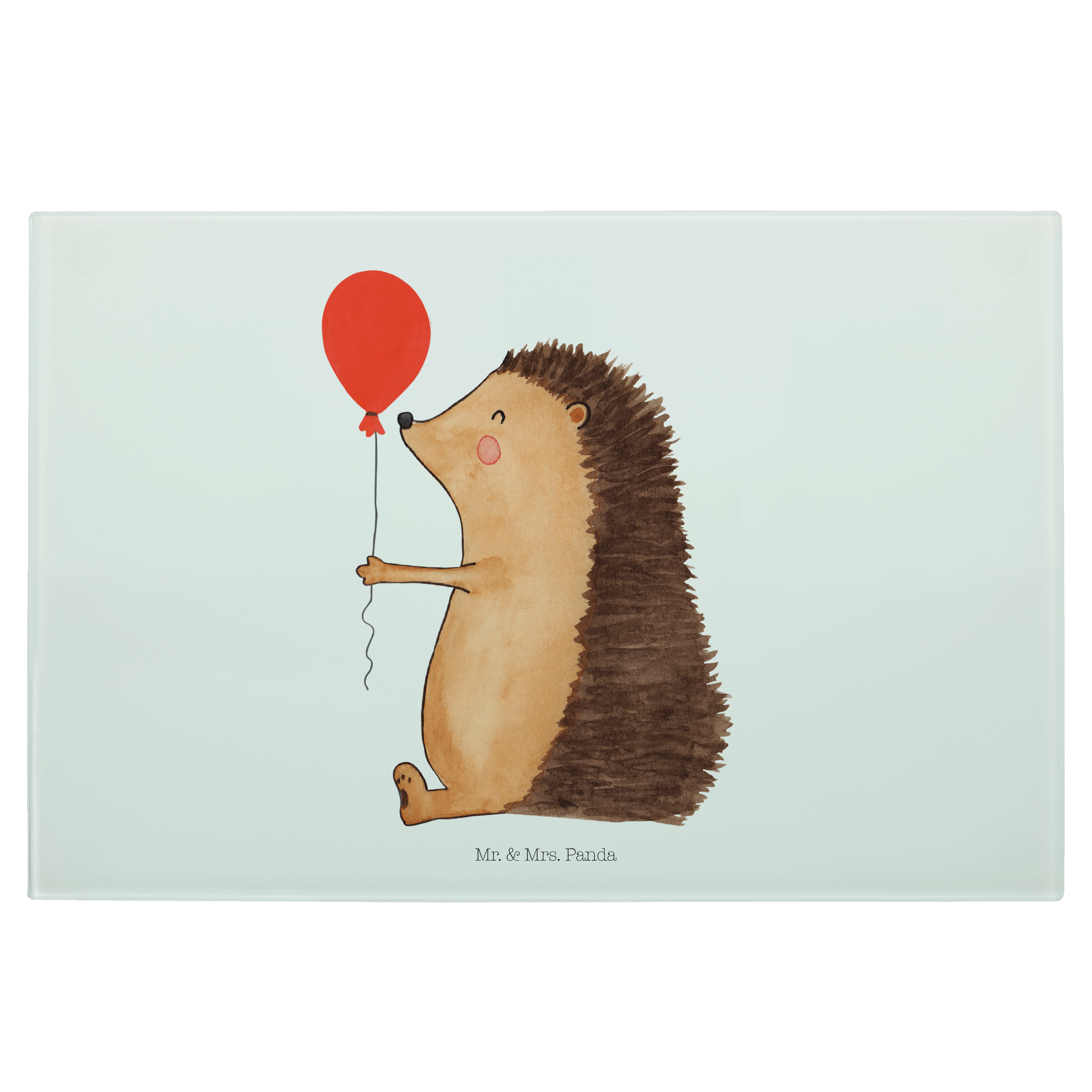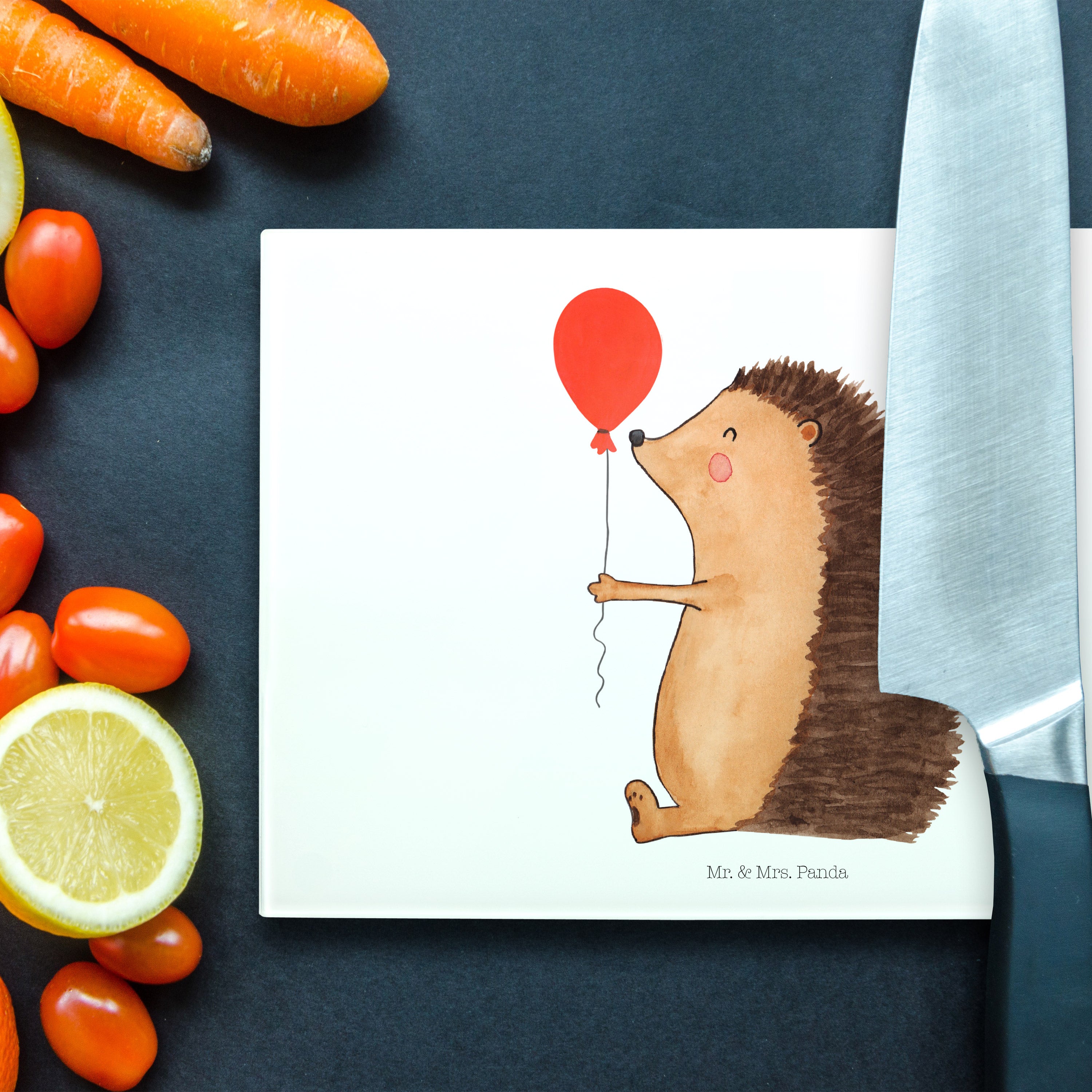 Medium Glas Schneidbrett Igel mit Luftballon - mit Spruch - Weiß