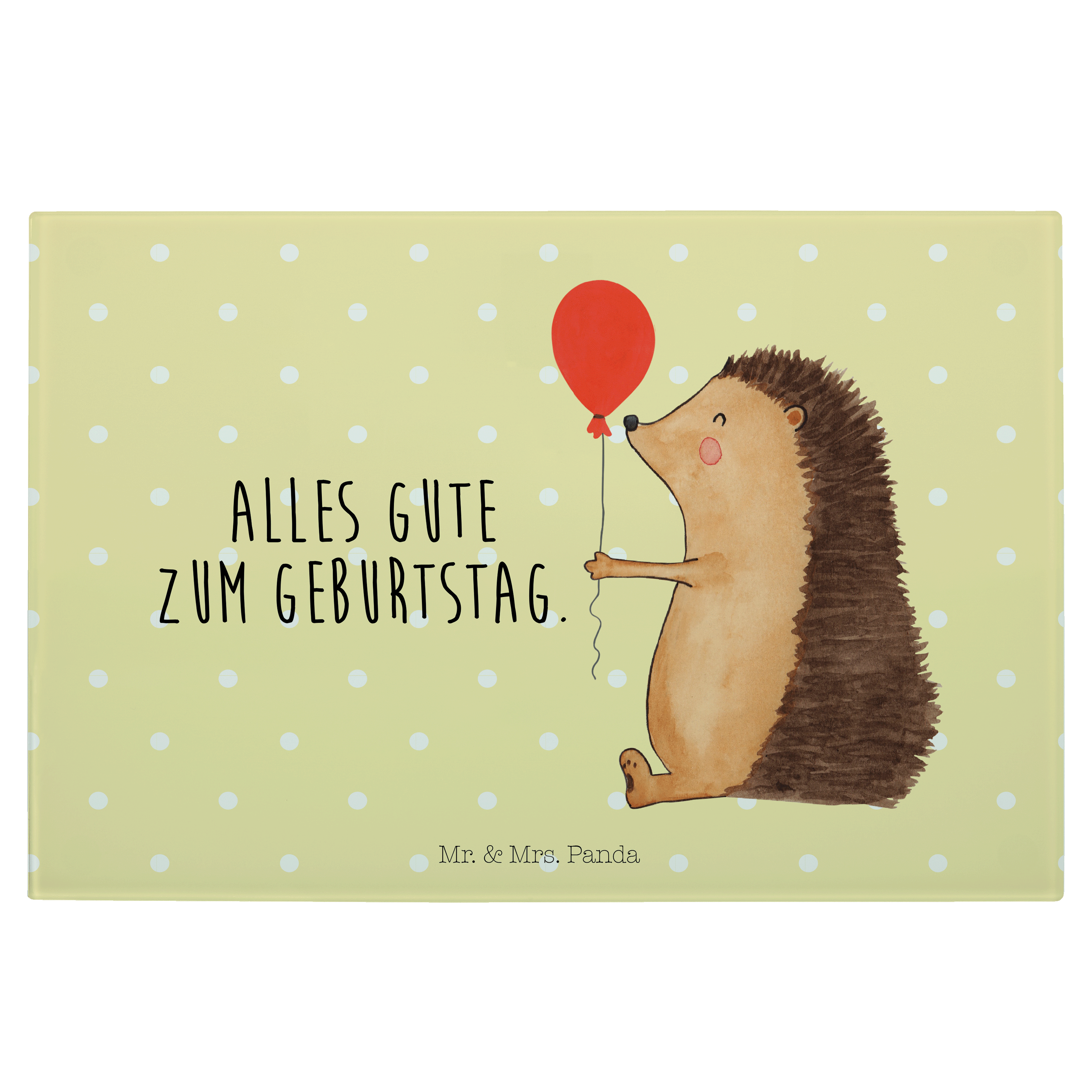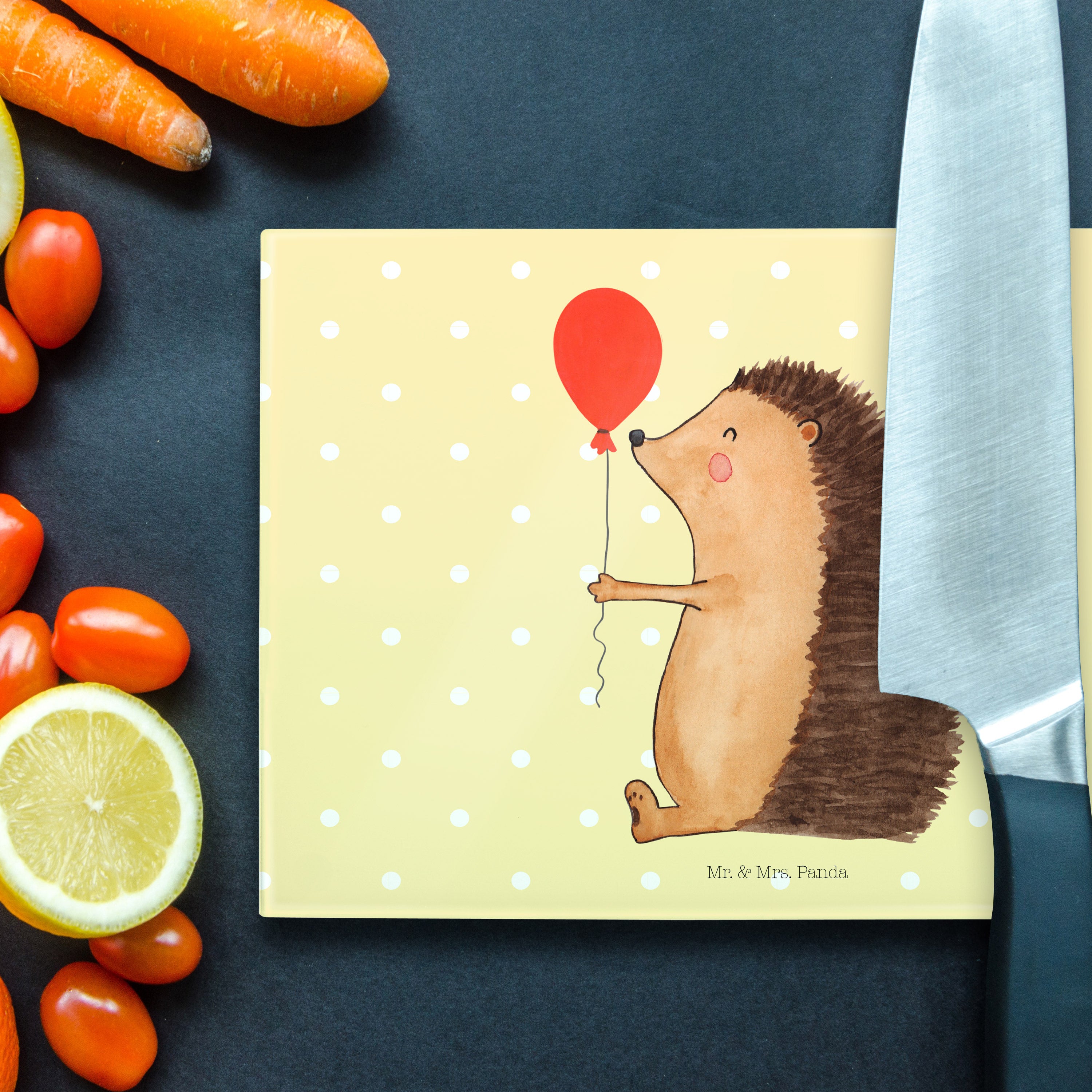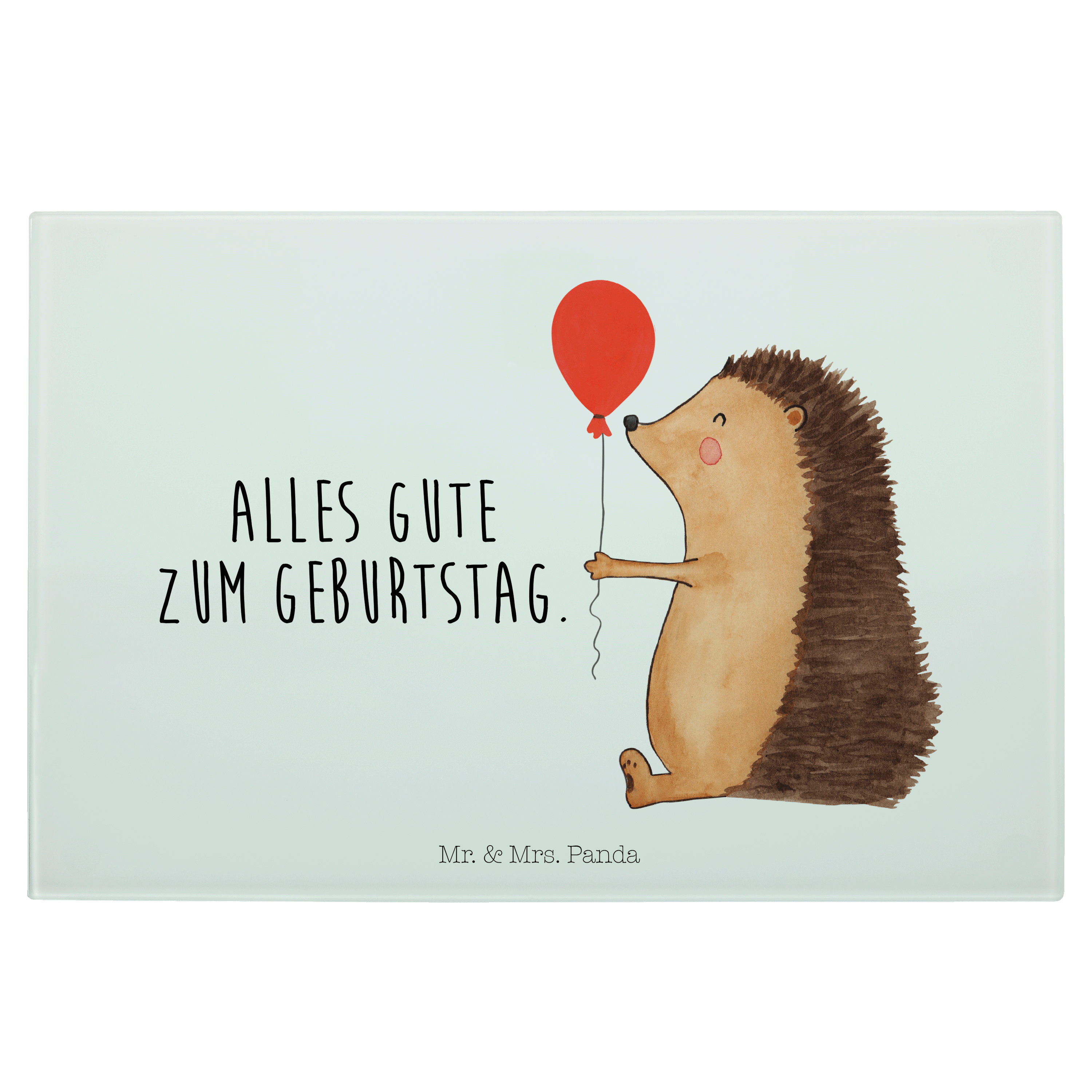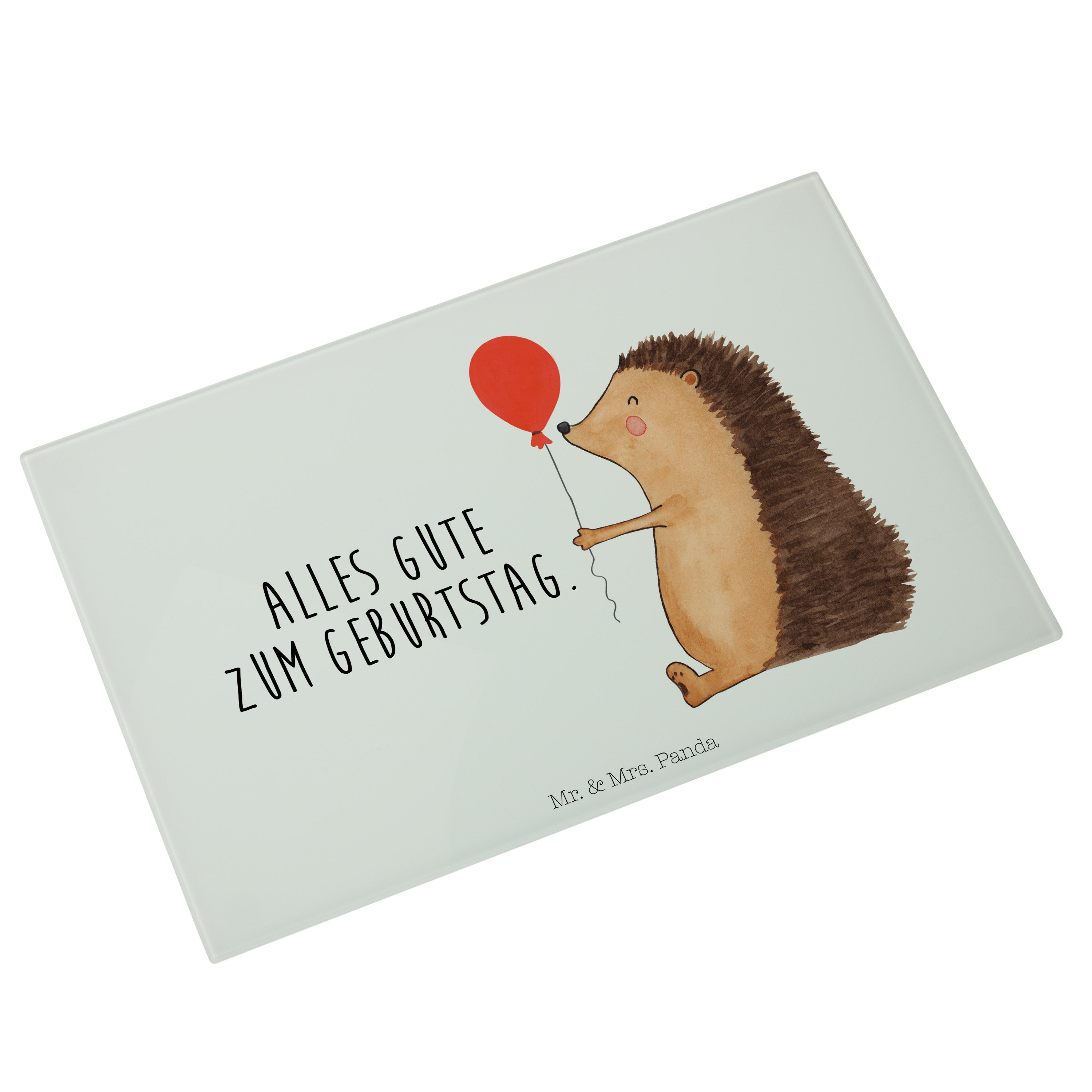 Medium Glas Schneidbrett Igel mit Luftballon - mit Spruch - Weiß