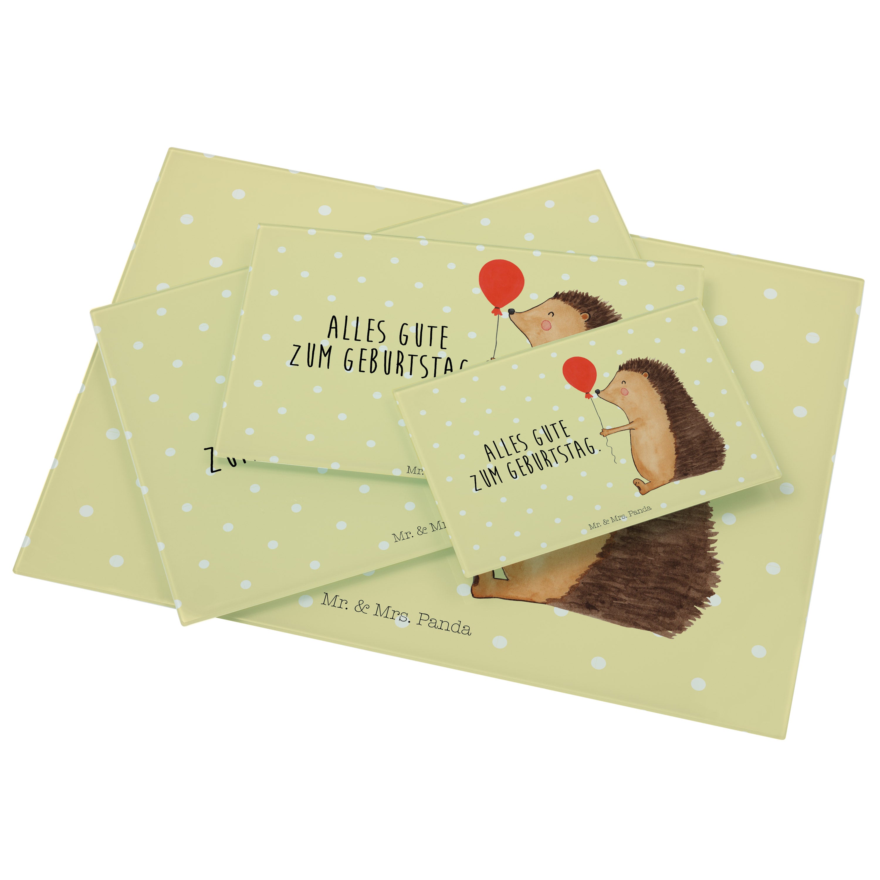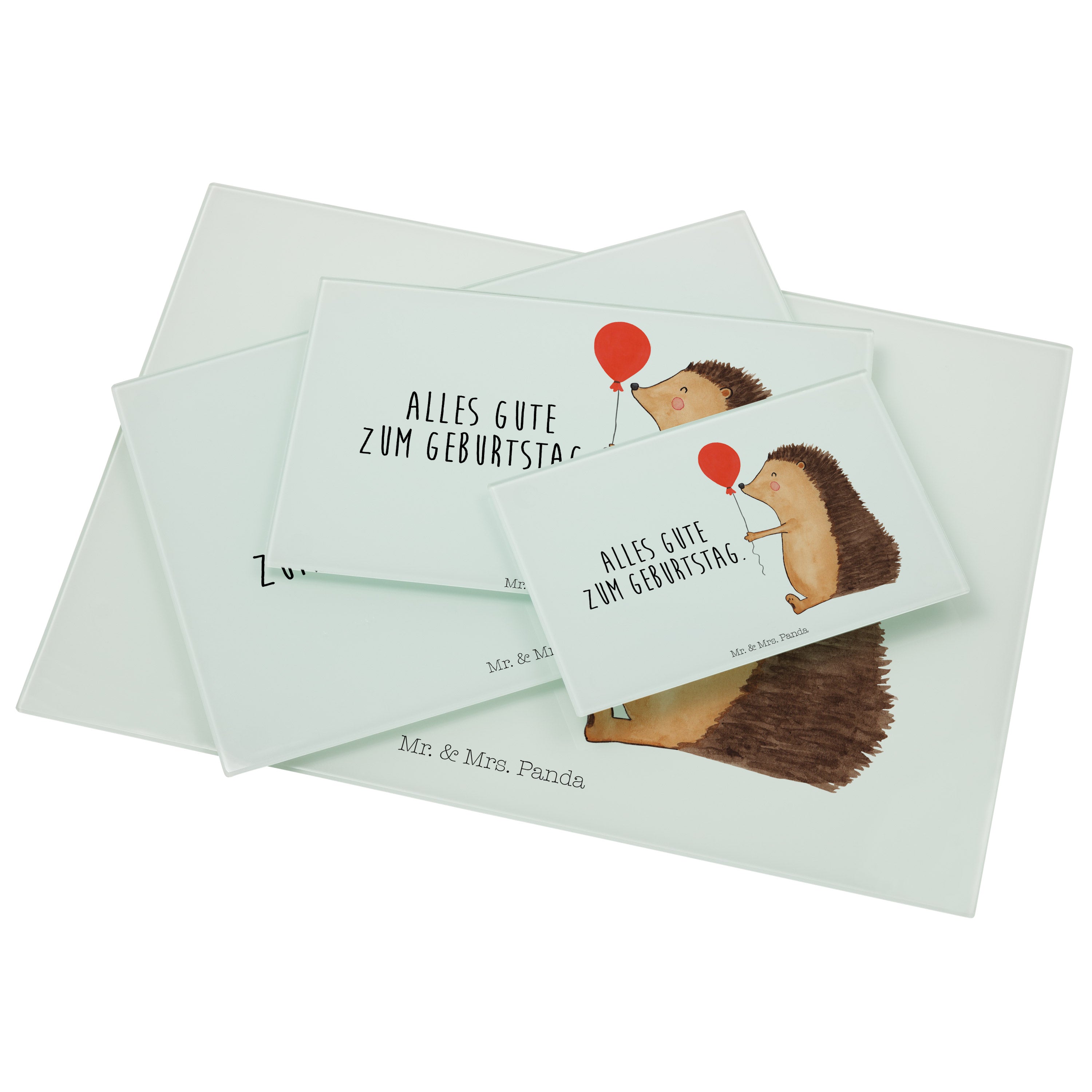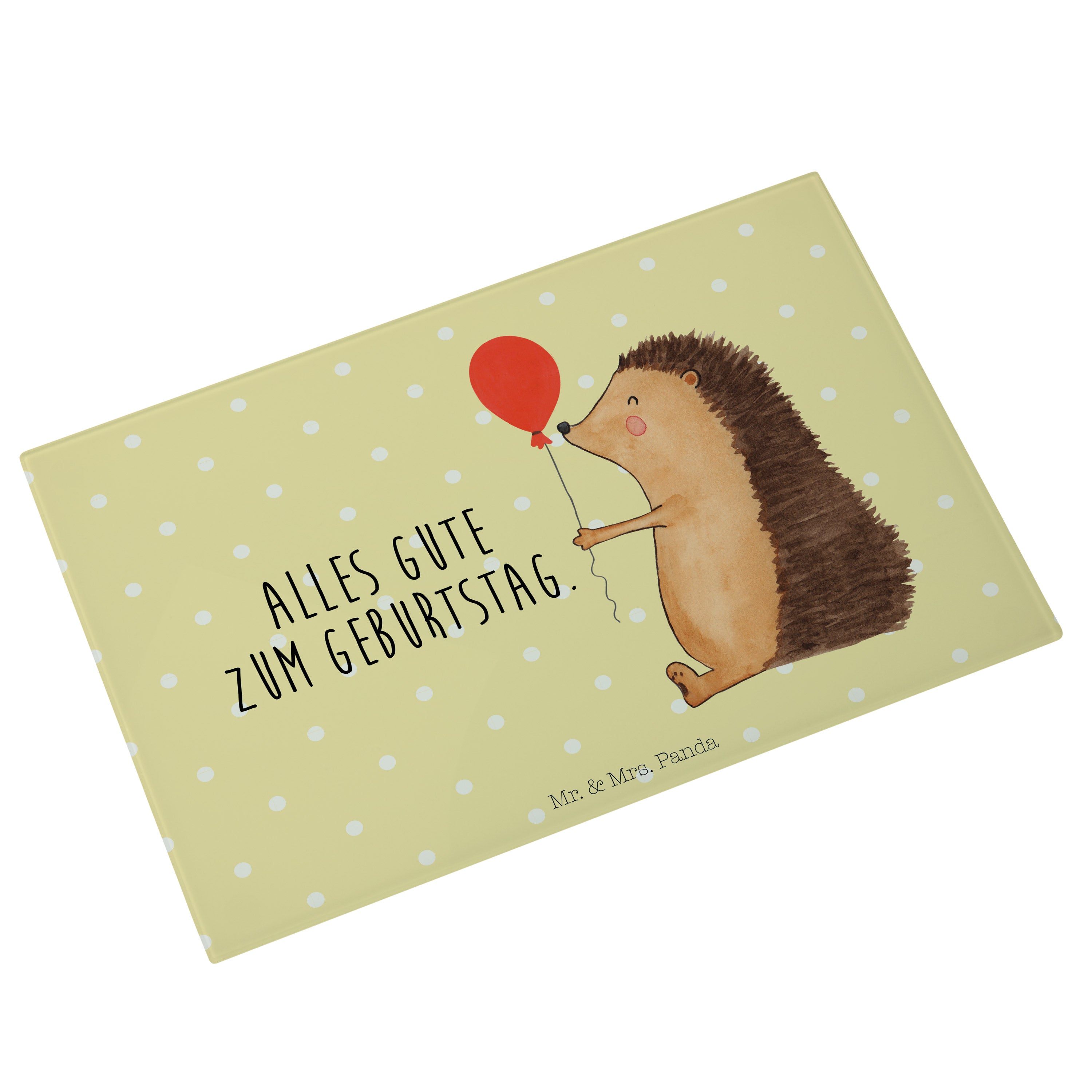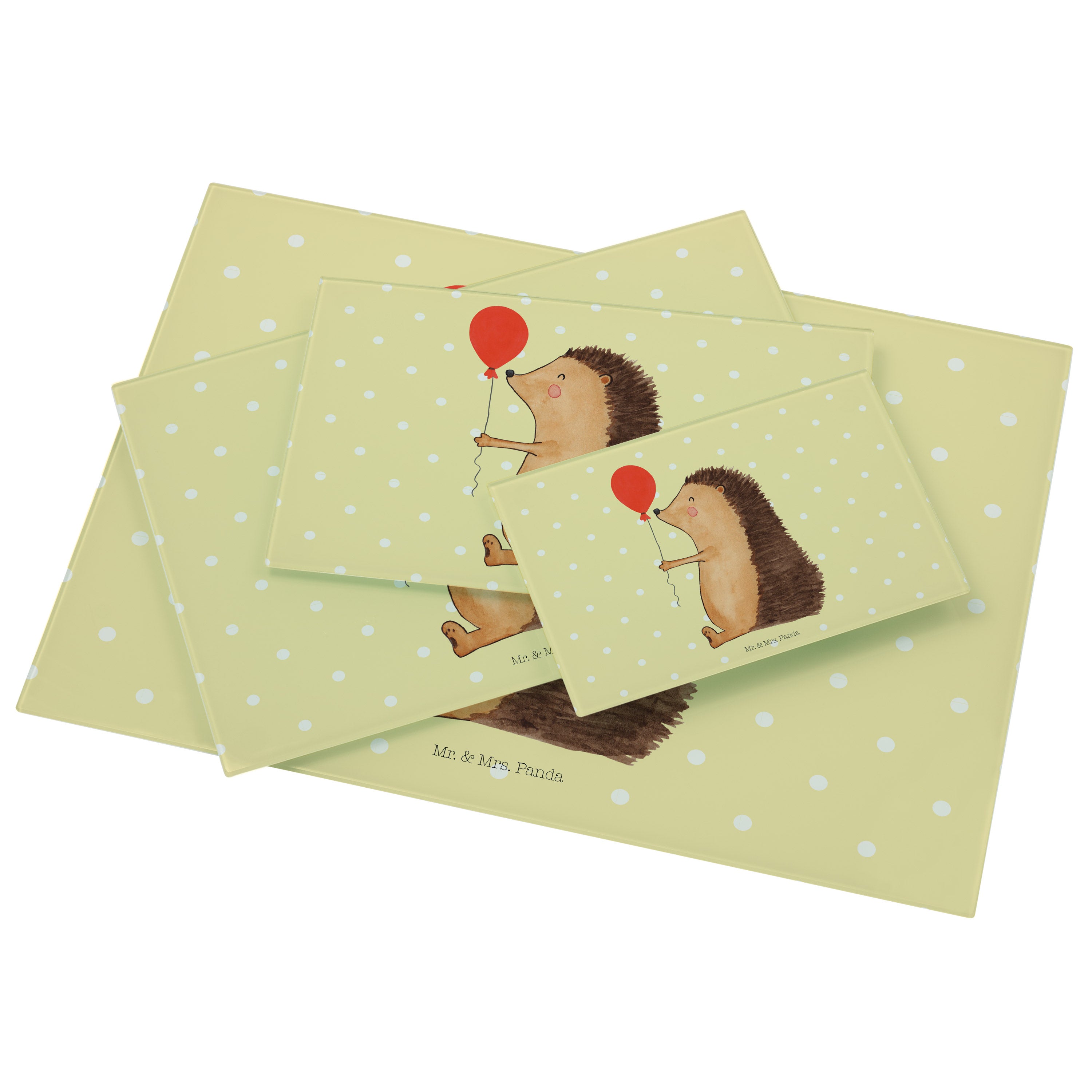 Medium Glas Schneidbrett Igel mit Luftballon - mit Spruch - Weiß