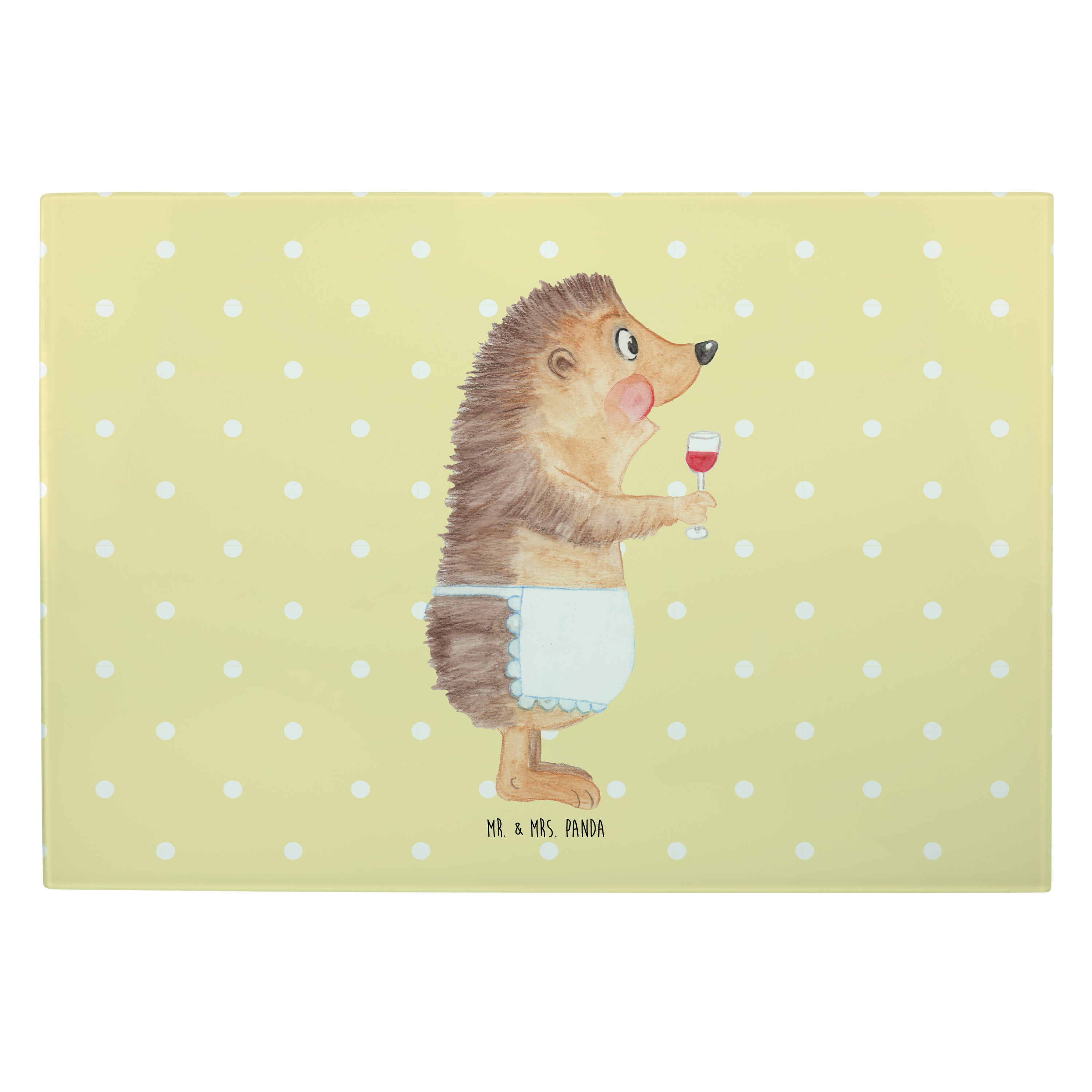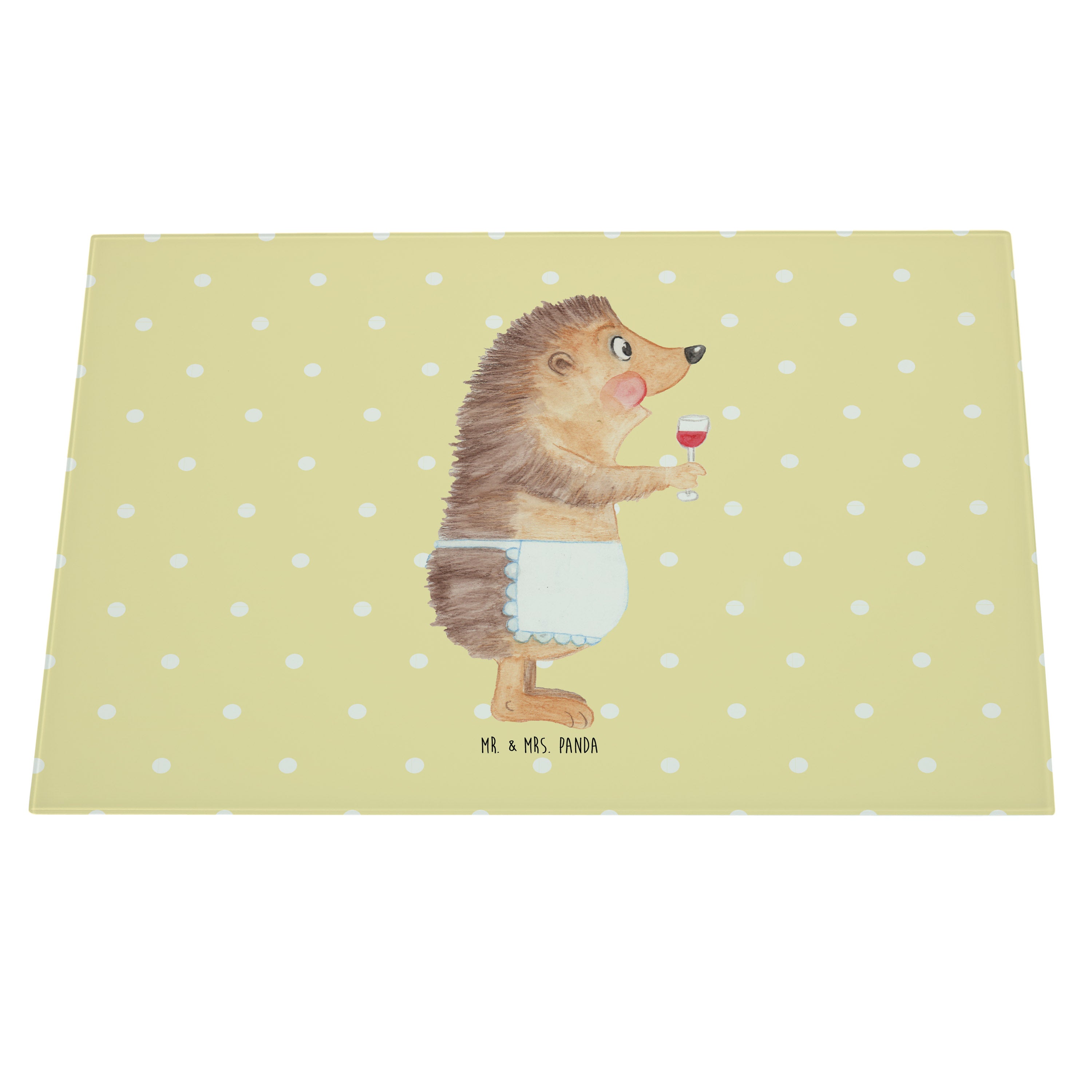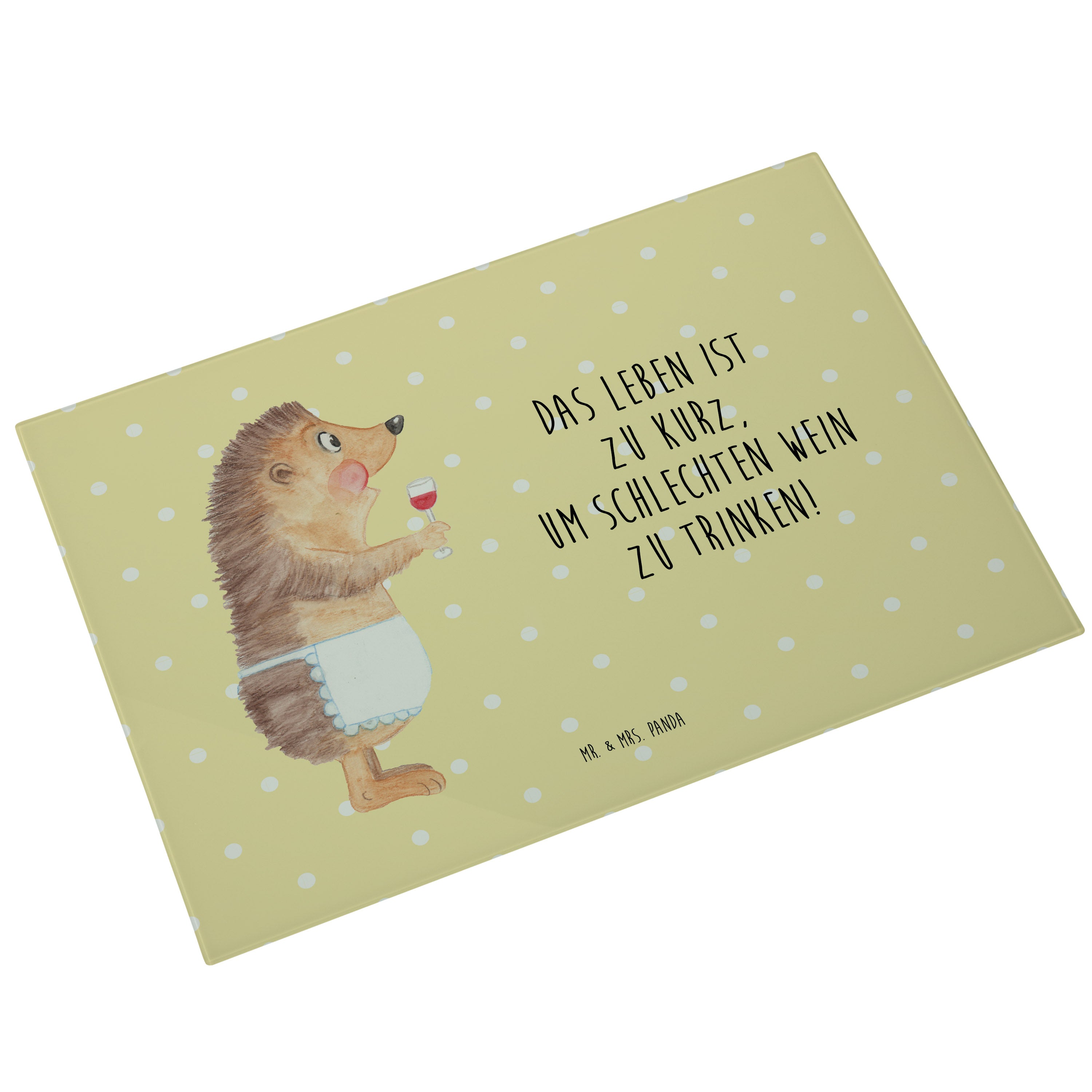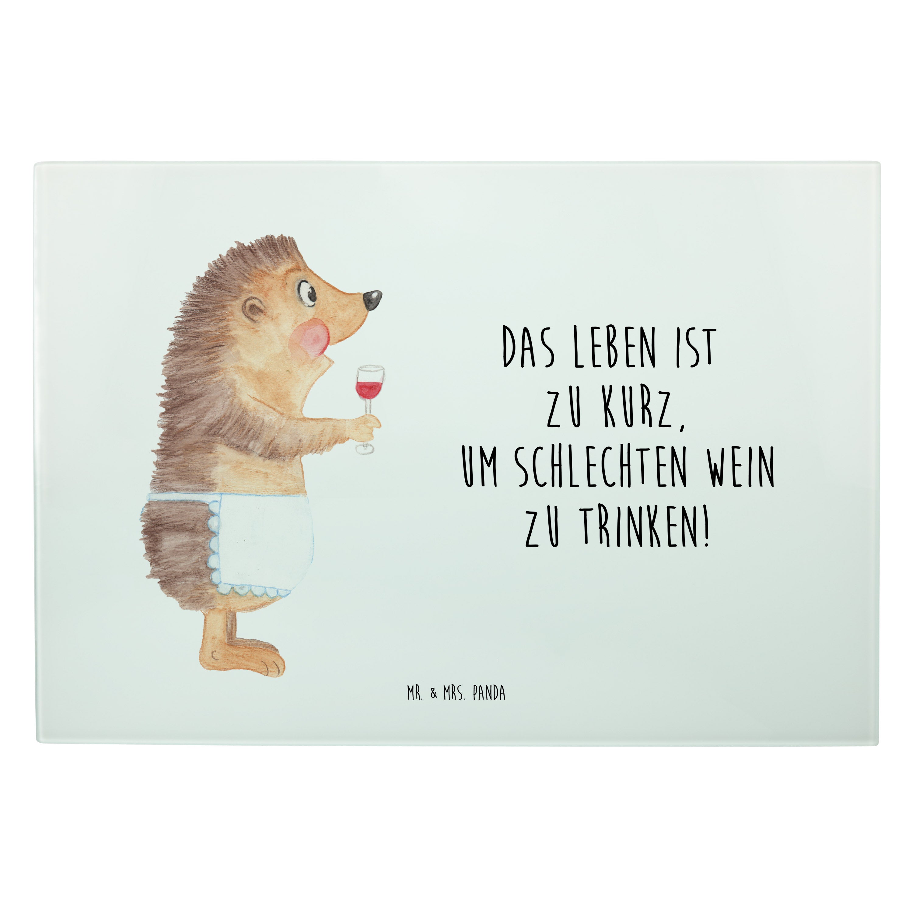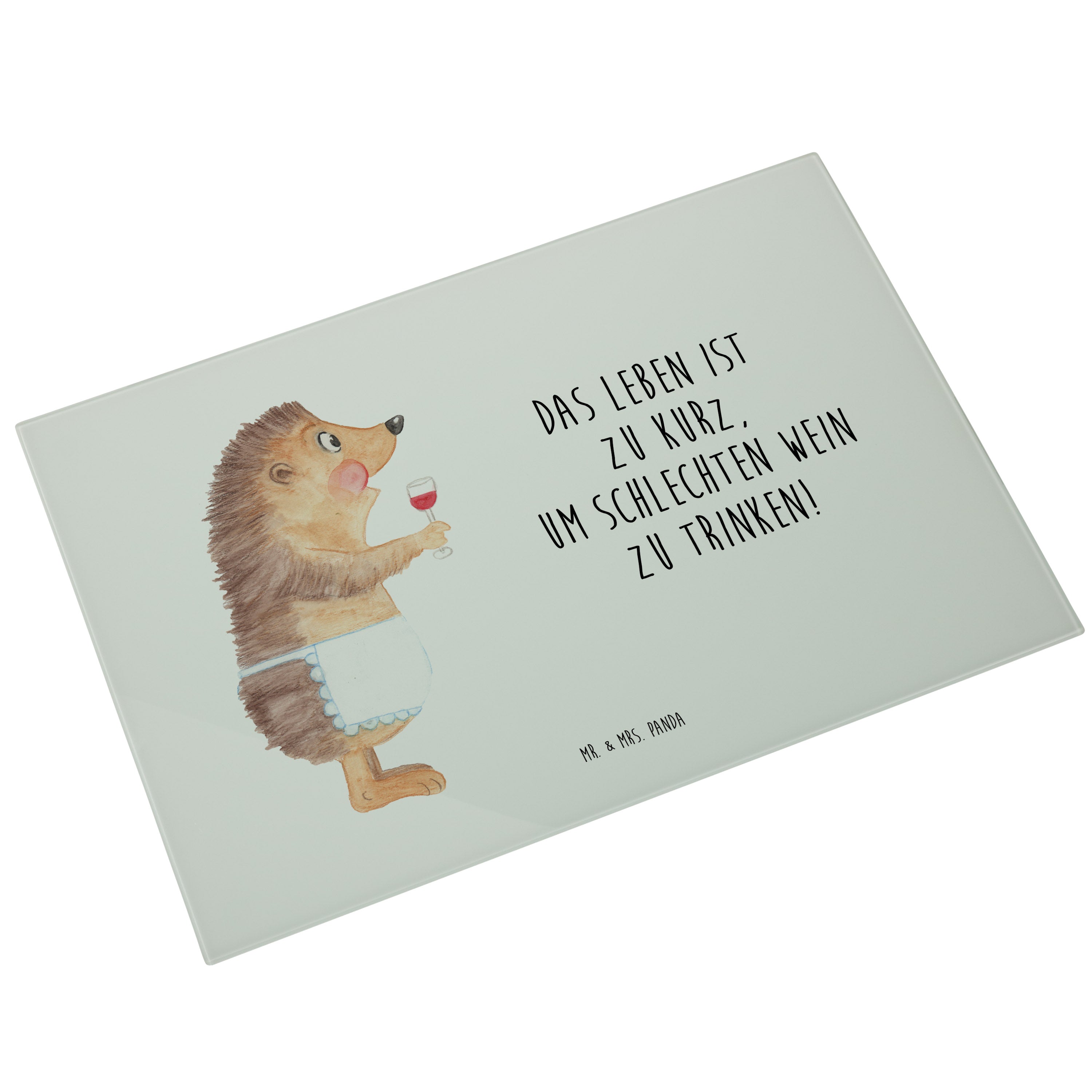 XL Glas Schneidbrett Igel mit Wein - mit Spruch - Weiß