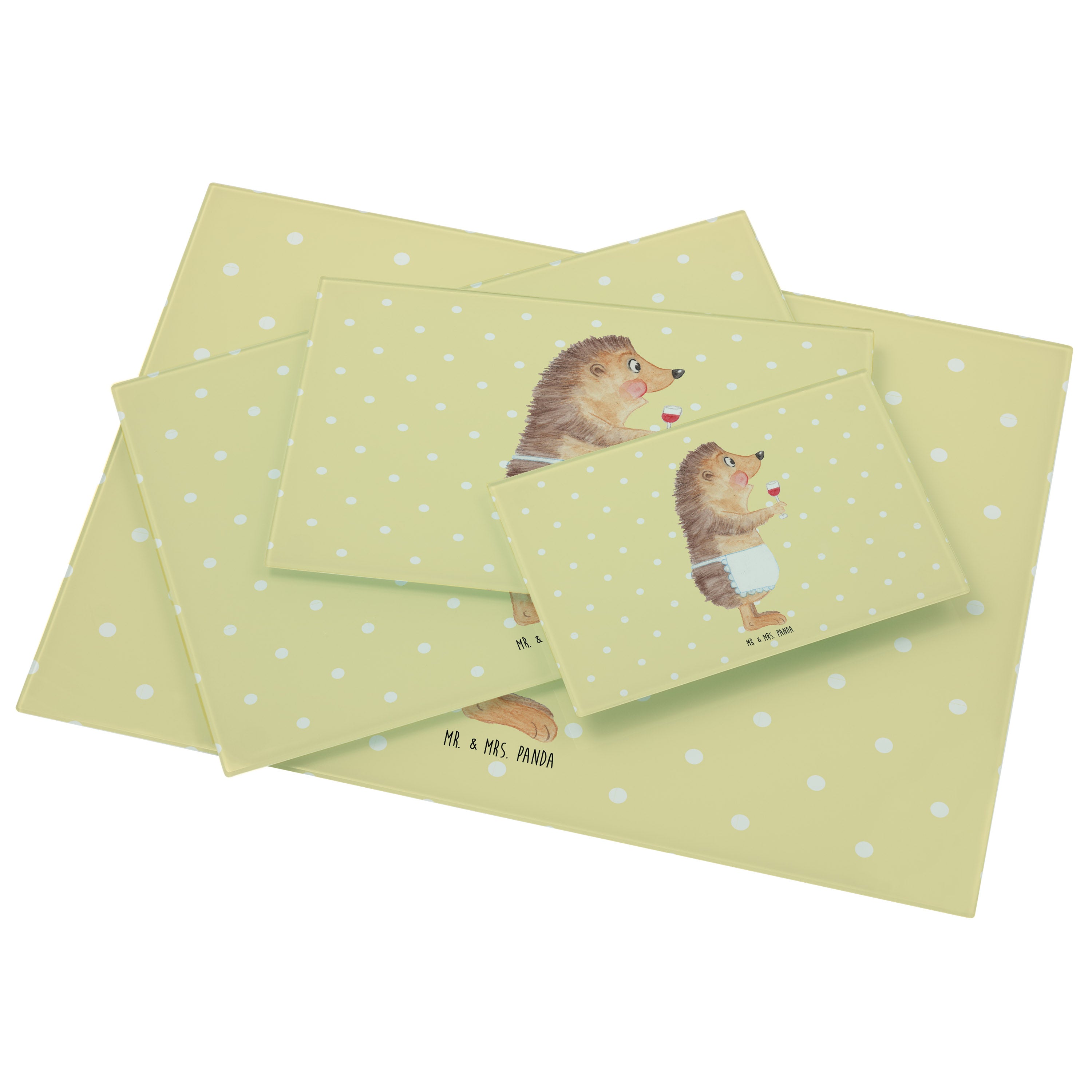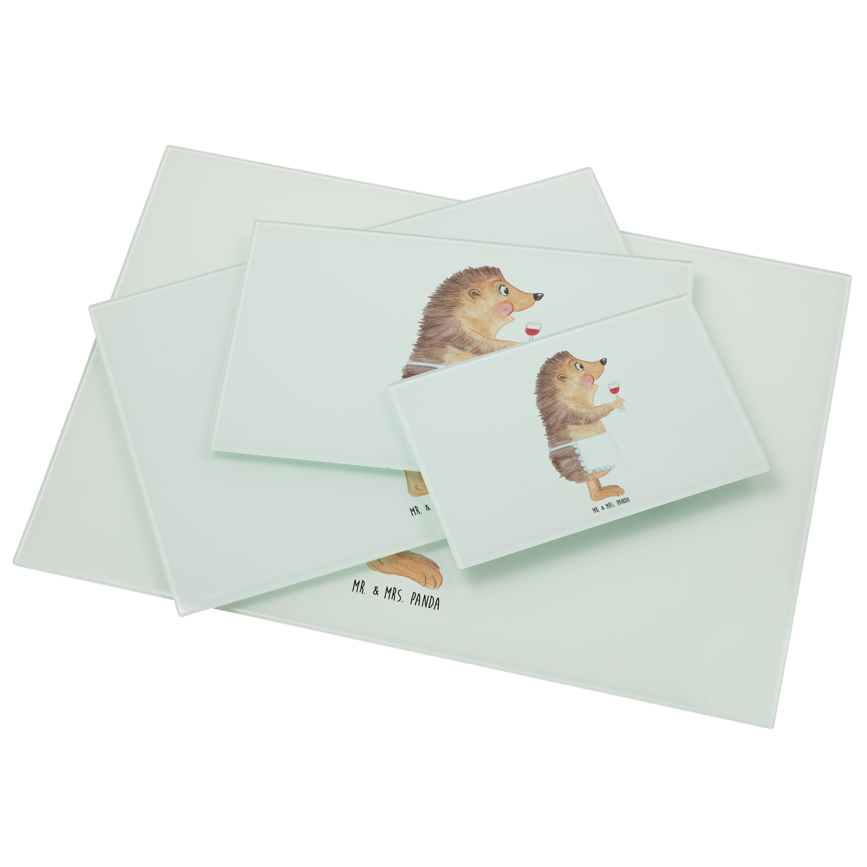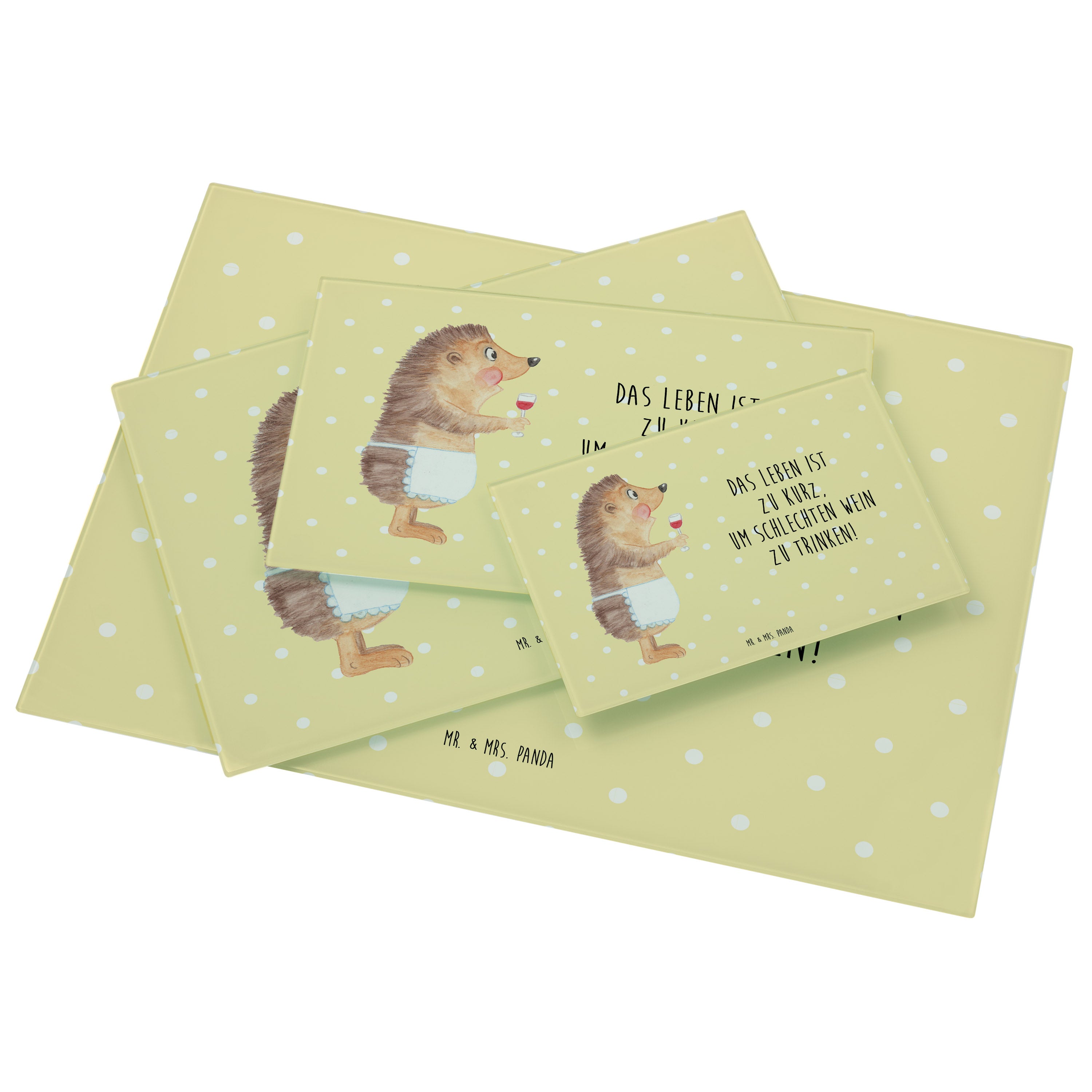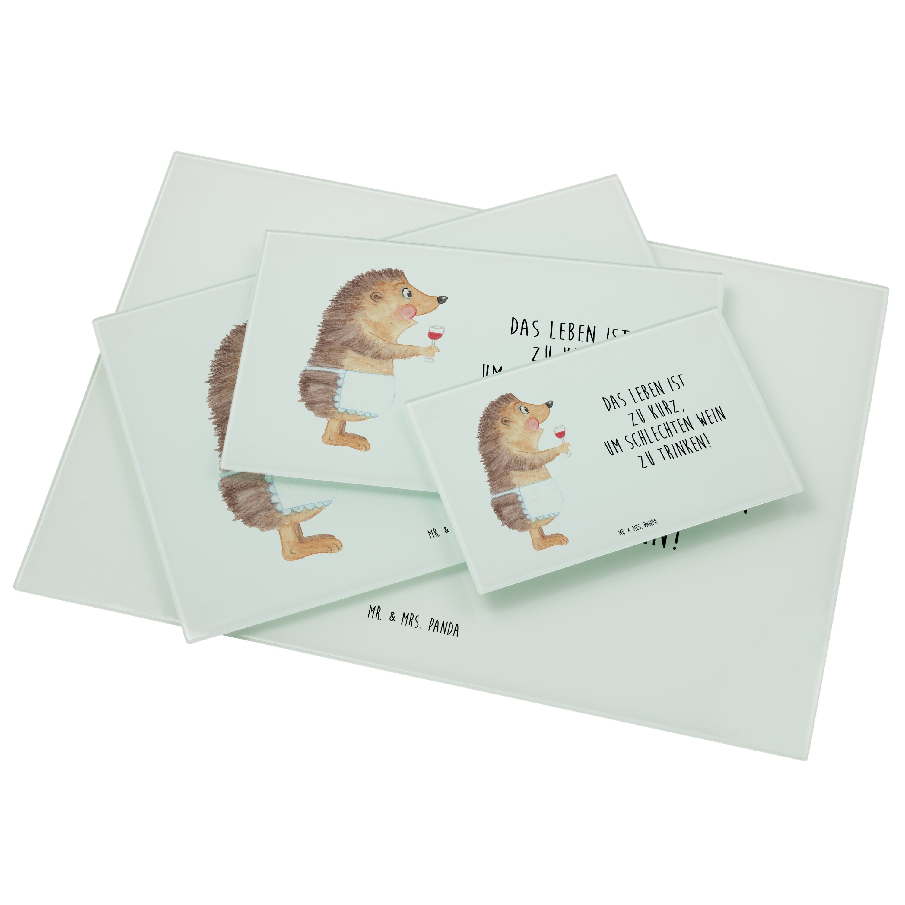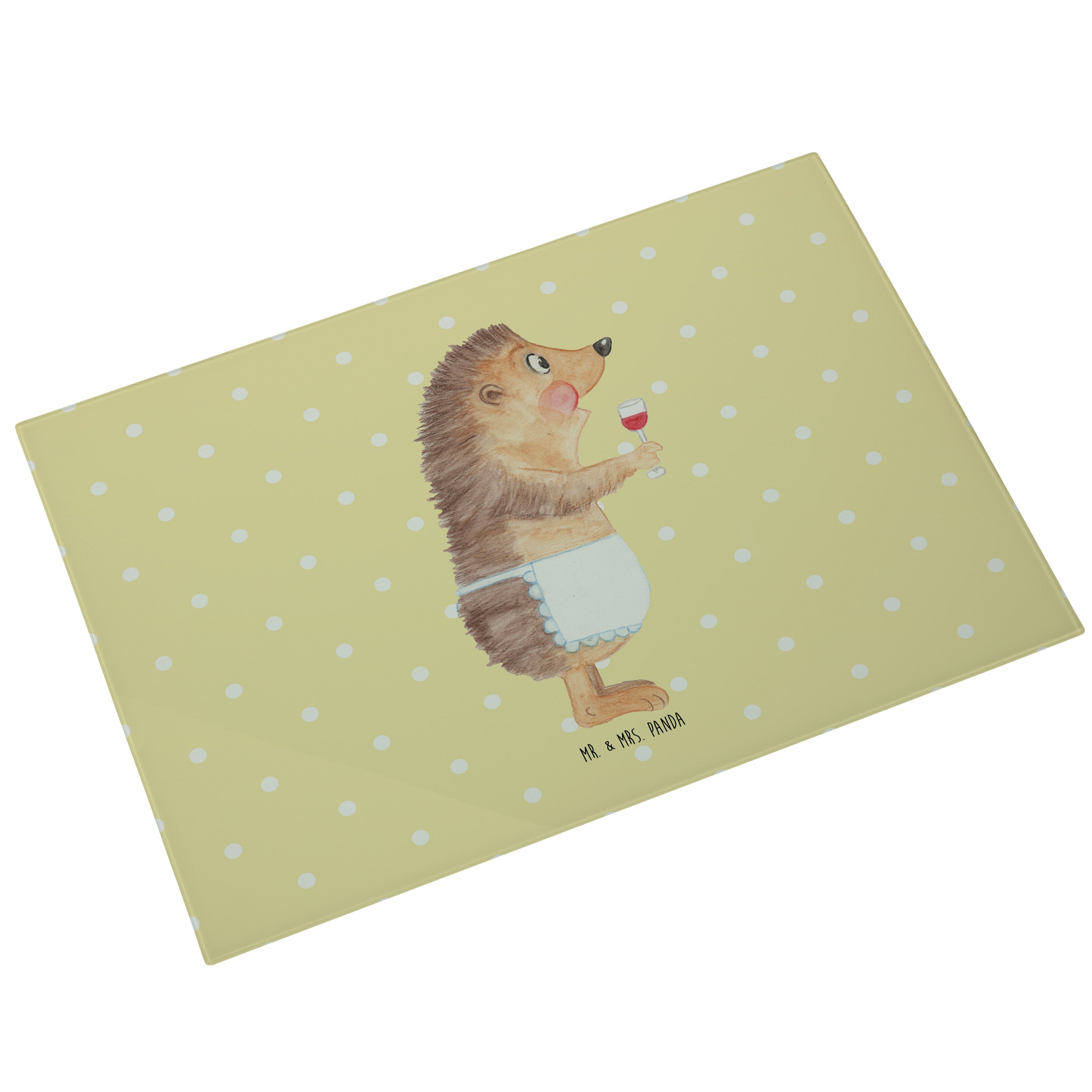 XL Glas Schneidbrett Igel mit Wein - mit Spruch - Weiß