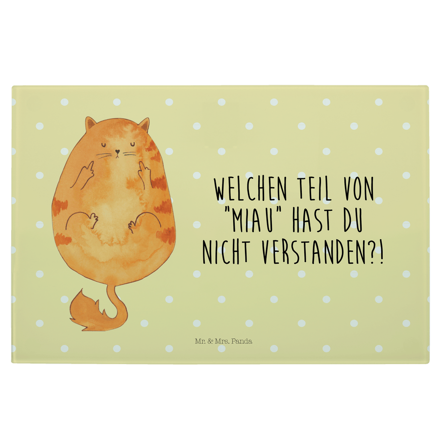 Medium Glas Schneidbrett Katze Mittelfinger - mit Spruch - Gelb Pastell
