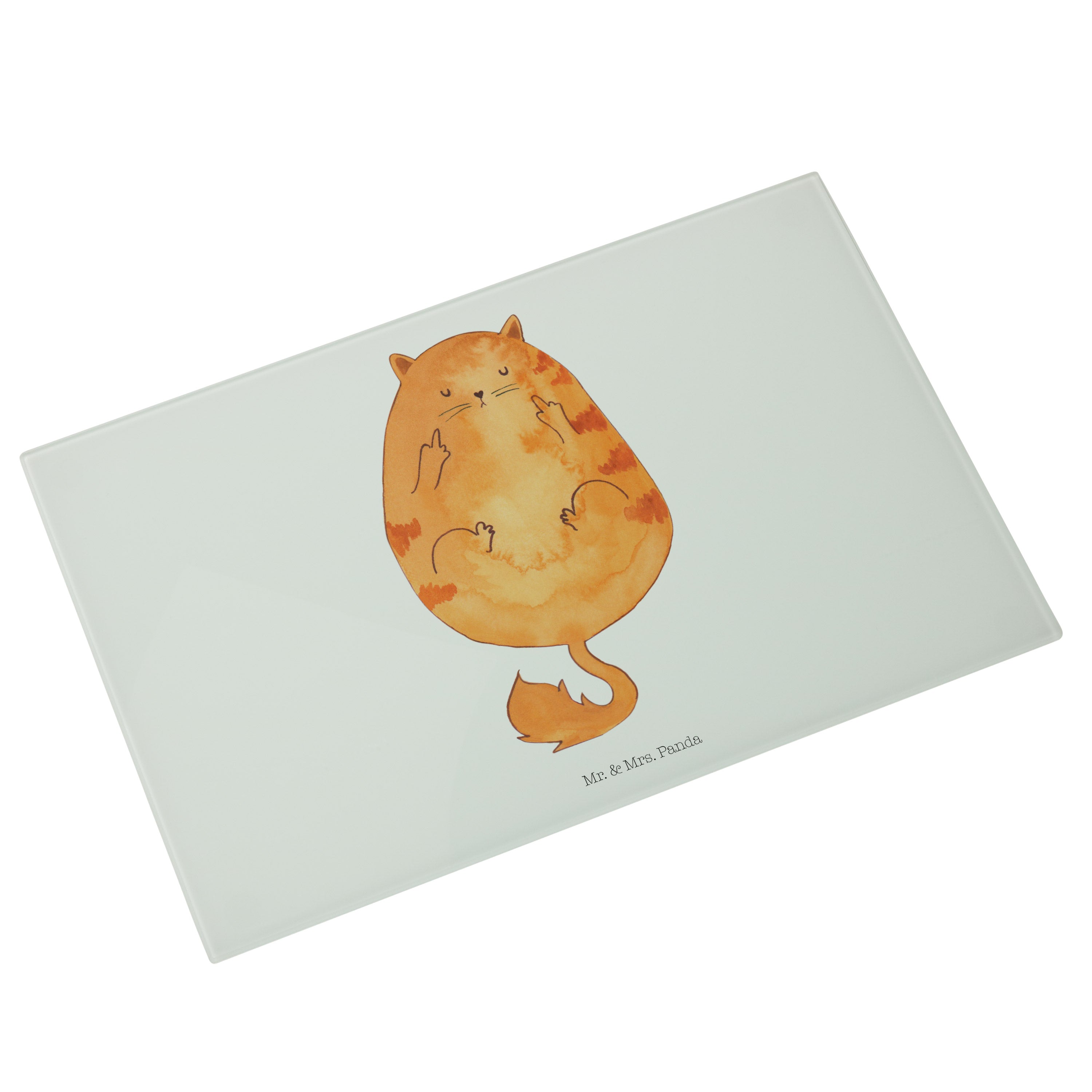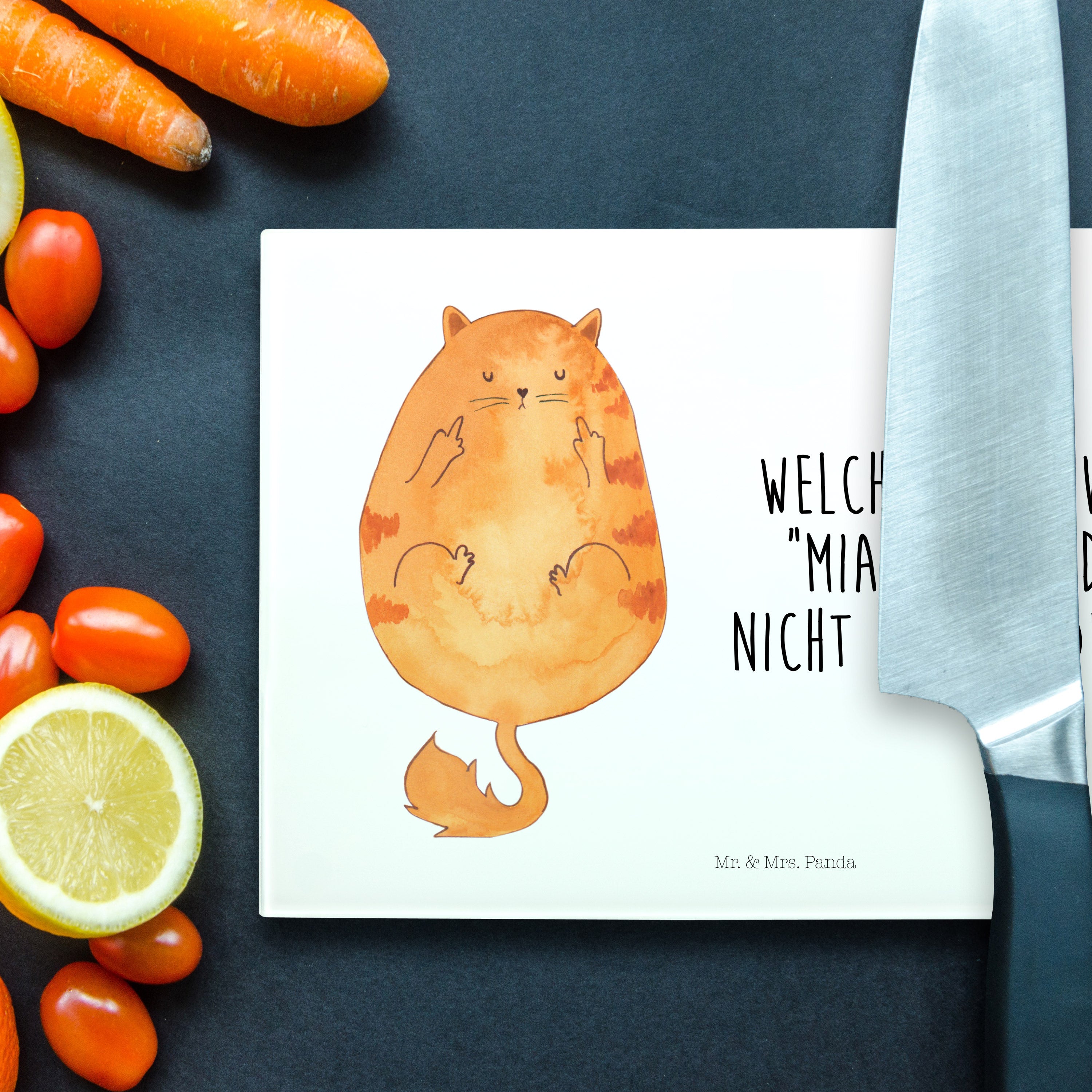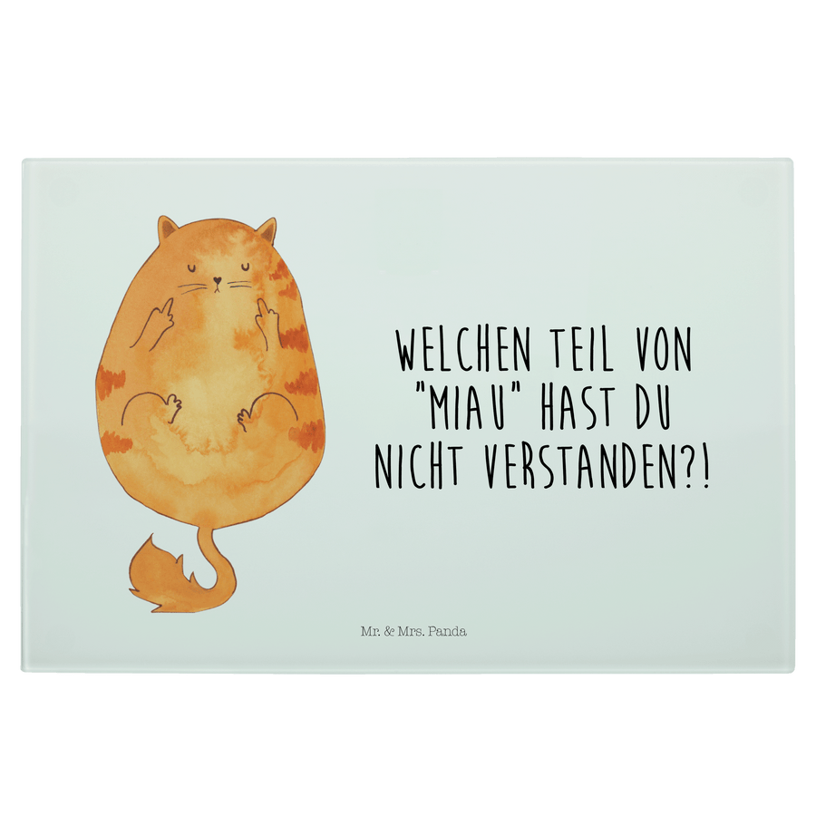 Medium Glas Schneidbrett Katze Mittelfinger - mit Spruch - Weiß